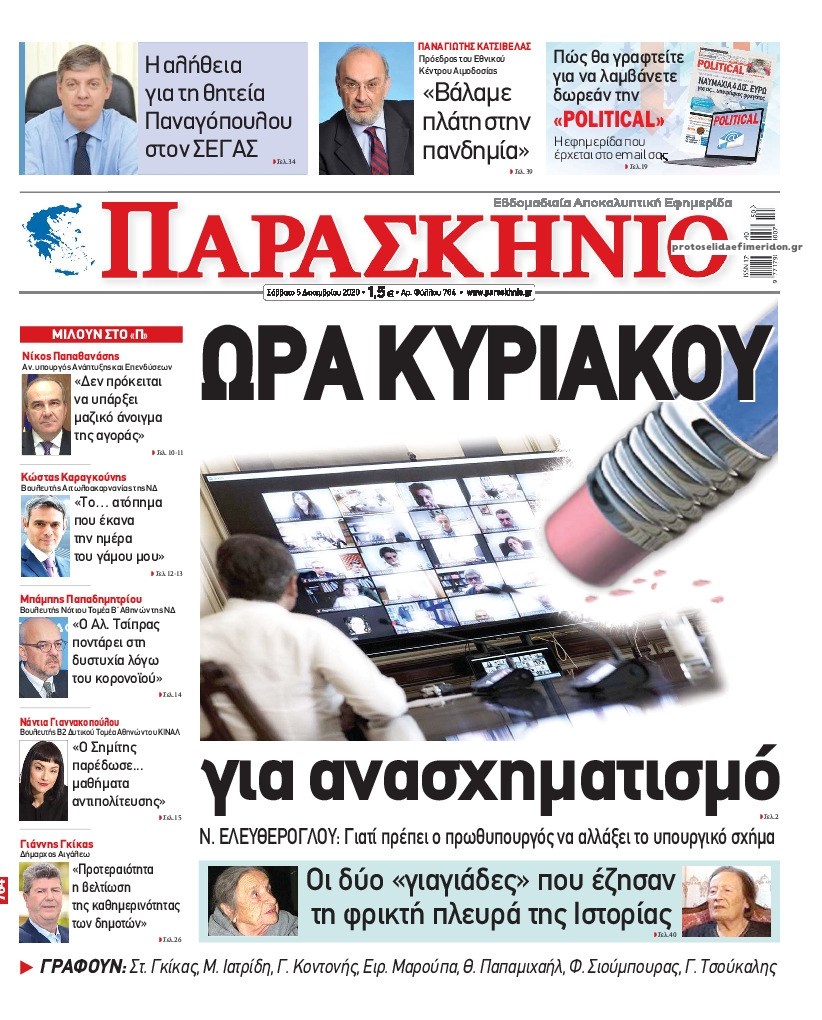 Οι πολιτικές εφημερίδες 5/12/2020 Διονύσης Νίκκας 07:11, Σάββατο 05 Δεκεμβρίου 2020 Media Διαβάστε τα πρωτοσέλιδα των πολιτικών εφημερίδων… ΕΦΗΜΕΡΙΔΕΣ ΠΟΛΙΤΙΚΕΣ ΕΦΗΜΕΡΙΔΕΣ ΠΡΩΤΟΣΕΛΙΔΑ Μοιράσου το: σχολίασε κι εσύ (0 σχόλια) Ακολουθήστε το enikos.gr στο Google News και μάθετε πρώτοι όλες τις ειδήσεις Δείτε όλες τις τελευταίες ειδήσεις από την Ελλάδα και τον Κόσμο στο enikos.gr Ειδήσεις Ροή Ειδήσεων 7 ώρες πριν Χριστούγεννα στα μπλόκα: Επιμένουν στις κινητοποιήσεις τους οι αγρότες – Ανοίγουν τα διόδια το Σαββατοκύριακο 7 ώρες πριν Ουκρανία: Η άνευ προηγουμένου επίθεση σε ρωσικό τάνκερ στη Μεσόγειο και το μήνυμα προς στον Πούτιν – Το «μακρύ χέρι» του Κιέβου 7 ώρες πριν Πούτιν: Τα μηνύματα σε Ευρώπη και ΝΑΤΟ από το μαραθώνιο «σόου» του – Η απαίτηση για «σεβασμό» και η ειρήνη «με τους όρους» της Μόσχας 7 ώρες πριν Τραμπ: Δεν αποκλείει την πιθανότητα ενός πολέμου στη Βενεζουέλα – «Ο Μαδούρο ξέρει καλύτερα από τον καθένα τι ακριβώς θέλω» 8 ώρες πριν Συνεχίζει να προκαλεί ο Μίτσκοσκι: «Για μένα το όνομα Μακεδονία είναι ιερό» 6 λεπτά πριν Τα ζώδια σήμερα, Σάββατο 20 Δεκεμβρίου: Παρθένοι, το σύμπαν σας δίνει το κλειδί 7 ώρες πριν Ανακαλύφθηκαν αρχαία χρυσά νομίσματα 2.200 ετών που απεικονίζουν τον θεό Απόλλωνα – Η άγνωστη σύνδεση με τον Φίλιππο Β΄ της Μακεδονίας 8 ώρες πριν Ύπνος: Μια κρυφή κατάσταση του εγκεφάλου πριν από τον ύπνο μπορεί να είναι το “κλειδί” για υψηλή ευφυΐα και δημιουργικότητα 9 ώρες πριν Αριθμολογία: Οι άνθρωποι που έχουν γεννηθεί αυτές τις 4 ημερομηνίες, συχνά παρεξηγούνται – «Η καλοσύνη τους κρύβει τεράστια δύναμη» 6 λεπτά πριν Τα ζώδια σήμερα, Σάββατο 20 Δεκεμβρίου: Παρθένοι, το σύμπαν σας δίνει το κλειδί 11 λεπτά πριν Παιανία: Δυο αυτοκίνητα τυλίχτηκαν στις φλόγες – Συναγερμός στην Πυροσβεστική 15 λεπτά πριν Εφημερεύοντα φαρμακεία σε Αθήνα και Θεσσαλονίκη (20/12) 21 λεπτά πριν Γιώργος Μπαρτζώκας: «Για εμένα σημαίνει πάρα πολλά να ακούω το όνομά μου από τον κόσμο του Ολυμπιακού» 31 λεπτά πριν ΟΗΕ: Το Συμβούλιο Ασφαλείας παρατείνει για έναν χρόνο την εντολή της ειρηνευτικής δύναμης στο Κονγκό ENIKOS NETWORK Το ΕΚΑΒ τιμήθηκε από την Ακαδημία Αθηνών για τα 40 χρόνια προσφοράς του Έχετε πραγματικά μεγάλη καρδιά; 10 χαρακτηριστικά όσων έχουν καλοσύνη Αναστολή μέτρων αναγκαστικής εκτέλεσης για κτηνοτρόφους που πλήττονται από την ευλογιά των αιγοπροβάτων Πλήρης επάρκεια προϊόντων στις λαϊκές της Αττικής, παρά τις αγροτικές κινητοποιήσεις – Τι απαντούν οι πωλητές Χαρτογραφώντας το «σημείο χωρίς επιστροφή»: Για πρώτη φορά αποκαλύπτεται με λεπτομέρεια το ακανθώδες όριο της ατμόσφαιρας τ... Η Google καταργεί τη λειτουργία «dark web report» – Πώς θα μπορούν οι χρήστες να διαγράφουν τα δεδομένα τους περισσότερα 04:20 , Σάββατο 20 Δεκεμβρίου 2025 Αγγελική Νικολούλη: Τα συλλυπητήρια για την απώλεια της Ειρήνης Μαρινάκη Τα συλληπητήρια στον πρόεδρο του Mega, τον Βαγγέλη Μαρινάκη, για την απώλεια της μητέρας του Ε... 02:50 , Σάββατο 20 Δεκεμβρίου 2025 GNTM: Η Ξένια Τσίρκοβα αναδείχθηκε μεγάλη νικήτρια και πήρε τις 50.000 ευρώ – Ποιος βρέθηκε σε απόσταση αναπνοής; Με φαντασμαγορικό τρόπο ολοκληρώθηκε το βράδυ της Παρασκευής ο μεγάλος τελικός του GNTM, μέσα ... 22:42 , Παρασκευή 19 Δεκεμβρίου 2025 Γιώργος Γιαννόπουλος για “Το σόι σου”: “Είναι ευτυχία και ευλογία αυτή η σειρά” «Είναι ευτυχία και ευλογία η συγκυρία αυτής της σειράς», θα πει ο Γιώργος Γιαννόπουλος -ο αγαπ... 20:37 , Παρασκευή 19 Δεκεμβρίου 2025 Don’t Forget The Ly