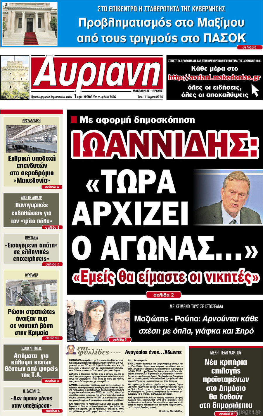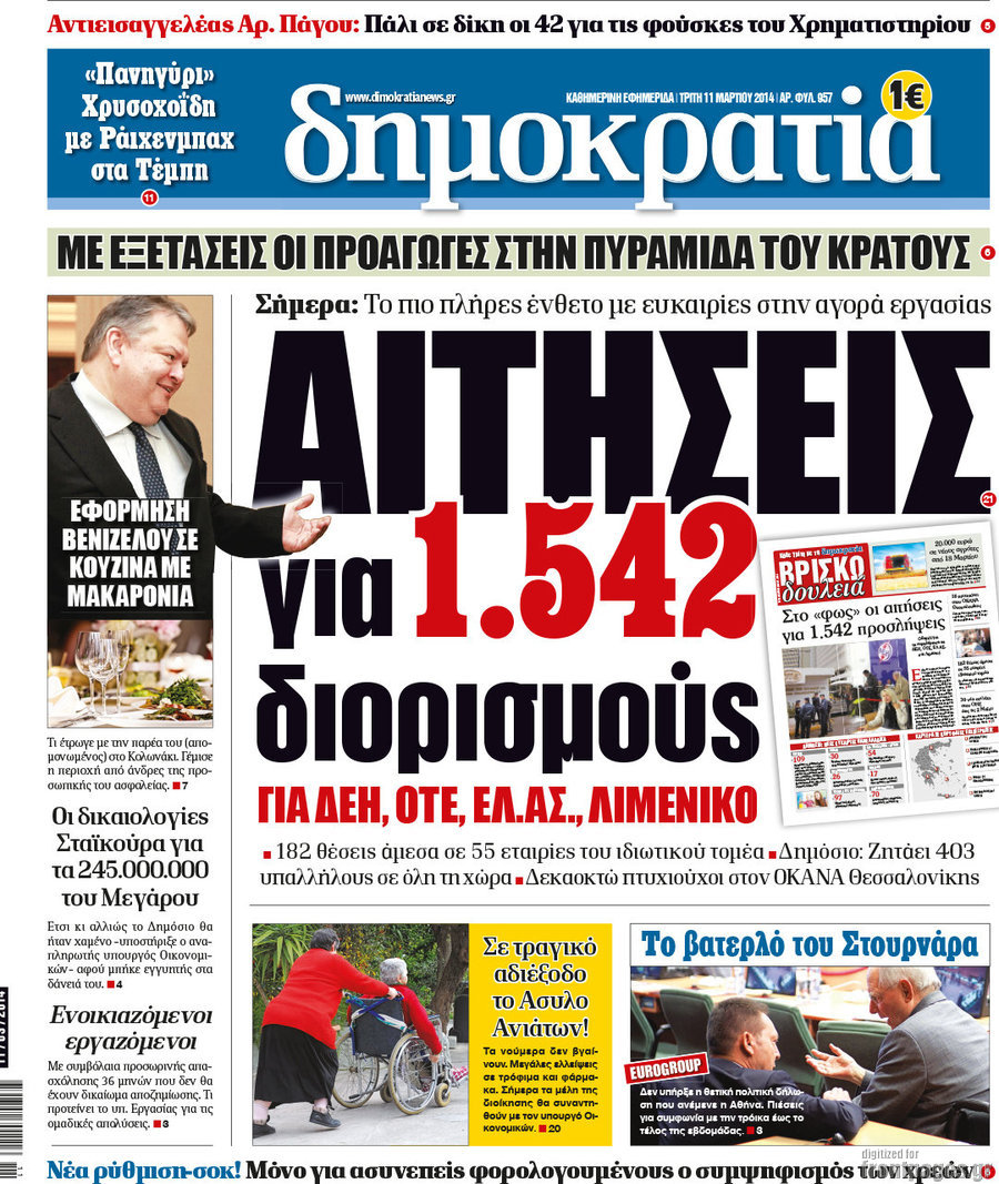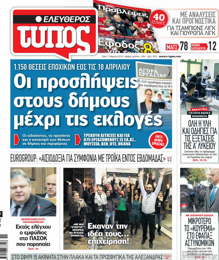 Οι πολιτικές εφημερίδες Enikos Newsroom 08:33, Τρίτη 11 Μαρτίου 2014 Media Οι πολιτικές εφημερίδες Διαβάστε τα πρωτοσέλιδα των πολιτικών εφημερίδων: ΕΦΗΜΕΡΙΔΕΣ ΠΟΛΙΤΙΚΕΣ ΕΦΗΜΕΡΙΔΕΣ ΠΡΩΤΟΣΕΛΙΔΑ Μοιράσου το: σχολίασε κι εσύ (0 σχόλια) Ακολουθήστε το enikos.gr στο Google News και μάθετε πρώτοι όλες τις ειδήσεις Δείτε όλες τις τελευταίες ειδήσεις από την Ελλάδα και τον Κόσμο στο enikos.gr Ειδήσεις Ροή Ειδήσεων 3 ώρες πριν Χριστούγεννα στα μπλόκα οι αγρότες: Άνοιξαν στα διόδια και μοίρασαν προϊόντα στους πολίτες – Νέα σύσκεψη την Κυριακή στη Νίκαια 4 ώρες πριν Κύκλωμα διακίνησης ναρκωτικών σε σχολεία: Τηλεφωνούσαν στους ανηλίκους την ώρα του μαθήματος – Οι διάλογοι-σοκ, τα «ψευδώνυμα» και τα βασανιστήρια 3 ώρες πριν Αρχεία Επστάιν: Οι 500 σελίδες που λείπουν, τα αναπάντητα ερωτήματα και οι επώνυμοι – Τι έπεται 5 ώρες πριν Ζελένσκι: Μόνο οι ΗΠΑ και ο Τραμπ μπορούν να πιέσουν τη Ρωσία να βάλει τέλος στον πόλεμο 5 ώρες πριν Φοινικούντα: Προφυλακιστέος ο 30χρονος για συνέργεια στη διπλή δολοφονία – Και άλλα πρόσωπα στο «μικροσκόπιο» 3 ώρες πριν Αποκαλύφθηκε το άγνωστο «GPS» της αρχαιότητας – Πώς οι ναοί «φώτιζαν» τον δρόμο των ναυτικών πριν από την εφεύρεση των φάρων 4 ώρες πριν Ύπνος: Η διατροφή που μπορεί να σας βοηθήσει να κοιμάστε καλύτερα και να ζήσετε περισσότερο 5 ώρες πριν Αριθμολογία: Ο αριθμός του φύλακα αγγέλου σας, με βάση τον μήνα γέννησής σας – «Έτσι σας στέλνει σημάδια το σύμπαν» 17 ώρες πριν Enerwave: Το νέο «ρεύμα» στη λιανική ενέργειας που αλλάζει την εμπειρία του καταναλωτή 24 λεπτά πριν Σεισμός 3,8 Ρίχτερ ανοιχτά της Αμοργού 39 λεπτά πριν Άννα Βίσση: Τα… Social Media «προσκύνησαν» την «απόλυτη» για την συναυλία της στο Καλλιμάρμαρο που προβλήθηκε από το Mega 53 λεπτά πριν Φωτεινή Αθερίδου: «Προσπαθώ να είμαι κάθετη και αυστηρή σαν μαμά πια» 1 ώρα πριν ΗΠΑ, Αίγυπτος, Κατάρ και Τουρκία συζήτησαν τη δεύτερη φάση του ειρηνευτικού σχεδίου για τη Γάζα 1 ώρα πριν Γιάννης Αντετοκούνμπο: Έμεινε στην 6η θέση της ψηφοφορίας του ESPN για το βραβείο του MVP του NBA ENIKOS NETWORK Οι γυναίκες αποκαλύπτουν το πιο ελκυστικό πράγμα που μπορεί να κάνει ένας άνδρας Ομορφιά και αντιγήρανση: Ειδικοί μιλούν για συσκευές περιποίησης του δέρματος «Πολεμική» προετοιμασία από την ευρωπαϊκή βιομηχανία ενέργειας – Η Eurelectric ζητεί «ομπρέλα» προστασίας για τις υποδομές Ακύρωση ΑΦΜ για απάτες – Ποιους βάζει στο στόχαστρο η ΑΑΔΕ Χαρτογραφώντας το «σημείο χωρίς επιστροφή»: Για πρώτη φορά αποκαλύπτεται με λεπτομέρεια το ακανθώδες όριο της ατμόσφαιρας τ... Η Google καταργεί τη λειτουργία «dark web report» – Πώς θα μπορούν οι χρήστες να διαγράφουν τα δεδομένα τους περισσότερα 01:30 , Κυριακή 21 Δεκεμβρίου 2025 Άννα Βίσση: Τα… Social Media «προσκύνησαν» την «απόλυτη» για την συναυλία της στο Καλλιμάρμαρο που προβλήθηκε από το Mega Την ημέρα των γενεθλίων της Άννας Βίσση, το MEGA τίμησε τη διαχρονική παρουσία της «απόλυτης Ε... 00:00 , Κυριακή 21 Δεκεμβρίου 2025 The Voice: Η επιστροφή της Έλενας Παπαρίζου και η ατάκα του Γιώργου Μαζωνάκη μετά τις καταγγελίες Στη φάση των Cross Battles Live μπήκε το The Voice, με την Έλενα Παπαρίζου να επιστρέφει στο π... 20:30 , Σάββατο 20 Δεκεμβρίου 2025 Αυτή την Κυριακή με τη Realnews: Instyle, μαζί Drive και Realnews Geopolitics Αυτή την Κυριακή με τη Realnews: Instyle, μαζί Drive και Realnews Geopolitics Instyle Η Άννα Ρ... 20:28 , Σάββατο 20 Δεκεμβρίου 2025 Ο ΑΝΤ1 γεμίζει τις γιορτές με μουσική – Ποιους καλλιτέχνες θα απολαύσουμε Φέτος στον ΑΝΤ1 γιορτάζουμε τις νύχτες μας παρέα με αγαπημένου