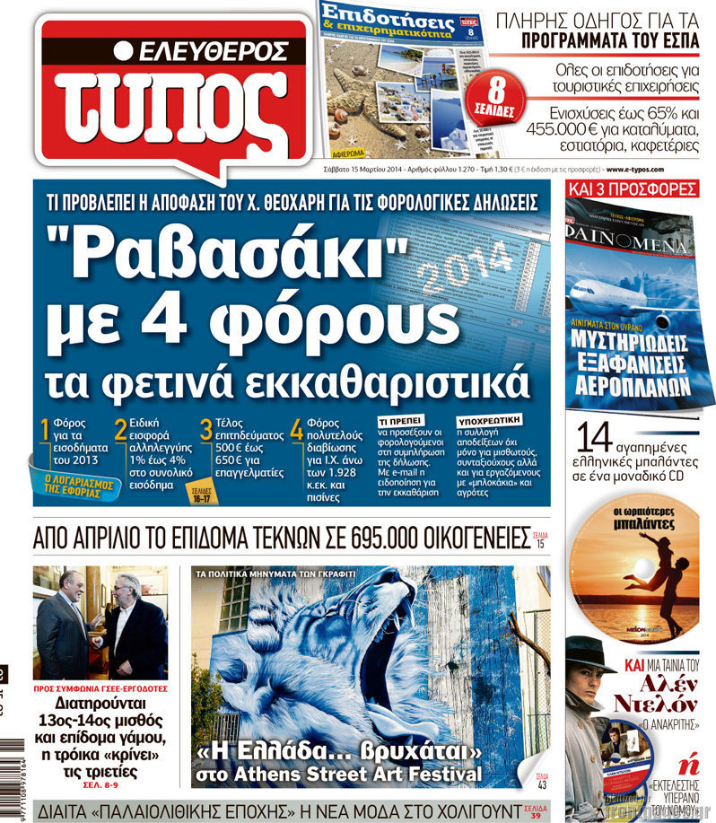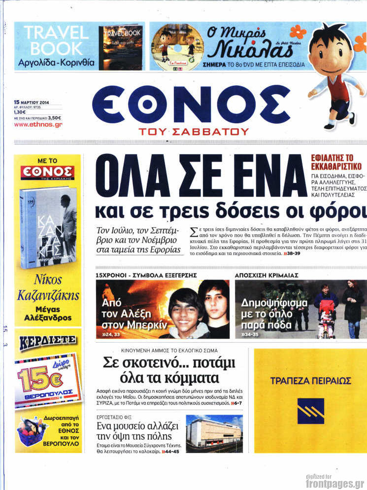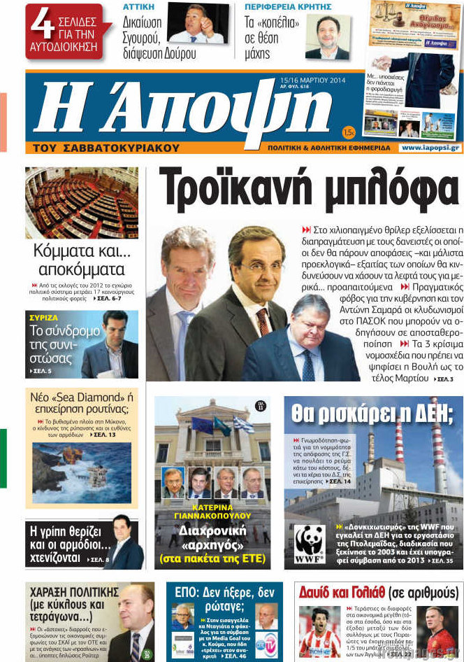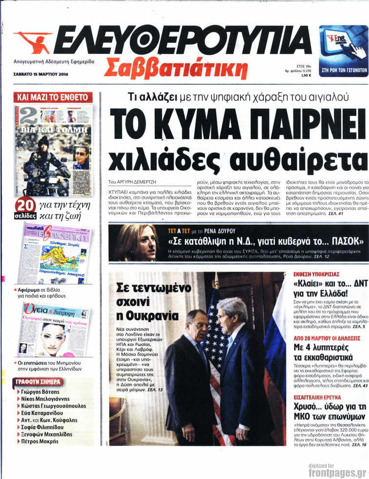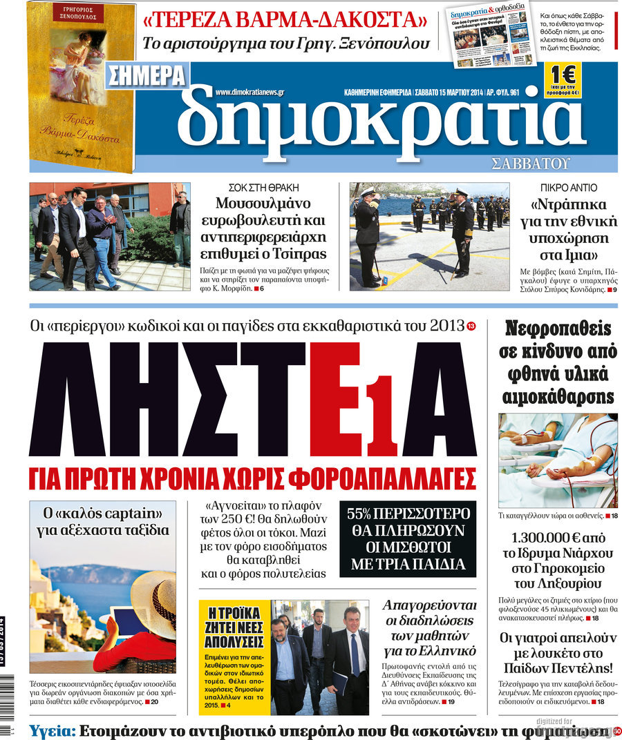 Οι πολιτικές εφημερίδες Enikos Newsroom 07:58, Σάββατο 15 Μαρτίου 2014 Media Οι πολιτικές εφημερίδες ΕΦΗΜΕΡΙΔΕΣ ΠΟΛΙΤΙΚΕΣ ΕΦΗΜΕΡΙΔΕΣ Μοιράσου το: σχολίασε κι εσύ (0 σχόλια) Ακολουθήστε το enikos.gr στο Google News και μάθετε πρώτοι όλες τις ειδήσεις Δείτε όλες τις τελευταίες ειδήσεις από την Ελλάδα και τον Κόσμο στο enikos.gr Ειδήσεις Ροή Ειδήσεων 4 ώρες πριν Από το Ορμένιο ως τα Μάλγαρα κι από τη Σιάτιστα μέχρι τη Νίκαια: Μπλόκα σε όλη την Ελλάδα – Το Σάββατο ανοίγουν τα διόδια οι αγρότες 1 ώρα πριν Εμπλοκή και αερομαχίες με οπλισμένα τουρκικά F-16 στο Αιγαίο 3 ώρες πριν Αττική: Θρίλερ με νεκρό βρέφος 5 μηνών – Κοιμόταν στο ίδιο κρεβάτι με τους γονείς του 1 ώρα πριν Πούτιν: «Ναι, είμαι ερωτευμένος» – Βίντεο από τη σπάνια προσωπική παραδοχή του 3 ώρες πριν Μεσόγειος: Η διαδρομή του ρωσικού τάνκερ «Qendil» και η στοχευμένη επίθεση της Ουκρανίας με drone – Ο Πούτιν προειδοποίησε για αντίποινα 5 ώρες πριν Τα 5 ζώδια που ευνοούνται στην ερωτική ζωή τους την επόμενη εβδομάδα – «Η ενέργεια του Αιγόκερου φέρνει αγάπη και σταθερότητα» 6 ώρες πριν Αυτό το έξυπνο μαθηματικό κόλπο θα μπορούσε να αλλάξει τον τρόπο με τον οποίο οι επιστήμονες μελετούν τους σεισμούς 2 ώρες πριν Μήπως έχετε χάσει τον εαυτό σας στη σχέση σας; 7 «αθόρυβες» υποχωρήσεις που μάλλον κάνατε, χωρίς να το συνειδητοποιήσετε 4 ώρες πριν Κουίζ για την παλιά Αθήνα: Αναγνωρίζετε την περιοχή; Έχετε περάσει 100% από εκεί 11 λεπτά πριν Μπαράκ Ομπάμα: Τα βιβλία, οι ταινίες και τα τραγούδια που ξεχώρισε το 2025 – Πλήρης λίστα 15 λεπτά πριν Don’t Forget The Lyrics: Η Έλλη Κοκκίνου υποδέχεται 4 παίκτες που θα κάνουν τα πάντα για να μη χάσουν ούτε… μισή λέξη από τους στίχους 21 λεπτά πριν Πλεύρης στον ΑΝΤ1: Η βασική πολιτική που ψηφίστηκε από τους υπουργούς Μετανάστευσης είναι η δημιουργία κέντρων κράτησης μεταναστών στην Αφρική – ΒΙΝΤΕΟ 26 λεπτά πριν Η εξομολόγηση της Νίκης Σερέτη: «Δεν κρύβω ότι ήταν πάρα πολύ δύσκολο όλο αυτό που βίωσα» 31 λεπτά πριν Αγρότες: Κλειστό ξανά το ρεύμα εισόδου στα Μάλγαρα – Άνοιξαν τον κόμβο της Χαλκηδόνας ENIKOS NETWORK Έχετε πραγματικά μεγάλη καρδιά; 10 χαρακτηριστικά όσων έχουν καλοσύνη «Η σούπερ» γρίπη εξαπλώνεται στην Ευρώπη-Στοιχεία από το ECDC για την αποτελεσματικότητα του εμβολίου Επίδομα παιδιού: Πότε ανοίγει ξανά η πλατφόρμα για τις αιτήσεις Προκήρυξη ΑΣΕΠ για 397 μόνιμες προσλήψεις στο Δημόσιο: Βγήκαν τα προσωρινά αποτελέσματα – Πότε αρχίζει η υποβολή ενστάσεων Χαρτογραφώντας το «σημείο χωρίς επιστροφή»: Για πρώτη φορά αποκαλύπτεται με λεπτομέρεια το ακανθώδες όριο της ατμόσφαιρας τ... Η Google καταργεί τη λειτουργία «dark web report» – Πώς θα μπορούν οι χρήστες να διαγράφουν τα δεδομένα τους περισσότερα 20:37 , Παρασκευή 19 Δεκεμβρίου 2025 Don’t Forget The Lyrics: Η Έλλη Κοκκίνου υποδέχεται 4 παίκτες που θα κάνουν τα πάντα για να μη χάσουν ούτε… μισή λέξη από τους στίχους Το «Don’t Forget The Lyrics» επιστρέφει απόψε, Παρασκευή 19 Δεκεμβρίου, στις 21:00 με νέο επει... 19:31 , Παρασκευή 19 Δεκεμβρίου 2025 GNTM: Απόψε ο μεγάλος τελικός για τους 4 φιναλίστ Έπειτα από μήνες γεμάτους μόδα, δημιουργία και έντονες αναμετρήσεις, το GNTM 2025 κορυφώνεται,... 18:11 , Παρασκευή 19 Δεκεμβρίου 2025 Το σόι σου: Ο Άρης έρχεται στην Ελλάδα για τις γιορτές των Χριστουγέννων – Τι θα δούμε στο αποψινό εορταστικό επεισόδιο Ένα απολαυστικό, εορταστικό επεισόδιο της σειράς “Το σόι σου”, γεμάτο ευτράπελα αλ... 15:15 , Παρασκευή 19 Δεκεμβρίου 2025 Την Κυριακή με τη Realnews: Ό,τι και αν αγοράσεις, σκανάρει