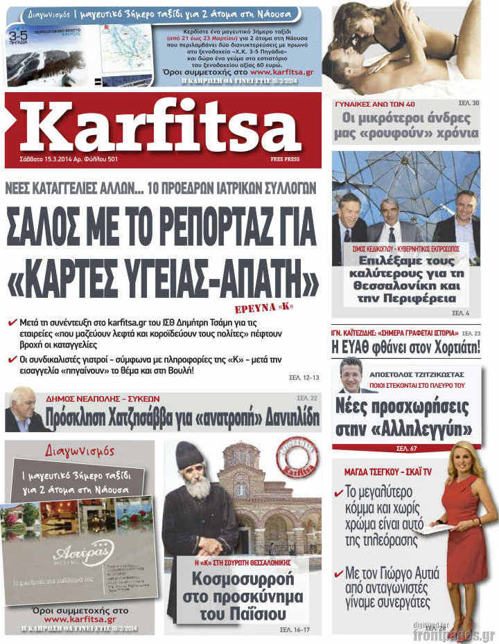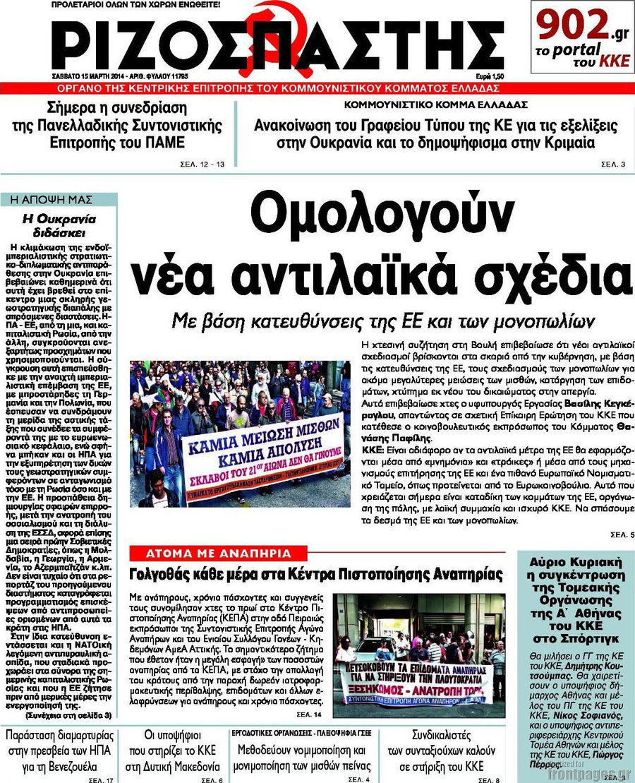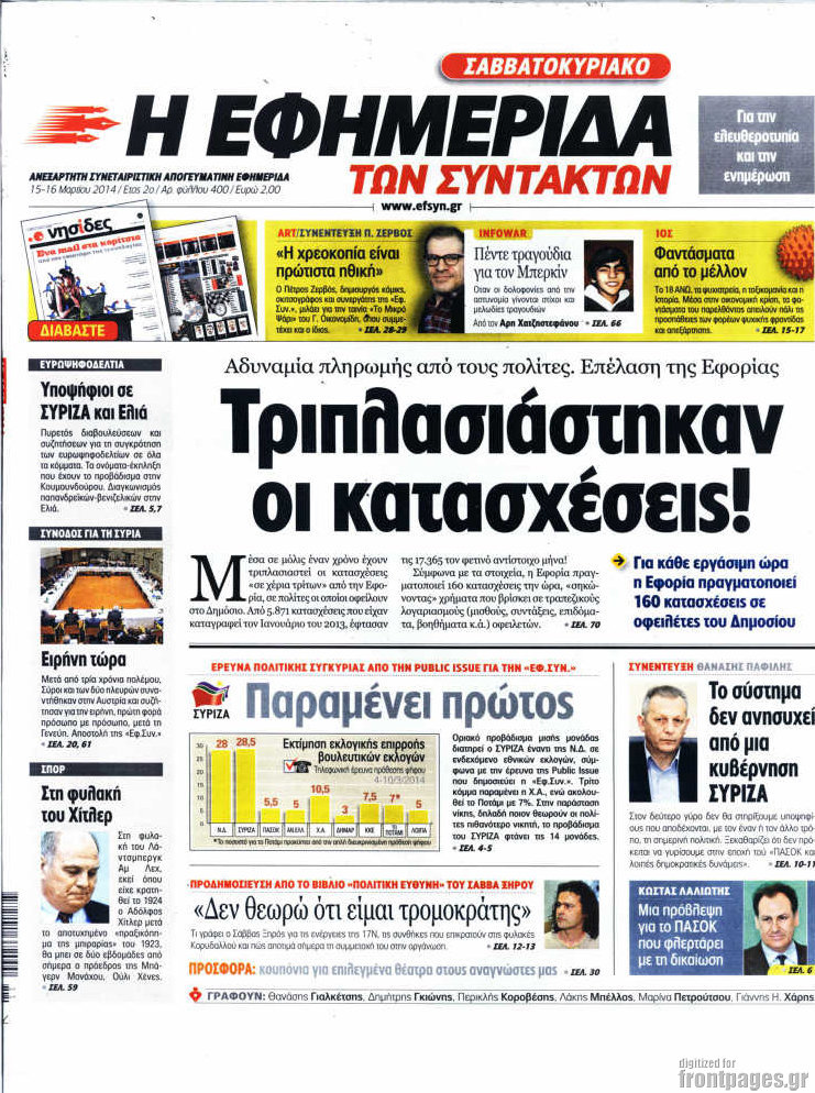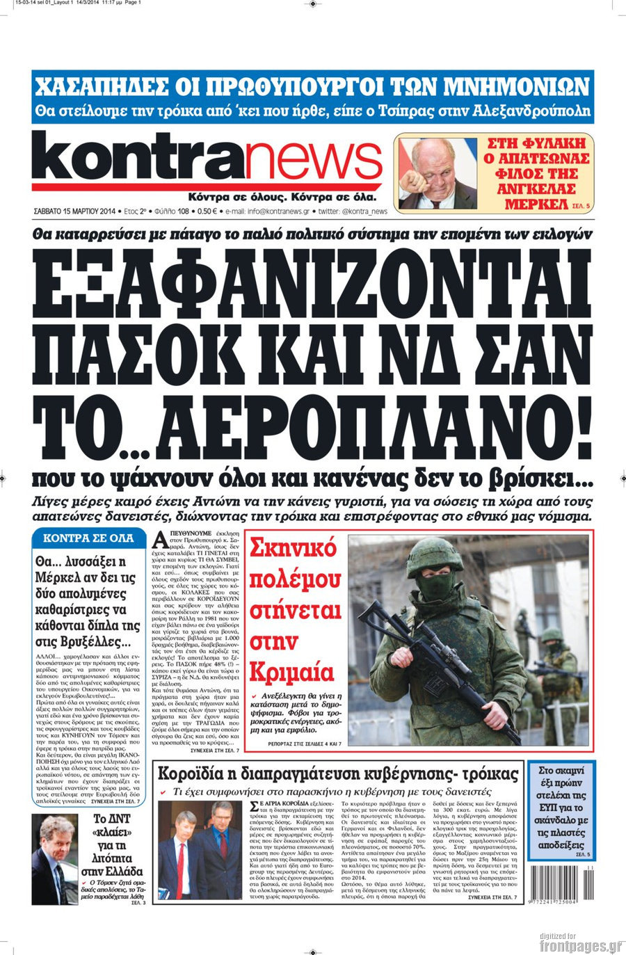 Οι πολιτικές εφημερίδες Enikos Newsroom 07:58, Σάββατο 15 Μαρτίου 2014 Media Οι πολιτικές εφημερίδες ΕΦΗΜΕΡΙΔΕΣ ΠΟΛΙΤΙΚΕΣ ΕΦΗΜΕΡΙΔΕΣ Μοιράσου το: σχολίασε κι εσύ (0 σχόλια) Ακολουθήστε το enikos.gr στο Google News και μάθετε πρώτοι όλες τις ειδήσεις Δείτε όλες τις τελευταίες ειδήσεις από την Ελλάδα και τον Κόσμο στο enikos.gr Ειδήσεις Ροή Ειδήσεων 4 ώρες πριν Από το Ορμένιο ως τα Μάλγαρα κι από τη Σιάτιστα μέχρι τη Νίκαια: Μπλόκα σε όλη την Ελλάδα – Το Σάββατο ανοίγουν τα διόδια οι αγρότες 1 ώρα πριν Εμπλοκή και αερομαχίες με οπλισμένα τουρκικά F-16 στο Αιγαίο 3 ώρες πριν Αττική: Θρίλερ με νεκρό βρέφος 5 μηνών – Κοιμόταν στο ίδιο κρεβάτι με τους γονείς του 1 ώρα πριν Πούτιν: «Ναι, είμαι ερωτευμένος» – Βίντεο από τη σπάνια προσωπική παραδοχή του 3 ώρες πριν Μεσόγειος: Η διαδρομή του ρωσικού τάνκερ «Qendil» και η στοχευμένη επίθεση της Ουκρανίας με drone – Ο Πούτιν προειδοποίησε για αντίποινα 5 ώρες πριν Τα 5 ζώδια που ευνοούνται στην ερωτική ζωή τους την επόμενη εβδομάδα – «Η ενέργεια του Αιγόκερου φέρνει αγάπη και σταθερότητα» 6 ώρες πριν Αυτό το έξυπνο μαθηματικό κόλπο θα μπορούσε να αλλάξει τον τρόπο με τον οποίο οι επιστήμονες μελετούν τους σεισμούς 2 ώρες πριν Μήπως έχετε χάσει τον εαυτό σας στη σχέση σας; 7 «αθόρυβες» υποχωρήσεις που μάλλον κάνατε, χωρίς να το συνειδητοποιήσετε 4 ώρες πριν Κουίζ για την παλιά Αθήνα: Αναγνωρίζετε την περιοχή; Έχετε περάσει 100% από εκεί 11 λεπτά πριν Μπαράκ Ομπάμα: Τα βιβλία, οι ταινίες και τα τραγούδια που ξεχώρισε το 2025 – Πλήρης λίστα 15 λεπτά πριν Don’t Forget The Lyrics: Η Έλλη Κοκκίνου υποδέχεται 4 παίκτες που θα κάνουν τα πάντα για να μη χάσουν ούτε… μισή λέξη από τους στίχους 21 λεπτά πριν Πλεύρης στον ΑΝΤ1: Η βασική πολιτική που ψηφίστηκε από τους υπουργούς Μετανάστευσης είναι η δημιουργία κέντρων κράτησης μεταναστών στην Αφρική – ΒΙΝΤΕΟ 26 λεπτά πριν Η εξομολόγηση της Νίκης Σερέτη: «Δεν κρύβω ότι ήταν πάρα πολύ δύσκολο όλο αυτό που βίωσα» 31 λεπτά πριν Αγρότες: Κλειστό ξανά το ρεύμα εισόδου στα Μάλγαρα – Άνοιξαν τον κόμβο της Χαλκηδόνας ENIKOS NETWORK Έχετε πραγματικά μεγάλη καρδιά; 10 χαρακτηριστικά όσων έχουν καλοσύνη «Η σούπερ» γρίπη εξαπλώνεται στην Ευρώπη-Στοιχεία από το ECDC για την αποτελεσματικότητα του εμβολίου Επίδομα παιδιού: Πότε ανοίγει ξανά η πλατφόρμα για τις αιτήσεις Προκήρυξη ΑΣΕΠ για 397 μόνιμες προσλήψεις στο Δημόσιο: Βγήκαν τα προσωρινά αποτελέσματα – Πότε αρχίζει η υποβολή ενστάσεων Χαρτογραφώντας το «σημείο χωρίς επιστροφή»: Για πρώτη φορά αποκαλύπτεται με λεπτομέρεια το ακανθώδες όριο της ατμόσφαιρας τ... Η Google καταργεί τη λειτουργία «dark web report» – Πώς θα μπορούν οι χρήστες να διαγράφουν τα δεδομένα τους περισσότερα 20:37 , Παρασκευή 19 Δεκεμβρίου 2025 Don’t Forget The Lyrics: Η Έλλη Κοκκίνου υποδέχεται 4 παίκτες που θα κάνουν τα πάντα για να μη χάσουν ούτε… μισή λέξη από τους στίχους Το «Don’t Forget The Lyrics» επιστρέφει απόψε, Παρασκευή 19 Δεκεμβρίου, στις 21:00 με νέο επει... 19:31 , Παρασκευή 19 Δεκεμβρίου 2025 GNTM: Απόψε ο μεγάλος τελικός για τους 4 φιναλίστ Έπειτα από μήνες γεμάτους μόδα, δημιουργία και έντονες αναμετρήσεις, το GNTM 2025 κορυφώνεται,... 18:11 , Παρασκευή 19 Δεκεμβρίου 2025 Το σόι σου: Ο Άρης έρχεται στην Ελλάδα για τις γιορτές των Χριστουγέννων – Τι θα δούμε στο αποψινό εορταστικό επεισόδιο Ένα απολαυστικό, εορταστικό επεισόδιο της σειράς “Το σόι σου”, γεμάτο ευτράπελα αλ... 15:15 , Παρασκευή 19 Δεκεμβρίου 2025 Την Κυριακή με τη Realnews: Ό,τι και αν αγοράσεις, σκανάρει