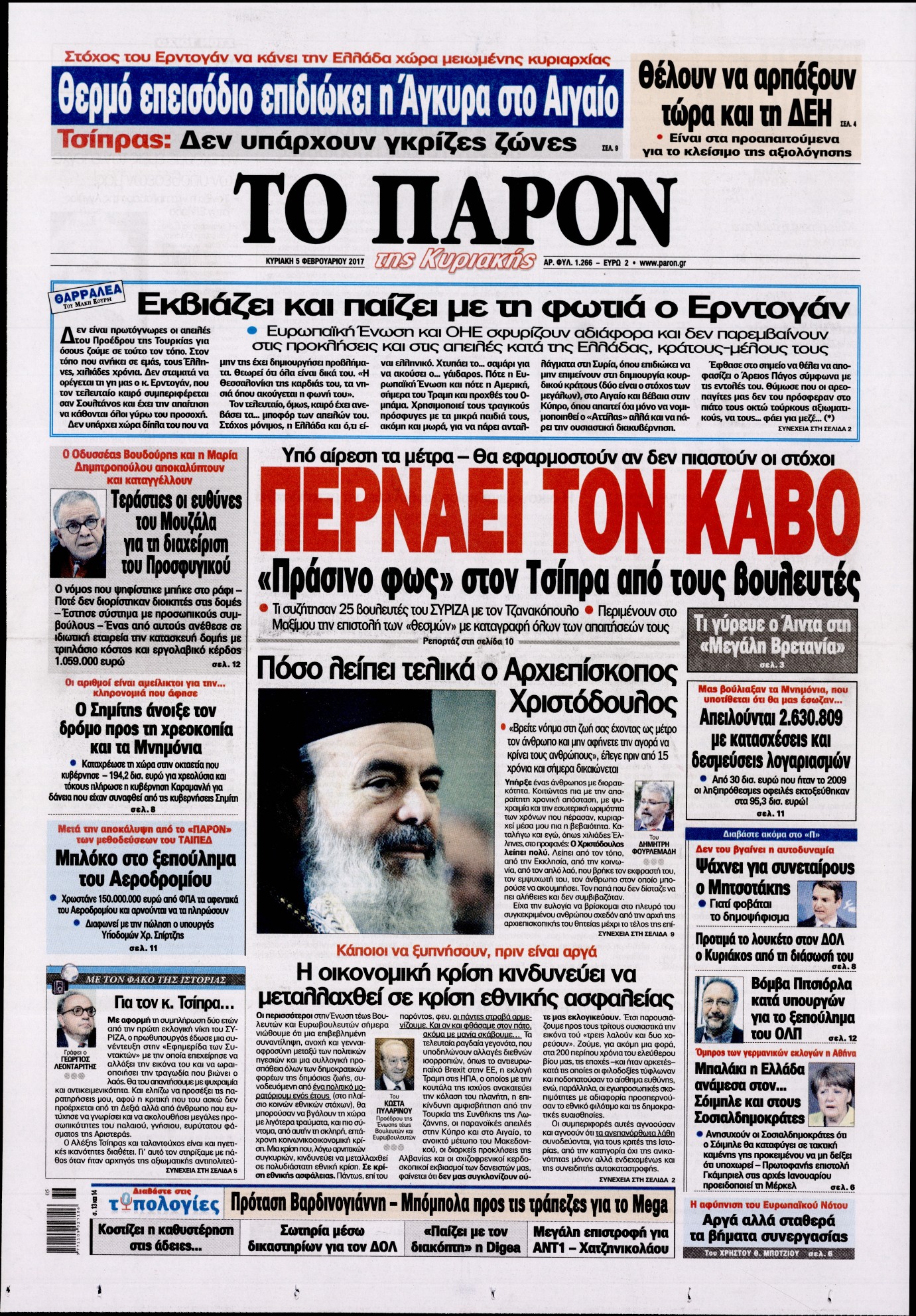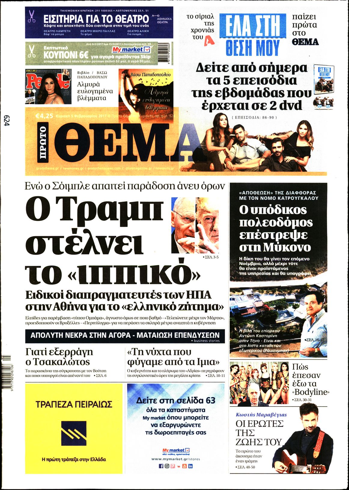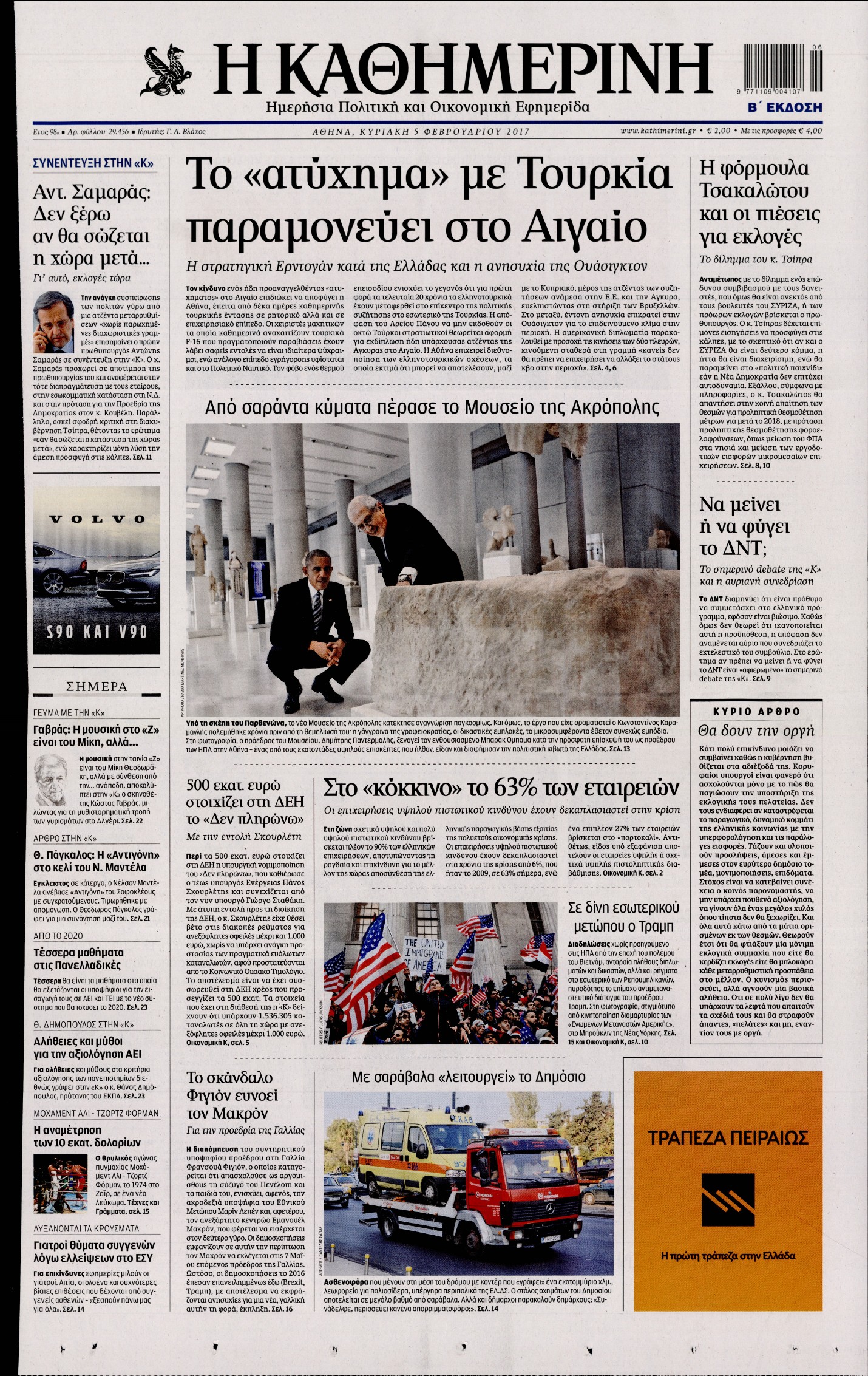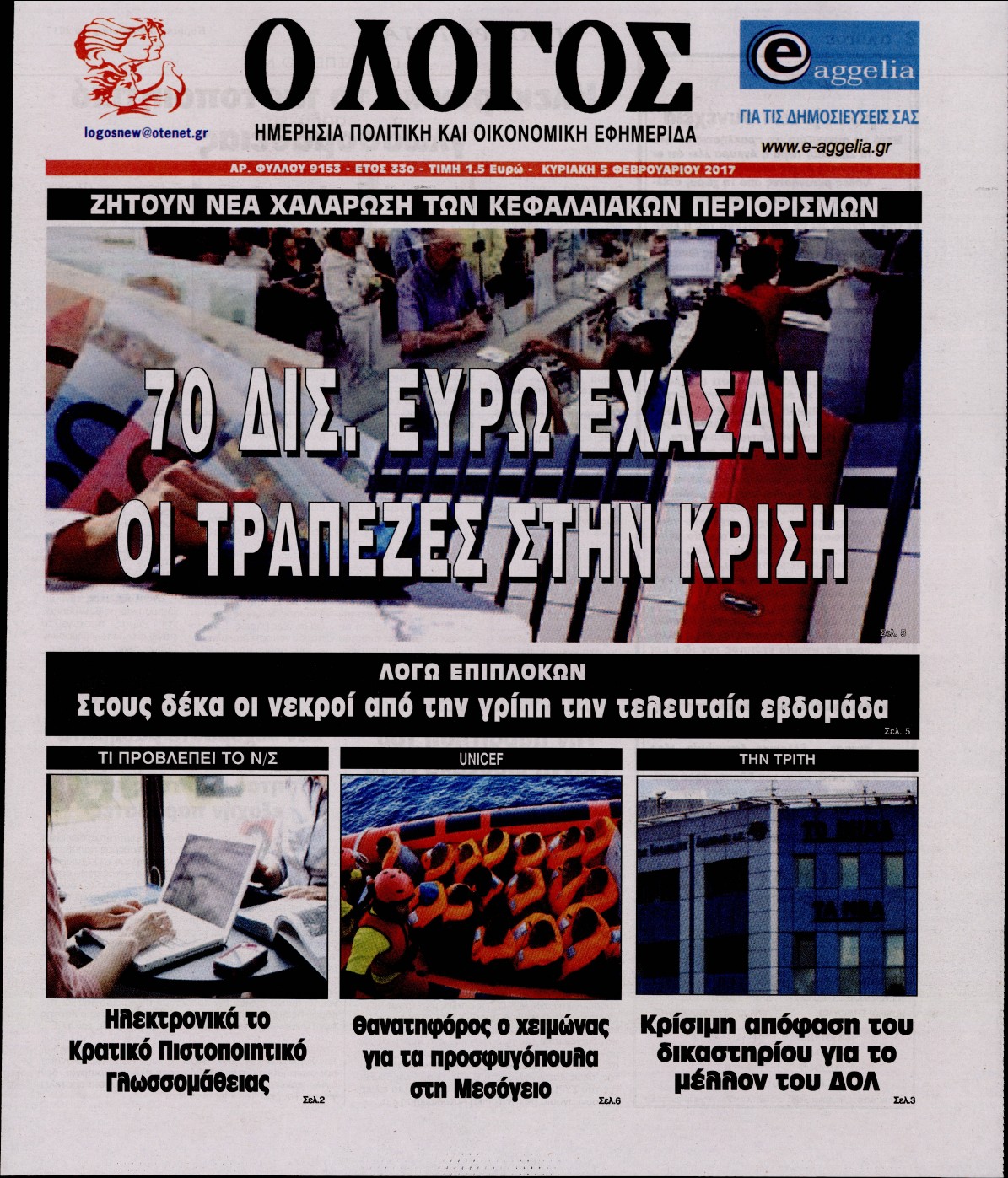 Οι πολιτικές εφημερίδες 5/2/2017 Enikos Newsroom 01:35, Κυριακή 05 Φεβρουαρίου 2017 Media Διαβάστε τα σημερινά πρωτοσέλιδα των πολιτικών εφημερίδων: ΠΟΛΙΤΙΚΕΣ ΕΦΗΜΕΡΙΔΕΣ ΠΡΩΤΟΣΕΛΙΔΑ Μοιράσου το: σχολίασε κι εσύ (0 σχόλια) Ακολουθήστε το enikos.gr στο Google News και μάθετε πρώτοι όλες τις ειδήσεις Δείτε όλες τις τελευταίες ειδήσεις από την Ελλάδα και τον Κόσμο στο enikos.gr Ειδήσεις Ροή Ειδήσεων 3 ώρες πριν Υπόθεση Έπσταϊν: Το Υπουργείο Δικαιοσύνης δημοσιοποίησε μια σειρά από εξαιρετικά επεξεργασμένα αρχεία – «Λείπουν τα πιο σημαντικά έγγραφα», λένε οι Δημοκρατικοί 23 λεπτά πριν Γιορτές με μπλόκα για τους αγρότες: Ανοίγουν διόδια και μοιράζουν προϊόντα στους ταξιδιώτες 56 λεπτά πριν Εξαφάνιση 33χρονου γιατρού στην Κρήτη: «Άναψα τα φώτα, τρόμαξε και άρχισε να τρέχει στα χωράφια» – Η τελευταία διαδρομή και η μαρτυρία «κλειδί» 2 ώρες πριν Ο «χάρτης» με τις αυξήσεις και τις φοροελαφρύνσεις του 2026 – Ποιοι και πόσα κερδίζουν 39 λεπτά πριν Τα αρχεία του Έπσταϊν αποκαλύπτουν φωτογραφία του έκπτωτου πρίγκιπα Άντριου – Είναι ξαπλωμένος στην αγκαλιά 5 γυναικών 46 λεπτά πριν Μία νέα «χρυσή» περίοδος αρχίζει για 3 ζώδια από σήμερα – «Μία αναπάντεχη ευκαιρία οδηγεί στην επιτυχία» 5 ώρες πριν Αυγά: Πόσα μπορείτε να τρώτε την ημέρα με ασφάλεια για μέγιστη πρόσληψη πρωτεΐνης 3 ώρες πριν Αρχαιολόγοι ανακάλυψαν σε χωράφι απεικόνιση 600 ετών ενός Αγίου – Τα στοιχεία που δείχνουν ότι μαρτύρησε 2 ώρες πριν Αγχώνεται για το χριστουγεννιάτικο δώρο που πήρε στην πλούσια σύντροφό του – «Φοβάμαι πως θα το βρει φθηνιάρικο, φοράει βραχιόλια Cartier» 7 λεπτά πριν Πώς η κλιματική αλλαγή επηρεάζει εγκύους και βρέφη – Οι επιπτώσεις των υψηλών θερμοκρασιών 15 λεπτά πριν e-ΕΦΚΑ και ΔΥΠΑ: Οι πληρωμές από 22 έως 24 Δεκεμβρίου – Ποιοι θα δουν χρήματα στους λογαριασμούς τους 23 λεπτά πριν Συνελήφθη οδηγός μηχανής που έτρεχε με 161 χλμ στη Συγγρού – Τον έπιασε το ραντάρ της Τροχαίας 23 λεπτά πριν Γιορτές με μπλόκα για τους αγρότες: Ανοίγουν διόδια και μοιράζουν προϊόντα στους ταξιδιώτες 32 λεπτά πριν Τηλεθέαση (19/12): Κυριάρχησε η σειρά «Το σόι σου» – Τι νούμερα έκανε ο τελικός του GNTM ENIKOS NETWORK Είστε μόνιμα απρόσεκτοι; 3 σημάδια που δείχνουν ότι μπορεί να είναι σύμπτωμα πάθησης Πόσα κιλά παίρνουμε πραγματικά τα Χριστούγεννα, σύμφωνα με την επιστήμη – Πώς να το αποτρέψουμε; Επίδομα παιδιού: Τι αλλάζει από το 2026 – Το όφελος από τις φορολογικές ελαφρύνσεις Mega χριστουγεννιάτικη φορολοταρία: «Κλείδωσε» η ημερομηνία για την κλήρωση – Ερωτήσεις και απαντήσεις Χαρτογραφώντας το «σημείο χωρίς επιστροφή»: Για πρώτη φορά αποκαλύπτεται με λεπτομέρεια το ακανθώδες όριο της ατμόσφαιρας τ... Η Google καταργεί τη λειτουργία «dark web report» – Πώς θα μπορούν οι χρήστες να διαγράφουν τα δεδομένα τους περισσότερα 09:30 , Σάββατο 20 Δεκεμβρίου 2025 «Porto Leone: Στη γειτονιά με τα κόκκινα φανάρια» – Ο Χρόνης αποκαλύπτει στην Αλεξάνδρα το μυστικό για το παιδί της Λένας Η μεγάλη δραματική σειρά του Apha «Porto Leone: Στη γειτονιά με τα κόκκινα φανάρια» μας μεταφέ... 08:14 , Σάββατο 20 Δεκεμβρίου 2025 Τρομεροί γονείς: Η Μαρία Καβογιάννη εισβάλλει στο σπίτι της οικογένειας Στεφανίδη Όσα θα δούμε στο νέο διπλό επεισόδιο της σειράς «Τρομεροί γονείς», σήμερα Σάββατο 20 Δεκεμβρίο... 05:48 , Σάββατο 20 Δεκεμβρίου 2025 Οι οικονομικές εφημερίδες 20/12/2025 Διαβάστε τα πρωτοσέλιδα από τις οικονομικές εφημερίδες, σήμερα 20/12/2025. 05:43 , Σάββατο 20 Δεκεμβρίου 2025 Οι αθλητικές εφημερίδες 20/12/2025 Διαβά