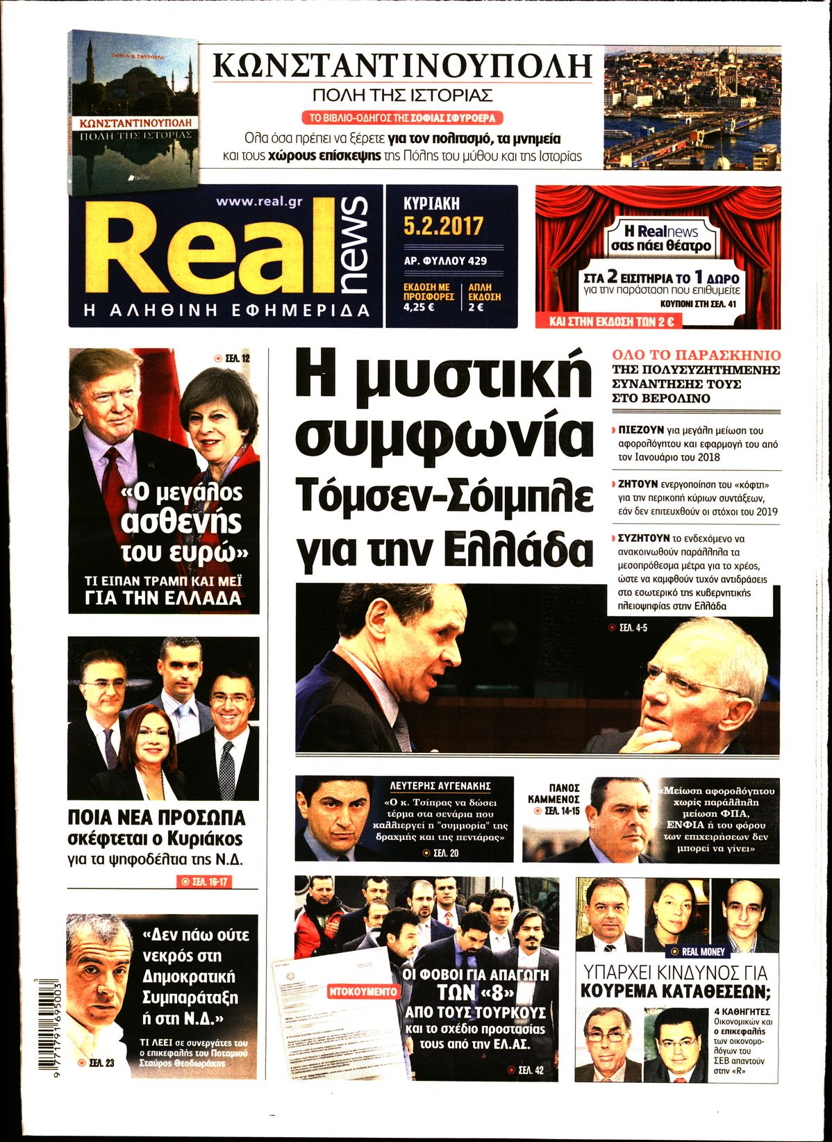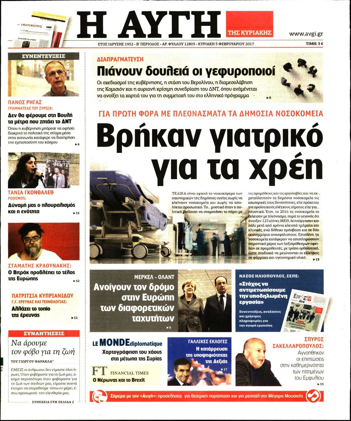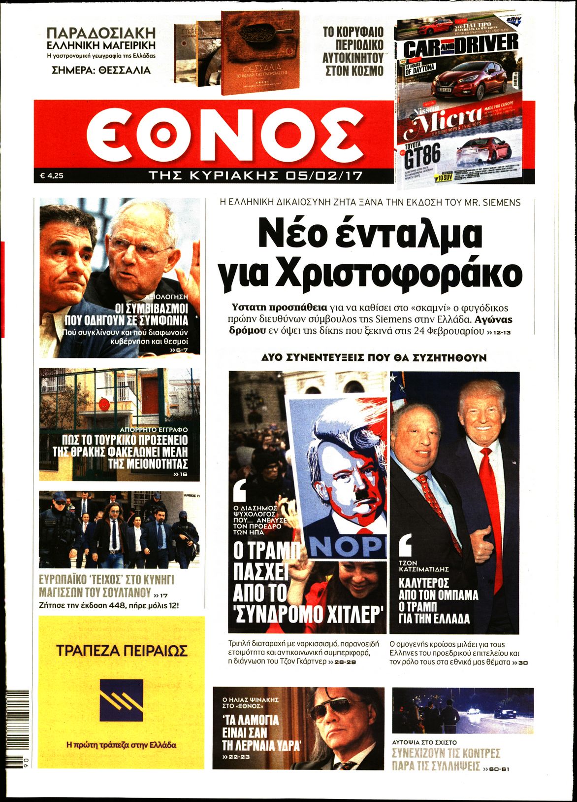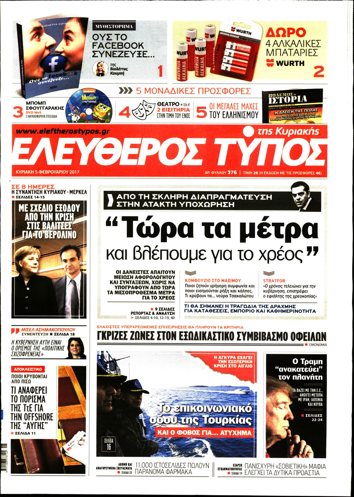 Οι πολιτικές εφημερίδες 5/2/2017 Enikos Newsroom 01:35, Κυριακή 05 Φεβρουαρίου 2017 Media Διαβάστε τα σημερινά πρωτοσέλιδα των πολιτικών εφημερίδων: ΠΟΛΙΤΙΚΕΣ ΕΦΗΜΕΡΙΔΕΣ ΠΡΩΤΟΣΕΛΙΔΑ Μοιράσου το: σχολίασε κι εσύ (0 σχόλια) Ακολουθήστε το enikos.gr στο Google News και μάθετε πρώτοι όλες τις ειδήσεις Δείτε όλες τις τελευταίες ειδήσεις από την Ελλάδα και τον Κόσμο στο enikos.gr Ειδήσεις Ροή Ειδήσεων 3 ώρες πριν Υπόθεση Έπσταϊν: Το Υπουργείο Δικαιοσύνης δημοσιοποίησε μια σειρά από εξαιρετικά επεξεργασμένα αρχεία – «Λείπουν τα πιο σημαντικά έγγραφα», λένε οι Δημοκρατικοί 23 λεπτά πριν Γιορτές με μπλόκα για τους αγρότες: Ανοίγουν διόδια και μοιράζουν προϊόντα στους ταξιδιώτες 56 λεπτά πριν Εξαφάνιση 33χρονου γιατρού στην Κρήτη: «Άναψα τα φώτα, τρόμαξε και άρχισε να τρέχει στα χωράφια» – Η τελευταία διαδρομή και η μαρτυρία «κλειδί» 2 ώρες πριν Ο «χάρτης» με τις αυξήσεις και τις φοροελαφρύνσεις του 2026 – Ποιοι και πόσα κερδίζουν 39 λεπτά πριν Τα αρχεία του Έπσταϊν αποκαλύπτουν φωτογραφία του έκπτωτου πρίγκιπα Άντριου – Είναι ξαπλωμένος στην αγκαλιά 5 γυναικών 46 λεπτά πριν Μία νέα «χρυσή» περίοδος αρχίζει για 3 ζώδια από σήμερα – «Μία αναπάντεχη ευκαιρία οδηγεί στην επιτυχία» 5 ώρες πριν Αυγά: Πόσα μπορείτε να τρώτε την ημέρα με ασφάλεια για μέγιστη πρόσληψη πρωτεΐνης 3 ώρες πριν Αρχαιολόγοι ανακάλυψαν σε χωράφι απεικόνιση 600 ετών ενός Αγίου – Τα στοιχεία που δείχνουν ότι μαρτύρησε 2 ώρες πριν Αγχώνεται για το χριστουγεννιάτικο δώρο που πήρε στην πλούσια σύντροφό του – «Φοβάμαι πως θα το βρει φθηνιάρικο, φοράει βραχιόλια Cartier» 7 λεπτά πριν Πώς η κλιματική αλλαγή επηρεάζει εγκύους και βρέφη – Οι επιπτώσεις των υψηλών θερμοκρασιών 15 λεπτά πριν e-ΕΦΚΑ και ΔΥΠΑ: Οι πληρωμές από 22 έως 24 Δεκεμβρίου – Ποιοι θα δουν χρήματα στους λογαριασμούς τους 23 λεπτά πριν Συνελήφθη οδηγός μηχανής που έτρεχε με 161 χλμ στη Συγγρού – Τον έπιασε το ραντάρ της Τροχαίας 23 λεπτά πριν Γιορτές με μπλόκα για τους αγρότες: Ανοίγουν διόδια και μοιράζουν προϊόντα στους ταξιδιώτες 32 λεπτά πριν Τηλεθέαση (19/12): Κυριάρχησε η σειρά «Το σόι σου» – Τι νούμερα έκανε ο τελικός του GNTM ENIKOS NETWORK Είστε μόνιμα απρόσεκτοι; 3 σημάδια που δείχνουν ότι μπορεί να είναι σύμπτωμα πάθησης Πόσα κιλά παίρνουμε πραγματικά τα Χριστούγεννα, σύμφωνα με την επιστήμη – Πώς να το αποτρέψουμε; Επίδομα παιδιού: Τι αλλάζει από το 2026 – Το όφελος από τις φορολογικές ελαφρύνσεις Mega χριστουγεννιάτικη φορολοταρία: «Κλείδωσε» η ημερομηνία για την κλήρωση – Ερωτήσεις και απαντήσεις Χαρτογραφώντας το «σημείο χωρίς επιστροφή»: Για πρώτη φορά αποκαλύπτεται με λεπτομέρεια το ακανθώδες όριο της ατμόσφαιρας τ... Η Google καταργεί τη λειτουργία «dark web report» – Πώς θα μπορούν οι χρήστες να διαγράφουν τα δεδομένα τους περισσότερα 09:30 , Σάββατο 20 Δεκεμβρίου 2025 «Porto Leone: Στη γειτονιά με τα κόκκινα φανάρια» – Ο Χρόνης αποκαλύπτει στην Αλεξάνδρα το μυστικό για το παιδί της Λένας Η μεγάλη δραματική σειρά του Apha «Porto Leone: Στη γειτονιά με τα κόκκινα φανάρια» μας μεταφέ... 08:14 , Σάββατο 20 Δεκεμβρίου 2025 Τρομεροί γονείς: Η Μαρία Καβογιάννη εισβάλλει στο σπίτι της οικογένειας Στεφανίδη Όσα θα δούμε στο νέο διπλό επεισόδιο της σειράς «Τρομεροί γονείς», σήμερα Σάββατο 20 Δεκεμβρίο... 05:48 , Σάββατο 20 Δεκεμβρίου 2025 Οι οικονομικές εφημερίδες 20/12/2025 Διαβάστε τα πρωτοσέλιδα από τις οικονομικές εφημερίδες, σήμερα 20/12/2025. 05:43 , Σάββατο 20 Δεκεμβρίου 2025 Οι αθλητικές εφημερίδες 20/12/2025 Διαβά