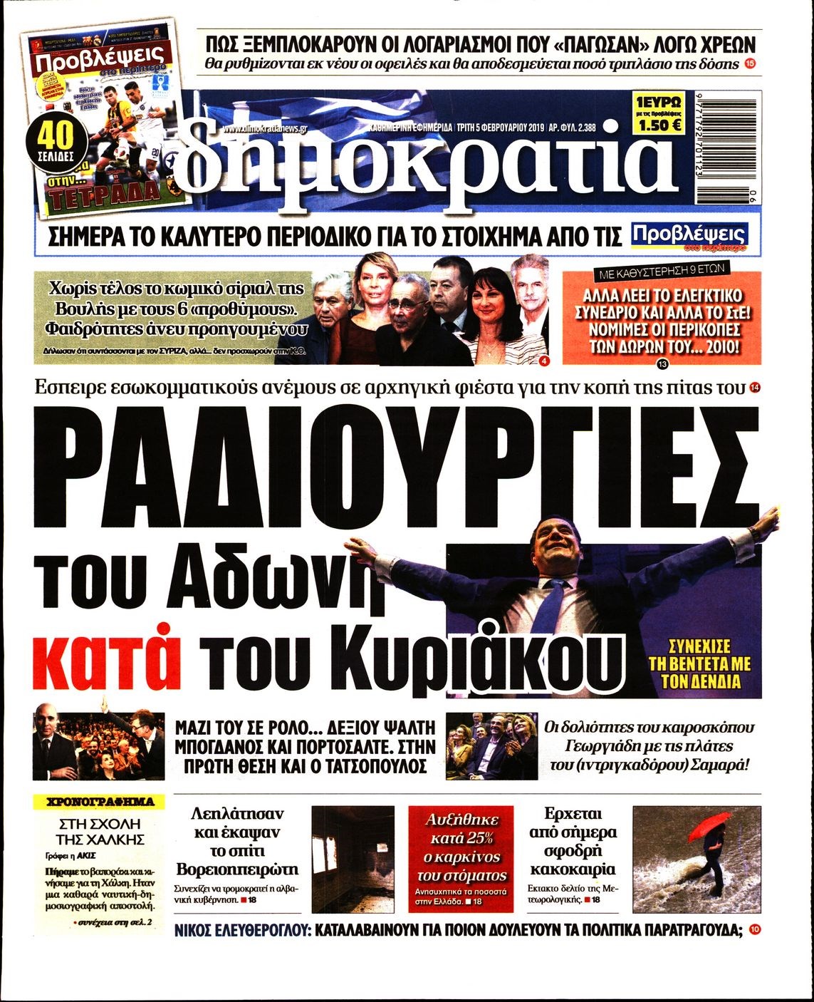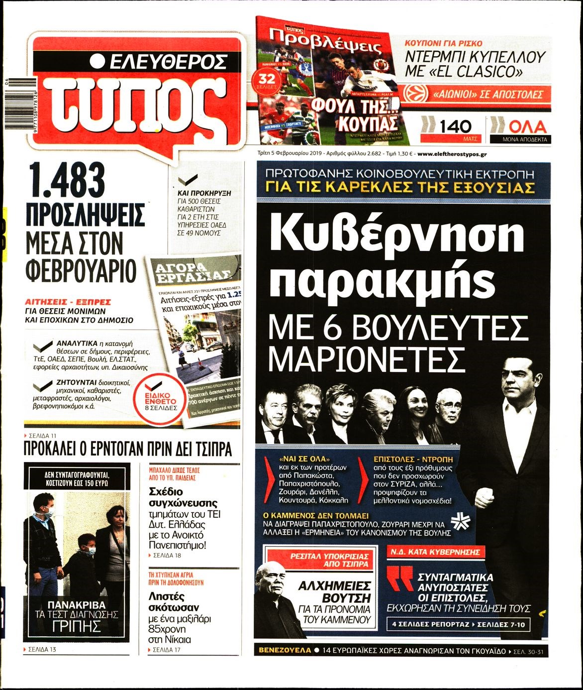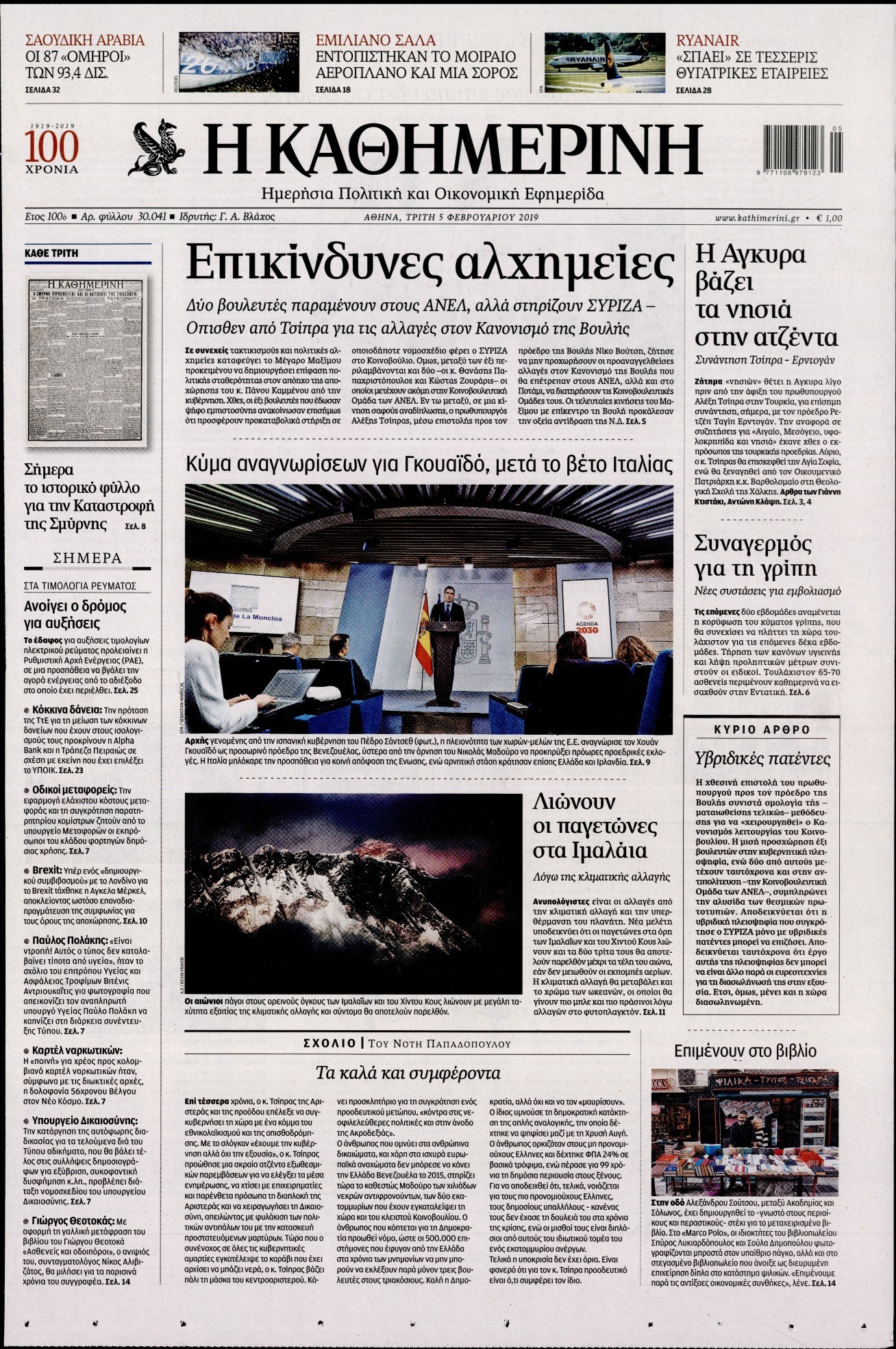 Οι πολιτικές εφημερίδες 5/2/2019 Κώστας Τεό 06:09, Τρίτη 05 Φεβρουαρίου 2019 Media Διαβάστε τα πρωτοσέλιδα των πολιτικών εφημερίδων: ΠΟΛΙΤΙΚΕΣ ΕΦΗΜΕΡΙΔΕΣ ΠΡΩΤΟΣΕΛΙΔΑ Μοιράσου το: σχολίασε κι εσύ (0 σχόλια) Ακολουθήστε το enikos.gr στο Google News και μάθετε πρώτοι όλες τις ειδήσεις Δείτε όλες τις τελευταίες ειδήσεις από την Ελλάδα και τον Κόσμο στο enikos.gr Ειδήσεις Ροή Ειδήσεων 4 ώρες πριν Χριστούγεννα στα μπλόκα οι αγρότες: Άνοιξαν στα διόδια και μοίρασαν προϊόντα στους πολίτες – Νέα σύσκεψη την Κυριακή στη Νίκαια 4 ώρες πριν Κύκλωμα διακίνησης ναρκωτικών σε σχολεία: Τηλεφωνούσαν στους ανηλίκους την ώρα του μαθήματος – Οι διάλογοι-σοκ, τα «ψευδώνυμα» και τα βασανιστήρια 4 ώρες πριν Αρχεία Επστάιν: Οι 500 σελίδες που λείπουν, τα αναπάντητα ερωτήματα και οι επώνυμοι – Τι έπεται 5 ώρες πριν Ζελένσκι: Μόνο οι ΗΠΑ και ο Τραμπ μπορούν να πιέσουν τη Ρωσία να βάλει τέλος στον πόλεμο 6 ώρες πριν Φοινικούντα: Προφυλακιστέος ο 30χρονος για συνέργεια στη διπλή δολοφονία – Και άλλα πρόσωπα στο «μικροσκόπιο» 4 ώρες πριν Αποκαλύφθηκε το άγνωστο «GPS» της αρχαιότητας – Πώς οι ναοί «φώτιζαν» τον δρόμο των ναυτικών πριν από την εφεύρεση των φάρων 5 ώρες πριν Ύπνος: Η διατροφή που μπορεί να σας βοηθήσει να κοιμάστε καλύτερα και να ζήσετε περισσότερο 6 ώρες πριν Αριθμολογία: Ο αριθμός του φύλακα αγγέλου σας, με βάση τον μήνα γέννησής σας – «Έτσι σας στέλνει σημάδια το σύμπαν» 18 ώρες πριν Enerwave: Το νέο «ρεύμα» στη λιανική ενέργειας που αλλάζει την εμπειρία του καταναλωτή 16 λεπτά πριν Δυτική Όχθη: Δύο Παλαιστίνιοι νεκροί από σφαίρες του Ισραηλινού στρατού 32 λεπτά πριν Ένοχος ο 54χρονος «ερευνητής» που έταζε ότι θα εντοπίσει τον αγνοούμενο γιατρό από την Κρήτη – «Μας γέμισε φρούδες ελπίδες», λέει ο πατέρας του 33χρονου 47 λεπτά πριν Σεισμός 3,8 Ρίχτερ ανοιχτά της Αμοργού 1 ώρα πριν Άννα Βίσση: Τα… Social Media «προσκύνησαν» την «απόλυτη» για την συναυλία της στο Καλλιμάρμαρο που προβλήθηκε από το Mega 1 ώρα πριν Φωτεινή Αθερίδου: «Προσπαθώ να είμαι κάθετη και αυστηρή σαν μαμά πια» ENIKOS NETWORK Οι γυναίκες αποκαλύπτουν το πιο ελκυστικό πράγμα που μπορεί να κάνει ένας άνδρας Ομορφιά και αντιγήρανση: Ειδικοί μιλούν για συσκευές περιποίησης του δέρματος «Πολεμική» προετοιμασία από την ευρωπαϊκή βιομηχανία ενέργειας – Η Eurelectric ζητεί «ομπρέλα» προστασίας για τις υποδομές Ακύρωση ΑΦΜ για απάτες – Ποιους βάζει στο στόχαστρο η ΑΑΔΕ Χαρτογραφώντας το «σημείο χωρίς επιστροφή»: Για πρώτη φορά αποκαλύπτεται με λεπτομέρεια το ακανθώδες όριο της ατμόσφαιρας τ... Η Google καταργεί τη λειτουργία «dark web report» – Πώς θα μπορούν οι χρήστες να διαγράφουν τα δεδομένα τους περισσότερα 01:30 , Κυριακή 21 Δεκεμβρίου 2025 Άννα Βίσση: Τα… Social Media «προσκύνησαν» την «απόλυτη» για την συναυλία της στο Καλλιμάρμαρο που προβλήθηκε από το Mega Την ημέρα των γενεθλίων της Άννας Βίσση, το MEGA τίμησε τη διαχρονική παρουσία της «απόλυτης Ε... 00:00 , Κυριακή 21 Δεκεμβρίου 2025 The Voice: Η επιστροφή της Έλενας Παπαρίζου και η ατάκα του Γιώργου Μαζωνάκη μετά τις καταγγελίες Στη φάση των Cross Battles Live μπήκε το The Voice, με την Έλενα Παπαρίζου να επιστρέφει στο π... 20:30 , Σάββατο 20 Δεκεμβρίου 2025 Αυτή την Κυριακή με τη Realnews: Instyle, μαζί Drive και Realnews Geopolitics Αυτή την Κυριακή με τη Realnews: Instyle, μαζί Drive και Realnews Geopolitics Instyle Η Άννα Ρ... 20:28 , Σάββατο 20 Δεκεμβρίου 2025 Ο ΑΝΤ1 γεμίζει τις γιορτές με μουσική – Ποιους καλλιτέχνες θα απολαύσουμε Φέτος στον ΑΝΤ1 γιορτάζουμε τις νύχτες μας παρέα μ