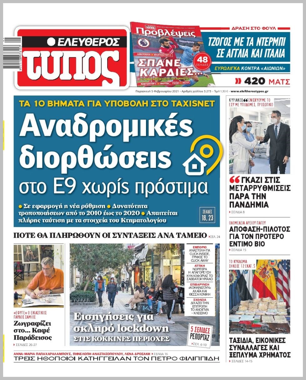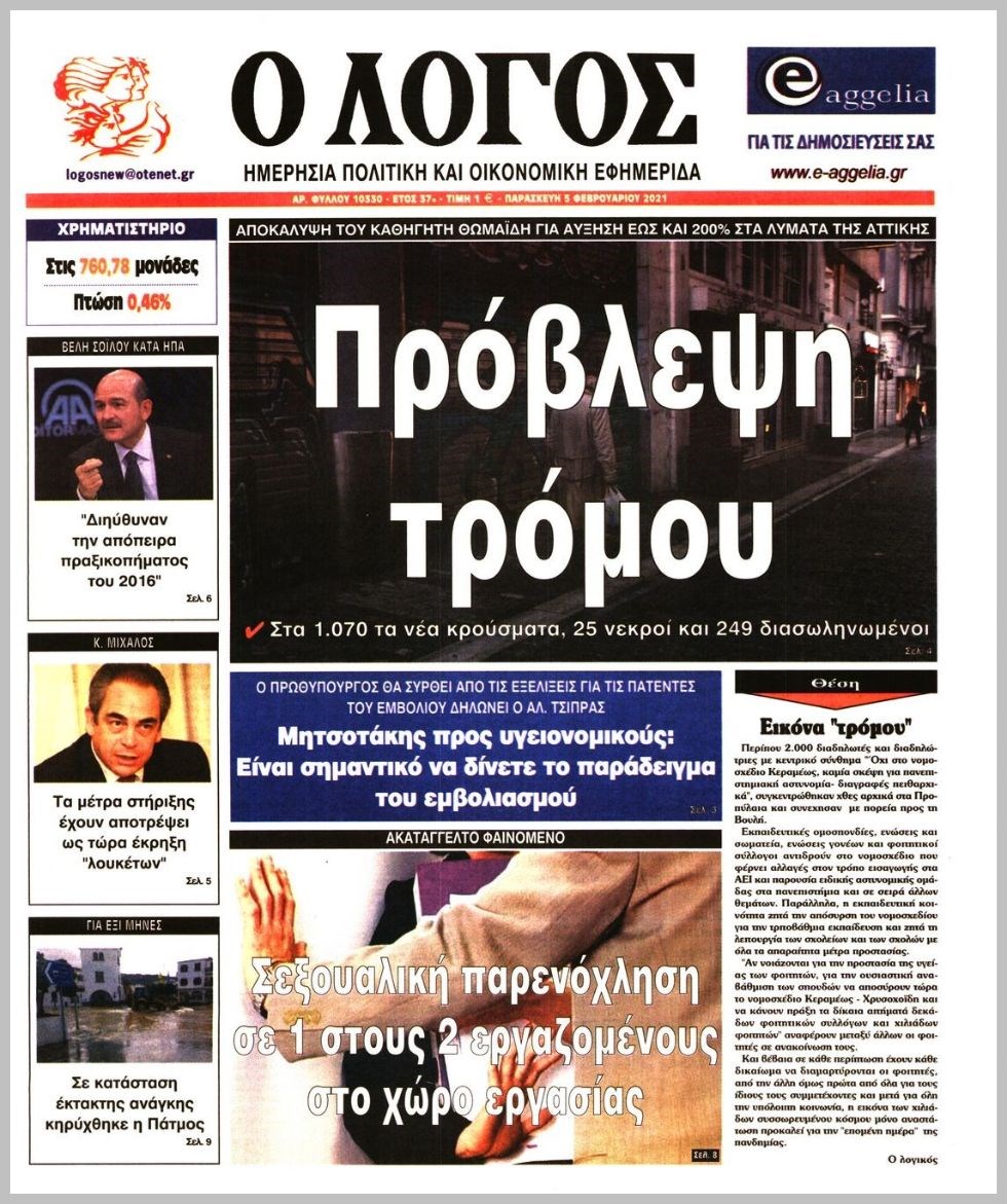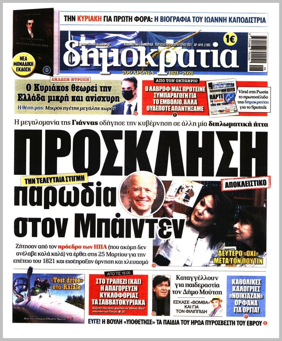 Οι πολιτικές εφημερίδες 5/2/2021 Διονύσης Νίκκας 06:13, Παρασκευή 05 Φεβρουαρίου 2021 Media Διαβάστε τα πρωτοσέλιδα των πολιτικών εφημερίδων… ΕΦΗΜΕΡΙΔΕΣ ΠΟΛΙΤΙΚΕΣ ΕΦΗΜΕΡΙΔΕΣ ΠΡΩΤΟΣΕΛΙΔΑ Μοιράσου το: σχολίασε κι εσύ (0 σχόλια) Ακολουθήστε το enikos.gr στο Google News και μάθετε πρώτοι όλες τις ειδήσεις Δείτε όλες τις τελευταίες ειδήσεις από την Ελλάδα και τον Κόσμο στο enikos.gr Ειδήσεις Ροή Ειδήσεων 4 ώρες πριν Πώς δρούσε το κύκλωμα που διακινούσε ναρκωτικά σε σχολεία – Υπέβαλαν σε βασανιστήρια όσους δεν τηρούσαν τους «κανόνες πειθαρχίας» 4 ώρες πριν Αγρότες: Γιορτές στα μπλόκα με ανοιχτά διόδια – Δικογραφία στα Ιωάννινα για το σήκωμα των μπαρών 4 ώρες πριν Ζελένσκι: Οι Αμερικανοί πρότειναν συνάντηση Ουκρανίας, ΗΠΑ, Ρωσίας στο Μαϊάμι 2 ώρες πριν Τραμπ: Πώς περνάει τις γιορτές των Χριστουγέννων – Τα δώρα που κάνει στα εγγόνια του 3 ώρες πριν Μικαέλα Μπέντχαους: Ο πρώτος άνθρωπος σε αναπηρικό αμαξίδιο που ταξίδεψε στο διάστημα – ΒΙΝΤΕΟ 4 ώρες πριν Η τύχη χαμογελά σε 3 ζώδια έως τις 28 Δεκεμβρίου – «Προσέξτε τις επιλογές σας και η επιμονή σας θα ανταμειφθεί» 6 ώρες πριν Μία ανεκμετάλλευτη πηγή θα μπορούσε να προσφέρει ανεξάντλητη ενέργεια – Οι επιστήμονες ίσως γνωρίζουν πώς να την ξεκλειδώσουν 2 ώρες πριν Μήπως οι γιορτές σας δεν είναι τόσο τέλειες; 7 χριστουγεννιάτικες συνήθειες που μαρτυρούν ότι μια οικογένεια είναι δυσλειτουργική 12 ώρες πριν Enerwave: Το νέο «ρεύμα» στη λιανική ενέργειας που αλλάζει την εμπειρία του καταναλωτή 5 λεπτά πριν Αυτή την Κυριακή με τη Realnews: Instyle, μαζί Drive και Realnews Geopolitics 7 λεπτά πριν Ο ΑΝΤ1 γεμίζει τις γιορτές με μουσική – Ποιους καλλιτέχνες θα απολαύσουμε 16 λεπτά πριν Πάπας Λέων: Όταν έχει αϋπνίες επενδύει παραγωγικά τον χρόνο του – Ποιο παιχνίδι παίζει στο κινητό 25 λεπτά πριν Πέθανε η σπουδαία αρχαιολόγος Λίλα Μαραγκού 35 λεπτά πριν Πώς να απαλλαγείτε από τη μυρωδιά του τηγανητού φαγητού: Το μυστικό βρίσκεται στην κουζίνα σας ENIKOS NETWORK Οι γυναίκες αποκαλύπτουν το πιο ελκυστικό πράγμα που μπορεί να κάνει ένας άνδρας Ομορφιά και αντιγήρανση: Ειδικοί μιλούν για συσκευές περιποίησης του δέρματος Θεοδωρικάκος: Εθνική στρατηγική για τους ημιαγωγούς – Πρώτο βήμα η χρηματοδότηση του πρώτου Κέντρου Ικανοτήτων, με 3,63 εκα... Επίδομα θέρμανσης: Μπαίνει η πρώτη δόση την Τρίτη – Οι επόμενες πληρωμές Χαρτογραφώντας το «σημείο χωρίς επιστροφή»: Για πρώτη φορά αποκαλύπτεται με λεπτομέρεια το ακανθώδες όριο της ατμόσφαιρας τ... Η Google καταργεί τη λειτουργία «dark web report» – Πώς θα μπορούν οι χρήστες να διαγράφουν τα δεδομένα τους περισσότερα 20:30 , Σάββατο 20 Δεκεμβρίου 2025 Αυτή την Κυριακή με τη Realnews: Instyle, μαζί Drive και Realnews Geopolitics Αυτή την Κυριακή με τη Realnews: Instyle, μαζί Drive και Realnews Geopolitics Instyle Η Άννα Ρ... 20:28 , Σάββατο 20 Δεκεμβρίου 2025 Ο ΑΝΤ1 γεμίζει τις γιορτές με μουσική – Ποιους καλλιτέχνες θα απολαύσουμε Φέτος στον ΑΝΤ1 γιορτάζουμε τις νύχτες μας παρέα με αγαπημένους καλλιτέχνες και μεγάλες μουσι... 18:19 , Σάββατο 20 Δεκεμβρίου 2025 HOTΕΛ ΕΛVIRA: Η Ελβίρα μαθαίνει πως ο Χάρι μένει κρυφά στο ξενοδοχείο του Παντελή Συνεχίζονται οι εκλογές για πρόεδρο, στο νέο επεισόδιο της κωμικής σειράς του MEGA, HOTΕΛ ΕΛVI... 14:04 , Σάββατο 20 Δεκεμβρίου 2025 Η Realnews αυτής της Κυριακής (21/12/2025) Με τίτλο: «Ασπίδα προστασίας για την Ελλάδα» κυκλοφορεί, αυτήν την Κυριακή, η Realnews. Σημαντ... ΤΕΛΕΥΤΑΙΕΣ ΕΙΔΗΣΕΙΣ 7 λεπτά πριν Ο ΑΝΤ1 γεμίζει τις γιορτές με μουσική – Ποιους... 16 λεπτά πριν Πάπας Λέων: Όταν έχει αϋπνί