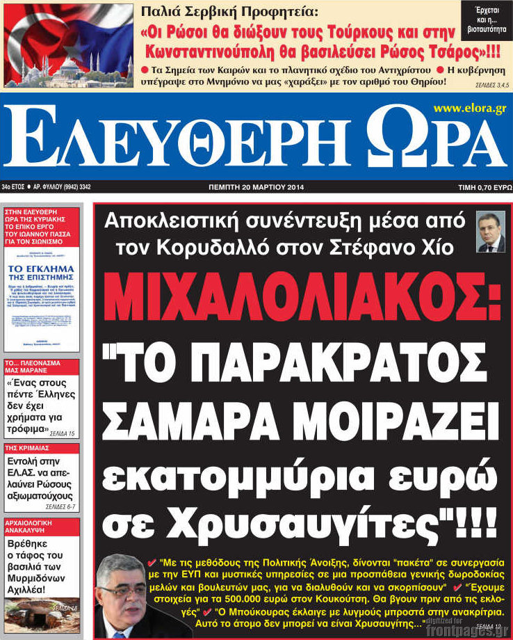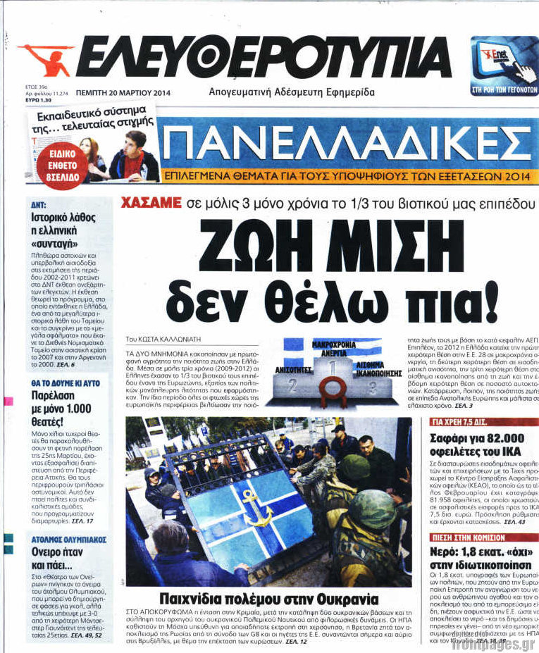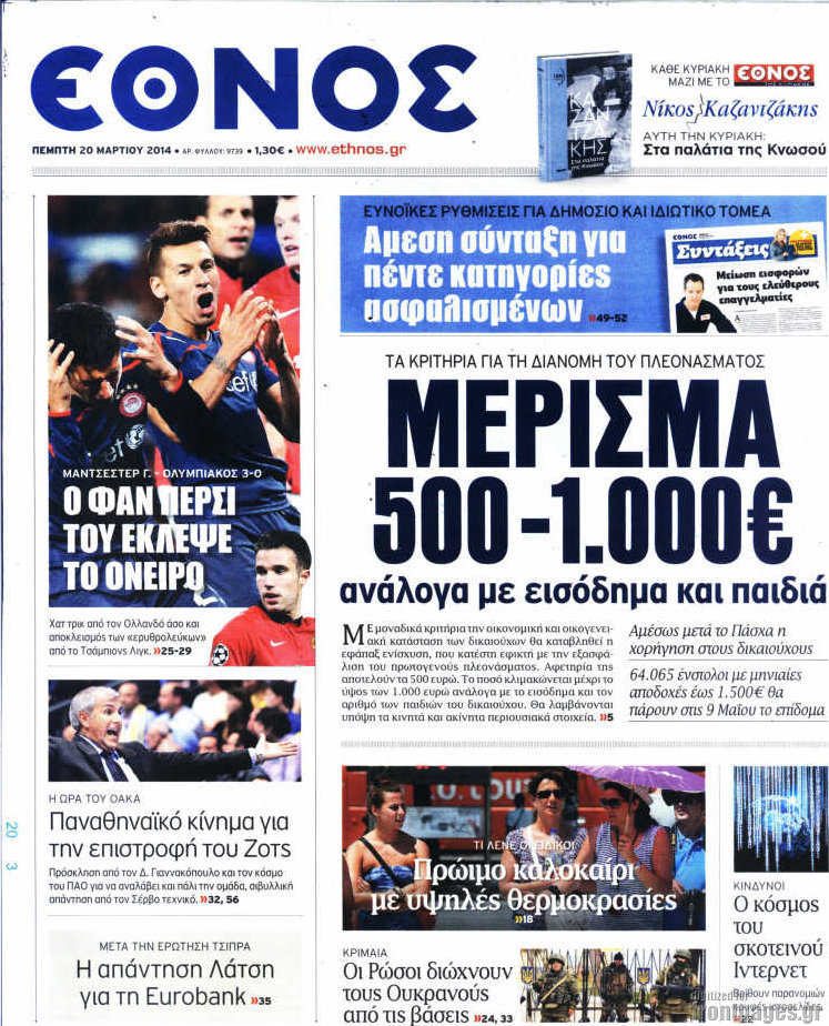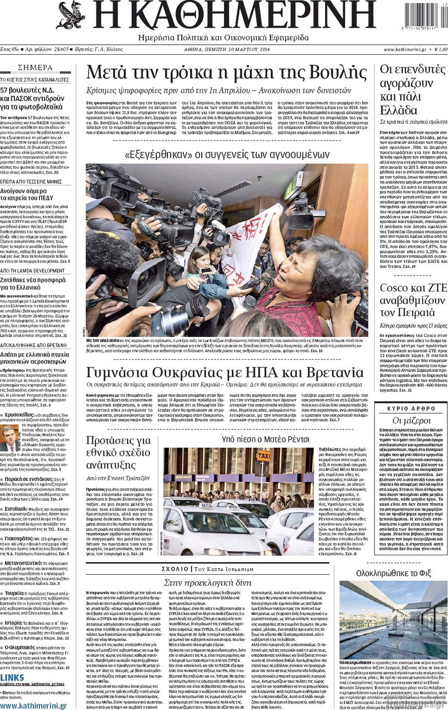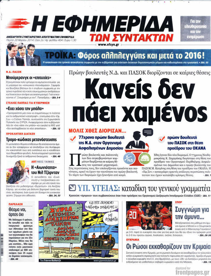 Οι πολιτικές εφημερίδες Enikos Newsroom 08:27, Πέμπτη 20 Μαρτίου 2014 Media Οι πολιτικές εφημερίδες Διαβάστε τα πρωτοσέλιδα των πολιτικών εφημερίδων: ΕΦΗΜΕΡΙΔΕΣ ΠΟΛΙΤΙΚΕΣ ΕΦΗΜΕΡΙΔΕΣ ΠΡΩΤΟΣΕΛΙΔΑ Μοιράσου το: σχολίασε κι εσύ (0 σχόλια) Ακολουθήστε το enikos.gr στο Google News και μάθετε πρώτοι όλες τις ειδήσεις Δείτε όλες τις τελευταίες ειδήσεις από την Ελλάδα και τον Κόσμο στο enikos.gr Ειδήσεις Ροή Ειδήσεων 3 ώρες πριν Υπόθεση Έπσταϊν: Το Υπουργείο Δικαιοσύνης δημοσιοποίησε μια σειρά από εξαιρετικά επεξεργασμένα αρχεία – «Λείπουν τα πιο σημαντικά έγγραφα», λένε οι Δημοκρατικοί 28 λεπτά πριν Γιορτές με μπλόκα για τους αγρότες: Ανοίγουν διόδια και μοιράζουν προϊόντα στους ταξιδιώτες 1 ώρα πριν Εξαφάνιση 33χρονου γιατρού στην Κρήτη: «Άναψα τα φώτα, τρόμαξε και άρχισε να τρέχει στα χωράφια» – Η τελευταία διαδρομή και η μαρτυρία «κλειδί» 2 ώρες πριν Ο «χάρτης» με τις αυξήσεις και τις φοροελαφρύνσεις του 2026 – Ποιοι και πόσα κερδίζουν 44 λεπτά πριν Τα αρχεία του Έπσταϊν αποκαλύπτουν φωτογραφία του έκπτωτου πρίγκιπα Άντριου – Είναι ξαπλωμένος στην αγκαλιά 5 γυναικών 51 λεπτά πριν Μία νέα «χρυσή» περίοδος αρχίζει για 3 ζώδια από σήμερα – «Μία αναπάντεχη ευκαιρία οδηγεί στην επιτυχία» 5 ώρες πριν Αυγά: Πόσα μπορείτε να τρώτε την ημέρα με ασφάλεια για μέγιστη πρόσληψη πρωτεΐνης 3 ώρες πριν Αρχαιολόγοι ανακάλυψαν σε χωράφι απεικόνιση 600 ετών ενός Αγίου – Τα στοιχεία που δείχνουν ότι μαρτύρησε 2 ώρες πριν Αγχώνεται για το χριστουγεννιάτικο δώρο που πήρε στην πλούσια σύντροφό του – «Φοβάμαι πως θα το βρει φθηνιάρικο, φοράει βραχιόλια Cartier» 55 δευτερόλεπτα πριν Οι 7 φράσεις που δεν λένε ποτέ οι συναισθηματικά έξυπνοι άνθρωποι κατά τη διάρκεια ενός καβγά 4 λεπτά πριν Τηλεθέαση (19/12): Ανατροπές και πρωτιές στην πρωινή ζώνη 12 λεπτά πριν Πώς η κλιματική αλλαγή επηρεάζει εγκύους και βρέφη – Οι επιπτώσεις των υψηλών θερμοκρασιών 20 λεπτά πριν e-ΕΦΚΑ και ΔΥΠΑ: Οι πληρωμές από 22 έως 24 Δεκεμβρίου – Ποιοι θα δουν χρήματα στους λογαριασμούς τους 28 λεπτά πριν Συνελήφθη οδηγός μηχανής που έτρεχε με 161 χλμ στη Συγγρού – Τον έπιασε το ραντάρ της Τροχαίας ENIKOS NETWORK Είστε μόνιμα απρόσεκτοι; 3 σημάδια που δείχνουν ότι μπορεί να είναι σύμπτωμα πάθησης Πόσα κιλά παίρνουμε πραγματικά τα Χριστούγεννα, σύμφωνα με την επιστήμη – Πώς να το αποτρέψουμε; Επίδομα παιδιού: Τι αλλάζει από το 2026 – Το όφελος από τις φορολογικές ελαφρύνσεις Mega χριστουγεννιάτικη φορολοταρία: «Κλείδωσε» η ημερομηνία για την κλήρωση – Ερωτήσεις και απαντήσεις Χαρτογραφώντας το «σημείο χωρίς επιστροφή»: Για πρώτη φορά αποκαλύπτεται με λεπτομέρεια το ακανθώδες όριο της ατμόσφαιρας τ... Η Google καταργεί τη λειτουργία «dark web report» – Πώς θα μπορούν οι χρήστες να διαγράφουν τα δεδομένα τους περισσότερα 09:30 , Σάββατο 20 Δεκεμβρίου 2025 «Porto Leone: Στη γειτονιά με τα κόκκινα φανάρια» – Ο Χρόνης αποκαλύπτει στην Αλεξάνδρα το μυστικό για το παιδί της Λένας Η μεγάλη δραματική σειρά του Apha «Porto Leone: Στη γειτονιά με τα κόκκινα φανάρια» μας μεταφέ... 08:14 , Σάββατο 20 Δεκεμβρίου 2025 Τρομεροί γονείς: Η Μαρία Καβογιάννη εισβάλλει στο σπίτι της οικογένειας Στεφανίδη Όσα θα δούμε στο νέο διπλό επεισόδιο της σειράς «Τρομεροί γονείς», σήμερα Σάββατο 20 Δεκεμβρίο... 05:48 , Σάββατο 20 Δεκεμβρίου 2025 Οι οικονομικές εφημερίδες 20/12/2025 Διαβάστε τα πρωτοσέλιδα από τις οικονομικές εφημερίδες, σήμερα 20/12/2025. 05:43 , Σάββατο 20 Δεκεμβρίου 2025 Οι αθλητικές εφημερίδες 20/12/2025 Διαβάστε τα 