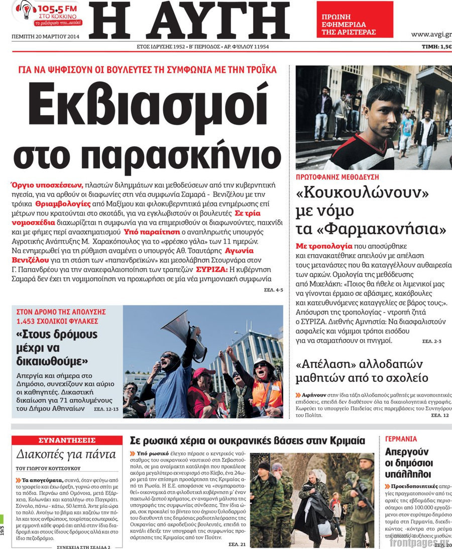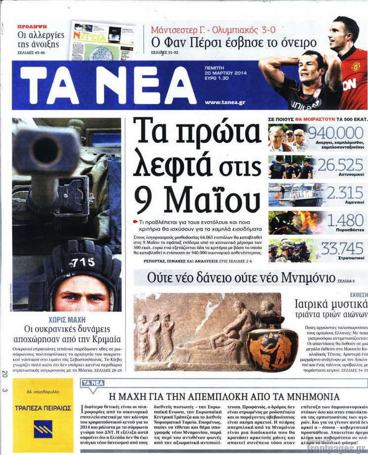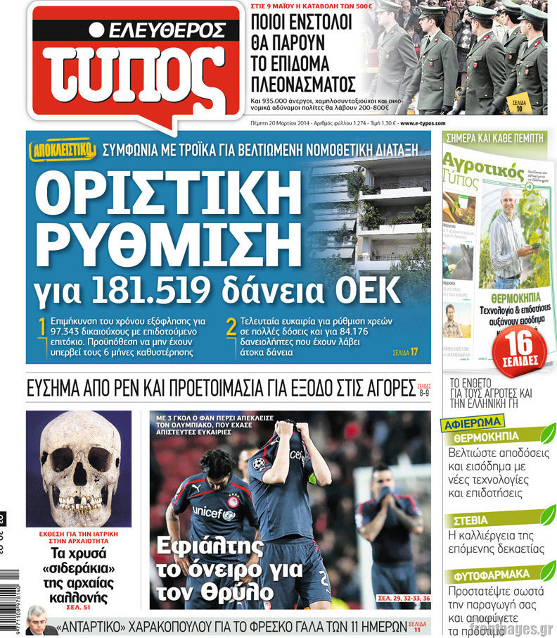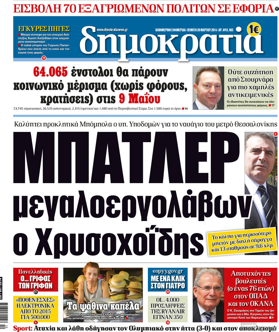 Οι πολιτικές εφημερίδες Enikos Newsroom 08:27, Πέμπτη 20 Μαρτίου 2014 Media Οι πολιτικές εφημερίδες Διαβάστε τα πρωτοσέλιδα των πολιτικών εφημερίδων: ΕΦΗΜΕΡΙΔΕΣ ΠΟΛΙΤΙΚΕΣ ΕΦΗΜΕΡΙΔΕΣ ΠΡΩΤΟΣΕΛΙΔΑ Μοιράσου το: σχολίασε κι εσύ (0 σχόλια) Ακολουθήστε το enikos.gr στο Google News και μάθετε πρώτοι όλες τις ειδήσεις Δείτε όλες τις τελευταίες ειδήσεις από την Ελλάδα και τον Κόσμο στο enikos.gr Ειδήσεις Ροή Ειδήσεων 3 ώρες πριν Υπόθεση Έπσταϊν: Το Υπουργείο Δικαιοσύνης δημοσιοποίησε μια σειρά από εξαιρετικά επεξεργασμένα αρχεία – «Λείπουν τα πιο σημαντικά έγγραφα», λένε οι Δημοκρατικοί 28 λεπτά πριν Γιορτές με μπλόκα για τους αγρότες: Ανοίγουν διόδια και μοιράζουν προϊόντα στους ταξιδιώτες 1 ώρα πριν Εξαφάνιση 33χρονου γιατρού στην Κρήτη: «Άναψα τα φώτα, τρόμαξε και άρχισε να τρέχει στα χωράφια» – Η τελευταία διαδρομή και η μαρτυρία «κλειδί» 2 ώρες πριν Ο «χάρτης» με τις αυξήσεις και τις φοροελαφρύνσεις του 2026 – Ποιοι και πόσα κερδίζουν 44 λεπτά πριν Τα αρχεία του Έπσταϊν αποκαλύπτουν φωτογραφία του έκπτωτου πρίγκιπα Άντριου – Είναι ξαπλωμένος στην αγκαλιά 5 γυναικών 51 λεπτά πριν Μία νέα «χρυσή» περίοδος αρχίζει για 3 ζώδια από σήμερα – «Μία αναπάντεχη ευκαιρία οδηγεί στην επιτυχία» 5 ώρες πριν Αυγά: Πόσα μπορείτε να τρώτε την ημέρα με ασφάλεια για μέγιστη πρόσληψη πρωτεΐνης 3 ώρες πριν Αρχαιολόγοι ανακάλυψαν σε χωράφι απεικόνιση 600 ετών ενός Αγίου – Τα στοιχεία που δείχνουν ότι μαρτύρησε 2 ώρες πριν Αγχώνεται για το χριστουγεννιάτικο δώρο που πήρε στην πλούσια σύντροφό του – «Φοβάμαι πως θα το βρει φθηνιάρικο, φοράει βραχιόλια Cartier» 55 δευτερόλεπτα πριν Οι 7 φράσεις που δεν λένε ποτέ οι συναισθηματικά έξυπνοι άνθρωποι κατά τη διάρκεια ενός καβγά 4 λεπτά πριν Τηλεθέαση (19/12): Ανατροπές και πρωτιές στην πρωινή ζώνη 12 λεπτά πριν Πώς η κλιματική αλλαγή επηρεάζει εγκύους και βρέφη – Οι επιπτώσεις των υψηλών θερμοκρασιών 20 λεπτά πριν e-ΕΦΚΑ και ΔΥΠΑ: Οι πληρωμές από 22 έως 24 Δεκεμβρίου – Ποιοι θα δουν χρήματα στους λογαριασμούς τους 28 λεπτά πριν Συνελήφθη οδηγός μηχανής που έτρεχε με 161 χλμ στη Συγγρού – Τον έπιασε το ραντάρ της Τροχαίας ENIKOS NETWORK Είστε μόνιμα απρόσεκτοι; 3 σημάδια που δείχνουν ότι μπορεί να είναι σύμπτωμα πάθησης Πόσα κιλά παίρνουμε πραγματικά τα Χριστούγεννα, σύμφωνα με την επιστήμη – Πώς να το αποτρέψουμε; Επίδομα παιδιού: Τι αλλάζει από το 2026 – Το όφελος από τις φορολογικές ελαφρύνσεις Mega χριστουγεννιάτικη φορολοταρία: «Κλείδωσε» η ημερομηνία για την κλήρωση – Ερωτήσεις και απαντήσεις Χαρτογραφώντας το «σημείο χωρίς επιστροφή»: Για πρώτη φορά αποκαλύπτεται με λεπτομέρεια το ακανθώδες όριο της ατμόσφαιρας τ... Η Google καταργεί τη λειτουργία «dark web report» – Πώς θα μπορούν οι χρήστες να διαγράφουν τα δεδομένα τους περισσότερα 09:30 , Σάββατο 20 Δεκεμβρίου 2025 «Porto Leone: Στη γειτονιά με τα κόκκινα φανάρια» – Ο Χρόνης αποκαλύπτει στην Αλεξάνδρα το μυστικό για το παιδί της Λένας Η μεγάλη δραματική σειρά του Apha «Porto Leone: Στη γειτονιά με τα κόκκινα φανάρια» μας μεταφέ... 08:14 , Σάββατο 20 Δεκεμβρίου 2025 Τρομεροί γονείς: Η Μαρία Καβογιάννη εισβάλλει στο σπίτι της οικογένειας Στεφανίδη Όσα θα δούμε στο νέο διπλό επεισόδιο της σειράς «Τρομεροί γονείς», σήμερα Σάββατο 20 Δεκεμβρίο... 05:48 , Σάββατο 20 Δεκεμβρίου 2025 Οι οικονομικές εφημερίδες 20/12/2025 Διαβάστε τα πρωτοσέλιδα από τις οικονομικές εφημερίδες, σήμερα 20/12/2025. 05:43 , Σάββατο 20 Δεκεμβρίου 2025 Οι αθλητικές εφημερίδες 20/12/2025 Διαβάστε τα 