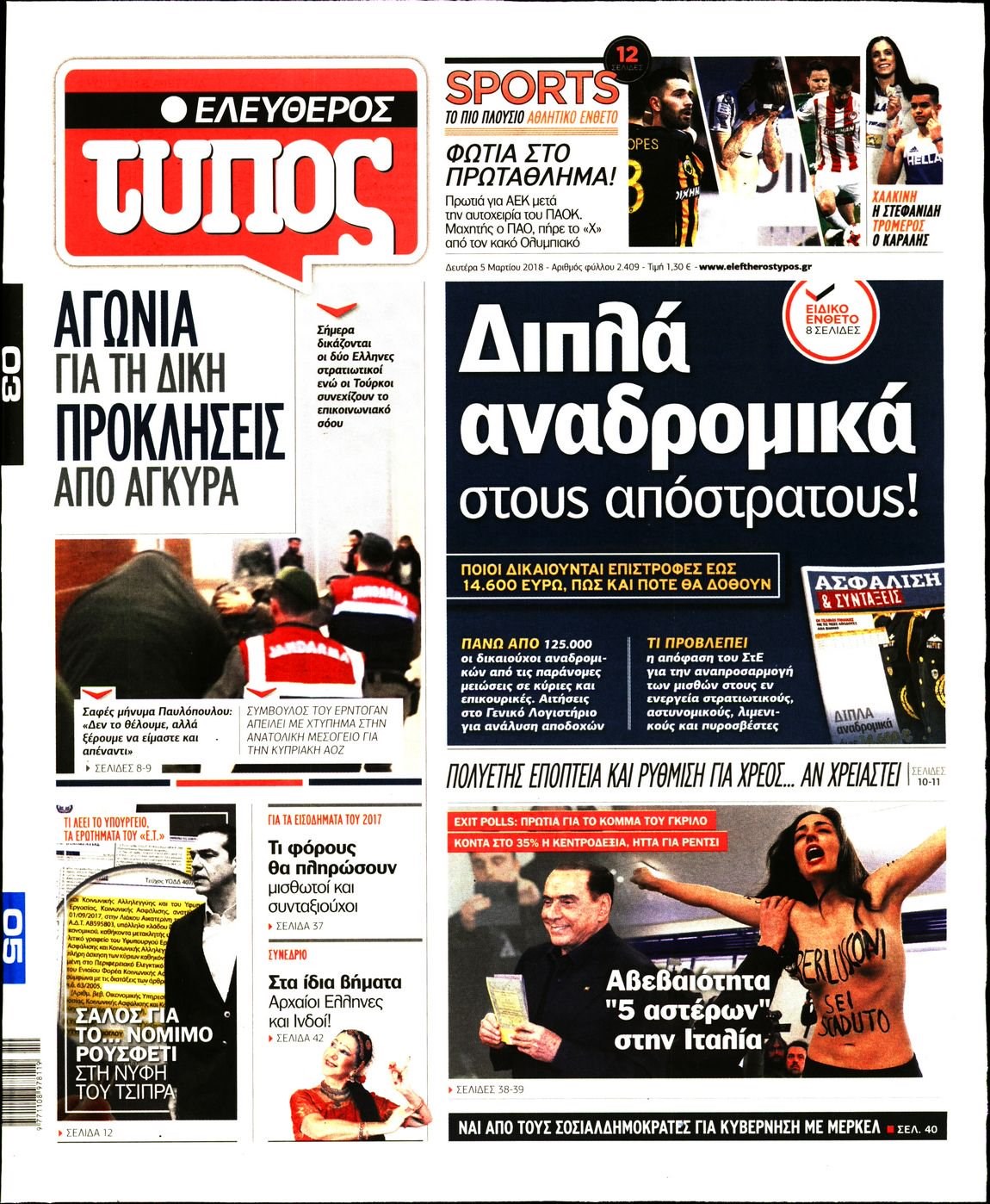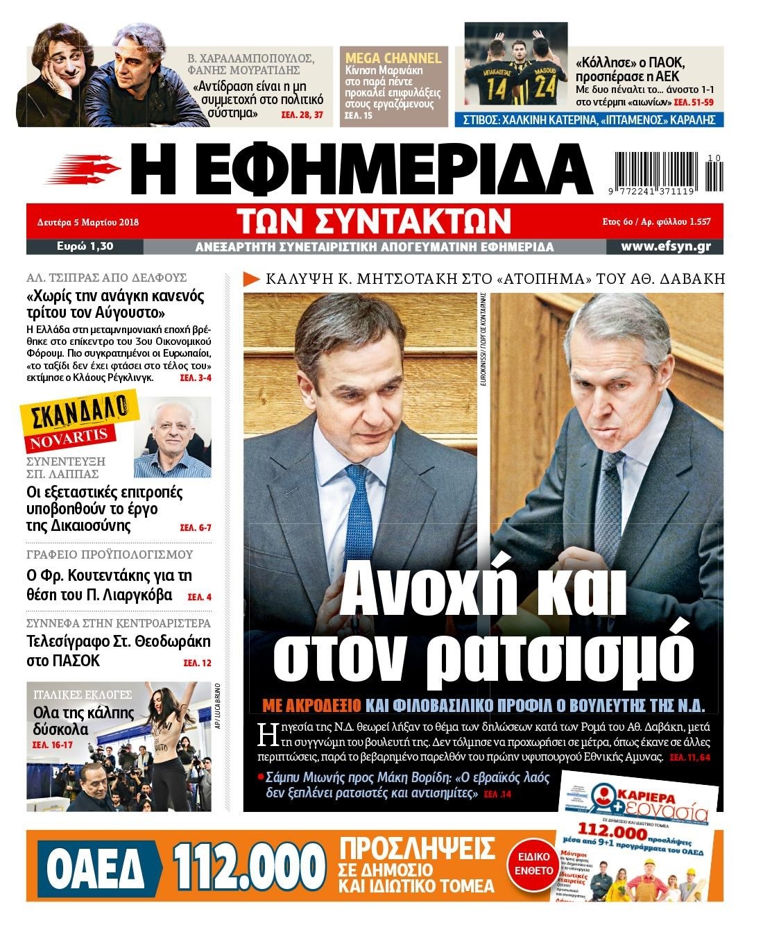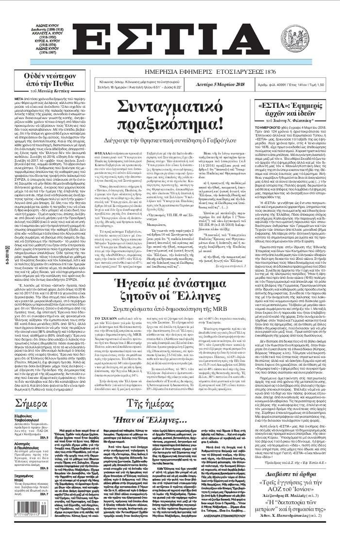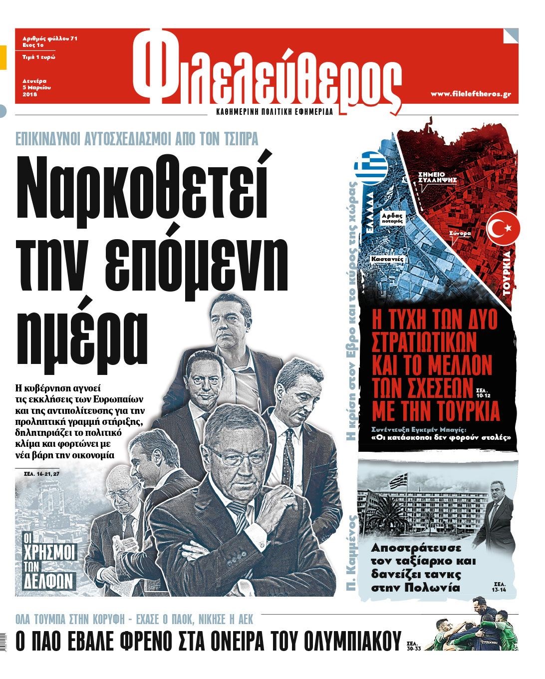 Οι πολιτικές εφημερίδες 5/3/2018 Κώστας Τεό 06:58, Δευτέρα 05 Μαρτίου 2018 Media Διαβάστε τα σημερινά πρωτοσέλιδα των πολιτικών εφημερίδων: ΠΟΛΙΤΙΚΕΣ ΕΦΗΜΕΡΙΔΕΣ ΠΡΩΤΟΣΕΛΙΔΑ Μοιράσου το: σχολίασε κι εσύ (0 σχόλια) Ακολουθήστε το enikos.gr στο Google News και μάθετε πρώτοι όλες τις ειδήσεις Δείτε όλες τις τελευταίες ειδήσεις από την Ελλάδα και τον Κόσμο στο enikos.gr Ειδήσεις Ροή Ειδήσεων 7 ώρες πριν Χριστούγεννα στα μπλόκα: Επιμένουν στις κινητοποιήσεις τους οι αγρότες – Ανοίγουν τα διόδια το Σαββατοκύριακο 7 ώρες πριν Ουκρανία: Η άνευ προηγουμένου επίθεση σε ρωσικό τάνκερ στη Μεσόγειο και το μήνυμα προς στον Πούτιν – Το «μακρύ χέρι» του Κιέβου 6 ώρες πριν Πούτιν: Τα μηνύματα σε Ευρώπη και ΝΑΤΟ από το μαραθώνιο «σόου» του – Η απαίτηση για «σεβασμό» και η ειρήνη «με τους όρους» της Μόσχας 7 ώρες πριν Τραμπ: Δεν αποκλείει την πιθανότητα ενός πολέμου στη Βενεζουέλα – «Ο Μαδούρο ξέρει καλύτερα από τον καθένα τι ακριβώς θέλω» 8 ώρες πριν Συνεχίζει να προκαλεί ο Μίτσκοσκι: «Για μένα το όνομα Μακεδονία είναι ιερό» 6 ώρες πριν Ανακαλύφθηκαν αρχαία χρυσά νομίσματα 2.200 ετών που απεικονίζουν τον θεό Απόλλωνα – Η άγνωστη σύνδεση με τον Φίλιππο Β΄ της Μακεδονίας 7 ώρες πριν Ύπνος: Μια κρυφή κατάσταση του εγκεφάλου πριν από τον ύπνο μπορεί να είναι το “κλειδί” για υψηλή ευφυΐα και δημιουργικότητα 8 ώρες πριν Αριθμολογία: Οι άνθρωποι που έχουν γεννηθεί αυτές τις 4 ημερομηνίες, συχνά παρεξηγούνται – «Η καλοσύνη τους κρύβει τεράστια δύναμη» 9 ώρες πριν Ξεχάστε το καθάρισμα το Σαββατοκύριακο: Ο «κανόνας των 20 λεπτών» που θα σας λύσει τα χέρια 17 δευτερόλεπτα πριν Γιώργος Μπαρτζώκας: «Για εμένα σημαίνει πάρα πολλά να ακούω το όνομά μου από τον κόσμο του Ολυμπιακού» 10 λεπτά πριν ΟΗΕ: Το Συμβούλιο Ασφαλείας παρατείνει για έναν χρόνο την εντολή της ειρηνευτικής δύναμης στο Κονγκό 25 λεπτά πριν Μοχάμεντ Σαλάχ: Ζήτησε «συγγνώμη» από τους συμπαίκτες του στη Λίβερπουλ για το ξέσπασμά του 40 λεπτά πριν Μάρκο Ρούμπιο: Ανθρωπιστική κατάπαυση του πυρός στο Σουδάν ζητά ο Αμερικανός υπουργός Εξωτερικών 55 λεπτά πριν Αγγελική Νικολούλη: Τα συλλυπητήρια για την απώλεια της Ειρήνης Μαρινάκη ENIKOS NETWORK Το ΕΚΑΒ τιμήθηκε από την Ακαδημία Αθηνών για τα 40 χρόνια προσφοράς του Έχετε πραγματικά μεγάλη καρδιά; 10 χαρακτηριστικά όσων έχουν καλοσύνη Αναστολή μέτρων αναγκαστικής εκτέλεσης για κτηνοτρόφους που πλήττονται από την ευλογιά των αιγοπροβάτων Πλήρης επάρκεια προϊόντων στις λαϊκές της Αττικής, παρά τις αγροτικές κινητοποιήσεις – Τι απαντούν οι πωλητές Χαρτογραφώντας το «σημείο χωρίς επιστροφή»: Για πρώτη φορά αποκαλύπτεται με λεπτομέρεια το ακανθώδες όριο της ατμόσφαιρας τ... Η Google καταργεί τη λειτουργία «dark web report» – Πώς θα μπορούν οι χρήστες να διαγράφουν τα δεδομένα τους περισσότερα 04:20 , Σάββατο 20 Δεκεμβρίου 2025 Αγγελική Νικολούλη: Τα συλλυπητήρια για την απώλεια της Ειρήνης Μαρινάκη Τα συλληπητήρια στον πρόεδρο του Mega, τον Βαγγέλη Μαρινάκη, για την απώλεια της μητέρας του Ε... 02:50 , Σάββατο 20 Δεκεμβρίου 2025 GNTM: Η Ξένια Τσίρκοβα αναδείχθηκε μεγάλη νικήτρια και πήρε τις 50.000 ευρώ – Ποιος βρέθηκε σε απόσταση αναπνοής; Με φαντασμαγορικό τρόπο ολοκληρώθηκε το βράδυ της Παρασκευής ο μεγάλος τελικός του GNTM, μέσα ... 22:42 , Παρασκευή 19 Δεκεμβρίου 2025 Γιώργος Γιαννόπουλος για “Το σόι σου”: “Είναι ευτυχία και ευλογία αυτή η σειρά” «Είναι ευτυχία και ευλογία η συγκυρία αυτής της σειράς», θα πει ο Γιώργος Για