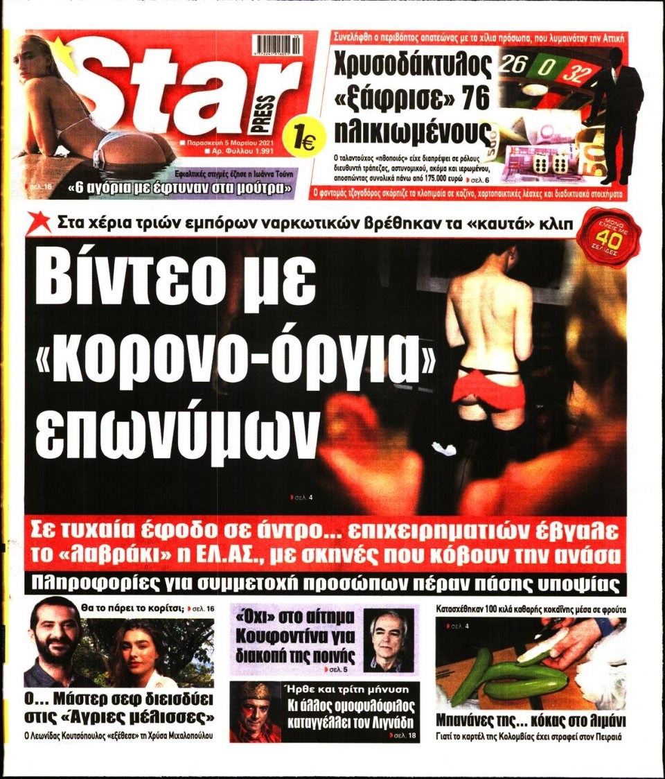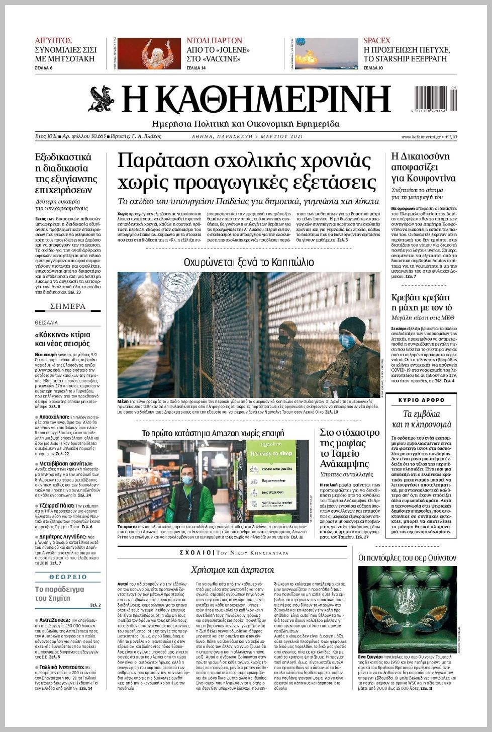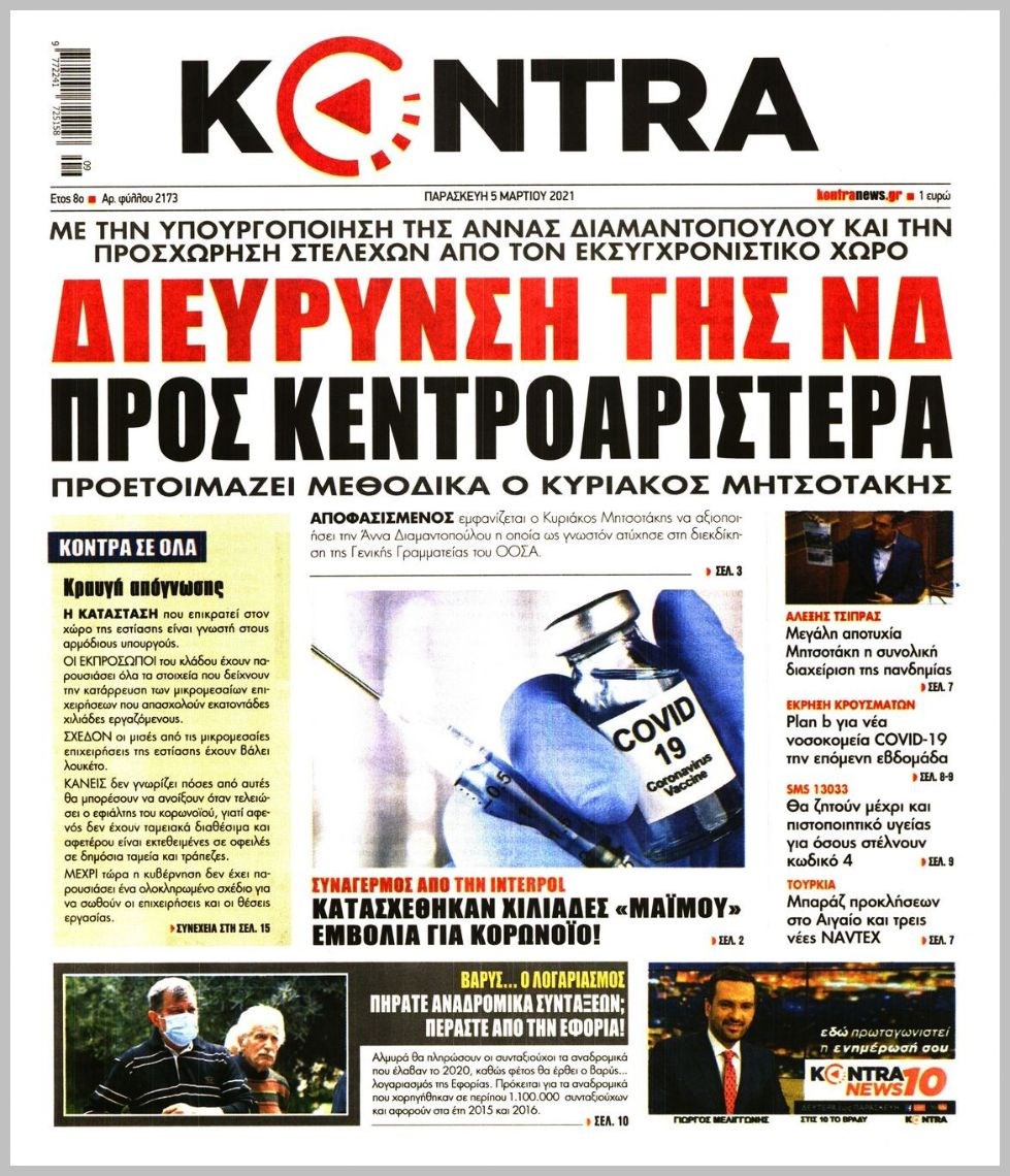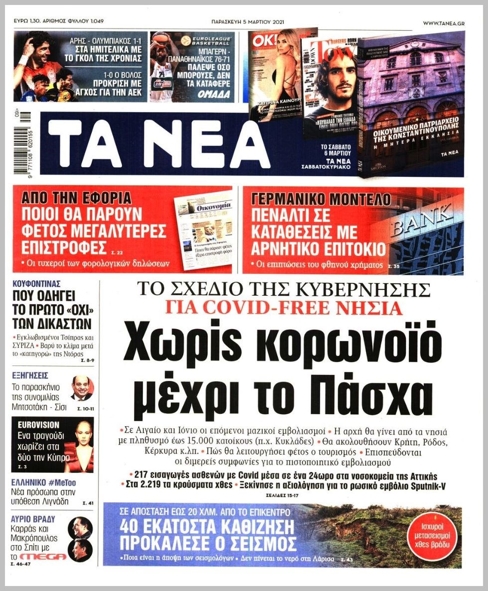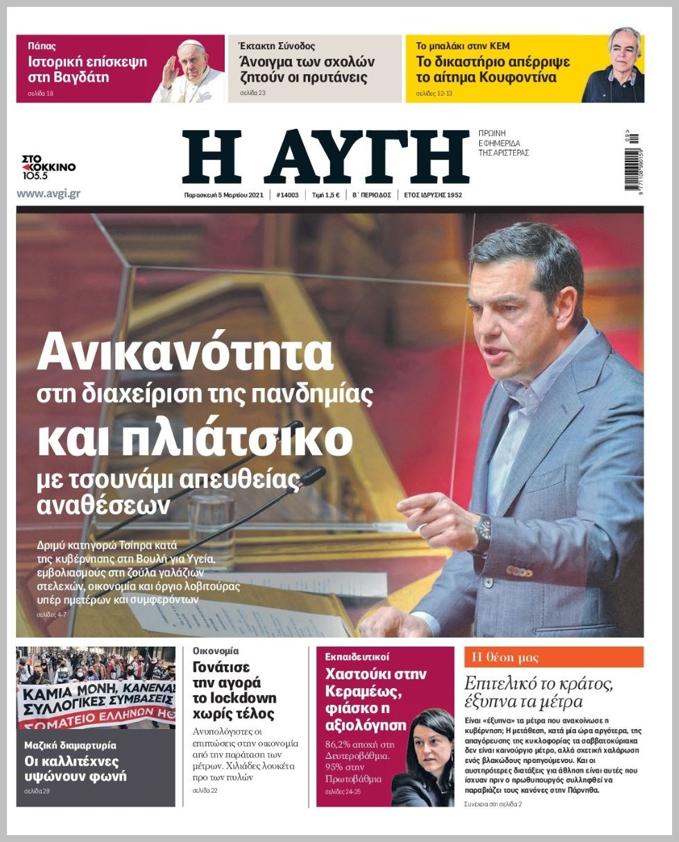 Οι πολιτικές εφημερίδες 5/3/2021 Διονύσης Νίκκας 06:11, Παρασκευή 05 Μαρτίου 2021 Media Διαβάστε τα πρωτοσέλιδα των πολιτικών εφημερίδων… ΕΦΗΜΕΡΙΔΕΣ ΠΡΩΤΟΣΕΛΙΔΑ Μοιράσου το: σχολίασε κι εσύ (0 σχόλια) Ακολουθήστε το enikos.gr στο Google News και μάθετε πρώτοι όλες τις ειδήσεις Δείτε όλες τις τελευταίες ειδήσεις από την Ελλάδα και τον Κόσμο στο enikos.gr Ειδήσεις Ροή Ειδήσεων 4 ώρες πριν Υπόθεση Έπσταϊν: Το Υπουργείο Δικαιοσύνης δημοσιοποίησε μια σειρά από εξαιρετικά επεξεργασμένα αρχεία – «Λείπουν τα πιο σημαντικά έγγραφα», λένε οι Δημοκρατικοί 46 λεπτά πριν Γιορτές με μπλόκα για τους αγρότες: Ανοίγουν διόδια και μοιράζουν προϊόντα στους ταξιδιώτες 1 ώρα πριν Εξαφάνιση 33χρονου γιατρού στην Κρήτη: «Άναψα τα φώτα, τρόμαξε και άρχισε να τρέχει στα χωράφια» – Η τελευταία διαδρομή και η μαρτυρία «κλειδί» 3 ώρες πριν Ο «χάρτης» με τις αυξήσεις και τις φοροελαφρύνσεις του 2026 – Ποιοι και πόσα κερδίζουν 1 ώρα πριν Τα αρχεία του Έπσταϊν αποκαλύπτουν φωτογραφία του έκπτωτου πρίγκιπα Άντριου – Είναι ξαπλωμένος στην αγκαλιά 5 γυναικών 1 ώρα πριν Μία νέα «χρυσή» περίοδος αρχίζει για 3 ζώδια από σήμερα – «Μία αναπάντεχη ευκαιρία οδηγεί στην επιτυχία» 5 ώρες πριν Αυγά: Πόσα μπορείτε να τρώτε την ημέρα με ασφάλεια για μέγιστη πρόσληψη πρωτεΐνης 3 ώρες πριν Αρχαιολόγοι ανακάλυψαν σε χωράφι απεικόνιση 600 ετών ενός Αγίου – Τα στοιχεία που δείχνουν ότι μαρτύρησε 2 ώρες πριν Αγχώνεται για το χριστουγεννιάτικο δώρο που πήρε στην πλούσια σύντροφό του – «Φοβάμαι πως θα το βρει φθηνιάρικο, φοράει βραχιόλια Cartier» 4 λεπτά πριν Τα Labubu «μετακομίζουν» στο Χόλιγουντ: Η Sony Pictures ετοιμάζει live-action ταινία με τον σκηνοθέτη του «Wonka» 11 λεπτά πριν Νέες ταυτότητες: Μεγάλη αναμονή για ραντεβού στην Αττική – Τέλος τα ταξίδια εκτός Ελλάδος από τον Αύγουστο για όσους δεν έχουν αλλάξει 20 λεπτά πριν Οι 7 φράσεις που δεν λένε ποτέ οι συναισθηματικά έξυπνοι άνθρωποι κατά τη διάρκεια ενός καβγά 23 λεπτά πριν Τηλεθέαση (19/12): Ανατροπές και πρωτιές στην πρωινή ζώνη 31 λεπτά πριν Πώς η κλιματική αλλαγή επηρεάζει εγκύους και βρέφη – Οι επιπτώσεις των υψηλών θερμοκρασιών ENIKOS NETWORK Είστε μόνιμα απρόσεκτοι; 3 σημάδια που δείχνουν ότι μπορεί να είναι σύμπτωμα πάθησης Πόσα κιλά παίρνουμε πραγματικά τα Χριστούγεννα, σύμφωνα με την επιστήμη – Πώς να το αποτρέψουμε; e-ΕΦΚΑ και ΔΥΠΑ: Έρχονται νέες πληρωμές έως τις 24 Δεκεμβρίου – Ποιοι πάνε ταμείο Επίδομα παιδιού: Τι αλλάζει από το 2026 – Το όφελος από τις φορολογικές ελαφρύνσεις Χαρτογραφώντας το «σημείο χωρίς επιστροφή»: Για πρώτη φορά αποκαλύπτεται με λεπτομέρεια το ακανθώδες όριο της ατμόσφαιρας τ... Η Google καταργεί τη λειτουργία «dark web report» – Πώς θα μπορούν οι χρήστες να διαγράφουν τα δεδομένα τους περισσότερα 09:30 , Σάββατο 20 Δεκεμβρίου 2025 «Porto Leone: Στη γειτονιά με τα κόκκινα φανάρια» – Ο Χρόνης αποκαλύπτει στην Αλεξάνδρα το μυστικό για το παιδί της Λένας Η μεγάλη δραματική σειρά του Apha «Porto Leone: Στη γειτονιά με τα κόκκινα φανάρια» μας μεταφέ... 08:14 , Σάββατο 20 Δεκεμβρίου 2025 Τρομεροί γονείς: Η Μαρία Καβογιάννη εισβάλλει στο σπίτι της οικογένειας Στεφανίδη Όσα θα δούμε στο νέο διπλό επεισόδιο της σειράς «Τρομεροί γονείς», σήμερα Σάββατο 20 Δεκεμβρίο... 05:48 , Σάββατο 20 Δεκεμβρίου 2025 Οι οικονομικές εφημερίδες 20/12/2025 Διαβάστε τα πρωτοσέλιδα από τις οικονομικές εφημερίδες, σήμερα 20/12/2025. 05:43 , Σάββατο 20 Δεκεμβρίου 2025 Οι αθλητικές εφημερίδες 20/12/2025 Διαβάστε τα πρωτοσέλιδα από τις αθλητ