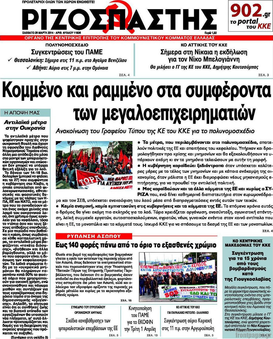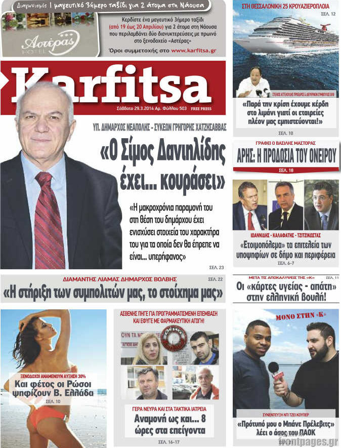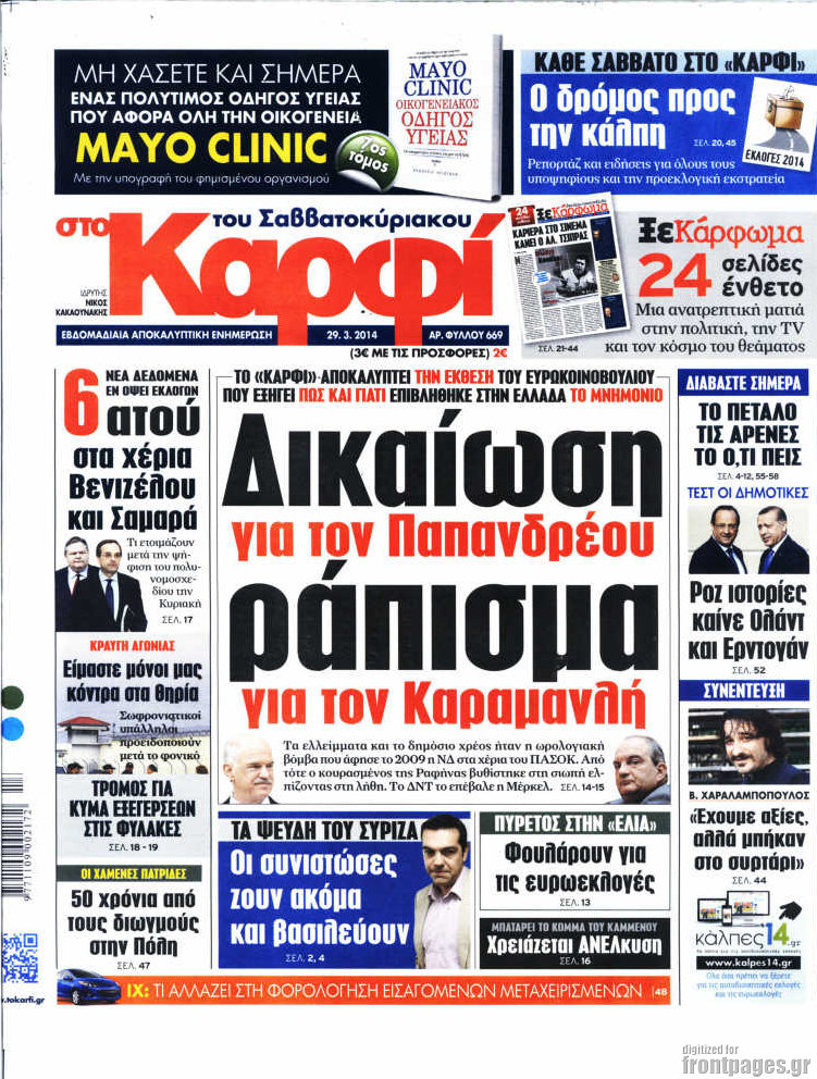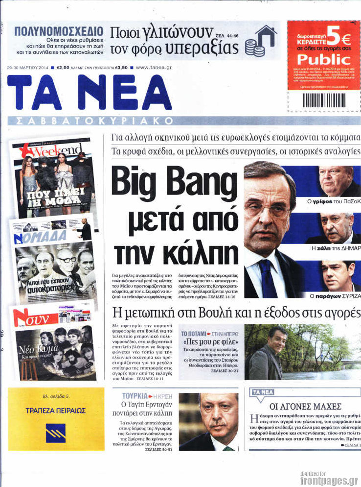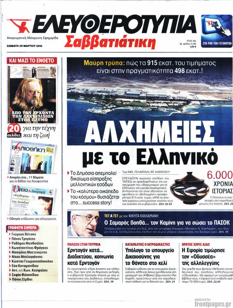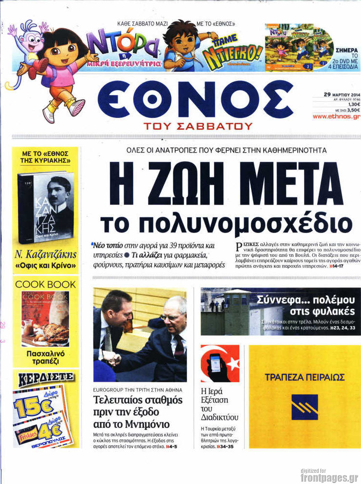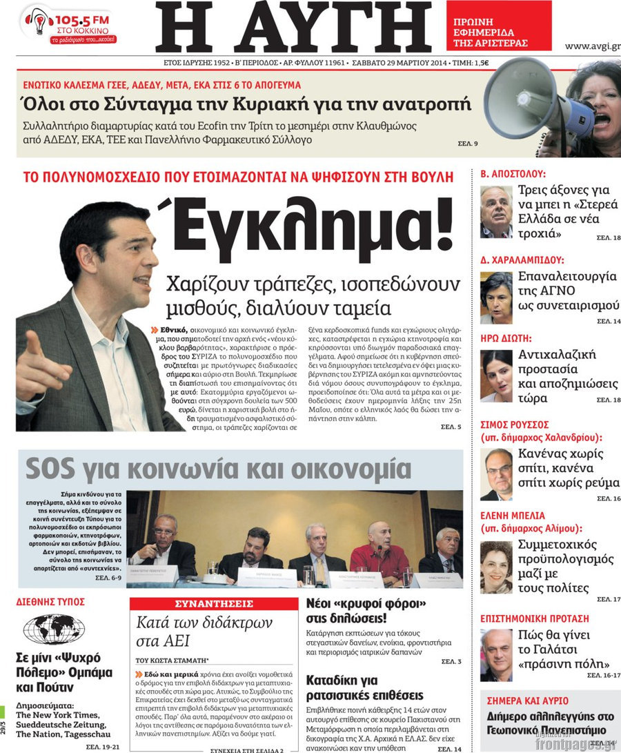 Οι πολιτικές εφημερίδες Enikos Newsroom 07:26, Σάββατο 29 Μαρτίου 2014 Media Οι πολιτικές εφημερίδες ΕΦΗΜΕΡΙΔΕΣ ΠΟΛΙΤΙΚΕΣ ΕΦΗΜΕΡΙΔΕΣ Μοιράσου το: σχολίασε κι εσύ (0 σχόλια) Ακολουθήστε το enikos.gr στο Google News και μάθετε πρώτοι όλες τις ειδήσεις Δείτε όλες τις τελευταίες ειδήσεις από την Ελλάδα και τον Κόσμο στο enikos.gr Ειδήσεις Ροή Ειδήσεων 3 ώρες πριν Υπόθεση Έπσταϊν: Το Υπουργείο Δικαιοσύνης δημοσιοποίησε μια σειρά από εξαιρετικά επεξεργασμένα αρχεία – «Λείπουν τα πιο σημαντικά έγγραφα», λένε οι Δημοκρατικοί 27 λεπτά πριν Γιορτές με μπλόκα για τους αγρότες: Ανοίγουν διόδια και μοιράζουν προϊόντα στους ταξιδιώτες 59 λεπτά πριν Εξαφάνιση 33χρονου γιατρού στην Κρήτη: «Άναψα τα φώτα, τρόμαξε και άρχισε να τρέχει στα χωράφια» – Η τελευταία διαδρομή και η μαρτυρία «κλειδί» 2 ώρες πριν Ο «χάρτης» με τις αυξήσεις και τις φοροελαφρύνσεις του 2026 – Ποιοι και πόσα κερδίζουν 43 λεπτά πριν Τα αρχεία του Έπσταϊν αποκαλύπτουν φωτογραφία του έκπτωτου πρίγκιπα Άντριου – Είναι ξαπλωμένος στην αγκαλιά 5 γυναικών 50 λεπτά πριν Μία νέα «χρυσή» περίοδος αρχίζει για 3 ζώδια από σήμερα – «Μία αναπάντεχη ευκαιρία οδηγεί στην επιτυχία» 5 ώρες πριν Αυγά: Πόσα μπορείτε να τρώτε την ημέρα με ασφάλεια για μέγιστη πρόσληψη πρωτεΐνης 3 ώρες πριν Αρχαιολόγοι ανακάλυψαν σε χωράφι απεικόνιση 600 ετών ενός Αγίου – Τα στοιχεία που δείχνουν ότι μαρτύρησε 2 ώρες πριν Αγχώνεται για το χριστουγεννιάτικο δώρο που πήρε στην πλούσια σύντροφό του – «Φοβάμαι πως θα το βρει φθηνιάρικο, φοράει βραχιόλια Cartier» 3 λεπτά πριν Τηλεθέαση (19/12): Ανατροπές και πρωτιές στην πρωινή ζώνη 11 λεπτά πριν Πώς η κλιματική αλλαγή επηρεάζει εγκύους και βρέφη – Οι επιπτώσεις των υψηλών θερμοκρασιών 19 λεπτά πριν e-ΕΦΚΑ και ΔΥΠΑ: Οι πληρωμές από 22 έως 24 Δεκεμβρίου – Ποιοι θα δουν χρήματα στους λογαριασμούς τους 27 λεπτά πριν Συνελήφθη οδηγός μηχανής που έτρεχε με 161 χλμ στη Συγγρού – Τον έπιασε το ραντάρ της Τροχαίας 27 λεπτά πριν Γιορτές με μπλόκα για τους αγρότες: Ανοίγουν διόδια και μοιράζουν προϊόντα στους ταξιδιώτες ENIKOS NETWORK Είστε μόνιμα απρόσεκτοι; 3 σημάδια που δείχνουν ότι μπορεί να είναι σύμπτωμα πάθησης Πόσα κιλά παίρνουμε πραγματικά τα Χριστούγεννα, σύμφωνα με την επιστήμη – Πώς να το αποτρέψουμε; Επίδομα παιδιού: Τι αλλάζει από το 2026 – Το όφελος από τις φορολογικές ελαφρύνσεις Mega χριστουγεννιάτικη φορολοταρία: «Κλείδωσε» η ημερομηνία για την κλήρωση – Ερωτήσεις και απαντήσεις Χαρτογραφώντας το «σημείο χωρίς επιστροφή»: Για πρώτη φορά αποκαλύπτεται με λεπτομέρεια το ακανθώδες όριο της ατμόσφαιρας τ... Η Google καταργεί τη λειτουργία «dark web report» – Πώς θα μπορούν οι χρήστες να διαγράφουν τα δεδομένα τους περισσότερα 09:30 , Σάββατο 20 Δεκεμβρίου 2025 «Porto Leone: Στη γειτονιά με τα κόκκινα φανάρια» – Ο Χρόνης αποκαλύπτει στην Αλεξάνδρα το μυστικό για το παιδί της Λένας Η μεγάλη δραματική σειρά του Apha «Porto Leone: Στη γειτονιά με τα κόκκινα φανάρια» μας μεταφέ... 08:14 , Σάββατο 20 Δεκεμβρίου 2025 Τρομεροί γονείς: Η Μαρία Καβογιάννη εισβάλλει στο σπίτι της οικογένειας Στεφανίδη Όσα θα δούμε στο νέο διπλό επεισόδιο της σειράς «Τρομεροί γονείς», σήμερα Σάββατο 20 Δεκεμβρίο... 05:48 , Σάββατο 20 Δεκεμβρίου 2025 Οι οικονομικές εφημερίδες 20/12/2025 Διαβάστε τα πρωτοσέλιδα από τις οικονομικές εφημερίδες, σήμερα 20/12/2025. 05:43 , Σάββατο 20 Δεκεμβρίου 2025 Οι αθλητικές εφημερίδες 20/12/2025 Διαβάστε τα πρωτοσέλιδα από τις αθλητικές εφημερίδες, σήμερα 20/12/2025. ΤΕΛΕΥΤΑΙΕΣ 