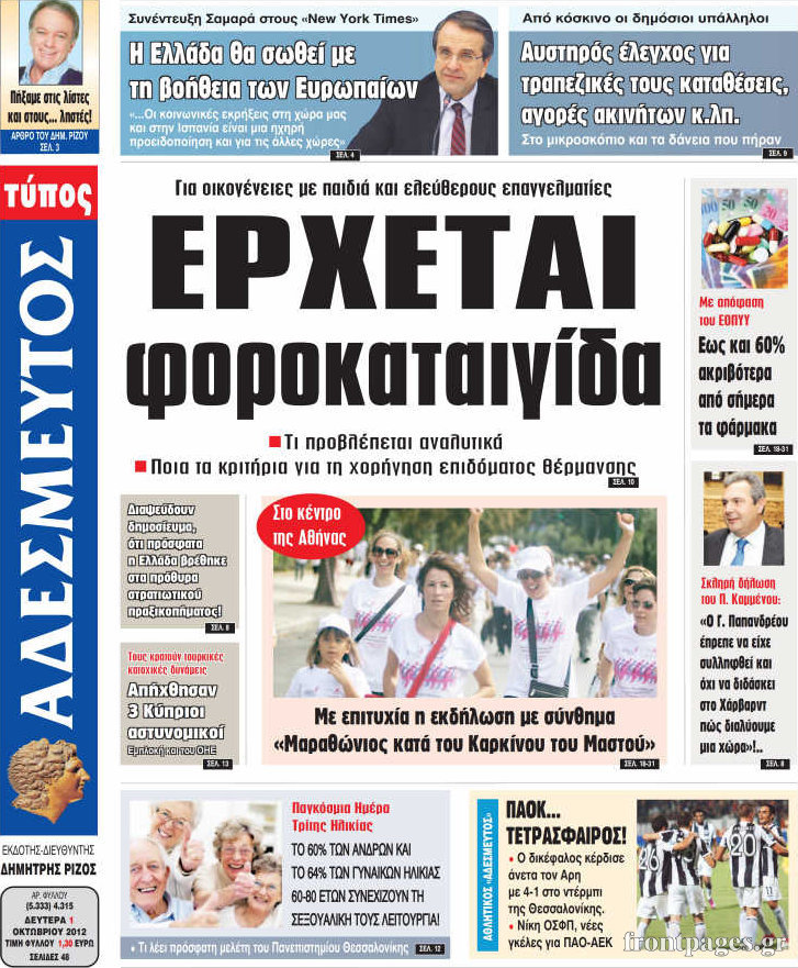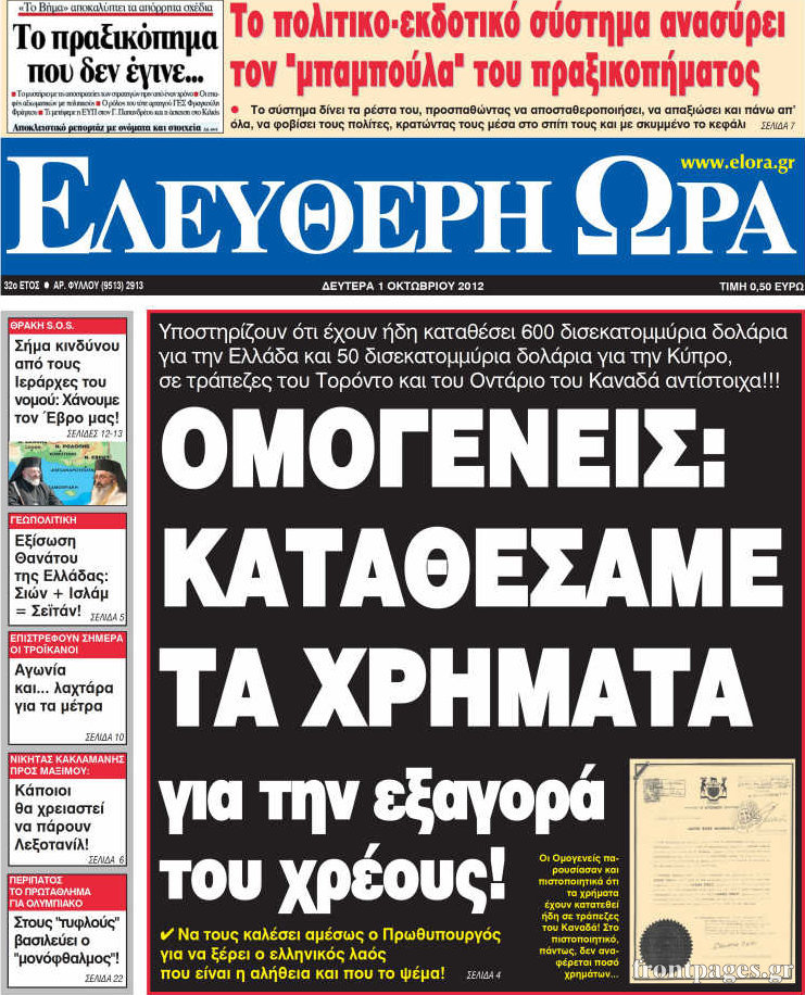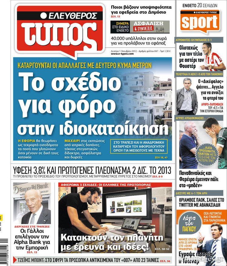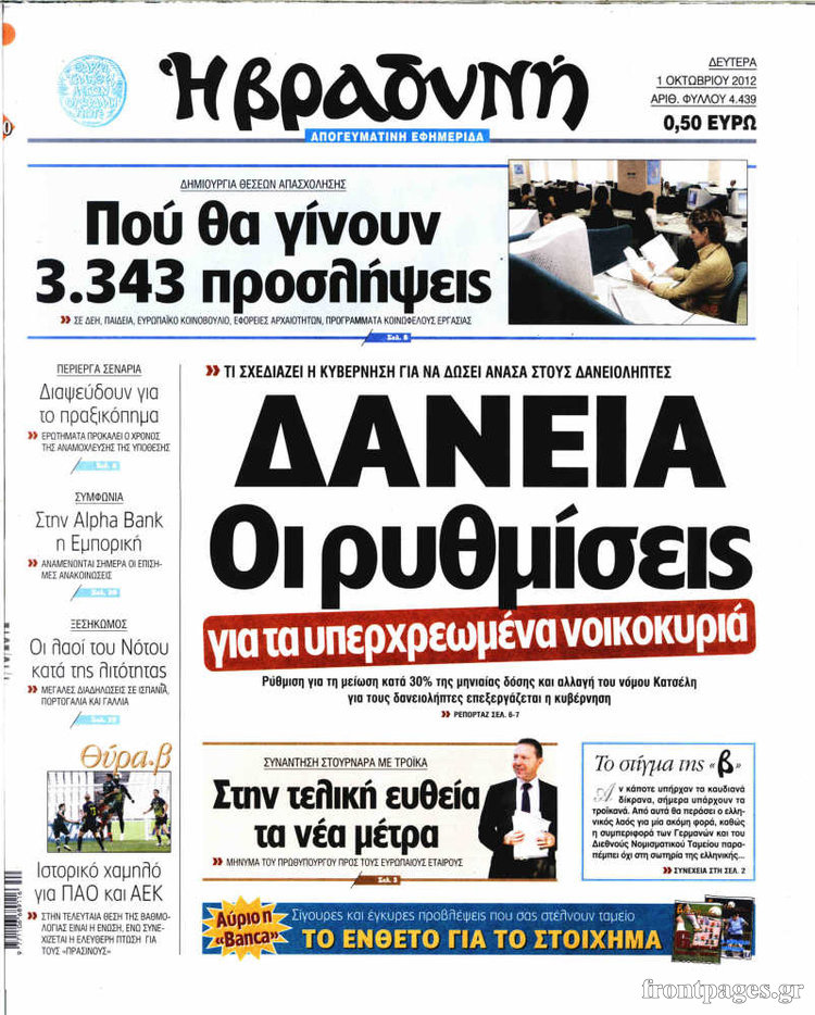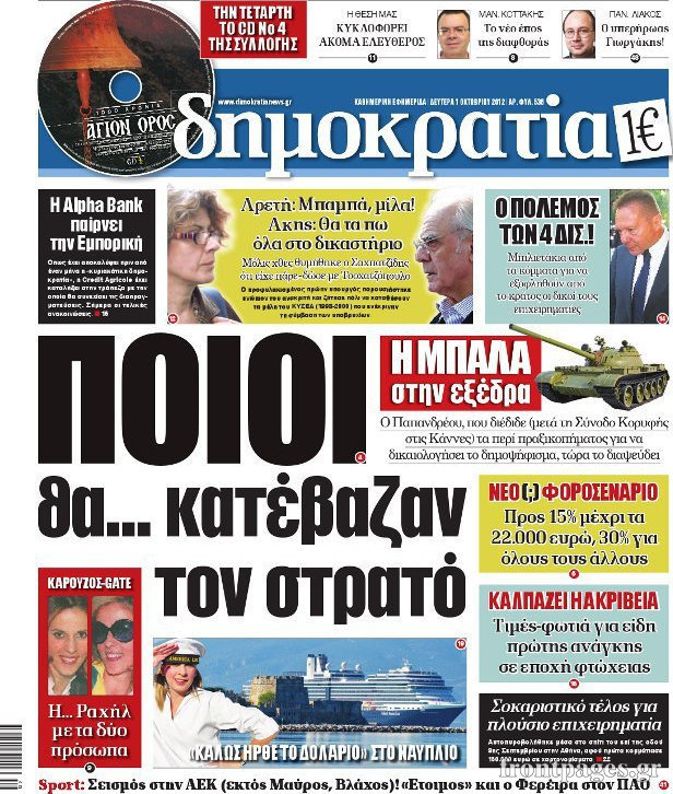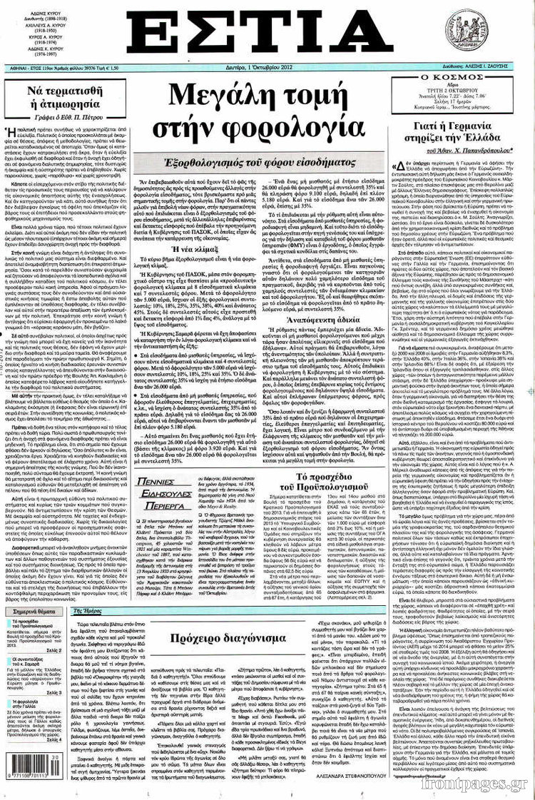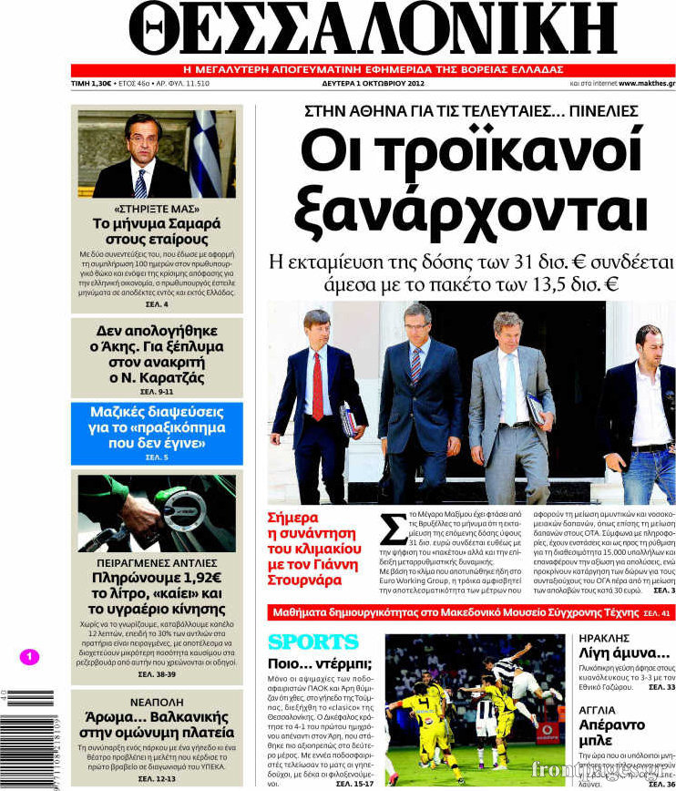 Διαβάστε τα σημερινά πρωτοσέλιδα των πολιτικών εφημερίδων.