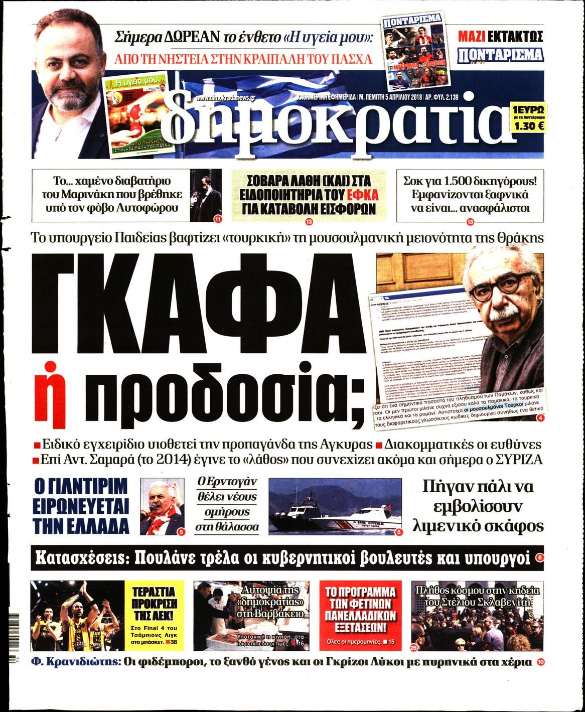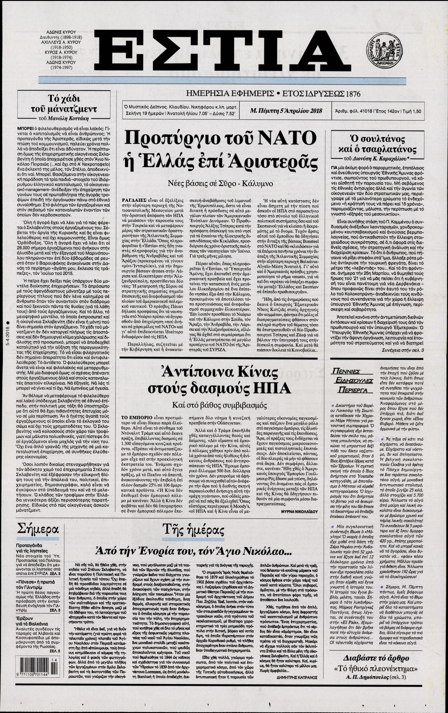 Οι πολιτικές εφημερίδες 5/4/2018 Enikos Newsroom 07:35, Πέμπτη 05 Απριλίου 2018 Media Διαβάστε τα σημερινά πρωτοσέλιδα των πολιτικών εφημερίδων: \ ΠΟΛΙΤΙΚΕΣ ΕΦΗΜΕΡΙΔΕΣ ΠΡΩΤΟΣΕΛΙΔΑ Μοιράσου το: σχολίασε κι εσύ (0 σχόλια) Ακολουθήστε το enikos.gr στο Google News και μάθετε πρώτοι όλες τις ειδήσεις Δείτε όλες τις τελευταίες ειδήσεις από την Ελλάδα και τον Κόσμο στο enikos.gr Ειδήσεις Ροή Ειδήσεων 7 ώρες πριν Χριστούγεννα στα μπλόκα οι αγρότες: Άνοιξαν στα διόδια και μοίρασαν προϊόντα στους πολίτες – Νέα σύσκεψη την Κυριακή στη Νίκαια 5 ώρες πριν Ρετζέπ Ταγίπ Ερντογάν: Δεν έχουμε καμία βλέψη στα εδάφη ή την κυριαρχία κανενός – Δεν θα επιτρέψουμε να παραβιαστούν τα δικαιώματά μας 6 ώρες πριν H ακτοφυλακή των ΗΠΑ κατάσχεσε και δεύτερο τάνκερ στα ανοιχτά της Βενεζουέλας – Δείτε βίντεο 7 ώρες πριν Κύκλωμα διακίνησης ναρκωτικών σε σχολεία: Τηλεφωνούσαν στους ανηλίκους την ώρα του μαθήματος – Οι διάλογοι-σοκ, τα «ψευδώνυμα» και τα βασανιστήρια 7 ώρες πριν Αρχεία Επστάιν: Οι 500 σελίδες που λείπουν, τα αναπάντητα ερωτήματα και οι επώνυμοι – Τι έπεται 7 ώρες πριν Αποκαλύφθηκε το άγνωστο «GPS» της αρχαιότητας – Πώς οι ναοί «φώτιζαν» τον δρόμο των ναυτικών πριν από την εφεύρεση των φάρων 8 ώρες πριν Ύπνος: Η διατροφή που μπορεί να σας βοηθήσει να κοιμάστε καλύτερα και να ζήσετε περισσότερο 9 ώρες πριν Αριθμολογία: Ο αριθμός του φύλακα αγγέλου σας, με βάση τον μήνα γέννησής σας – «Έτσι σας στέλνει σημάδια το σύμπαν» 21 ώρες πριν Enerwave: Το νέο «ρεύμα» στη λιανική ενέργειας που αλλάζει την εμπειρία του καταναλωτή 2 λεπτά πριν Οι αθλητικές εφημερίδες 21/12/2025 10 λεπτά πριν Οι πολιτικές εφημερίδες 21/12/2025 18 λεπτά πριν Τα ζώδια σήμερα, Κυριακή 21 Δεκεμβρίου: Αιγόκεροι, αποφασίζετε για το επόμενο κεφάλαιο της ζωής σας 26 λεπτά πριν Εφημερεύοντα φαρμακεία σε Αθήνα και Θεσσαλονίκη (21/12) 33 λεπτά πριν Γιαννούλης Λαρεντζάκης: Πρόταση γάμου στην αρραβωνιαστικιά του, Γιώτα Γεωργοπούλου, έκανε ο παίκτης του Ολυμπιακού – Δείτε φωτογραφίες και βίντεο ENIKOS NETWORK Οι γυναίκες αποκαλύπτουν το πιο ελκυστικό πράγμα που μπορεί να κάνει ένας άνδρας Ομορφιά και αντιγήρανση: Ειδικοί μιλούν για συσκευές περιποίησης του δέρματος «Πολεμική» προετοιμασία από την ευρωπαϊκή βιομηχανία ενέργειας – Η Eurelectric ζητεί «ομπρέλα» προστασίας για τις υποδομές Ακύρωση ΑΦΜ για απάτες – Ποιους βάζει στο στόχαστρο η ΑΑΔΕ Χαρτογραφώντας το «σημείο χωρίς επιστροφή»: Για πρώτη φορά αποκαλύπτεται με λεπτομέρεια το ακανθώδες όριο της ατμόσφαιρας τ... Η Google καταργεί τη λειτουργία «dark web report» – Πώς θα μπορούν οι χρήστες να διαγράφουν τα δεδομένα τους περισσότερα 05:46 , Κυριακή 21 Δεκεμβρίου 2025 Οι αθλητικές εφημερίδες 21/12/2025 Διαβάστε τα πρωτοσέλιδα από τις αθλητικές εφημερίδες, σήμερα 21/12/2025. 05:38 , Κυριακή 21 Δεκεμβρίου 2025 Οι πολιτικές εφημερίδες 21/12/2025 Διαβάστε τα πρωτοσέλιδα από τις πολιτικές εφημερίδες, σήμερα 21/12/2025. 05:08 , Κυριακή 21 Δεκεμβρίου 2025 Σήμερα με τη Realnews: Δωροεπιταγή 10€ Δωροεπιταγή αξίας 10€ για αγορές άνω των 60€ από τα πολυκαταστήματα FactoryOutlet H προσφορά ι... 04:08 , Κυριακή 21 Δεκεμβρίου 2025 Σήμερα με τη Realnews: Ό,τι και αν αγοράσεις, σκανάρεις και κερδίζεις! Σήμερα με τη Realnews: Ό,τι και αν αγοράσεις, σκανάρεις και κερδίζεις! Με το PADU app, το κορυ... ΤΕΛΕΥΤΑΙΕΣ ΕΙΔΗΣΕΙΣ 2 λεπτά πριν Οι αθλητικές εφημερίδες 21/12/2025 10 λεπτά πριν Οι πολιτικές εφημερίδες 21/12/2025 18 λεπτά πριν Τα ζώδια σήμερα, Κυριακή 21 Δεκεμβρίου: Αιγόκεροι,... 26 λεπτά πριν Εφημερεύοντα φαρμακεία σ