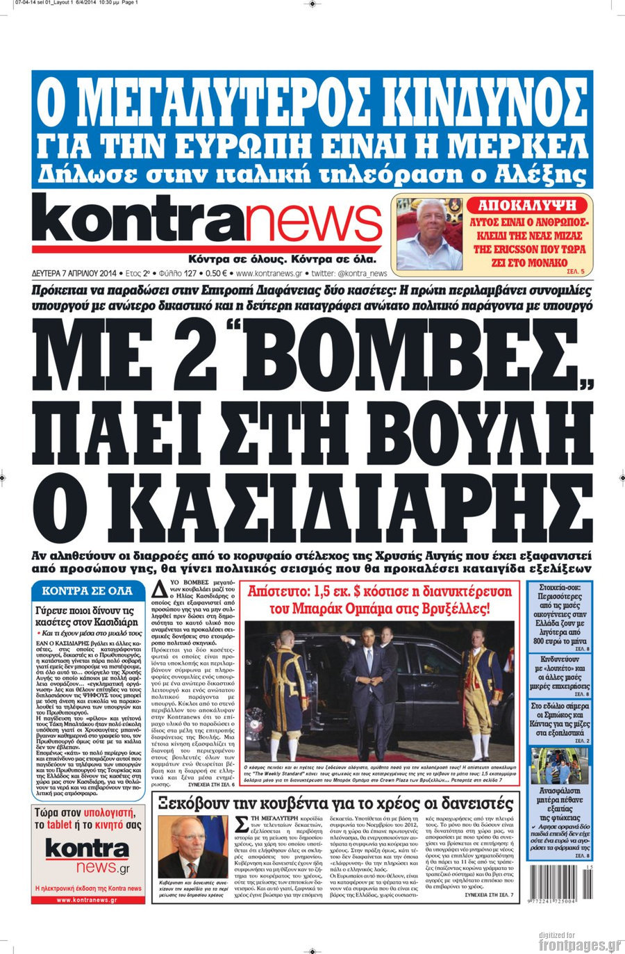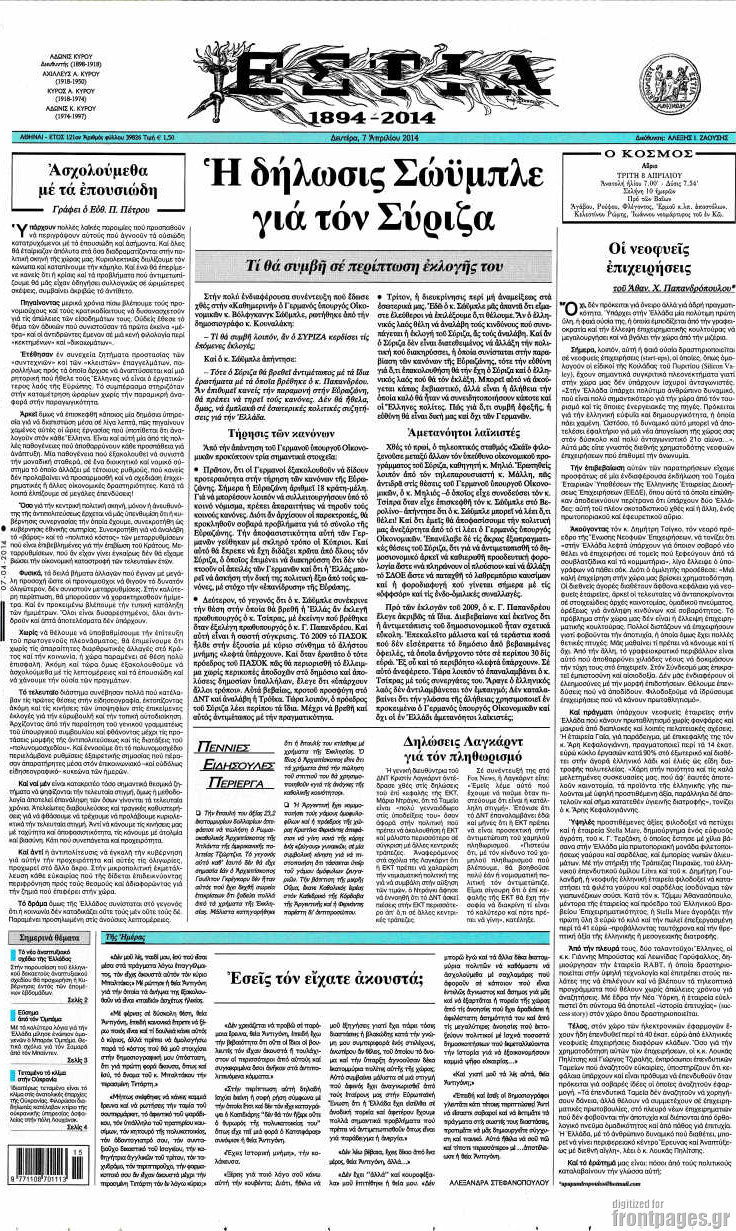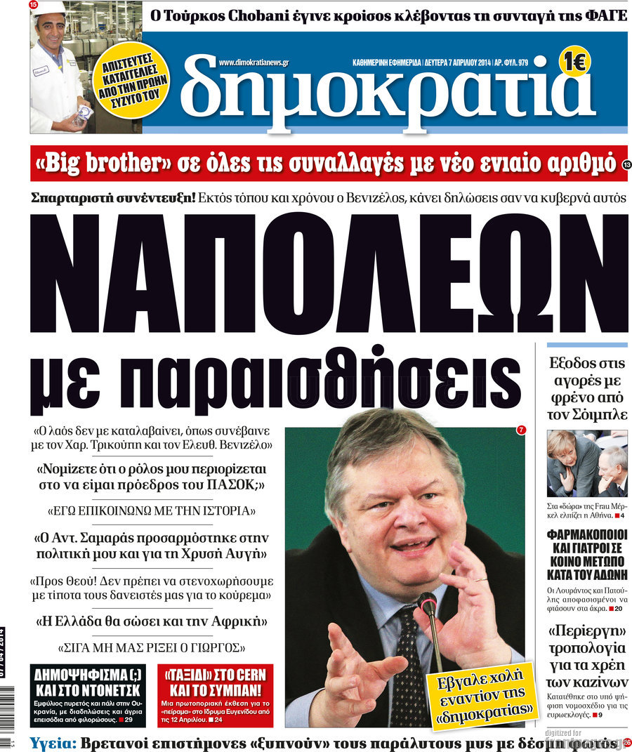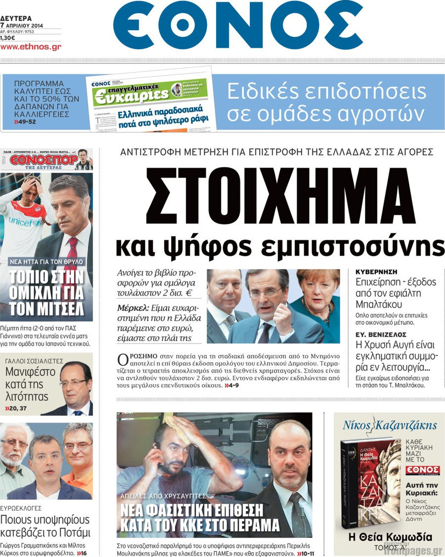 Οι πολιτικές εφημερίδες Enikos Newsroom 08:27, Δευτέρα 07 Απριλίου 2014 Media Οι πολιτικές εφημερίδες Διαβάστε τα πρωτοσέλιδα των πολιτικών εφημερίδων: ΕΦΗΜΕΡΙΔΕΣ ΠΟΛΙΤΙΚΕΣ ΕΦΗΜΕΡΙΔΕΣ ΠΡΩΤΟΣΕΛΙΔΑ Μοιράσου το: σχολίασε κι εσύ (0 σχόλια) Ακολουθήστε το enikos.gr στο Google News και μάθετε πρώτοι όλες τις ειδήσεις Δείτε όλες τις τελευταίες ειδήσεις από την Ελλάδα και τον Κόσμο στο enikos.gr Ειδήσεις Ροή Ειδήσεων 48 λεπτά πριν Πώς δρούσε το κύκλωμα που διακινούσε ναρκωτικά σε σχολεία – Υπέβαλαν σε βασανιστήρια όσους δεν τηρούσαν τους «κανόνες πειθαρχίας» 1 ώρα πριν Αγρότες: Γιορτές στα μπλόκα με ανοιχτά διόδια – Δικογραφία στα Ιωάννινα για το σήκωμα των μπαρών 5 ώρες πριν Αρχεία Έπσταϊν: Οι συγκλονιστικές φωτογραφίες – Ο Μάικλ Τζάκσον, ο Μικ Τζάγκερ και ο Κέβιν Σπέισι ανάμεσα στους διάσημους που απεικονίζονται 3 ώρες πριν Βέλγιο: Άγνωστοι έριξαν κόκκινη μπογιά στο προξενείο της Πολωνίας στις Βρυξέλλες 2 ώρες πριν ΕΛΑΣ: Συνελήφθησαν Υπαρχιπυροσβέστης και δύο ακόμη άτομα για κατοχή και διακίνηση ναρκωτικών ουσιών – Η καταγγελία και ο τιμοκατάλογος 1 ώρα πριν Η τύχη χαμογελά σε 3 ζώδια έως τις 28 Δεκεμβρίου – «Προσέξτε τις επιλογές σας και η επιμονή σας θα ανταμειφθεί» 6 ώρες πριν Διαιτολόγος αποκαλύπτει 9 πρωινές συνήθειες που «λιώνουν» το κοιλιακό λίπος – «Υποστηρίζουν την υγιεινή απώλεια βάρους» 7 ώρες πριν Οι 7 φράσεις που δεν λένε ποτέ οι συναισθηματικά έξυπνοι άνθρωποι κατά τη διάρκεια ενός καβγά 9 ώρες πριν Enerwave: Το νέο «ρεύμα» στη λιανική ενέργειας που αλλάζει την εμπειρία του καταναλωτή 8 λεπτά πριν Αττική: Εξαρθρώθηκε εγκληματική οργάνωση που έκλεβε οχήματα, τα παραποιούσε και τα μεταπωλούσε σε πολίτες – Πώς δρούσε το κύκλωμα 16 λεπτά πριν Κωνσταντίνος Αργυρός: «Δεν θέλω να ασχοληθώ με την πολιτική σε αυτή τη φάση – Μου έχουν γίνει προτάσεις» 25 λεπτά πριν Σέρρες: Διέρρηξαν διαμέρισμα και «βούτηξαν» ρολόγια συνολικής αξίας 15.000 ευρώ – 3 συλλήψεις 33 λεπτά πριν Κουίζ για την παλιά Αθήνα: Αναγνωρίζετε την συνοικία; Είναι από τις πιο γνωστές 41 λεπτά πριν Ζελένσκι: Οι Αμερικανοί πρότειναν συνάντηση Ουκρανίας, ΗΠΑ, Ρωσίας στο Μαϊάμι ENIKOS NETWORK Η αποχή από την αναπαραγωγή παρατείνει τη ζωή στα ζώα, σύμφωνα με μελέτη – Τι ισχύει για τους ανθρώπους; Σημαντικές επαφές στις ΗΠΑ είχε ο υπουργός Υγείας Άδωνις Γεωργιάδης Στα ύψη ο χρυσός – Νέο ρεκόρ στην τιμή της λίρας, πόσο πωλείται Τέλη κυκλοφορίας 2026: Προσοχή στην προθεσμία εξόφλησής τους – Πώς διαμορφώνονται τα πρόστιμα σε περίπτωση καθυστέρησης Χαρτογραφώντας το «σημείο χωρίς επιστροφή»: Για πρώτη φορά αποκαλύπτεται με λεπτομέρεια το ακανθώδες όριο της ατμόσφαιρας τ... Η Google καταργεί τη λειτουργία «dark web report» – Πώς θα μπορούν οι χρήστες να διαγράφουν τα δεδομένα τους περισσότερα 14:04 , Σάββατο 20 Δεκεμβρίου 2025 Η Realnews αυτής της Κυριακής (21/12/2025) Με τίτλο: «Ασπίδα προστασίας για την Ελλάδα» κυκλοφορεί, αυτήν την Κυριακή, η Realnews. Σημαντ... 12:53 , Σάββατο 20 Δεκεμβρίου 2025 Να μ’ αγαπάς: Το παρελθόν έρχεται στο φως – Καταιγιστικές εξελίξεις στα τελευταία επεισόδια του 2025 Ο Άγγελος αποκαλύπτεται, η Φωτεινή ανησυχεί για τον Λευτέρη και η Ζωή έρχεται αντιμέτωπη με το... 11:41 , Σάββατο 20 Δεκεμβρίου 2025 «Η αγάπη δεν χάνεται ποτέ»: Η μικρού μήκους ταινία κινουμένων σχεδίων που θέτει ερωτήματα για τη ζωή και τον θάνατο Ο θάνατος είναι ένα από τα πιο σκληρά θέματα που καλείται να διαχειριστεί κάποιος στη διάρκεια... 09:30 , Σάββατο 20 Δεκεμβρίου 2025 «
