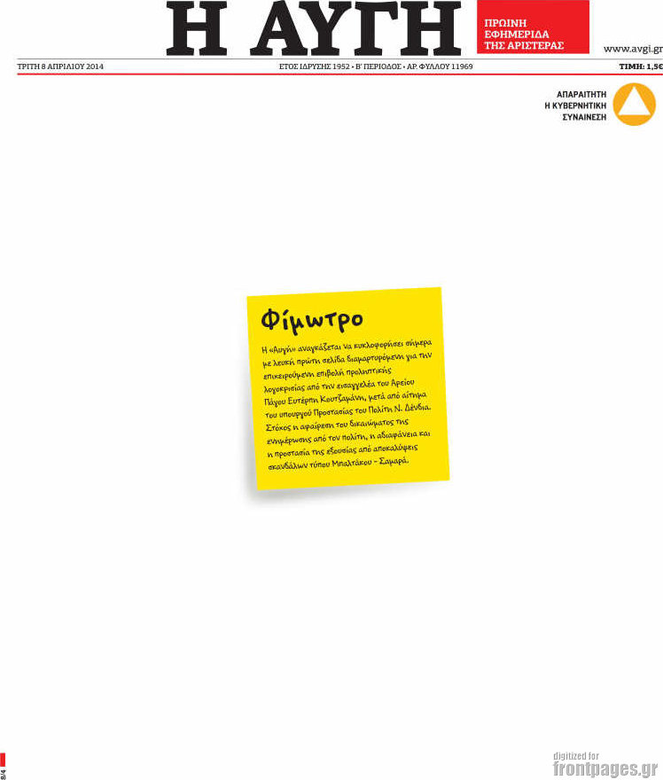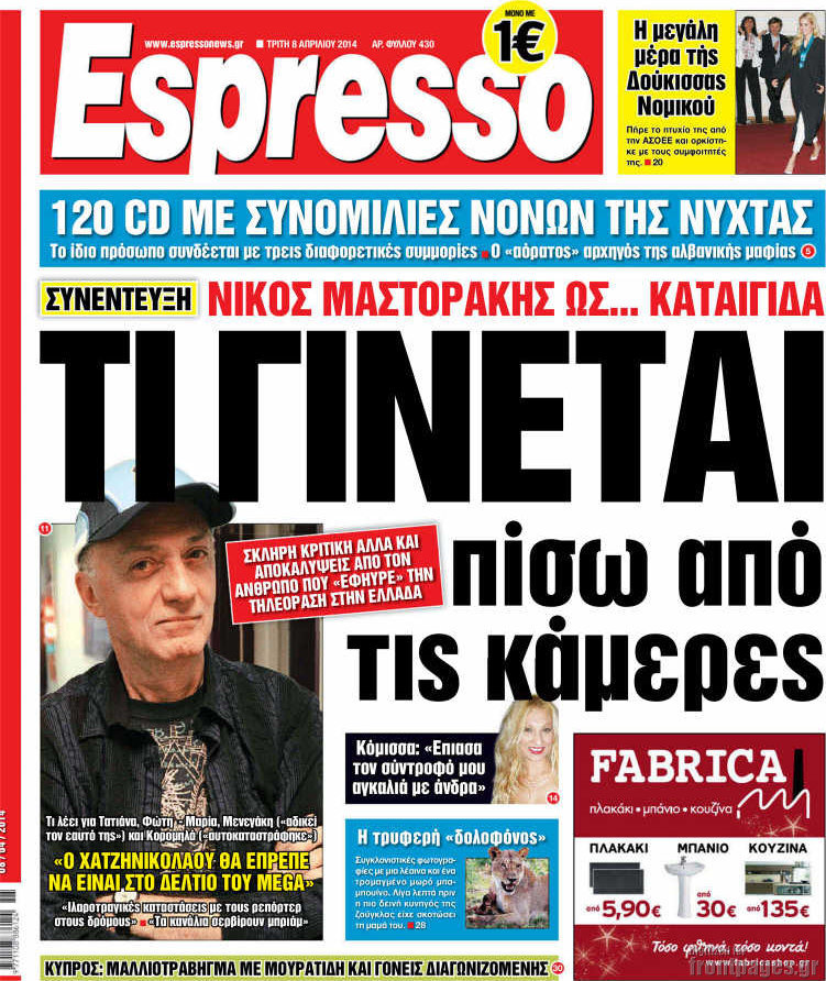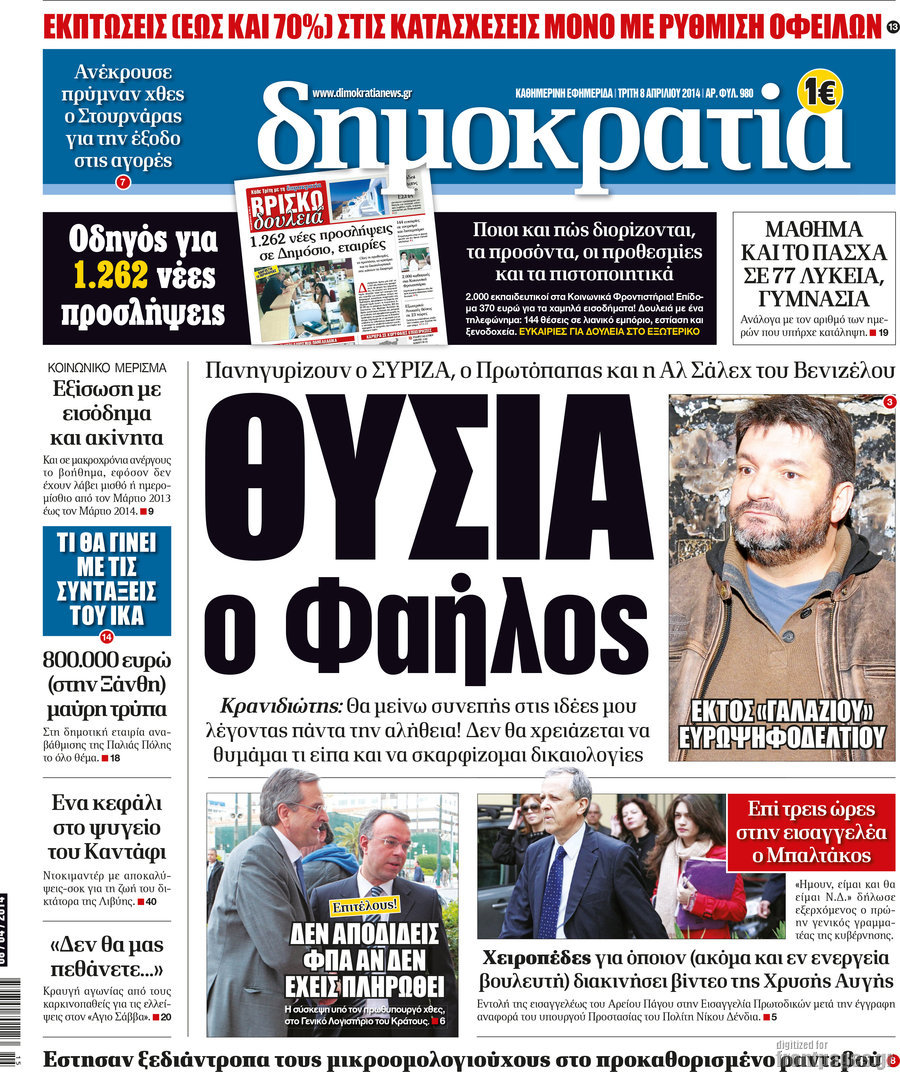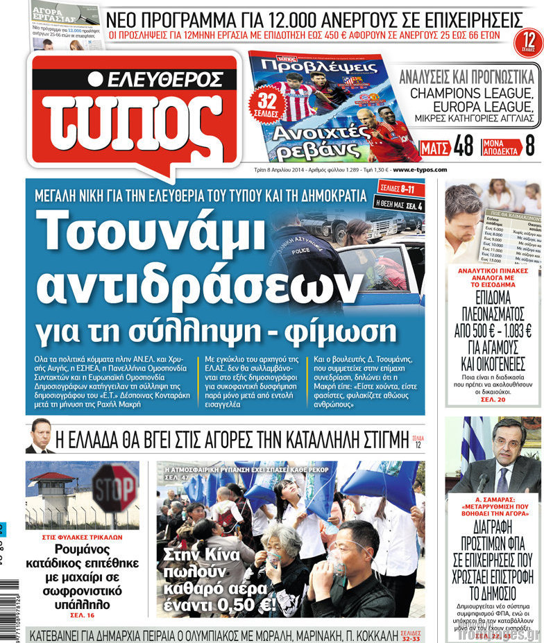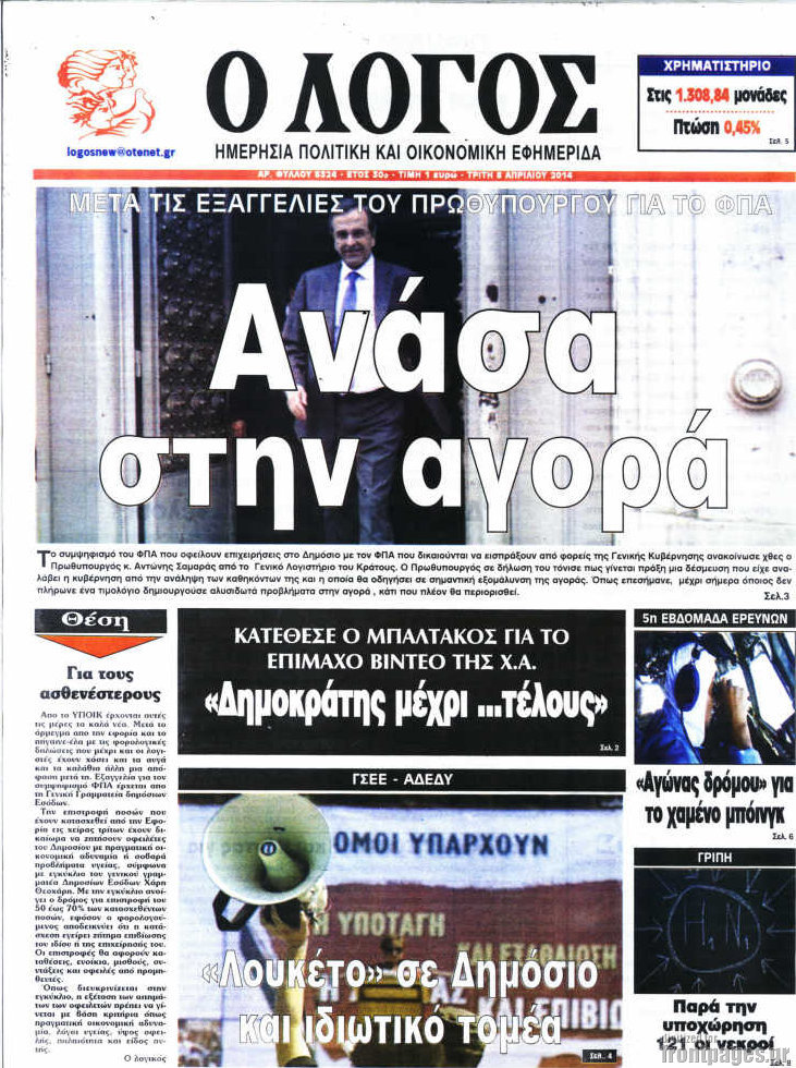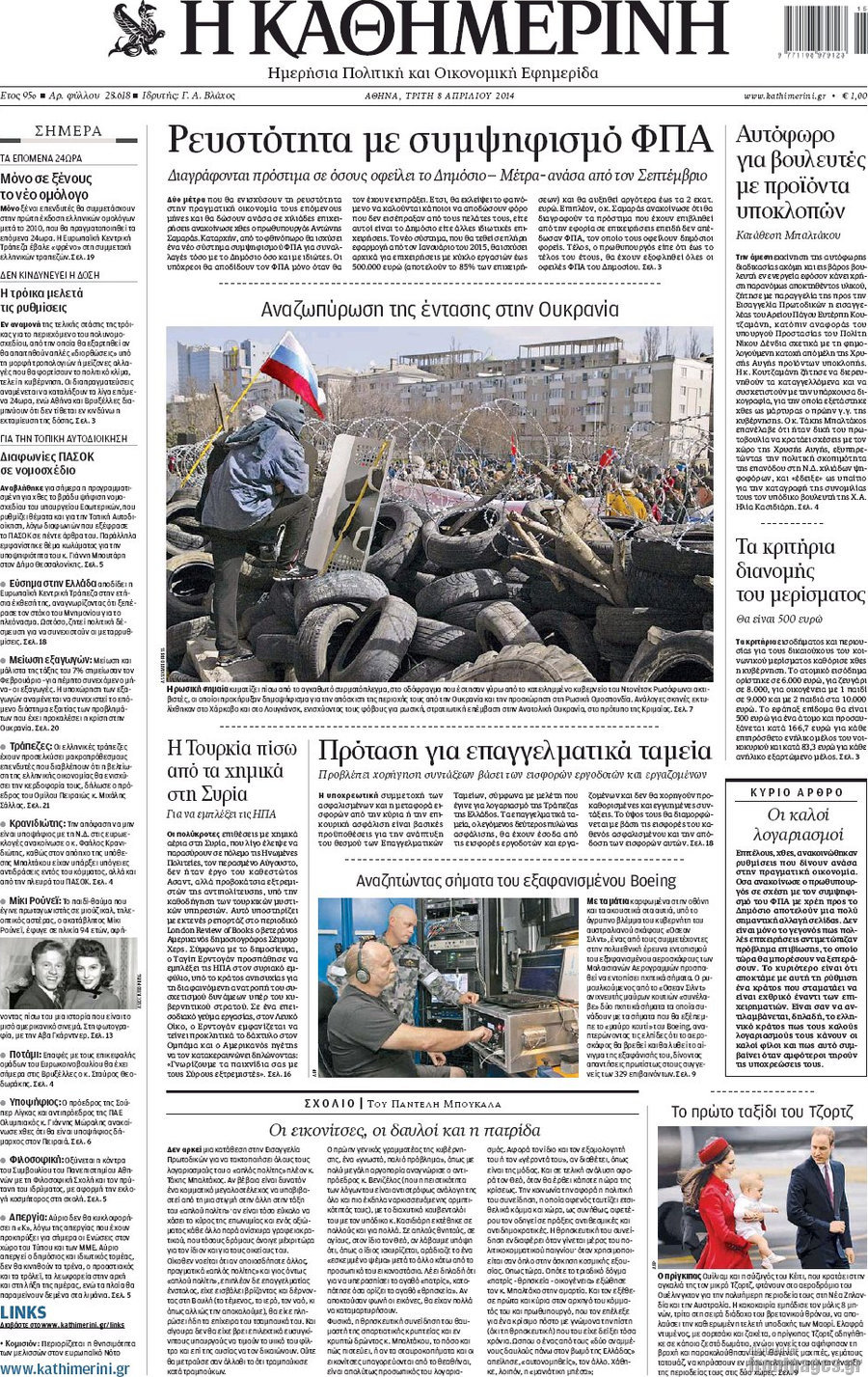 Οι πολιτικές εφημερίδες Enikos Newsroom 09:19, Τρίτη 08 Απριλίου 2014 Media Οι πολιτικές εφημερίδες Διαβάστε τα πρωτοσέλιδα των πολιτικών εφημερίδων: ΕΦΗΜΕΡΙΔΕΣ ΠΟΛΙΤΙΚΕΣ ΕΦΗΜΕΡΙΔΕΣ ΠΡΩΤΟΣΕΛΙΔΑ Μοιράσου το: σχολίασε κι εσύ (0 σχόλια) Ακολουθήστε το enikos.gr στο Google News και μάθετε πρώτοι όλες τις ειδήσεις Δείτε όλες τις τελευταίες ειδήσεις από την Ελλάδα και τον Κόσμο στο enikos.gr Ειδήσεις Ροή Ειδήσεων 1 ώρα πριν Υπόθεση Έπσταϊν: Το Υπουργείο Δικαιοσύνης δημοσιοποίησε μια σειρά από εξαιρετικά επεξεργασμένα αρχεία – «Λείπουν τα πιο σημαντικά έγγραφα», λένε οι Δημοκρατικοί 3 ώρες πριν Σαρωτικοί οι έλεγχοι στους δρόμους ενόψει εορτών – Μπλόκα της τροχαίας σε κεντρικές αρτηρίες της Αττικής 1 ώρα πριν ΟΝΕΧ – MEGATUGS: Ξεκίνησε η ναυπήγηση ρυμουλκών στην Ελλάδα – Προθάλαμος πολεμικών πλοίων – Δείτε φωτογραφίες και βίντεο 1 ώρα πριν Καιρός: Αλλαγή σκηνικού σήμερα με βροχές και πτώση της θερμοκρασίας – Οι προβλέψεις των μετεωρολόγων για τα Χριστούγεννα 10 ώρες πριν Χριστούγεννα στα μπλόκα: Επιμένουν στις κινητοποιήσεις τους οι αγρότες – Ανοίγουν τα διόδια το Σαββατοκύριακο 3 ώρες πριν Αυγά: Πόσα μπορείτε να τρώτε την ημέρα με ασφάλεια για μέγιστη πρόσληψη πρωτεΐνης 3 ώρες πριν Τα ζώδια σήμερα, Σάββατο 20 Δεκεμβρίου: Παρθένοι, το σύμπαν σας δίνει το κλειδί 3 ώρες πριν Οπτική ψευδαίσθηση: Μόνο αν είσαι ο Σέρλοκ Χολμς θα βρεις τον αριθμό «87» σε 7 δευτερόλεπτα 46 λεπτά πριν Αρχαιολόγοι ανακάλυψαν σε χωράφι απεικόνιση 600 ετών ενός Αγίου – Τα στοιχεία που δείχνουν ότι μαρτύρησε 8 λεπτά πριν Αμαλία Κωστοπούλου: Το μήνυμα για το χειρουργείο στο γόνατο – «Αυτός ο τραυματισμός μού στέρησε πολλά…» 15 λεπτά πριν Ο «χάρτης» με τις αυξήσεις και τις φοροελαφρύνσεις του 2026 – Ποιοι και πόσα κερδίζουν 23 λεπτά πριν Η τέλεια συνταγή για cookies με κομμάτια σοκολάτας 31 λεπτά πριν MyHealth App: Τα στοιχεία για τον Προσωπικό Βοηθό Υγείας Πολίτη – Τι ερωτήματα έγιναν μέσα σε 7 ημέρες 39 λεπτά πριν Τρομεροί γονείς: Η Μαρία Καβογιάννη εισβάλλει στο σπίτι της οικογένειας Στεφανίδη ENIKOS NETWORK Το τεστ των 10 δευτερολέπτων που μπορεί να προβλέψει το προσδόκιμο ζωής σας – Τι λέει ειδικός του Cleveland Επιλέξτε καρέκλα για να μάθετε ποια είναι τα κρυφά χαρακτηριστικά σας – Τι αποκάλυψε για εσάς αυτό το τεστ προσωπικότητας; Mega χριστουγεννιάτικη φορολοταρία: «Κλείδωσε» η ημερομηνία για την κλήρωση – Ερωτήσεις και απαντήσεις Αναστολή μέτρων αναγκαστικής εκτέλεσης για κτηνοτρόφους που πλήττονται από την ευλογιά των αιγοπροβάτων Χαρτογραφώντας το «σημείο χωρίς επιστροφή»: Για πρώτη φορά αποκαλύπτεται με λεπτομέρεια το ακανθώδες όριο της ατμόσφαιρας τ... Η Google καταργεί τη λειτουργία «dark web report» – Πώς θα μπορούν οι χρήστες να διαγράφουν τα δεδομένα τους περισσότερα 08:14 , Σάββατο 20 Δεκεμβρίου 2025 Τρομεροί γονείς: Η Μαρία Καβογιάννη εισβάλλει στο σπίτι της οικογένειας Στεφανίδη Όσα θα δούμε στο νέο διπλό επεισόδιο της σειράς «Τρομεροί γονείς», σήμερα Σάββατο 20 Δεκεμβρίο... 05:48 , Σάββατο 20 Δεκεμβρίου 2025 Οι οικονομικές εφημερίδες 20/12/2025 Διαβάστε τα πρωτοσέλιδα από τις οικονομικές εφημερίδες, σήμερα 20/12/2025. 05:43 , Σάββατο 20 Δεκεμβρίου 2025 Οι αθλητικές εφημερίδες 20/12/2025 Διαβάστε τα πρωτοσέλιδα από τις αθλητικές εφημερίδες, σήμερα 20/12/2025. 05:38 , Σάββατο 20 Δεκεμβρίου 2025 Οι πολιτικές εφημερίδες 20/12/2025 Διαβάστε τα πρωτοσέλιδα από τις πολιτικές εφημερίδες, σήμερα 20/12/2025. ΤΕΛΕΥΤΑΙΕΣ ΕΙΔΗΣΕΙΣ 8 λεπτά πριν Αμαλία Κωστοπούλου: Το μήνυμα γι