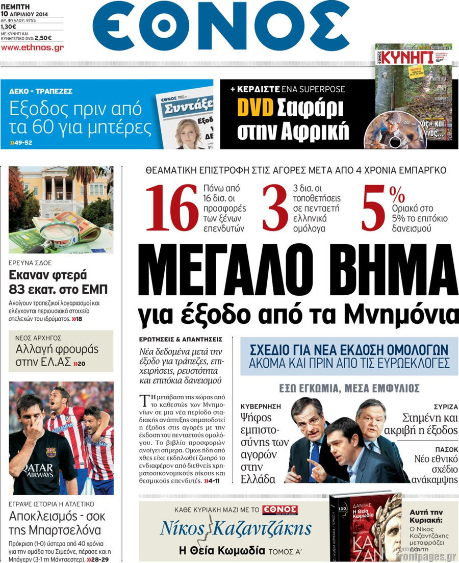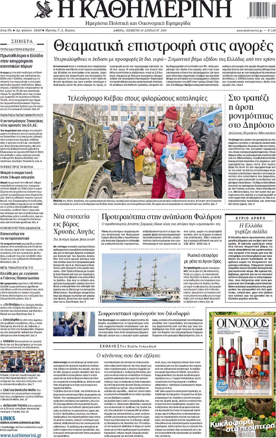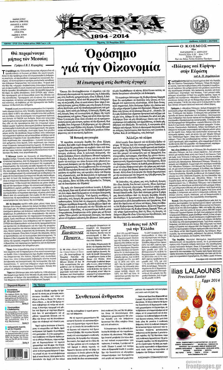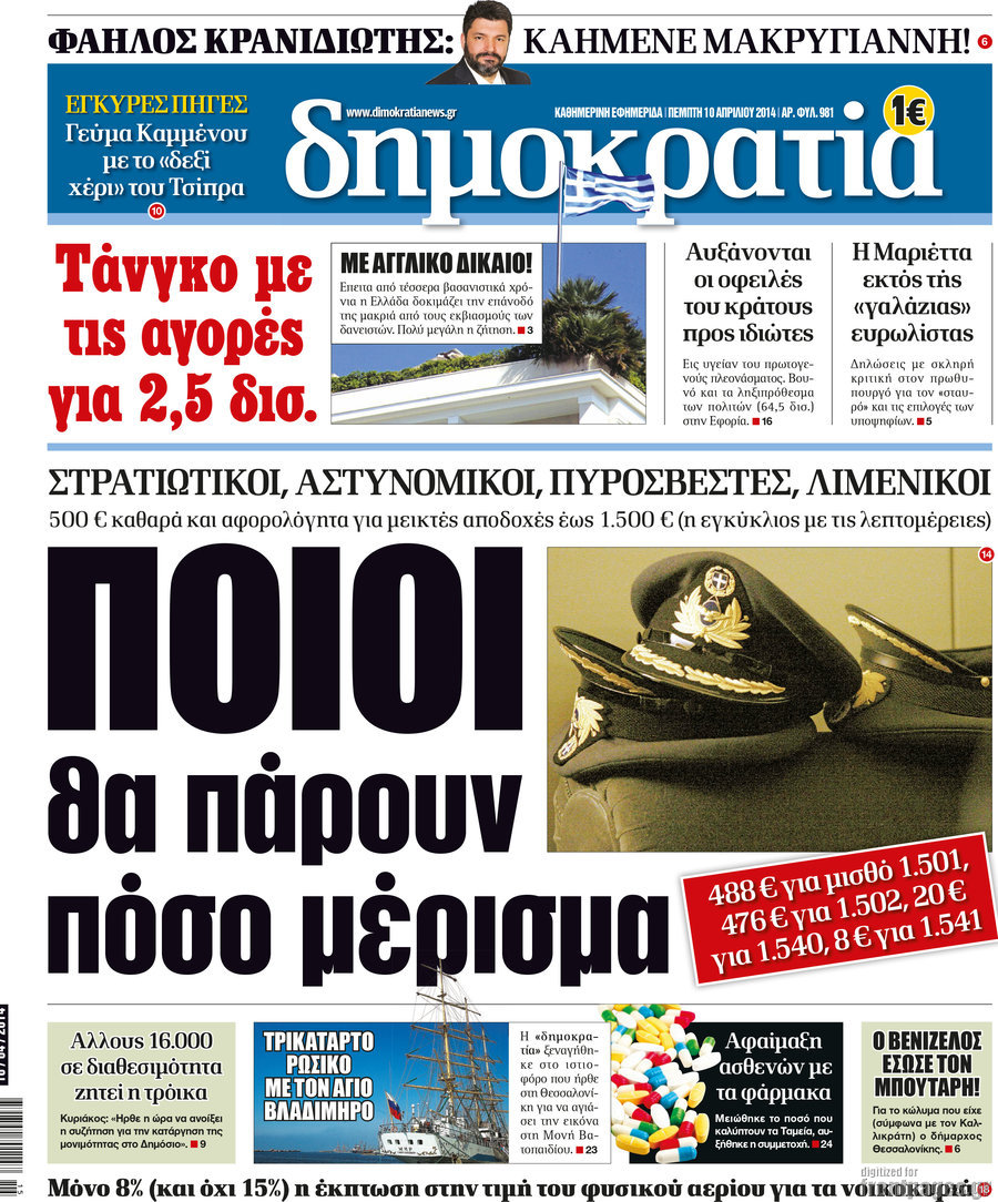 Οι πολιτικές εφημερίδες Enikos Newsroom 08:26, Πέμπτη 10 Απριλίου 2014 Media Οι πολιτικές εφημερίδες Διαβάστε τα πρωτοσέλιδα των πολιτικών εφημερίδων: ΕΦΗΜΕΡΙΔΕΣ ΠΟΛΙΤΙΚΕΣ ΕΦΗΜΕΡΙΔΕΣ ΠΡΩΤΟΣΕΛΙΔΑ Μοιράσου το: σχολίασε κι εσύ (0 σχόλια) Ακολουθήστε το enikos.gr στο Google News και μάθετε πρώτοι όλες τις ειδήσεις Δείτε όλες τις τελευταίες ειδήσεις από την Ελλάδα και τον Κόσμο στο enikos.gr Ειδήσεις Ροή Ειδήσεων 2 ώρες πριν Νέες εστίες ακρίβειας «ροκανίζουν» τα εισοδήματα – Πού καταγράφονται οι μεγαλύτερες αυξήσεις 1 ώρα πριν Συνεχίζουν τις κινητοποιήσεις οι αγρότες: Κλείνουν τις σήραγγες των Τεμπών για τα φορτηγά – Τι θα γίνει τα Χριστούγεννα 2 ώρες πριν «Έπιασαν δουλειά» οι 8 κάμερες που λειτουργούν πιλοτικά – Περισσότερες από 1.000 παραβάσεις σε 4 ημέρες 1 ώρα πριν Ουκρανία: Συνομιλίες στη Φλόριντα με υποσημειώσεις και βαθιές διαφωνίες – Το δύσκολο παζλ των διαπραγματεύσεων και το χάσμα Ουάσιγκτον – Μόσχας 2 ώρες πριν Η Τουρκία μοστράρει τις κορβέτες της – Η χαμένη ευκαιρία της Ελλάδας 3 ώρες πριν Άνοια και εγκεφαλικό: Γιατρός προειδοποιεί για ένα δημοφιλές ρόφημα που αυξάνει τον κίνδυνο κατά 290% και 300% αντίστοιχα 27 λεπτά πριν Ο άνδρας της απαιτεί να κάνει όλες τις δουλειές του σπιτιού από τότε που παραιτήθηκε – «Εξακολουθώ να συνδράμω οικονομικά στο σπίτι» 1 ώρα πριν Ανακαλύφθηκε βραχογράφημα που παραπέμπει στον Ηρακλή και την Ύδρα από ελληνικά νομίσματα του 325 π.Χ. 2 ημέρες πριν Enerwave: Το νέο «ρεύμα» στη λιανική ενέργειας που αλλάζει την εμπειρία του καταναλωτή 2 λεπτά πριν Σοκ στη Φλόριντα: Δύο ανήλικοι δολοφόνησαν 14χρονη και έκαψαν το πτώμα της για μια διαμάχη στα social media 6 λεπτά πριν Νέες δηλώσεις του αγροτοσυνδικαλιστή Ανεστίδη: Όσα λέγονται είναι λάσπη στον ανεμιστήρα για να σπάσουν τα μπλόκα 8 λεπτά πριν Τηλεθέαση (21/12): Μάχη στην prime time – Ποιοι ξεχώρισαν σε δυναμικό και σύνολο 12 λεπτά πριν Σίδνεϊ: Οι δράστες της τρομοκρατικής επίθεσης εκπαιδεύτηκαν στην Αυστραλία – Τα στοιχεία που τους συνδέουν με το Ισλαμικό Κράτος 18 λεπτά πριν Συναγερμός στην UNESCO για την Αγιά Σοφιά – Ζητεί από την τουρκική κυβέρνηση να γινει αυτοψία ENIKOS NETWORK Ποιο γλυκό φρούτο ρυθμίζει το σάκχαρο και μπορούν να φάνε οι διαβητικοί, σύμφωνα με μελέτη Νέα δεδομένα αλλάζουν τη θεραπευτική προσέγγιση στον καρκίνο του παγκρέατος Νέες εστίες ακρίβειας «ροκανίζουν» τα εισοδήματα – Πού καταγράφονται οι μεγαλύτερες αυξήσεις Νέο έτος ρεκόρ για τον ελληνικό τουρισμό το 2025: «Είμαστε μέσα στους 10 πλέον επισκέψιμους προορισμούς παγκοσμίως» λέει η ... Χαρτογραφώντας το «σημείο χωρίς επιστροφή»: Για πρώτη φορά αποκαλύπτεται με λεπτομέρεια το ακανθώδες όριο της ατμόσφαιρας τ... Η Google καταργεί τη λειτουργία «dark web report» – Πώς θα μπορούν οι χρήστες να διαγράφουν τα δεδομένα τους περισσότερα 07:02 , Δευτέρα 22 Δεκεμβρίου 2025 Αυτή την Κυριακή με τη Realnews: Το μυστήριο των Χριστουγέννων της Vicki Delany – Μαζί αστυνομικά μυθιστορήματα Αυτή την Κυριακή με τη Realnews: Το μυστήριο των Χριστουγέννων της Vicki Delany – Μαζί α... 05:48 , Δευτέρα 22 Δεκεμβρίου 2025 Οι οικονομικές εφημερίδες 22/12/2025 Διαβάστε τα πρωτοσέλιδα από τις οικονομικές εφημερίδες, σήμερα 22/12/2025 05:43 , Δευτέρα 22 Δεκεμβρίου 2025 Οι αθλητικές εφημερίδες 22/12/2025 Διαβάστε τα πρωτοσέλιδα από τις αθλητικές εφημερίδες, σήμερα 22/12/2025. 05:38 , Δευτέρα 22 Δεκεμβρίου 2025 Οι πολιτικές εφημερίδες 22/12/2025 Διαβάστε τα πρωτοσέλιδα από τις πολιτικές εφημερίδες, σήμερα 22/12/2025. ΤΕΛΕΥΤΑΙΕΣ ΕΙΔΗΣΕΙΣ 2 λεπτ