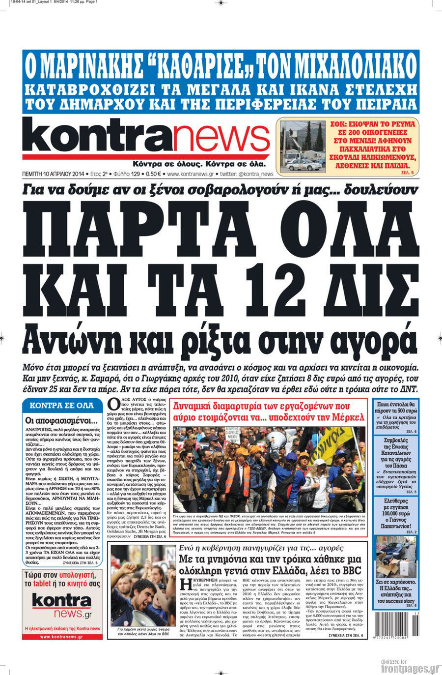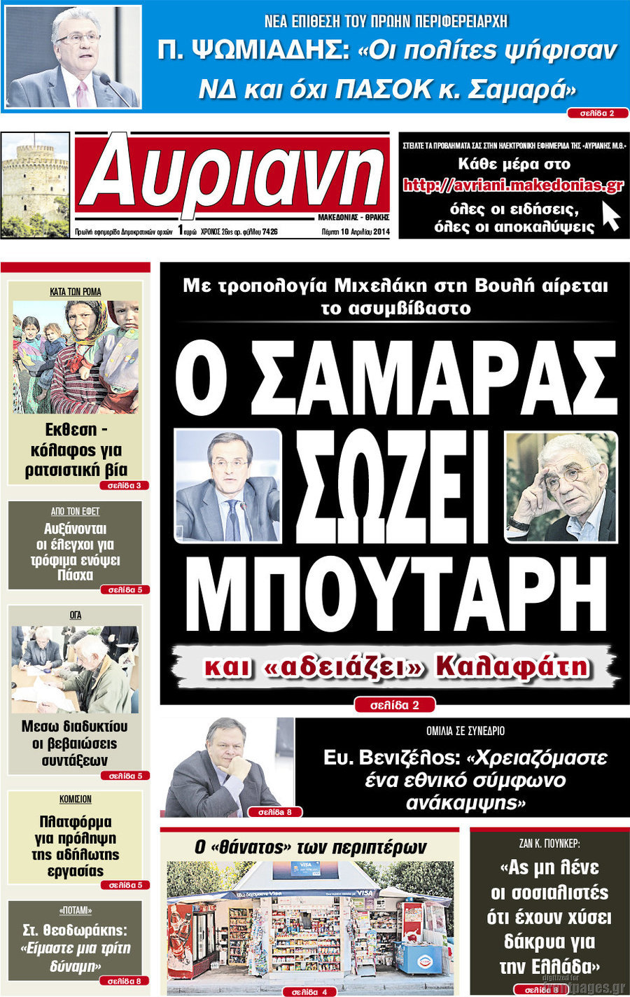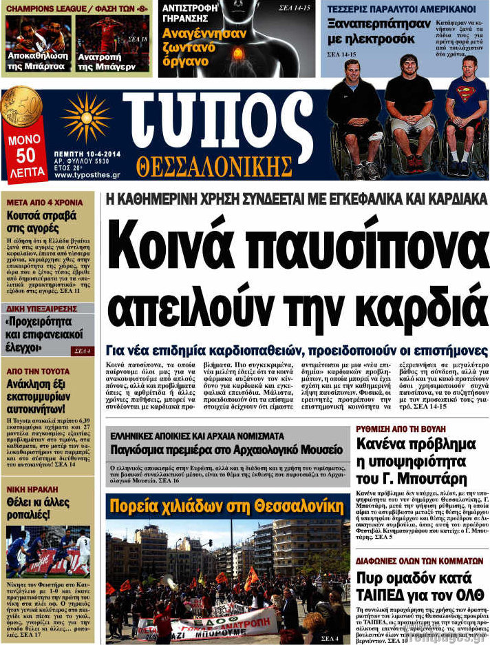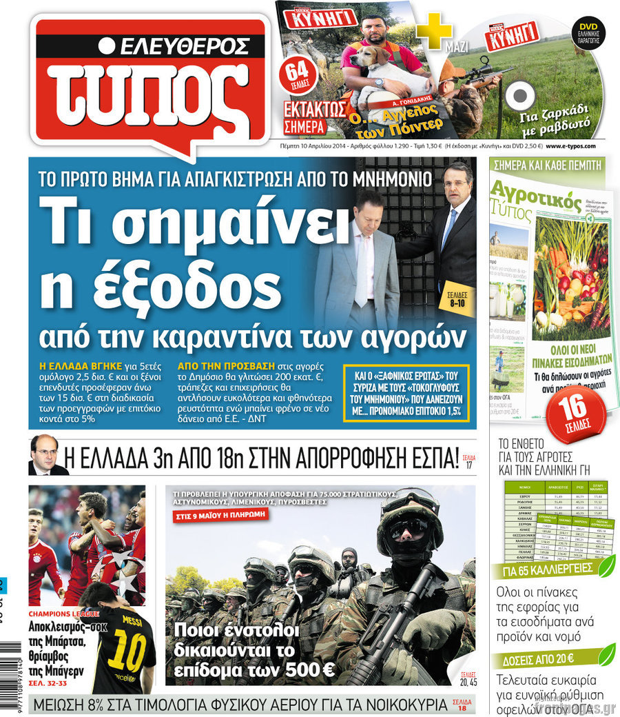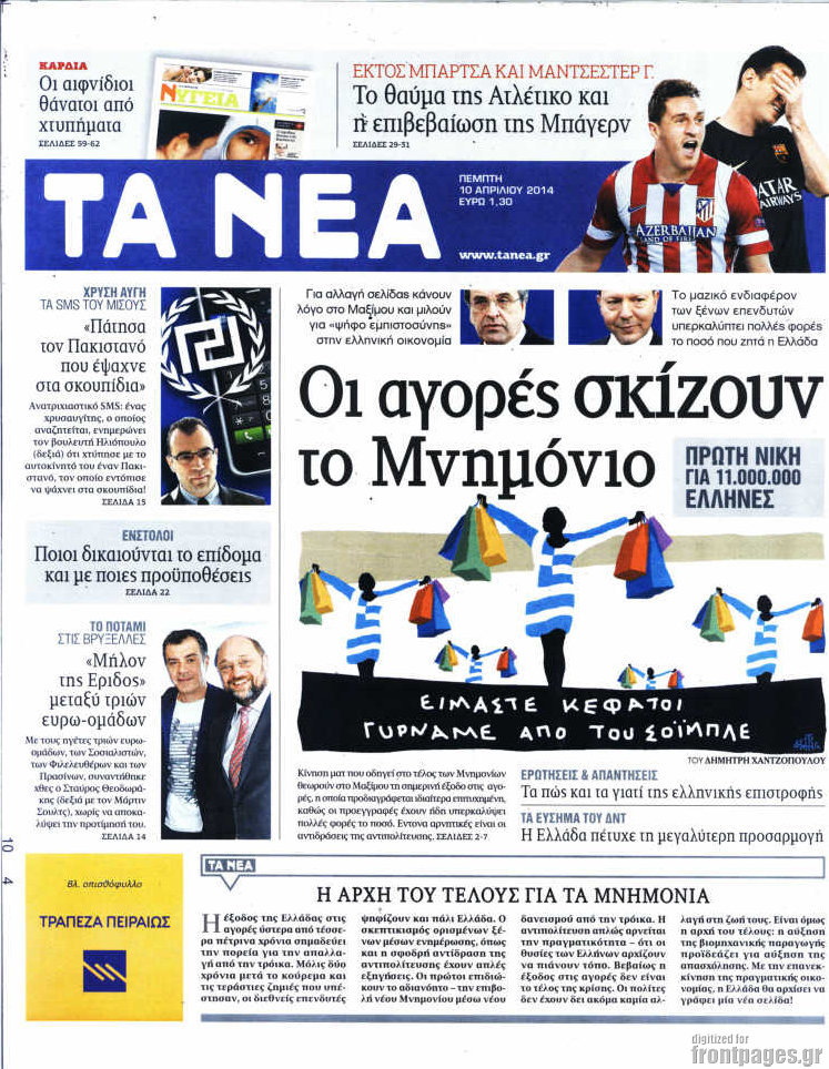 Οι πολιτικές εφημερίδες Enikos Newsroom 08:26, Πέμπτη 10 Απριλίου 2014 Media Οι πολιτικές εφημερίδες Διαβάστε τα πρωτοσέλιδα των πολιτικών εφημερίδων: ΕΦΗΜΕΡΙΔΕΣ ΠΟΛΙΤΙΚΕΣ ΕΦΗΜΕΡΙΔΕΣ ΠΡΩΤΟΣΕΛΙΔΑ Μοιράσου το: σχολίασε κι εσύ (0 σχόλια) Ακολουθήστε το enikos.gr στο Google News και μάθετε πρώτοι όλες τις ειδήσεις Δείτε όλες τις τελευταίες ειδήσεις από την Ελλάδα και τον Κόσμο στο enikos.gr Ειδήσεις Ροή Ειδήσεων 2 ώρες πριν Νέες εστίες ακρίβειας «ροκανίζουν» τα εισοδήματα – Πού καταγράφονται οι μεγαλύτερες αυξήσεις 1 ώρα πριν Συνεχίζουν τις κινητοποιήσεις οι αγρότες: Κλείνουν τις σήραγγες των Τεμπών για τα φορτηγά – Τι θα γίνει τα Χριστούγεννα 2 ώρες πριν «Έπιασαν δουλειά» οι 8 κάμερες που λειτουργούν πιλοτικά – Περισσότερες από 1.000 παραβάσεις σε 4 ημέρες 1 ώρα πριν Ουκρανία: Συνομιλίες στη Φλόριντα με υποσημειώσεις και βαθιές διαφωνίες – Το δύσκολο παζλ των διαπραγματεύσεων και το χάσμα Ουάσιγκτον – Μόσχας 2 ώρες πριν Η Τουρκία μοστράρει τις κορβέτες της – Η χαμένη ευκαιρία της Ελλάδας 3 ώρες πριν Άνοια και εγκεφαλικό: Γιατρός προειδοποιεί για ένα δημοφιλές ρόφημα που αυξάνει τον κίνδυνο κατά 290% και 300% αντίστοιχα 27 λεπτά πριν Ο άνδρας της απαιτεί να κάνει όλες τις δουλειές του σπιτιού από τότε που παραιτήθηκε – «Εξακολουθώ να συνδράμω οικονομικά στο σπίτι» 1 ώρα πριν Ανακαλύφθηκε βραχογράφημα που παραπέμπει στον Ηρακλή και την Ύδρα από ελληνικά νομίσματα του 325 π.Χ. 2 ημέρες πριν Enerwave: Το νέο «ρεύμα» στη λιανική ενέργειας που αλλάζει την εμπειρία του καταναλωτή 2 λεπτά πριν Σοκ στη Φλόριντα: Δύο ανήλικοι δολοφόνησαν 14χρονη και έκαψαν το πτώμα της για μια διαμάχη στα social media 6 λεπτά πριν Νέες δηλώσεις του αγροτοσυνδικαλιστή Ανεστίδη: Όσα λέγονται είναι λάσπη στον ανεμιστήρα για να σπάσουν τα μπλόκα 8 λεπτά πριν Τηλεθέαση (21/12): Μάχη στην prime time – Ποιοι ξεχώρισαν σε δυναμικό και σύνολο 12 λεπτά πριν Σίδνεϊ: Οι δράστες της τρομοκρατικής επίθεσης εκπαιδεύτηκαν στην Αυστραλία – Τα στοιχεία που τους συνδέουν με το Ισλαμικό Κράτος 18 λεπτά πριν Συναγερμός στην UNESCO για την Αγιά Σοφιά – Ζητεί από την τουρκική κυβέρνηση να γινει αυτοψία ENIKOS NETWORK Ποιο γλυκό φρούτο ρυθμίζει το σάκχαρο και μπορούν να φάνε οι διαβητικοί, σύμφωνα με μελέτη Νέα δεδομένα αλλάζουν τη θεραπευτική προσέγγιση στον καρκίνο του παγκρέατος Νέες εστίες ακρίβειας «ροκανίζουν» τα εισοδήματα – Πού καταγράφονται οι μεγαλύτερες αυξήσεις Νέο έτος ρεκόρ για τον ελληνικό τουρισμό το 2025: «Είμαστε μέσα στους 10 πλέον επισκέψιμους προορισμούς παγκοσμίως» λέει η ... Χαρτογραφώντας το «σημείο χωρίς επιστροφή»: Για πρώτη φορά αποκαλύπτεται με λεπτομέρεια το ακανθώδες όριο της ατμόσφαιρας τ... Η Google καταργεί τη λειτουργία «dark web report» – Πώς θα μπορούν οι χρήστες να διαγράφουν τα δεδομένα τους περισσότερα 07:02 , Δευτέρα 22 Δεκεμβρίου 2025 Αυτή την Κυριακή με τη Realnews: Το μυστήριο των Χριστουγέννων της Vicki Delany – Μαζί αστυνομικά μυθιστορήματα Αυτή την Κυριακή με τη Realnews: Το μυστήριο των Χριστουγέννων της Vicki Delany – Μαζί α... 05:48 , Δευτέρα 22 Δεκεμβρίου 2025 Οι οικονομικές εφημερίδες 22/12/2025 Διαβάστε τα πρωτοσέλιδα από τις οικονομικές εφημερίδες, σήμερα 22/12/2025 05:43 , Δευτέρα 22 Δεκεμβρίου 2025 Οι αθλητικές εφημερίδες 22/12/2025 Διαβάστε τα πρωτοσέλιδα από τις αθλητικές εφημερίδες, σήμερα 22/12/2025. 05:38 , Δευτέρα 22 Δεκεμβρίου 2025 Οι πολιτικές εφημερίδες 22/12/2025 Διαβάστε τα πρωτοσέλιδα από τις πολιτικές εφημερίδες, σήμερα 22/12/2025. ΤΕΛΕΥΤΑΙΕΣ ΕΙΔΗΣΕΙΣ 2 λεπτ