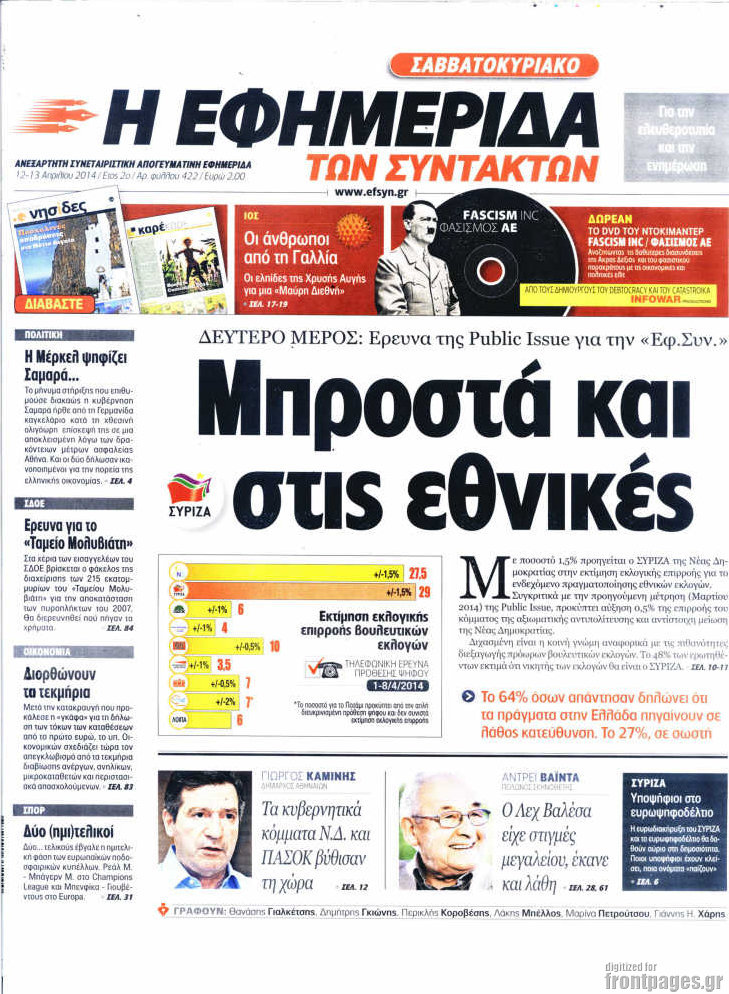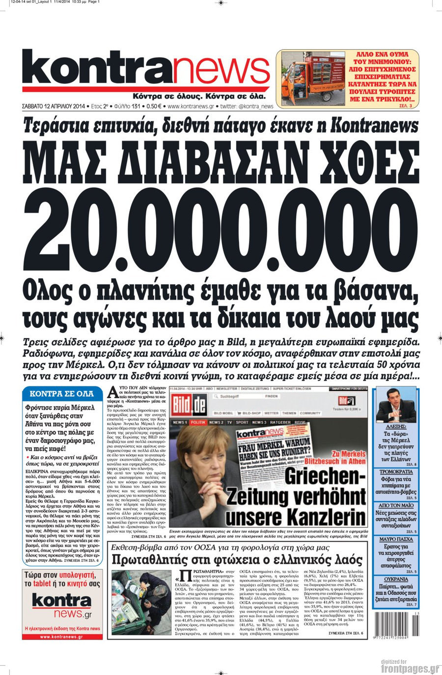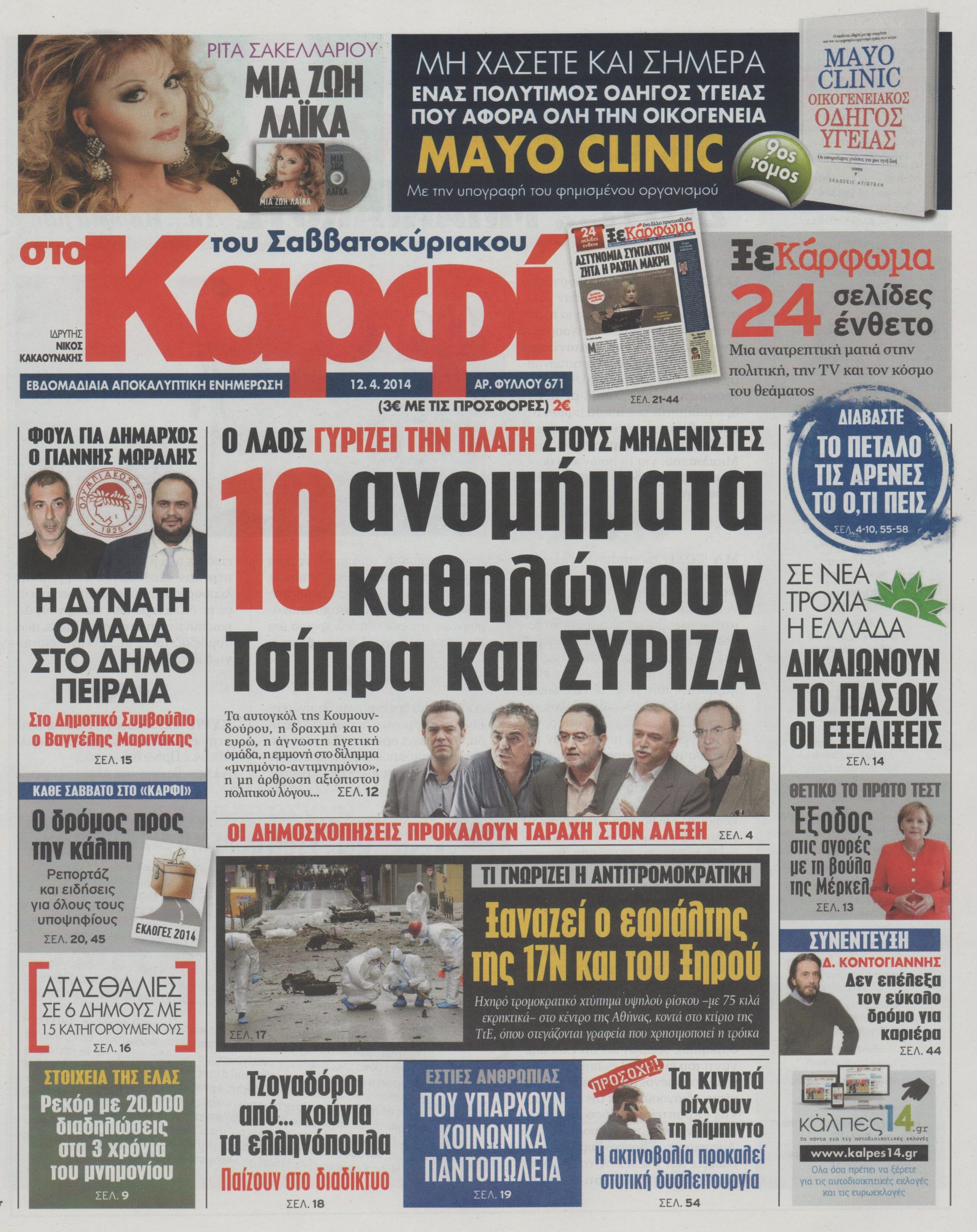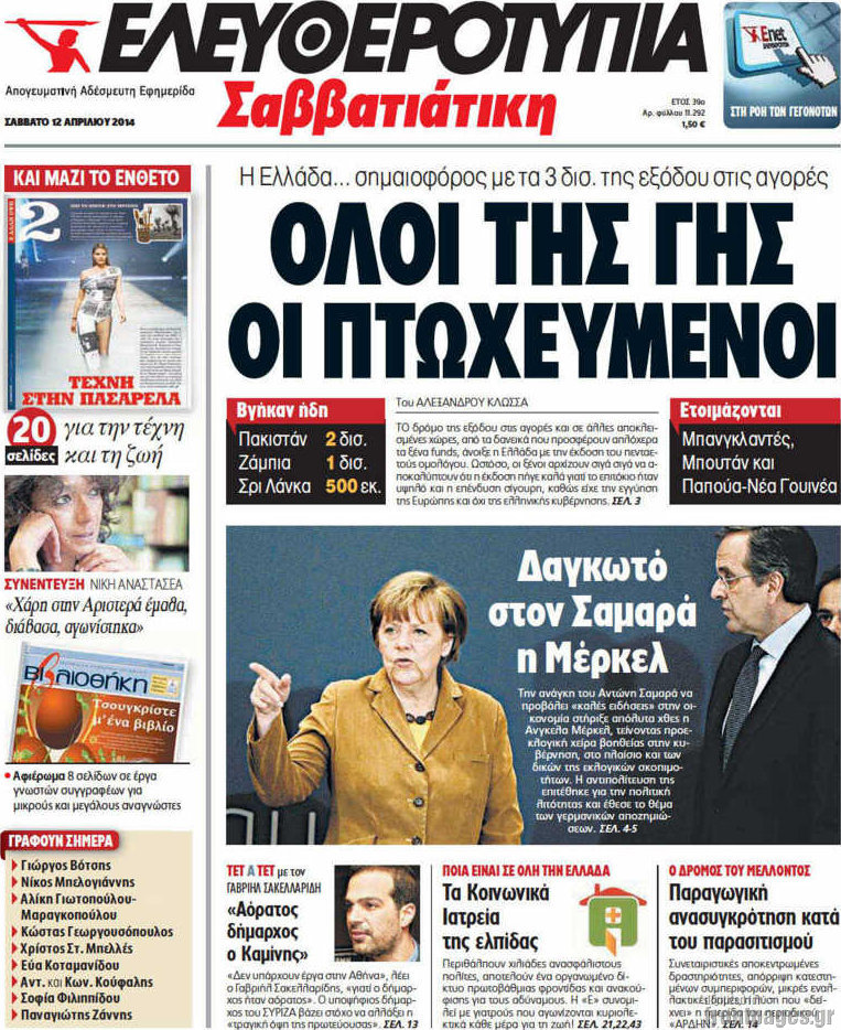 Οι πολιτικές εφημερίδες Enikos Newsroom 07:48, Σάββατο 12 Απριλίου 2014 Media Οι πολιτικές εφημερίδες ΕΦΗΜΕΡΙΔΕΣ ΠΟΛΙΤΙΚΕΣ ΕΦΗΜΕΡΙΔΕΣ Μοιράσου το: σχολίασε κι εσύ (0 σχόλια) Ακολουθήστε το enikos.gr στο Google News και μάθετε πρώτοι όλες τις ειδήσεις Δείτε όλες τις τελευταίες ειδήσεις από την Ελλάδα και τον Κόσμο στο enikos.gr Ειδήσεις Ροή Ειδήσεων 29 λεπτά πριν Μητσοτάκης σε αγρότες: Είμαστε ανοιχτοί στον διάλογο, αλλά όχι στο παράλογο – Η διεκδίκηση αιτημάτων οφείλει να γίνεται με σεβασμό στο κοινωνικό σύνολο 45 λεπτά πριν Γρίπη: «Καμπανάκι» από τους επιστήμονες για έξαρση κρουσμάτων στις γιορτές – Ποιοι κινδυνεύουν και πώς προστατευόμαστε 2 ώρες πριν Γαλλία: Έτοιμοι για Χριστούγεννα στους δρόμους οι αγρότες – «Οι δεσμεύσεις της κυβέρνησης δεν είναι αρκετές» 1 ώρα πριν Φοροδιαφυγή και «κενό ΦΠΑ»: Πώς τα ψηφιακά εργαλεία έφεραν δισεκατομμύρια στα ταμεία του Δημοσίου 3 ώρες πριν Τζορτζ Κλούνεϊ: Πέθανε η αδελφή του, Άντα Ζάιντλερ – «Η ηρωίδα μου» 39 λεπτά πριν Τα άστρα ευνοούν σκανδαλωδώς 4 ζώδια – «Εμφανίζονται ξαφνικά ευκαιρίες γιατί αποφασίζετε να αφήσετε πίσω το παρελθόν» 2 ώρες πριν Οι γονείς της θέλουν να έχουν πρόσβαση στον τραπεζικό της λογαριασμό – «Επιμένουν πως στις οικογένειες δεν υπάρχουν μυστικά» 2 ώρες πριν Αρχαιολόγοι ανακάλυψαν κάτι που δεν περίμεναν: Τα μαθηματικά υπήρχαν πριν από τους αριθμούς – Το μυστικό που κρύβεται πίσω από περίεργα αγγεία 8.000 ετών 1 ημέρα πριν Enerwave: Το νέο «ρεύμα» στη λιανική ενέργειας που αλλάζει την εμπειρία του καταναλωτή 5 λεπτά πριν Τηλεθέαση (20/12): Πρωτιά για το The Voice στην prime time – Τα ποσοστά στο δυναμικό και στο γενικό σύνολο 9 λεπτά πριν Συναγερμός στην Σκύρο – Ακυβέρνητο δεξαμενόπλοιο λόγω μπλακ άουτ 13 λεπτά πριν Σοκ στις Πινακάτες: Νεκρός ο πρόεδρος του χωριού Νίκος Παππάς – Κατέρρευσε μπροστά στη σύζυγο και τα παιδιά του 21 λεπτά πριν Πώς «ακούγονται» το Δέλτα του Αξιού και η λίμνη Ορεστιάδα; Οι πρώτες ηχογραφήσεις των επιστημόνων δείχνουν κάτι απρόσμενο 29 λεπτά πριν Μητσοτάκης σε αγρότες: Είμαστε ανοιχτοί στον διάλογο, αλλά όχι στο παράλογο – Η διεκδίκηση αιτημάτων οφείλει να γίνεται με σεβασμό στο κοινωνικό σύνολο ENIKOS NETWORK Έχετε καταρροή και φαγούρα στα μάτια στις γιορτές; Μπορεί να ευθύνεται το σύνδρομο χριστουγεννιάτικου δέντρου Η Danielle Fishel μετά τη διάγνωση καρκίνου του μαστού: «Είμαι καλά και νιώθω ευγνωμοσύνη» Ανοιχτά τα καταστήματα σήμερα – Μέχρι τι ώρα μπορείτε να κάνετε τις αγορές σας Πρωτοχρονιά 2026: Πόσο θα κοστίσει φέτος η βασιλόπιτα – Οι τιμές σε ζαχαροπλαστεία, φούρνους και σούπερ μάρκετ Χαρτογραφώντας το «σημείο χωρίς επιστροφή»: Για πρώτη φορά αποκαλύπτεται με λεπτομέρεια το ακανθώδες όριο της ατμόσφαιρας τ... Η Google καταργεί τη λειτουργία «dark web report» – Πώς θα μπορούν οι χρήστες να διαγράφουν τα δεδομένα τους περισσότερα 09:43 , Κυριακή 21 Δεκεμβρίου 2025 Το λάθος στην ταινία Die Hard που άφησε άναυδους τους θαυμαστές του Μπρους Γουίλις Ένας φανατικός των ταινιών άφησε άναυδους τους θαυμαστές του Die Hard, επισημαίνοντας τρία βασ... 08:13 , Κυριακή 21 Δεκεμβρίου 2025 Άγιος έρωτας: Ένας καταστροφικός σεισμός χτυπά τη Στέρνα Καταιγιστικές είναι οι εξελίξεις στα δυο τελευταία, συγκλονιστικά επεισόδια του 2025 της σειρά... 08:00 , Κυριακή 21 Δεκεμβρίου 2025 Σήμερα με τη Realnews: Ό,τι και αν αγοράσεις, σκανάρεις και κερδίζεις! Σήμερα με τη Realnews: Ό,τι και αν αγοράσεις, σκανάρεις και κερδίζεις! Με το PADU app, το κορυ... 07:00 , Κυριακή 21 Δεκεμ
