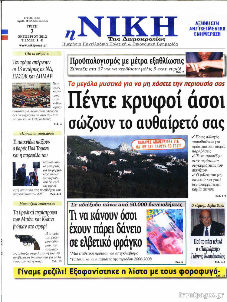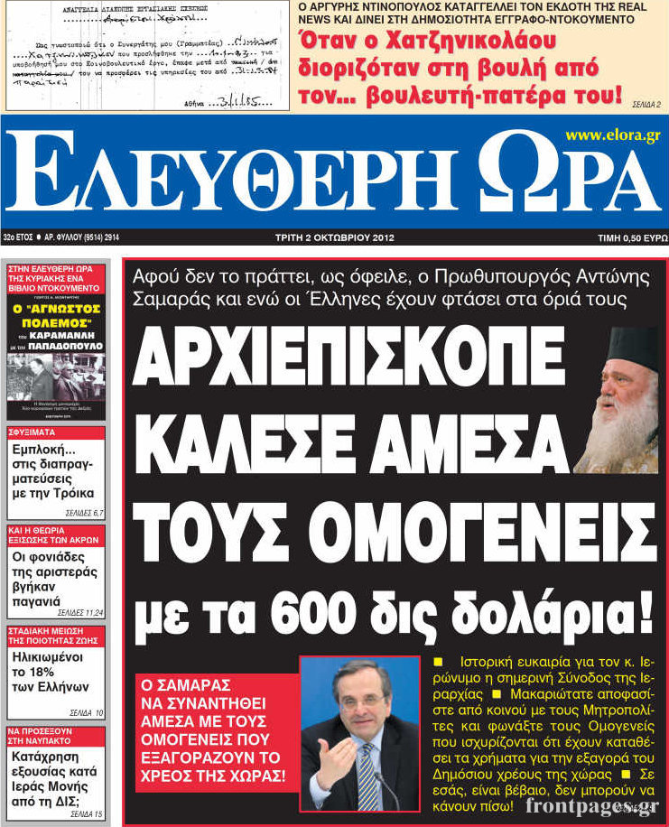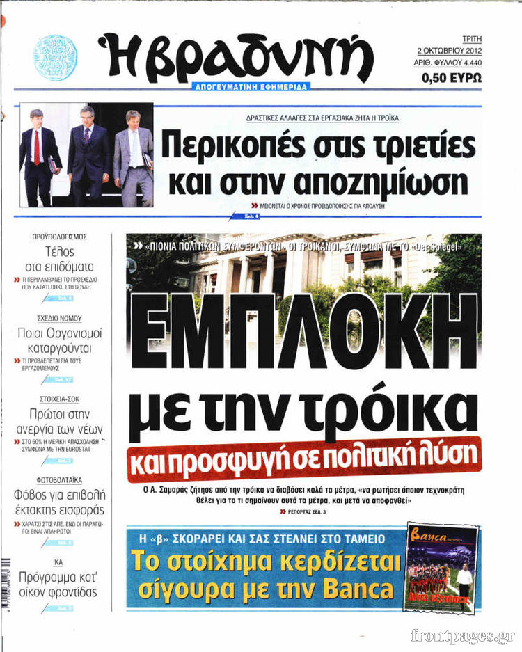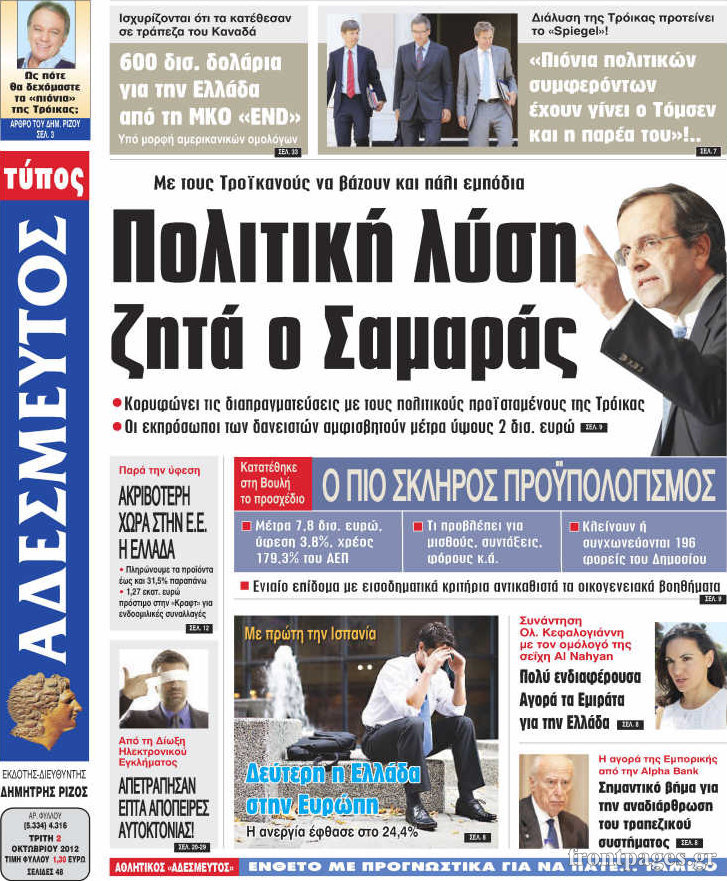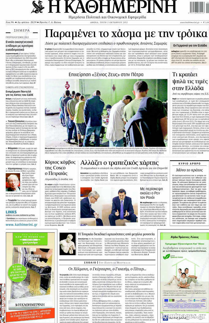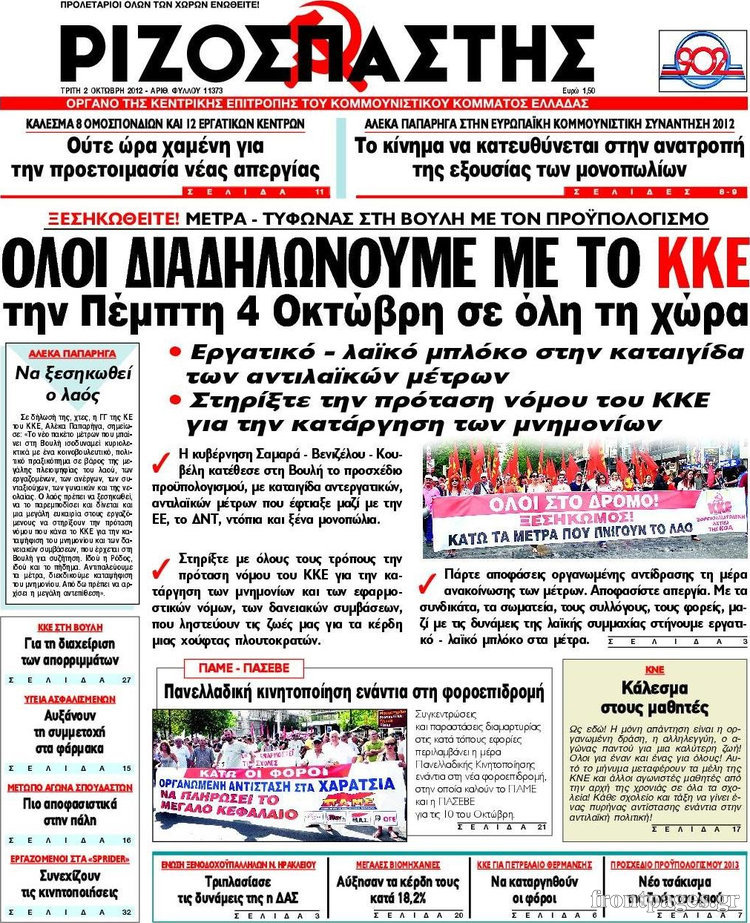 Διαβάστε τα σημερινά πρωτοσέλιδα των πολιτικών εφημερίδων.