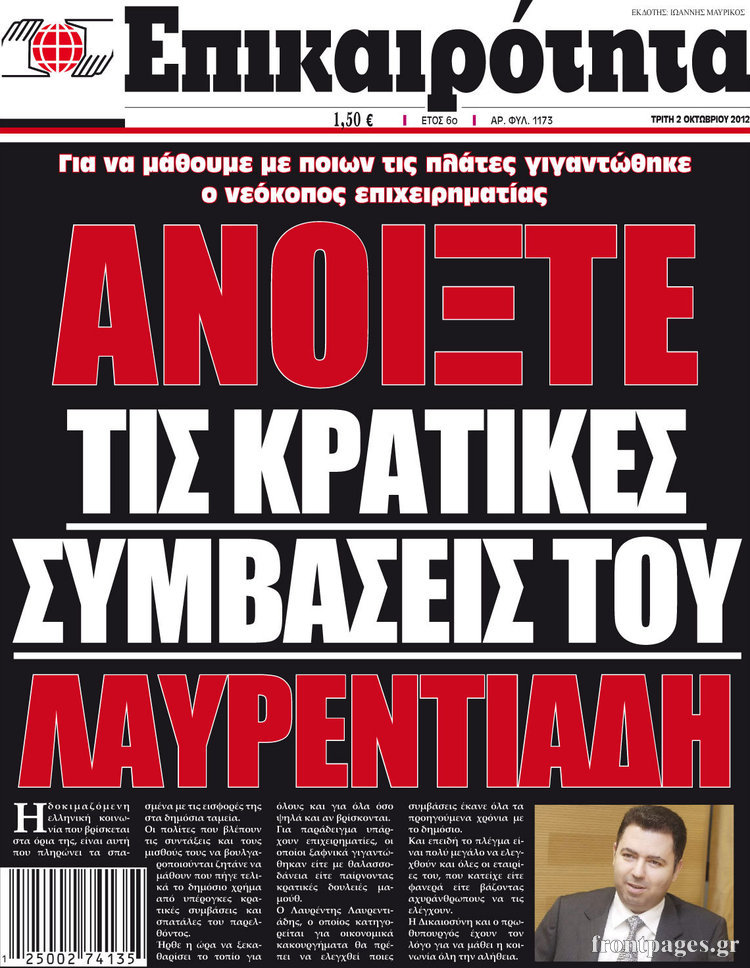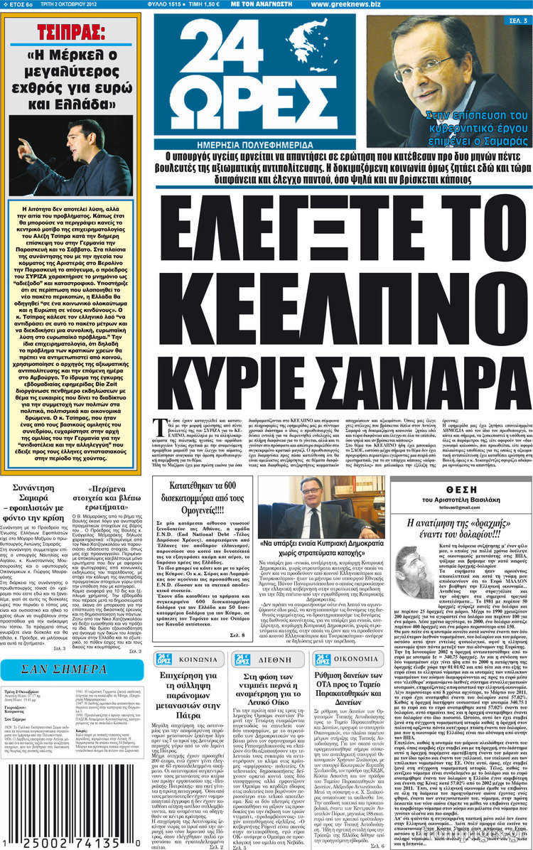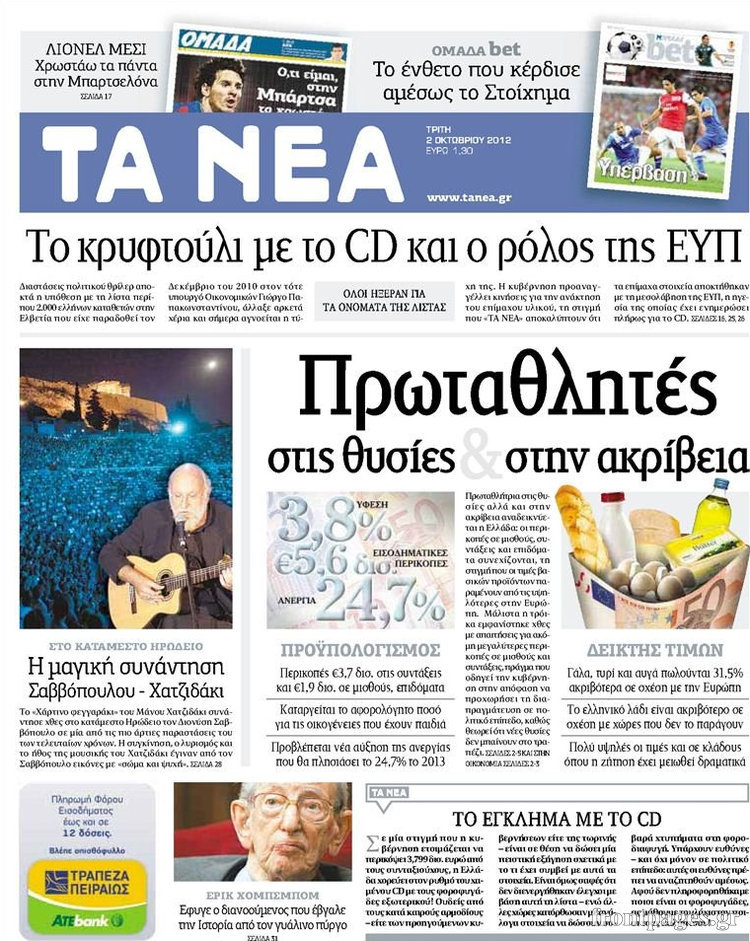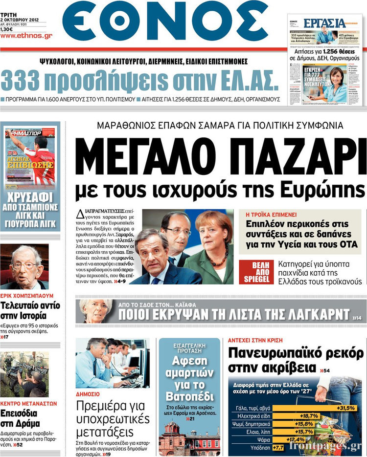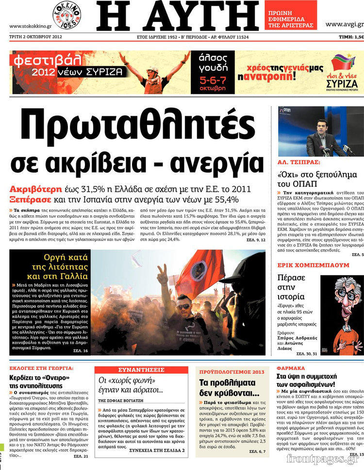 Διαβάστε τα σημερινά πρωτοσέλιδα των πολιτικών εφημερίδων.