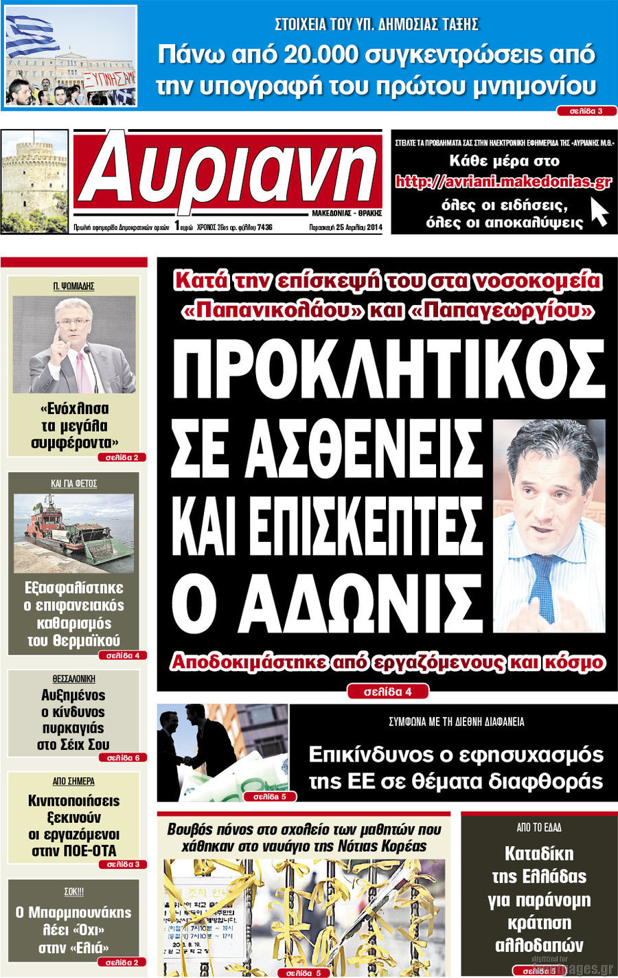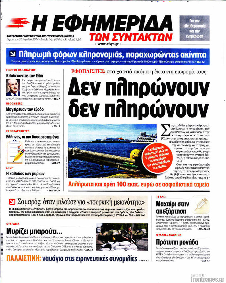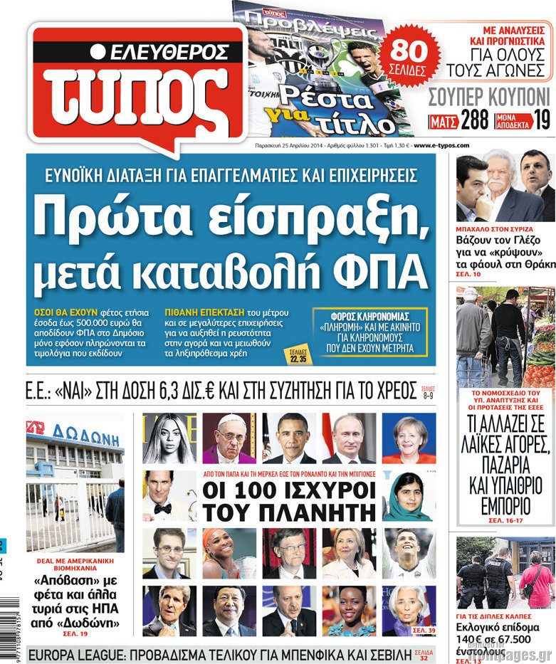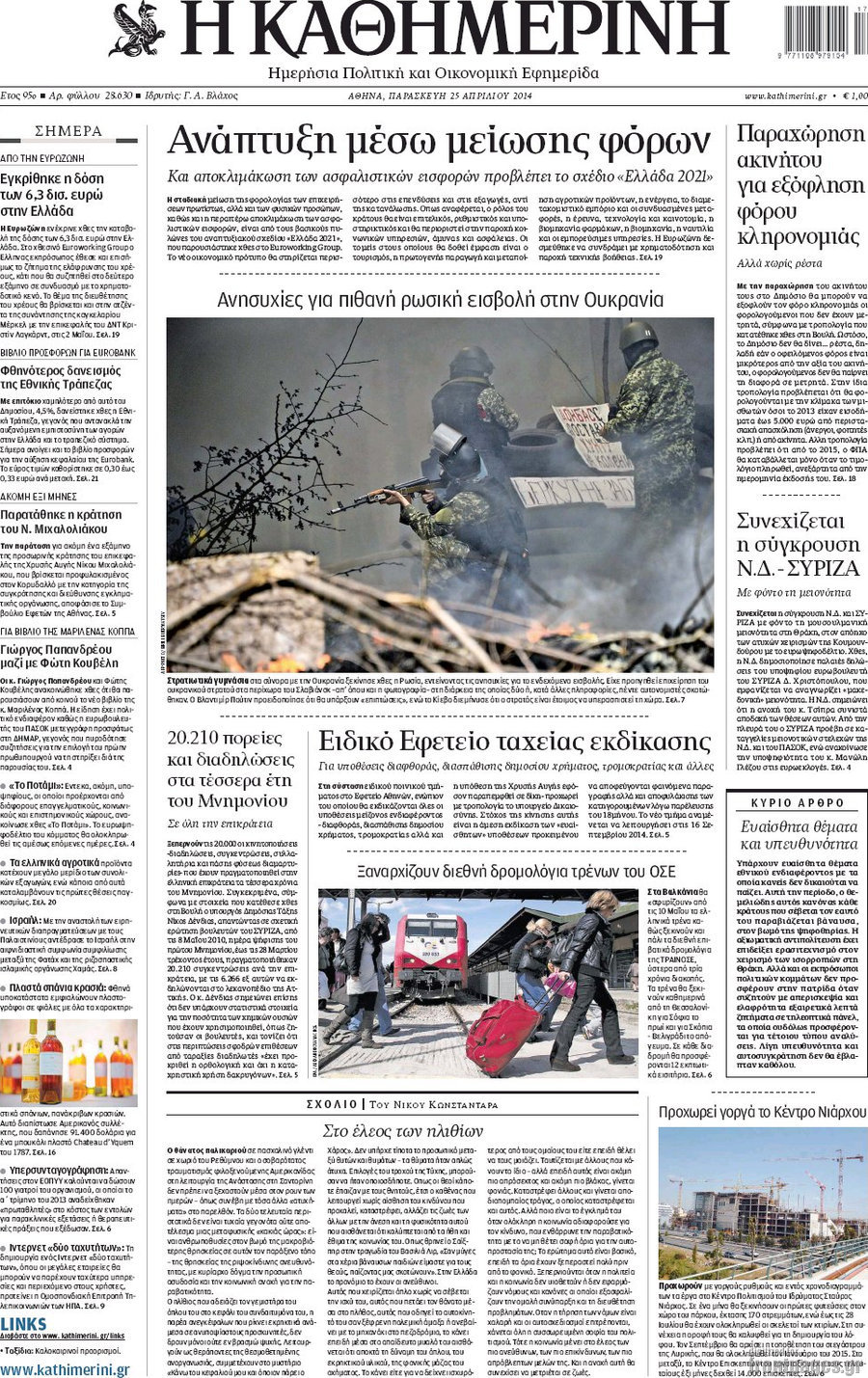 Οι πολιτικές εφημερίδες Enikos Newsroom 08:28, Παρασκευή 25 Απριλίου 2014 Media Οι πολιτικές εφημερίδες Διαβάστε τα πρωτοσέλιδα των πολιτικών εφημερίδων: ΕΦΗΜΕΡΙΔΕΣ ΠΟΛΙΤΙΚΕΣ ΕΦΗΜΕΡΙΔΕΣ ΠΡΩΤΟΣΕΛΙΔΑ Μοιράσου το: σχολίασε κι εσύ (0 σχόλια) Ακολουθήστε το enikos.gr στο Google News και μάθετε πρώτοι όλες τις ειδήσεις Δείτε όλες τις τελευταίες ειδήσεις από την Ελλάδα και τον Κόσμο στο enikos.gr Ειδήσεις Ροή Ειδήσεων 20 λεπτά πριν Χριστούγεννα στα μπλόκα οι αγρότες: Άνοιξαν στα διόδια και μοίρασαν προϊόντα στους πολίτες – Νέα σύσκεψη την Κυριακή στη Νίκαια 41 λεπτά πριν Κύκλωμα διακίνησης ναρκωτικών σε σχολεία: Τηλεφωνούσαν στους ανηλίκους την ώρα του μαθήματος – Οι διάλογοι-σοκ, τα «ψευδώνυμα» και τα βασανιστήρια 10 λεπτά πριν Αρχεία Επστάιν: Οι 500 σελίδες που λείπουν, τα αναπάντητα ερωτήματα και οι επώνυμοι – Τι έπεται 2 ώρες πριν Ζελένσκι: Μόνο οι ΗΠΑ και ο Τραμπ μπορούν να πιέσουν τη Ρωσία να βάλει τέλος στον πόλεμο 2 ώρες πριν Φοινικούντα: Προφυλακιστέος ο 30χρονος για συνέργεια στη διπλή δολοφονία – Και άλλα πρόσωπα στο «μικροσκόπιο» 2 ώρες πριν Αριθμολογία: Ο αριθμός του φύλακα αγγέλου σας, με βάση τον μήνα γέννησής σας – «Έτσι σας στέλνει σημάδια το σύμπαν» 3 ώρες πριν Πώς να απαλλαγείτε από τη μυρωδιά του τηγανητού φαγητού: Το μυστικό βρίσκεται στην κουζίνα σας 14 ώρες πριν Enerwave: Το νέο «ρεύμα» στη λιανική ενέργειας που αλλάζει την εμπειρία του καταναλωτή 1 ώρα πριν Ύπνος: Η διατροφή που μπορεί να σας βοηθήσει να κοιμάστε καλύτερα και να ζήσετε περισσότερο 6 λεπτά πριν Αποκαλύφθηκε το άγνωστο «GPS» της αρχαιότητας – Πώς οι ναοί «φώτιζαν» τον δρόμο των ναυτικών πριν από την εφεύρεση των φάρων 10 λεπτά πριν Αρχεία Επστάιν: Οι 500 σελίδες που λείπουν, τα αναπάντητα ερωτήματα και οι επώνυμοι – Τι έπεται 20 λεπτά πριν Χριστούγεννα στα μπλόκα οι αγρότες: Άνοιξαν στα διόδια και μοίρασαν προϊόντα στους πολίτες – Νέα σύσκεψη την Κυριακή στη Νίκαια 30 λεπτά πριν Ολυμπιακός – Κηφισιά 1-1: Δεύτερη σερί ισοπαλία για τους Ερυθρόλευκους – Υπό… αμφισβήτηση η κορυφή της Super League 41 λεπτά πριν Κύκλωμα διακίνησης ναρκωτικών σε σχολεία: Τηλεφωνούσαν στους ανηλίκους την ώρα του μαθήματος – Οι διάλογοι-σοκ, τα «ψευδώνυμα» και τα βασανιστήρια ENIKOS NETWORK Οι γυναίκες αποκαλύπτουν το πιο ελκυστικό πράγμα που μπορεί να κάνει ένας άνδρας Ομορφιά και αντιγήρανση: Ειδικοί μιλούν για συσκευές περιποίησης του δέρματος Ακύρωση ΑΦΜ για απάτες – Ποιους βάζει στο στόχαστρο η ΑΑΔΕ Ρεύμα: Πώς μπορείτε να αλλάξετε πάροχο γρήγορα και εύκολα – Τα βήματα της διαδικασίας Χαρτογραφώντας το «σημείο χωρίς επιστροφή»: Για πρώτη φορά αποκαλύπτεται με λεπτομέρεια το ακανθώδες όριο της ατμόσφαιρας τ... Η Google καταργεί τη λειτουργία «dark web report» – Πώς θα μπορούν οι χρήστες να διαγράφουν τα δεδομένα τους περισσότερα 20:30 , Σάββατο 20 Δεκεμβρίου 2025 Αυτή την Κυριακή με τη Realnews: Instyle, μαζί Drive και Realnews Geopolitics Αυτή την Κυριακή με τη Realnews: Instyle, μαζί Drive και Realnews Geopolitics Instyle Η Άννα Ρ... 20:28 , Σάββατο 20 Δεκεμβρίου 2025 Ο ΑΝΤ1 γεμίζει τις γιορτές με μουσική – Ποιους καλλιτέχνες θα απολαύσουμε Φέτος στον ΑΝΤ1 γιορτάζουμε τις νύχτες μας παρέα με αγαπημένους καλλιτέχνες και μεγάλες μουσι... 18:19 , Σάββατο 20 Δεκεμβρίου 2025 HOTΕΛ ΕΛVIRA: Η Ελβίρα μαθαίνει πως ο Χάρι μένει κρυφά στο ξενοδοχείο του Παντελή Συνεχίζονται οι εκλογές για πρόεδρο, στο νέο επεισόδιο της κωμικής σειράς του MEGA, HOTΕΛ ΕΛVI... 14:04 , Σάββατο 20 Δεκεμβρίου 2025 Η Realnews αυτής της Κυριακής (21/12/2025) 
