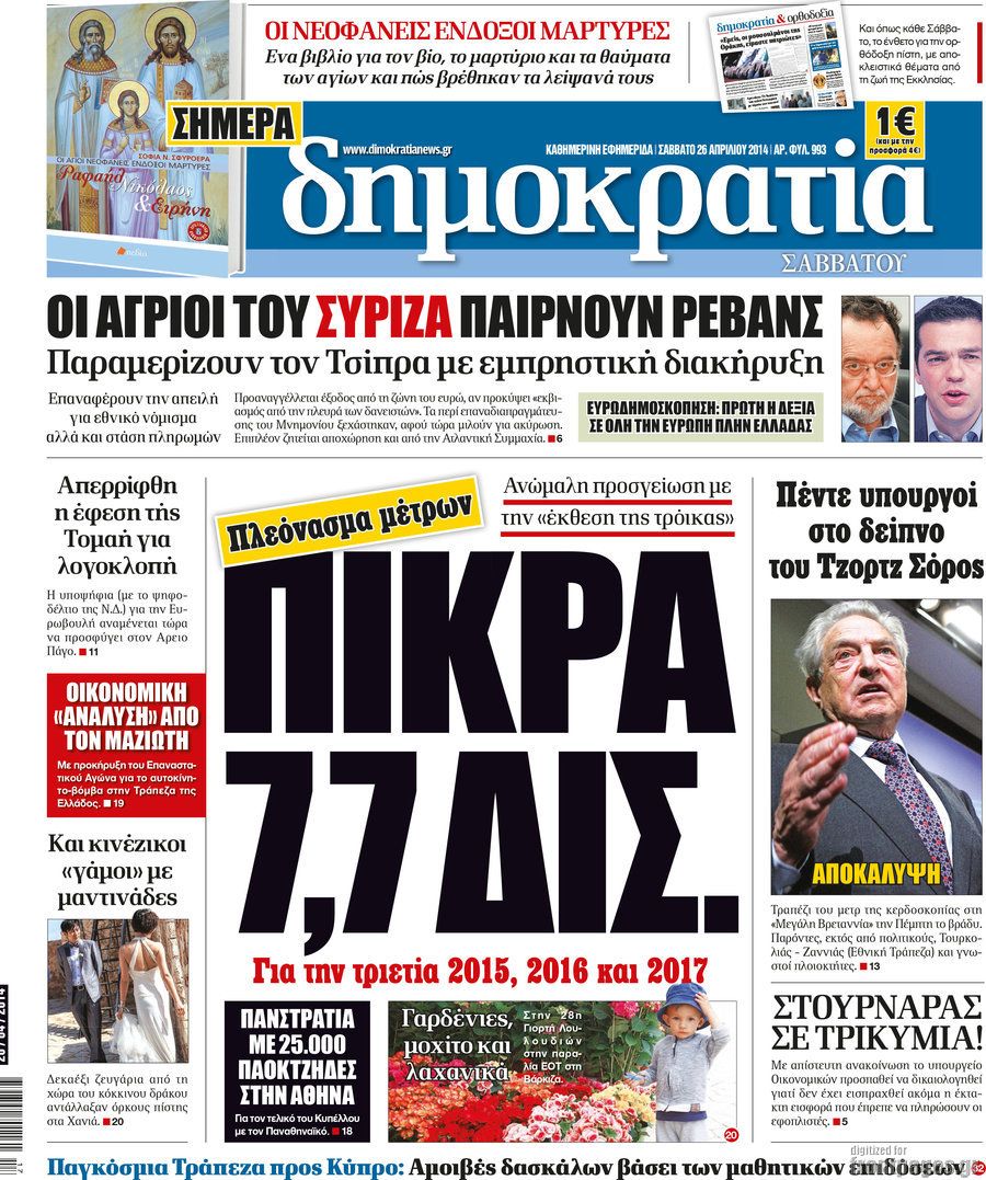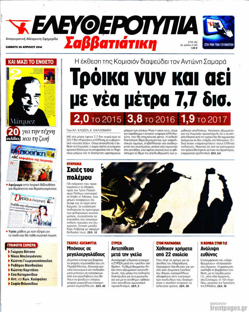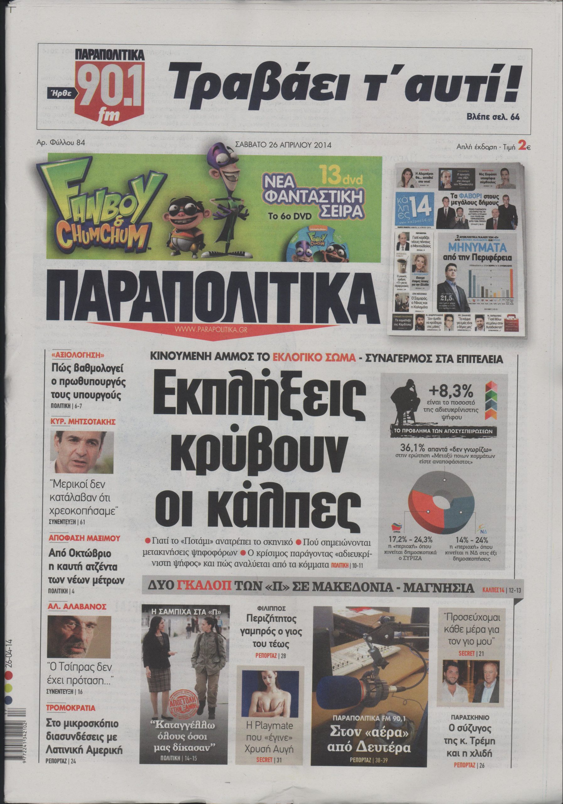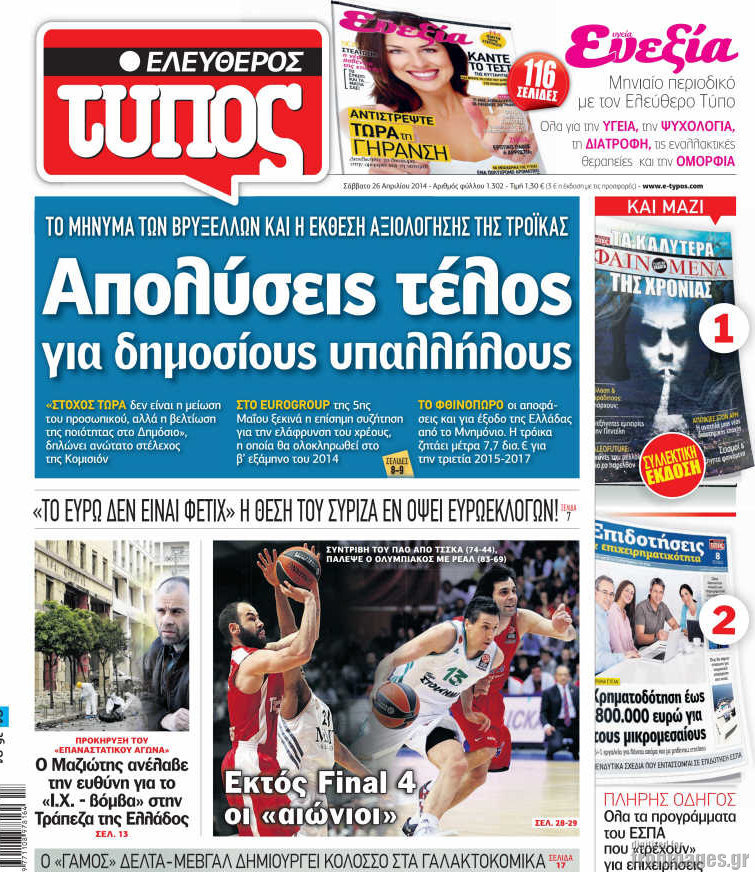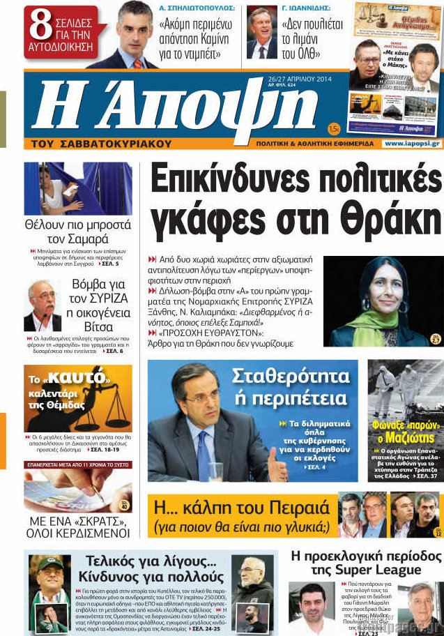 Οι πολιτικές εφημερίδες Enikos Newsroom 07:56, Σάββατο 26 Απριλίου 2014 Media Οι πολιτικές εφημερίδες Διαβάστε τα πρωτοσέλιδα των πολιτικών εφημερίδων: ΠΟΛΙΤΙΚΕΣ ΕΦΗΜΕΡΙΔΕΣ ΠΡΩΤΟΣΕΛΙΔΑ Μοιράσου το: σχολίασε κι εσύ (0 σχόλια) Ακολουθήστε το enikos.gr στο Google News και μάθετε πρώτοι όλες τις ειδήσεις Δείτε όλες τις τελευταίες ειδήσεις από την Ελλάδα και τον Κόσμο στο enikos.gr Ειδήσεις Ροή Ειδήσεων 3 ώρες πριν Αγρότες: Σήκωσαν τις μπάρες στα διόδια των Αφιδνών – ΦΩΤΟ και ΒΙΝΤΕΟ 6 ώρες πριν Διάλογοι-σοκ από το κύκλωμα που διακινούσε ναρκωτικά σε σχολεία – «Αν δεν είσαι εκεί σε 5 λεπτά, θα φας πολύ ξύλο μπρο» 3 ώρες πριν Κωνσταντίνος Ανεστίδης: «Είμαι αθώος, είμαι καθαρός σαν αστραπή και η αστραπή θα πέσει στο κεφάλι τους» – ΒΙΝΤΕΟ 4 ώρες πριν Εγκαινιάστηκε ο αρχαιολογικός χώρος του Ανακτόρου της Πέλλας – Παρουσιάστηκαν για πρώτη φορά δύο ελληνιστικά αγάλματα 4 ώρες πριν Δήμος Αθηναίων: Ξεκινά τη Δευτέρα η επιστροφή πινακίδων οχημάτων από τη Δημοτική Αστυνομία 6 ώρες πριν Αν ανήκετε σε ένα από αυτά τα 3 ζώδια, το 2026 θα είναι η χρονιά σας – «Η ζωή σας βελτιώνεται σε όλους τους τομείς» 3 ώρες πριν Είσοδος σπιτιού: Πώς να οργανώσετε το χώρο πριν έρθουν οι καλεσμένοι σας – Η ρουτίνα 3 βημάτων 2 ώρες πριν Οι άνθρωποι που βιώνουν χρόνια μοναξιά, κάνουν αυτά τα 7 πράγματα τα Χριστούγεννα, χωρίς να το καταλαβαίνουν 2 ημέρες πριν Enerwave: Το νέο «ρεύμα» στη λιανική ενέργειας που αλλάζει την εμπειρία του καταναλωτή 6 λεπτά πριν ΠΑΟΚ – Παναθηναϊκός 2-0: Βραδινός… περίπατος για τον Δικέφαλο του Βορρά 17 λεπτά πριν Μαριέτα Γκεοργκίεβα: Έγινε η πρώτη γυναίκα από τη Βουλγαρία που ολοκλήρωσε τη διαδρομή από την «τελευταία μοίρα» μέχρι τον Νότιο Πόλο 27 λεπτά πριν Βρετανία: Τηλεφωνική επικοινωνία Στάρμερ – Τραμπ για τον πόλεμο στην Ουκρανία 36 λεπτά πριν Λαμία: Αποχώρησαν οι αγρότες από τα διόδια Τραγάνας 44 λεπτά πριν Αριθμολογία: Οι άνθρωποι που έχουν γεννηθεί αυτές τις 4 ημερομηνίες, είναι οι πιο πιστοί και αφοσιωμένοι σύντροφοι ENIKOS NETWORK Οι γυναίκες έχουν βρει μια νέα απόλαυση στην κρεβατοκάμαρα που οι περισσότεροι άνδρες αγνοούν Christmas glow: 5 χρυσές συμβουλές για επιδερμίδα που λάμπει από ομορφιά τα Χριστούγεννα Πόσο θα αυξηθούν οι μισθοί στον ιδιωτικό τομέα από το 2026 – Πού θα φτάσει ο κατώτατος Λιανεμπόριο: Οι προσδοκίες της αγοράς για τα Χριστούγεννα – Στόχος ο τζίρος να ξεπεράσει τα 4,5 δισ. ευρώ τον Δεκέμβριο Χαρτογραφώντας το «σημείο χωρίς επιστροφή»: Για πρώτη φορά αποκαλύπτεται με λεπτομέρεια το ακανθώδες όριο της ατμόσφαιρας τ... Η Google καταργεί τη λειτουργία «dark web report» – Πώς θα μπορούν οι χρήστες να διαγράφουν τα δεδομένα τους περισσότερα 17:18 , Κυριακή 21 Δεκεμβρίου 2025 «Η Μεγάλη Χίμαιρα»: Μάγεψε το κοινό κατά την avant-première της προβολής της Την Πρωτοχρονιά (Πέμπτη 1η Ιανουαρίου 2026) στο ERTFLIX θα γίνει η πρεμιέρα της πολυαναμενόμεν... 15:08 , Κυριακή 21 Δεκεμβρίου 2025 Μια νύχτα μόνο: Η Αρετή και ο Οδυσσέας έρχονται και πάλι κοντά Το νέο επεισόδιο της δραματικής σειράς του MEGA «Μια νύχτα μόνο», θα προβληθεί απόψε Κυριακή 2... 14:24 , Κυριακή 21 Δεκεμβρίου 2025 IQ 160: Ο φάκελος με το τεστ πατρότητας ανοίγει, απόψε στις 21:00 στο Star Ανατρεπτικό το νέο διπλό επεισόδιο της σειράς “IQ 160” στις 21:00 στο Star. Ο Τηλέ... 09:43 , Κυριακή 21 Δεκεμβρίου 2025 Το λάθος στην ταινία Die Hard που άφησε άναυδους τους θαυμαστές του Μπρους Γουίλις Ένας φανατικός των ταινιών άφησε άναυδους τους θαυμαστές του Die Hard, επισημαίνοντας τρία βασ... ΤΕΛΕΥΤΑΙΕΣ Ε