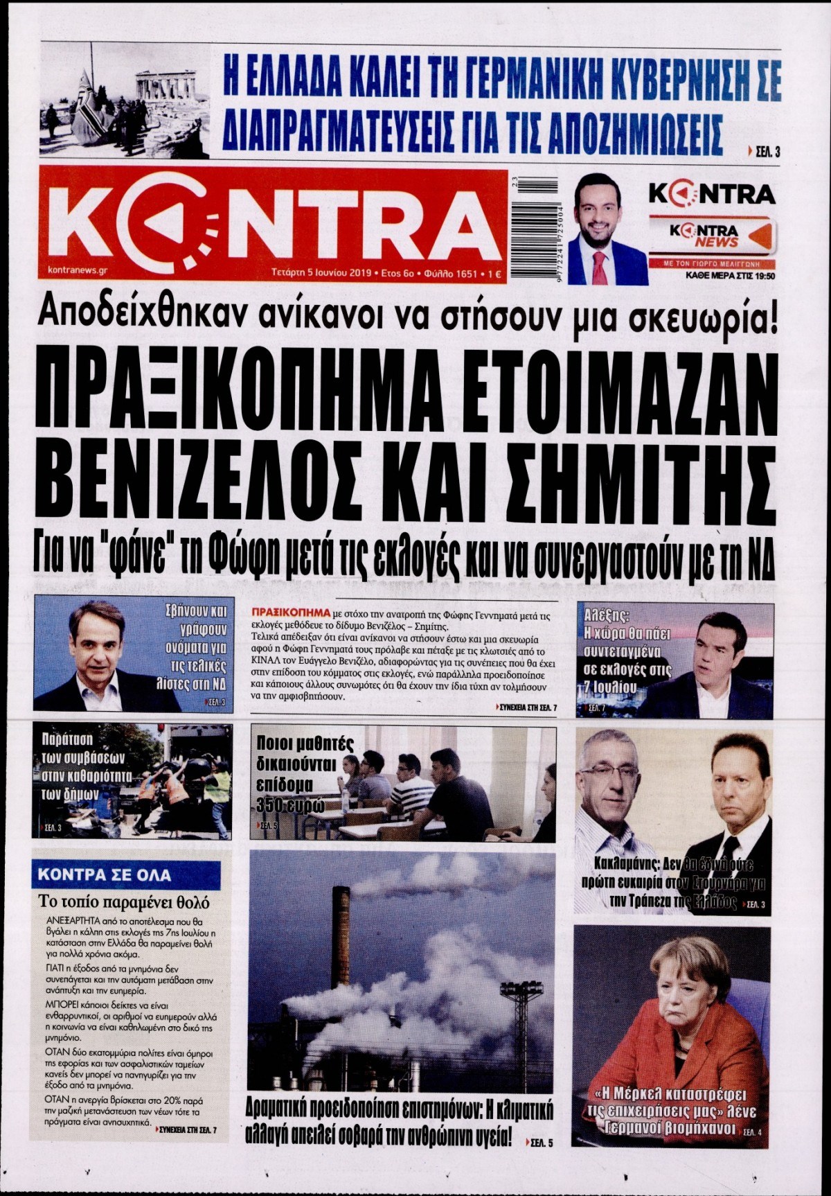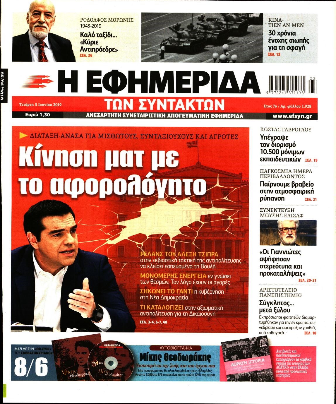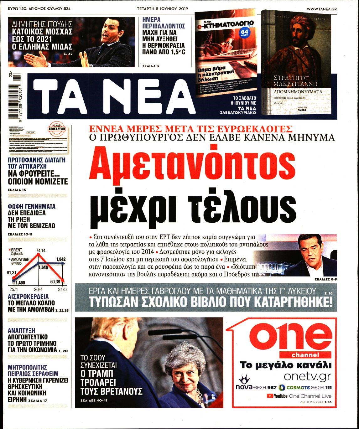 Οι πολιτικές εφημερίδες 5/6/2019 Enikos Newsroom 06:48, Τετάρτη 05 Ιουνίου 2019 Media Διαβάστε τα πρωτοσέλιδα των πολιτικών εφημερίδων: ΠΟΛΙΤΙΚΕΣ ΕΦΗΜΕΡΙΔΕΣ ΠΡΩΤΟΣΕΛΙΔΑ Μοιράσου το: σχολίασε κι εσύ (0 σχόλια) Ακολουθήστε το enikos.gr στο Google News και μάθετε πρώτοι όλες τις ειδήσεις Δείτε όλες τις τελευταίες ειδήσεις από την Ελλάδα και τον Κόσμο στο enikos.gr Ειδήσεις Ροή Ειδήσεων 1 ώρα πριν Μπλόκα: Οι αγρότες σηκώνουν τις μπάρες σε διόδια για τους εκδρομείς των Χριστουγέννων και μοιράζουν προϊόντα – Βίντεο 2 ώρες πριν Τσιάρας προς αγρότες: Τα μπλόκα και τα πείσματα δεν ωφελούν – Οι λύσεις περνούν μέσα από τον διάλογο 3 ώρες πριν Αρχεία Έπσταϊν: Οι συγκλονιστικές φωτογραφίες – Ο Μάικλ Τζάκσον, ο Μικ Τζάγκερ και ο Κέβιν Σπέισι ανάμεσα στους διάσημους που απεικονίζονται 30 λεπτά πριν Μαθητές διακινούσαν κοκαΐνη και χασίς σε σχολείο της Αττικής – 12 συλλήψεις 3 ώρες πριν Ινδία: Επτά ελέφαντες σκοτώθηκαν κατά τη σύγκρουση επιβατικού τρένου με κοπάδι 5 ώρες πριν Μία νέα «χρυσή» περίοδος αρχίζει για 3 ζώδια από σήμερα – «Μία αναπάντεχη ευκαιρία οδηγεί στην επιτυχία» 6 ώρες πριν Αγχώνεται για το χριστουγεννιάτικο δώρο που πήρε στην πλούσια σύντροφό του – «Φοβάμαι πως θα το βρει φθηνιάρικο, φοράει βραχιόλια Cartier» 3 ώρες πριν Διαιτολόγος αποκαλύπτει 9 πρωινές συνήθειες που «λιώνουν» το κοιλιακό λίπος – «Υποστηρίζουν την υγιεινή απώλεια βάρους» 4 ώρες πριν Οι 7 φράσεις που δεν λένε ποτέ οι συναισθηματικά έξυπνοι άνθρωποι κατά τη διάρκεια ενός καβγά 9 λεπτά πριν Θεσσαλονίκη: Ανήλικος που είχε εξαφανιστεί βρέθηκε στο σπίτι Τούρκων μετά από αστυνομική επιχείρηση 18 λεπτά πριν Ιταλία: 384 συλλήψεις και κατάσχεση 1,4 τόνων ναρκωτικών σε μεγάλη αστυνομική επιχείρηση 26 λεπτά πριν Γερμανού για Μαζωνάκη: «Η σχέση μας μετράει 30 χρόνια – Σαφώς και έχω άποψη» 30 λεπτά πριν Μαθητές διακινούσαν κοκαΐνη και χασίς σε σχολείο της Αττικής – 12 συλλήψεις 35 λεπτά πριν Βέλγιο: Άγνωστοι έριξαν κόκκινη μπογιά στο προξενείο της Πολωνίας στις Βρυξέλλες ENIKOS NETWORK Η αποχή από την αναπαραγωγή παρατείνει τη ζωή στα ζώα, σύμφωνα με μελέτη – Τι ισχύει για τους ανθρώπους; Σημαντικές επαφές στις ΗΠΑ είχε ο υπουργός Υγείας Άδωνις Γεωργιάδης Τσιάρας προς αγρότες: Έχει ικανοποιηθεί το 74% των αιτημάτων – Τα μπλόκα και τα πείσματα δεν ωφελούν MyHealth App: Τα στοιχεία για τον Προσωπικό Βοηθό Υγείας Πολίτη – Τι ερωτήματα έγιναν μέσα σε 7 ημέρες Χαρτογραφώντας το «σημείο χωρίς επιστροφή»: Για πρώτη φορά αποκαλύπτεται με λεπτομέρεια το ακανθώδες όριο της ατμόσφαιρας τ... Η Google καταργεί τη λειτουργία «dark web report» – Πώς θα μπορούν οι χρήστες να διαγράφουν τα δεδομένα τους περισσότερα 14:04 , Σάββατο 20 Δεκεμβρίου 2025 Η Realnews αυτής της Κυριακής (21/12/2025) Με τίτλο: «Ασπίδα προστασίας για την Ελλάδα» κυκλοφορεί, αυτήν την Κυριακή, η Realnews. Σημαντ... 12:53 , Σάββατο 20 Δεκεμβρίου 2025 Να μ’ αγαπάς: Το παρελθόν έρχεται στο φως – Καταιγιστικές εξελίξεις στα τελευταία επεισόδια του 2025 Ο Άγγελος αποκαλύπτεται, η Φωτεινή ανησυχεί για τον Λευτέρη και η Ζωή έρχεται αντιμέτωπη με το... 11:41 , Σάββατο 20 Δεκεμβρίου 2025 «Η αγάπη δεν χάνεται ποτέ»: Η μικρού μήκους ταινία κινουμένων σχεδίων που θέτει ερωτήματα για τη ζωή και τον θάνατο Ο θάνατος είναι ένα από τα πιο σκληρά θέματα που καλείται να διαχειριστεί κάποιος στη διάρκεια... 09:30 , Σάββατο 20 Δεκεμβρίου 2025 «Porto Leone: Στη γειτονιά με τα κόκκινα φανάρια» – Ο Χρόνης αποκαλύπτει στην Αλεξάνδρα το μυστικό για το παιδί 