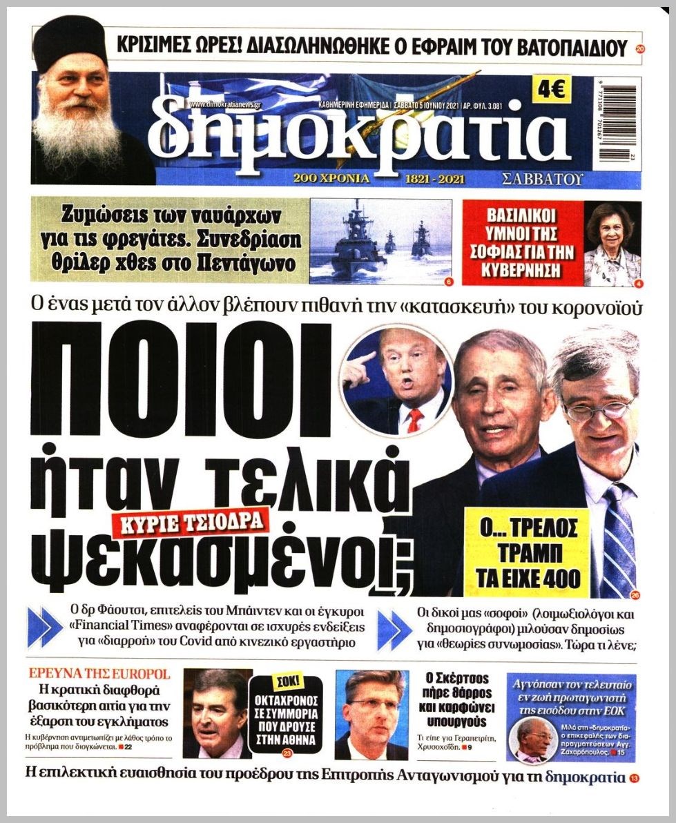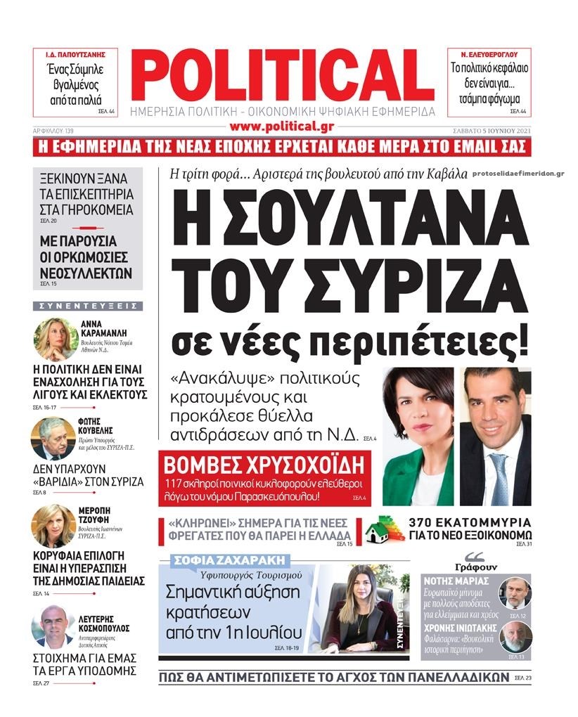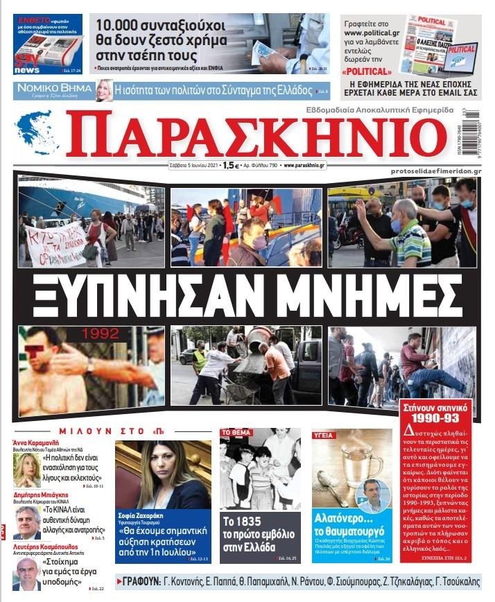 Οι πολιτικές εφημερίδες 5/6/2021 Διονύσης Νίκκας 07:24, Σάββατο 05 Ιουνίου 2021 Media Διαβάστε τα πρωτοσέλιδα των πολιτικών εφημερίδων… ΕΦΗΜΕΡΙΔΕΣ ΠΡΩΤΟΣΕΛΙΔΑ Μοιράσου το: σχολίασε κι εσύ (0 σχόλια) Ακολουθήστε το enikos.gr στο Google News και μάθετε πρώτοι όλες τις ειδήσεις Δείτε όλες τις τελευταίες ειδήσεις από την Ελλάδα και τον Κόσμο στο enikos.gr Ειδήσεις Ροή Ειδήσεων 32 λεπτά πριν Καιρός: Έκτακτο δελτίο από την ΕΜΥ – Έντονο κύμα ψύχους και ισχυροί βοριάδες από το απόγευμα, σε ποιες περιοχές θα χιονίσει 2 ώρες πριν Μητσοτάκης: Το 2026 συνεχίζουμε με την ίδια συνταγή – Ενισχύουμε την οικονομία με μεταρρυθμίσεις και επενδύσεις, χωρίς να παίζουμε με τα δημόσια οικονομικά 2 ώρες πριν Με απειλές απαντά στον Τραμπ η Τεχεράνη: «Θα πλήξουμε το Ισραήλ και στρατιωτικές βάσεις των ΗΠΑ αν δεχθούμε επίθεση» 3 ώρες πριν Αγρότες: Αποφάσισαν να συναντηθούν 2 επιτροπές με τον πρωθυπουργό την Τρίτη – Τι περιλαμβάνει η ατζέντα των αιτημάτων τους 4 ώρες πριν Τραγωδία στην Κρήτη: Σήμερα το τελευταίο «αντίο» στον 27χρονο Στέλιο που έπεσε σε χαράδρα – Προφητική η τελευταία του ανάρτηση 2 ώρες πριν Απρόσμενη τύχη για 3 ζώδια – «Θα βρεθείτε στο σωστό μέρος, τη σωστή στιγμή» 4 ώρες πριν «Το δαχτυλίδι της αιώνιας πίστης»: Ανακαλύφθηκε χρυσό σύμβολο αγάπης 2.000 ετών 3 ώρες πριν Πλήρωσε 300 ευρώ για ένα ραντεβού σε πανάκριβο εστιατόριο – «Η κάρτα του απορρίφθηκε, τον κέρασα και μετά εξαφανίστηκε» 1 ώρα πριν «Δεν μπορούσα να περπατήσω για πάνω από 5 λεπτά – Η απώλεια 76 κιλών μου έσωσε τη ζωή» – Όσα εξομολογείται γυναίκα για τη μάχη της με το βάρος 8 λεπτά πριν Λαμία: Στο νοσοκομείο με αναπνευστικά προβλήματα ένας ηλικιωμένος έπειτα από φωτιά στο σπίτι του – ΒΙΝΤΕΟ 15 λεπτά πριν Συρία: Ο στρατός συνέλαβε 300 Κούρδους μαχητές στο Χαλέπι 25 λεπτά πριν Stan: «Δεν θα παντρευόμουν αν δεν πίστευα εξαρχής ότι θα πάει καλά» – Πώς έγραψε το τραγούδι «Όπου βγει» 30 λεπτά πριν Αν σας ενοχλούν αυτές οι 11 συμπεριφορές, ο εγκέφαλός σας επεξεργάζεται τις πληροφορίες πιο γρήγορα από τους υπόλοιπους 32 λεπτά πριν Καιρός: Έκτακτο δελτίο από την ΕΜΥ – Έντονο κύμα ψύχους και ισχυροί βοριάδες από το απόγευμα, σε ποιες περιοχές θα χιονίσει ENIKOS NETWORK Λιπώδες ήπαρ: Τα συμπτώματα στο πρόσωπο που μπορεί να σχετίζονται με τη νόσο Η Kate Winslet αποκαλύπτει: «Φιλούσα αγόρια και κορίτσια, δεν είχα αποφασίσει» – Πώς επηρέασε την καριέρα της; Χειμερινές εκπτώσεις 2026: Αύριο η πρεμιέρα-Τι πρέπει να προσέχετε στις αγορές σας και ποιες Κυριακές θα είναι ανοιχτά τα κ... «Ειδικά» επιδόματα των 300 ευρώ και των 600 ευρώ από τον ΟΠΕΚΑ: Πότε ανοίγει η πλατφόρμα για τις αιτήσεις και ποιοι θα τα λ... Ο Google Assistant θα παραμείνει λίγο περισσότερο για ορισμένους χρήστες Android Τεστ προσωπικότητας: Το βάζο που θα επιλέξετε αποκαλύπτει πώς λύνετε προβλήματα στη ζωή σας περισσότερα 11:15 , Κυριακή 11 Ιανουαρίου 2026 Σήμερα με τη Realnews: Ό,τι και αν αγοράσεις, σκανάρεις και κερδίζεις! Σήμερα με τη Realnews: Ό,τι και αν αγοράσεις, σκανάρεις και κερδίζεις! Με το PADU app, το κορυ... 09:56 , Κυριακή 11 Ιανουαρίου 2026 Σήμερα με τη Realnews: Δωροεπιταγή 10€ Σήμερα με τη Realnews: Δωροεπιταγή 10€ Δωροεπιταγή αξίας 10€ για αγορές άνω των 60€ από τα πολ... 08:57 , Κυριακή 11 Ιανουαρίου 2026 Η Realnews στο www.pressreader.com Διαβάστε την ψηφιακή έκδοση της εφημερίδας στην οθόνη του κινητού, του tablet και του υπολογισ... 00:01 , Κυριακή 11 Ιανουαρίου 2026 Σήμερα με τη Realnews: Μυστηριώδης εξαφάνιση του Rick Mofina – Μαζί Food & Travel Σήμερα με τη Realnews: Μυστη