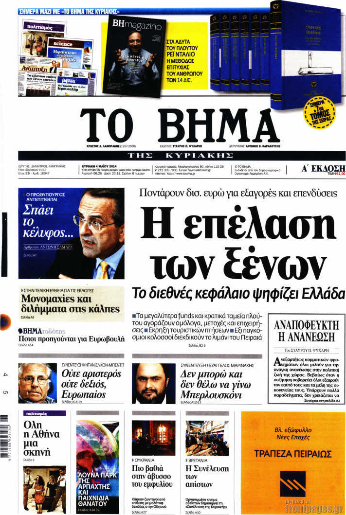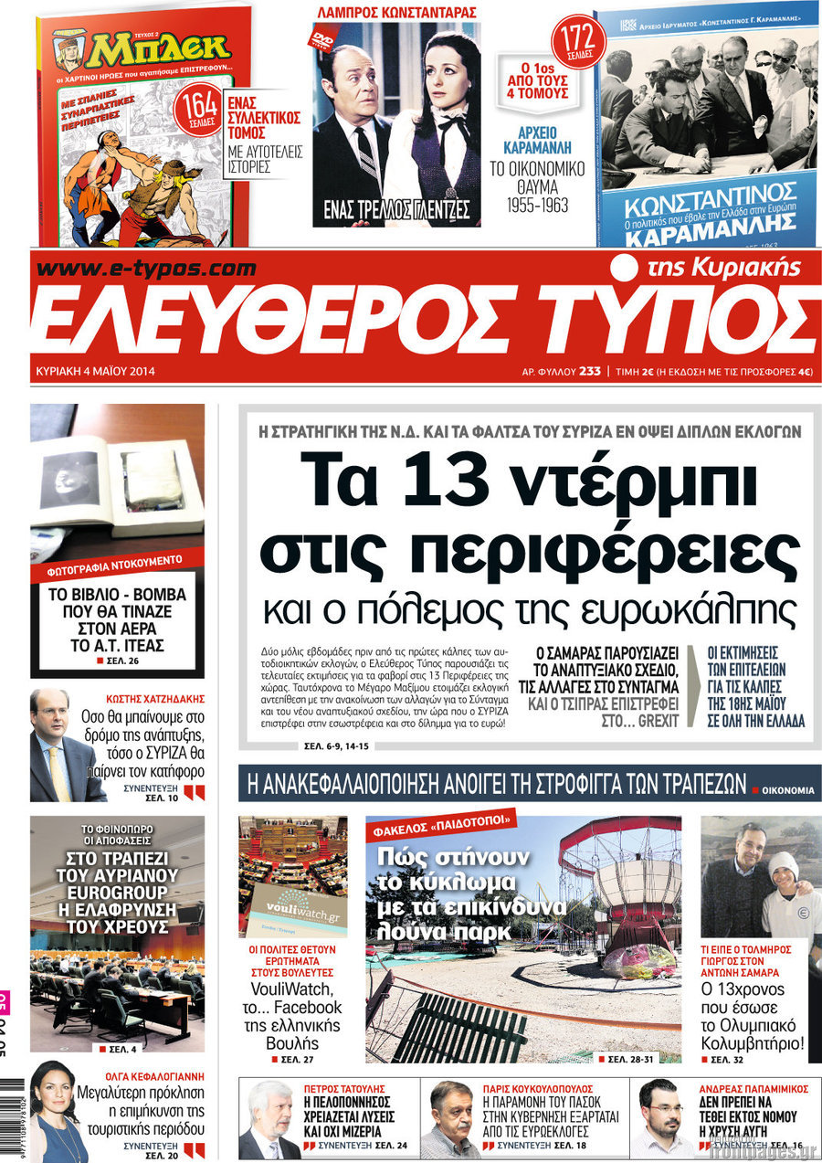 Οι πολιτικές εφημερίδες Enikos Newsroom 08:58, Κυριακή 04 Μαΐου 2014 Media Οι πολιτικές εφημερίδες Διαβάστε τα πρωτοσέλιδα των πολιτικών εφημερίδων: ΕΦΗΜΕΡΙΔΕΣ ΠΟΛΙΤΙΚΕΣ ΕΦΗΜΕΡΙΔΕΣ ΠΡΩΤΟΣΕΛΙΔΑ Μοιράσου το: σχολίασε κι εσύ (0 σχόλια) Ακολουθήστε το enikos.gr στο Google News και μάθετε πρώτοι όλες τις ειδήσεις Δείτε όλες τις τελευταίες ειδήσεις από την Ελλάδα και τον Κόσμο στο enikos.gr Ειδήσεις Ροή Ειδήσεων 3 ώρες πριν Χριστούγεννα στα μπλόκα οι αγρότες: Άνοιξαν στα διόδια και μοίρασαν προϊόντα στους πολίτες – Νέα σύσκεψη την Κυριακή στη Νίκαια 3 ώρες πριν Κύκλωμα διακίνησης ναρκωτικών σε σχολεία: Τηλεφωνούσαν στους ανηλίκους την ώρα του μαθήματος – Οι διάλογοι-σοκ, τα «ψευδώνυμα» και τα βασανιστήρια 3 ώρες πριν Αρχεία Επστάιν: Οι 500 σελίδες που λείπουν, τα αναπάντητα ερωτήματα και οι επώνυμοι – Τι έπεται 5 ώρες πριν Ζελένσκι: Μόνο οι ΗΠΑ και ο Τραμπ μπορούν να πιέσουν τη Ρωσία να βάλει τέλος στον πόλεμο 5 ώρες πριν Φοινικούντα: Προφυλακιστέος ο 30χρονος για συνέργεια στη διπλή δολοφονία – Και άλλα πρόσωπα στο «μικροσκόπιο» 3 ώρες πριν Αποκαλύφθηκε το άγνωστο «GPS» της αρχαιότητας – Πώς οι ναοί «φώτιζαν» τον δρόμο των ναυτικών πριν από την εφεύρεση των φάρων 4 ώρες πριν Ύπνος: Η διατροφή που μπορεί να σας βοηθήσει να κοιμάστε καλύτερα και να ζήσετε περισσότερο 5 ώρες πριν Αριθμολογία: Ο αριθμός του φύλακα αγγέλου σας, με βάση τον μήνα γέννησής σας – «Έτσι σας στέλνει σημάδια το σύμπαν» 17 ώρες πριν Enerwave: Το νέο «ρεύμα» στη λιανική ενέργειας που αλλάζει την εμπειρία του καταναλωτή 24 λεπτά πριν Φωτεινή Αθερίδου: «Προσπαθώ να είμαι κάθετη και αυστηρή σαν μαμά πια» 39 λεπτά πριν ΗΠΑ, Αίγυπτος, Κατάρ και Τουρκία συζήτησαν τη δεύτερη φάση του ειρηνευτικού σχεδίου για τη Γάζα 55 λεπτά πριν Γιάννης Αντετοκούνμπο: Έμεινε στην 6η θέση της ψηφοφορίας του ESPN για το βραβείο του MVP του NBA 1 ώρα πριν Ρετζέπ Ταγίπ Ερντογάν: Δεν έχουμε καμία βλέψη στα εδάφη ή την κυριαρχία κανενός – Δεν θα επιτρέψουμε να παραβιαστούν τα δικαιώματά μας 1 ώρα πριν Γερμανία: Εκδήλωση μνήμης για τα θύματα της επίθεσης στη χριστουγεννιάτικη αγορά του Μαγδεμβούργου ENIKOS NETWORK Οι γυναίκες αποκαλύπτουν το πιο ελκυστικό πράγμα που μπορεί να κάνει ένας άνδρας Ομορφιά και αντιγήρανση: Ειδικοί μιλούν για συσκευές περιποίησης του δέρματος «Πολεμική» προετοιμασία από την ευρωπαϊκή βιομηχανία ενέργειας – Η Eurelectric ζητεί «ομπρέλα» προστασίας για τις υποδομές Ακύρωση ΑΦΜ για απάτες – Ποιους βάζει στο στόχαστρο η ΑΑΔΕ Χαρτογραφώντας το «σημείο χωρίς επιστροφή»: Για πρώτη φορά αποκαλύπτεται με λεπτομέρεια το ακανθώδες όριο της ατμόσφαιρας τ... Η Google καταργεί τη λειτουργία «dark web report» – Πώς θα μπορούν οι χρήστες να διαγράφουν τα δεδομένα τους περισσότερα 00:00 , Κυριακή 21 Δεκεμβρίου 2025 The Voice: Η επιστροφή της Έλενας Παπαρίζου και η ατάκα του Γιώργου Μαζωνάκη μετά τις καταγγελίες Στη φάση των Cross Battles Live μπήκε το The Voice, με την Έλενα Παπαρίζου να επιστρέφει στο π... 20:30 , Σάββατο 20 Δεκεμβρίου 2025 Αυτή την Κυριακή με τη Realnews: Instyle, μαζί Drive και Realnews Geopolitics Αυτή την Κυριακή με τη Realnews: Instyle, μαζί Drive και Realnews Geopolitics Instyle Η Άννα Ρ... 20:28 , Σάββατο 20 Δεκεμβρίου 2025 Ο ΑΝΤ1 γεμίζει τις γιορτές με μουσική – Ποιους καλλιτέχνες θα απολαύσουμε Φέτος στον ΑΝΤ1 γιορτάζουμε τις νύχτες μας παρέα με αγαπημένους καλλιτέχνες και μεγάλες μουσι... 18:19 , Σάββατο 20 Δεκεμβρίου 2025 HOTΕΛ ΕΛVIRA: Η Ελβίρα μαθαίνει πως ο Χάρι μένει κρυφά στο ξενοδοχείο του Παντελή Συνεχίζονται 