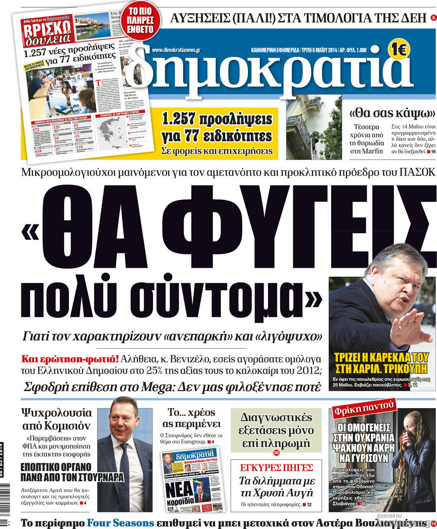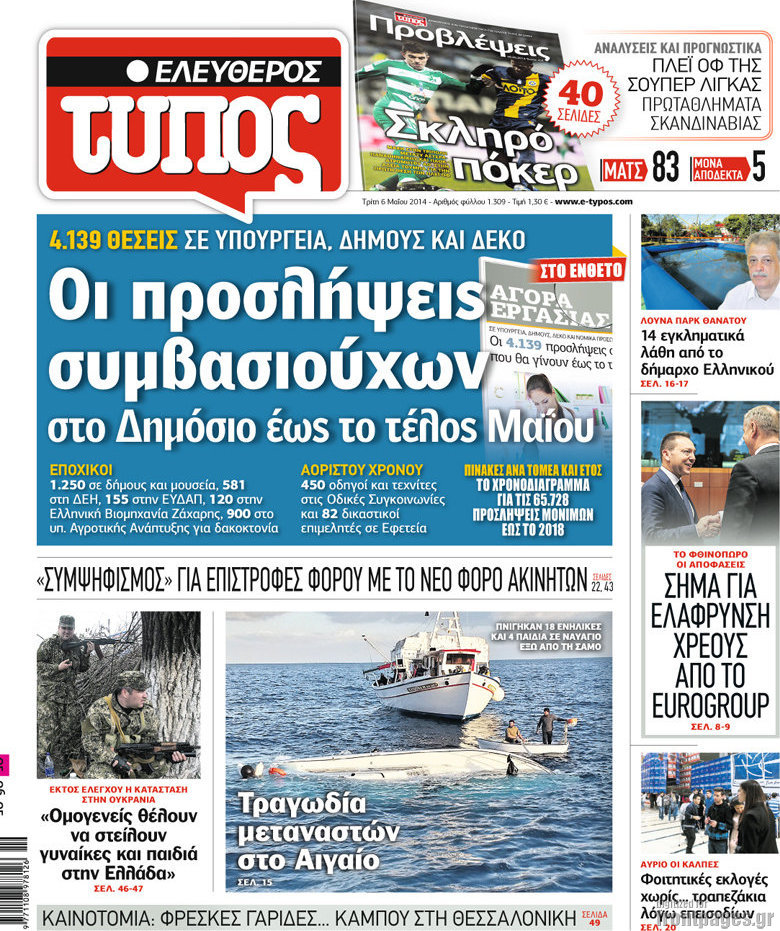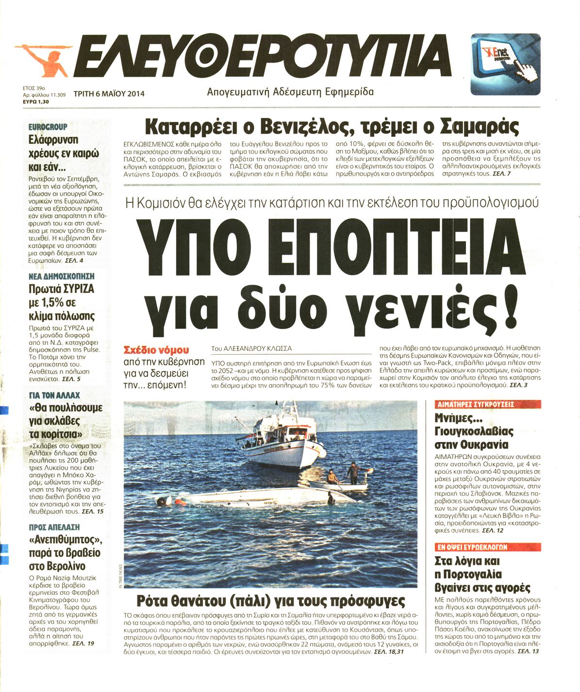 Οι πολιτικές εφημερίδες Enikos Newsroom 07:16, Τρίτη 06 Μαΐου 2014 Media Οι πολιτικές εφημερίδες Διαβάστε τα πρωτοσέλιδα των πολιτικών εφημερίδων: ΕΦΗΜΕΡΙΔΕΣ ΠΟΛΙΤΙΚΕΣ ΕΦΗΜΕΡΙΔΕΣ ΠΡΩΤΟΣΕΛΙΔΑ Μοιράσου το: σχολίασε κι εσύ (0 σχόλια) Ακολουθήστε το enikos.gr στο Google News και μάθετε πρώτοι όλες τις ειδήσεις Δείτε όλες τις τελευταίες ειδήσεις από την Ελλάδα και τον Κόσμο στο enikos.gr Ειδήσεις Ροή Ειδήσεων 2 ώρες πριν Πώς δρούσε το κύκλωμα που διακινούσε ναρκωτικά σε σχολεία – Υπέβαλαν σε βασανιστήρια όσους δεν τηρούσαν τους «κανόνες πειθαρχίας» 2 ώρες πριν Αγρότες: Γιορτές στα μπλόκα με ανοιχτά διόδια – Δικογραφία στα Ιωάννινα για το σήκωμα των μπαρών 2 ώρες πριν Ζελένσκι: Οι Αμερικανοί πρότειναν συνάντηση Ουκρανίας, ΗΠΑ, Ρωσίας στο Μαϊάμι 1 ώρα πριν Αττική: Εξαρθρώθηκε εγκληματική οργάνωση που έκλεβε οχήματα, τα παραποιούσε και τα μεταπωλούσε σε πολίτες – Πώς δρούσε το κύκλωμα 1 ώρα πριν Μικαέλα Μπέντχαους: Ο πρώτος άνθρωπος σε αναπηρικό αμαξίδιο που ταξίδεψε στο διάστημα – ΒΙΝΤΕΟ 3 ώρες πριν Η τύχη χαμογελά σε 3 ζώδια έως τις 28 Δεκεμβρίου – «Προσέξτε τις επιλογές σας και η επιμονή σας θα ανταμειφθεί» 7 ώρες πριν Διαιτολόγος αποκαλύπτει 9 πρωινές συνήθειες που «λιώνουν» το κοιλιακό λίπος – «Υποστηρίζουν την υγιεινή απώλεια βάρους» 4 ώρες πριν Μία ανεκμετάλλευτη πηγή θα μπορούσε να προσφέρει ανεξάντλητη ενέργεια – Οι επιστήμονες ίσως γνωρίζουν πώς να την ξεκλειδώσουν 10 ώρες πριν Enerwave: Το νέο «ρεύμα» στη λιανική ενέργειας που αλλάζει την εμπειρία του καταναλωτή 5 λεπτά πριν Λούλα: Προειδοποιεί πως μια επέμβαση των ΗΠΑ στη Βενεζουέλα θα μπορούσε να είναι καταστροφική 14 λεπτά πριν Τραμπ: Πώς περνάει τις γιορτές των Χριστουγέννων – Τα δώρα που κάνει στα εγγόνια του 27 λεπτά πριν HOTΕΛ ΕΛVIRA: Η Ελβίρα μαθαίνει πως ο Χάρι μένει κρυφά στο ξενοδοχείο του Παντελή 36 λεπτά πριν Ερντογάν: «Δεν έχουμε βλέψεις στα εδάφη κανενός, αλλά δεν θα επιτρέψουμε να παραβιαστούν τα δικαιώματά μας» 46 λεπτά πριν Η Realnews στο www.pressreader.com ENIKOS NETWORK Γιατί πρέπει να ζητάμε χάρες; Ποιο είναι το φαινόμενο Ben Franklin που κάνει τους άλλους να μας συμπαθούν Η αποχή από την αναπαραγωγή παρατείνει τη ζωή στα ζώα, σύμφωνα με μελέτη – Τι ισχύει για τους ανθρώπους; Ολοκληρώθηκαν πληρωμές 22,16 εκατ. ευρώ για το μεταφορικό ισοδύναμο – Κικίλιας: Στηρίζουμε τη νησιωτικότητα Η Realnews στο www.pressreader.com Χαρτογραφώντας το «σημείο χωρίς επιστροφή»: Για πρώτη φορά αποκαλύπτεται με λεπτομέρεια το ακανθώδες όριο της ατμόσφαιρας τ... Η Google καταργεί τη λειτουργία «dark web report» – Πώς θα μπορούν οι χρήστες να διαγράφουν τα δεδομένα τους περισσότερα 18:19 , Σάββατο 20 Δεκεμβρίου 2025 HOTΕΛ ΕΛVIRA: Η Ελβίρα μαθαίνει πως ο Χάρι μένει κρυφά στο ξενοδοχείο του Παντελή Συνεχίζονται οι εκλογές για πρόεδρο, στο νέο επεισόδιο της κωμικής σειράς του MEGA, HOTΕΛ ΕΛVI... 14:04 , Σάββατο 20 Δεκεμβρίου 2025 Η Realnews αυτής της Κυριακής (21/12/2025) Με τίτλο: «Ασπίδα προστασίας για την Ελλάδα» κυκλοφορεί, αυτήν την Κυριακή, η Realnews. Σημαντ... 12:53 , Σάββατο 20 Δεκεμβρίου 2025 Να μ’ αγαπάς: Το παρελθόν έρχεται στο φως – Καταιγιστικές εξελίξεις στα τελευταία επεισόδια του 2025 Ο Άγγελος αποκαλύπτεται, η Φωτεινή ανησυχεί για τον Λευτέρη και η Ζωή έρχεται αντιμέτωπη με το... 11:41 , Σάββατο 20 Δεκεμβρίου 2025 «Η αγάπη δεν χάνεται ποτέ»: Η μικρού μήκους ταινία κινουμένων σχεδίων που θέτει ερωτήματα για τη ζωή και τον θάνατο Ο θάνατος είναι ένα από τα πιο σκληρά θέματα που καλείται να διαχειριστεί κάποι
