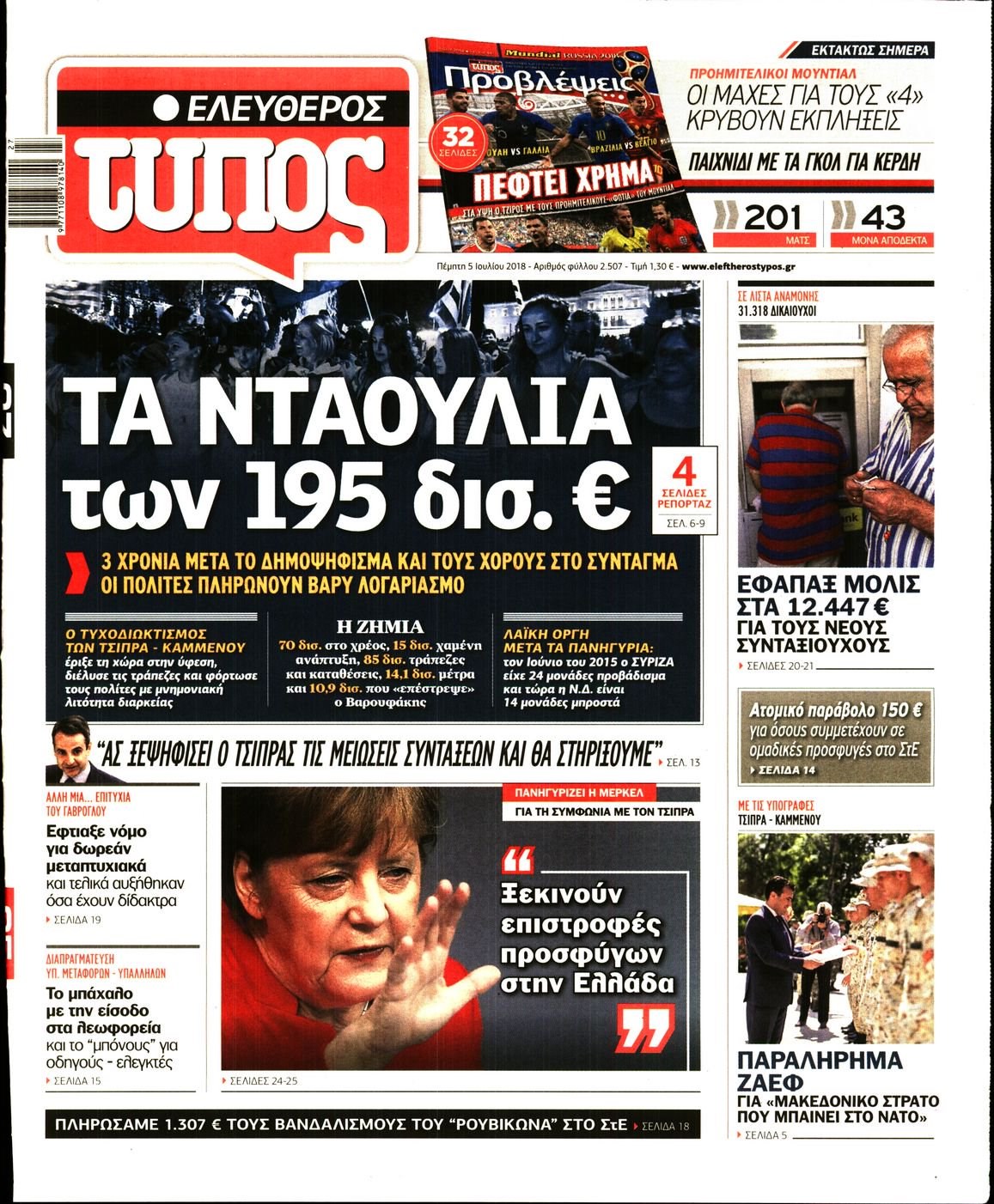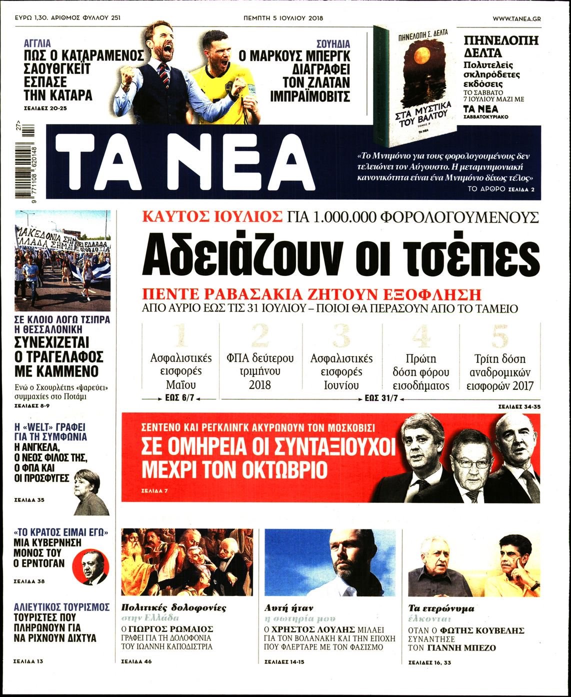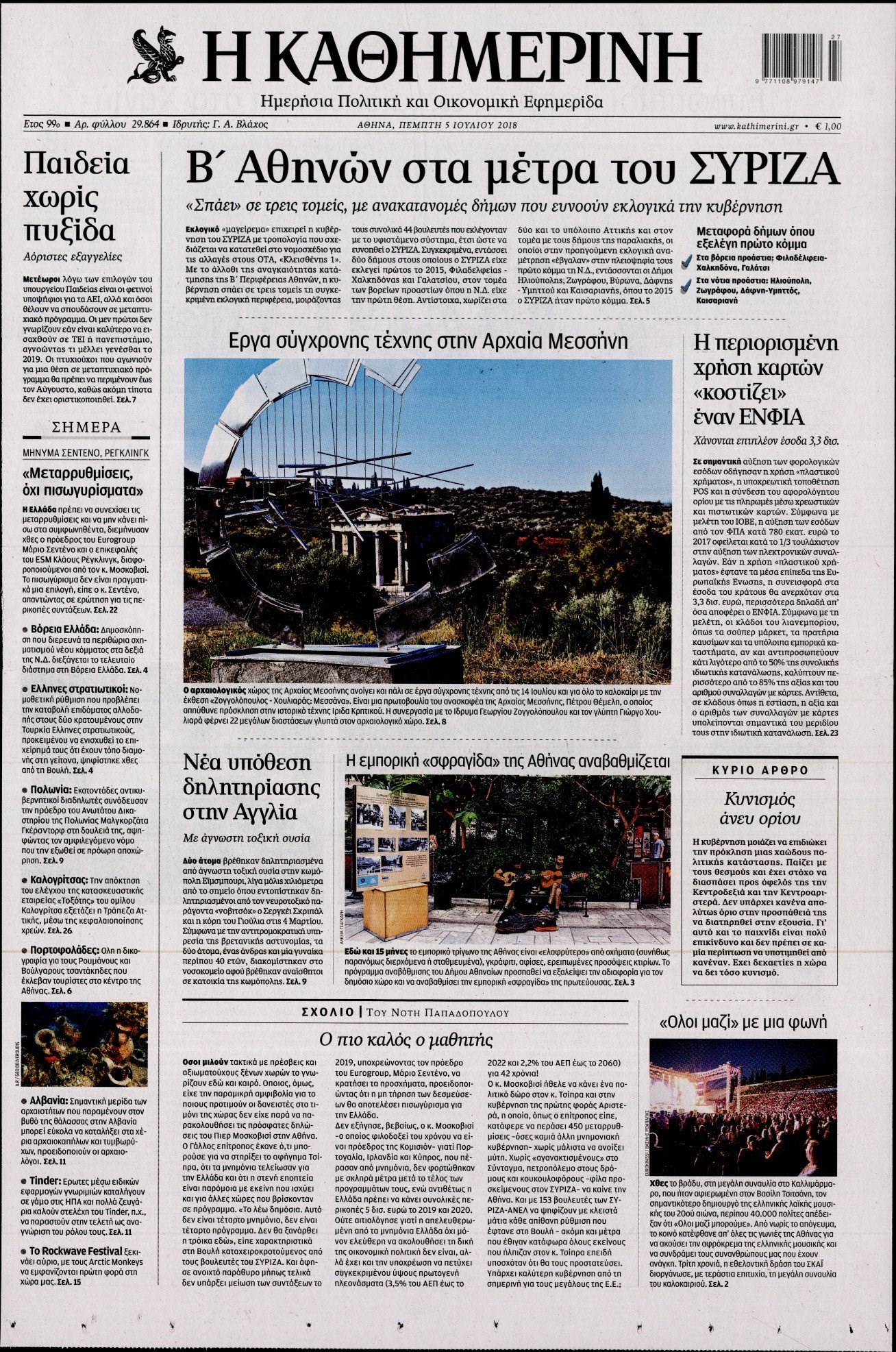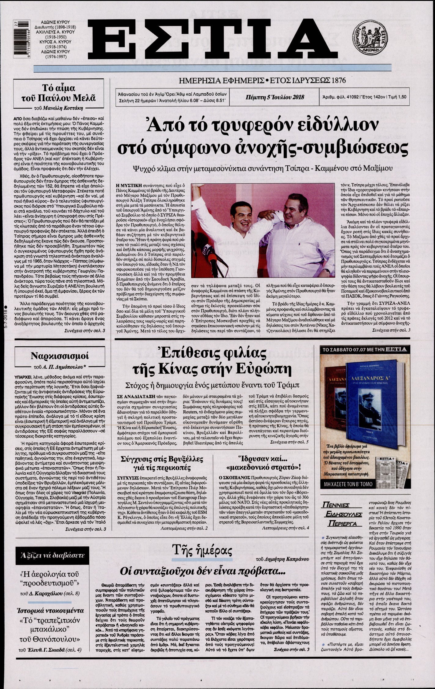 Οι πολιτικές εφημερίδες 5/7/18 Enikos Newsroom 06:22, Πέμπτη 05 Ιουλίου 2018 Media Διαβάστε τα σημερινά πρωτοσέλιδα των πολιτικών εφημερίδων. ΠΟΛΙΤΙΚΕΣ ΕΦΗΜΕΡΙΔΕΣ ΠΡΩΤΟΣΕΛΙΔΑ Μοιράσου το: σχολίασε κι εσύ (0 σχόλια) Ακολουθήστε το enikos.gr στο Google News και μάθετε πρώτοι όλες τις ειδήσεις Δείτε όλες τις τελευταίες ειδήσεις από την Ελλάδα και τον Κόσμο στο enikos.gr Ειδήσεις Ροή Ειδήσεων 2 ώρες πριν Ζελένσκι: Μόνο οι ΗΠΑ και ο Τραμπ μπορούν να πιέσουν τη Ρωσία να βάλει τέλος στον πόλεμο 2 ώρες πριν Φοινικούντα: Προφυλακιστέος ο 30χρονος για συνέργεια στη διπλή δολοφονία – Και άλλα πρόσωπα στο «μικροσκόπιο» 3 ώρες πριν Κυριάκος Μητσοτάκης: Στην Ιερουσαλήμ την Τρίτη ο Πρωθυπουργός για την τριμερή Ελλάδας, Κύπρου, Ισραήλ – Θα συναντηθεί και με τον Αμπάς 6 ώρες πριν Πώς δρούσε το κύκλωμα που διακινούσε ναρκωτικά σε σχολεία – Υπέβαλαν σε βασανιστήρια όσους δεν τηρούσαν τους «κανόνες πειθαρχίας» 3 ώρες πριν Πάπας Λέων: Όταν έχει αϋπνίες επενδύει παραγωγικά τον χρόνο του – Ποιο παιχνίδι παίζει στο κινητό 2 ώρες πριν Αριθμολογία: Ο αριθμός του φύλακα αγγέλου σας, με βάση τον μήνα γέννησής σας – «Έτσι σας στέλνει σημάδια το σύμπαν» 3 ώρες πριν Πώς να απαλλαγείτε από τη μυρωδιά του τηγανητού φαγητού: Το μυστικό βρίσκεται στην κουζίνα σας 4 ώρες πριν Μήπως οι γιορτές σας δεν είναι τόσο τέλειες; 7 χριστουγεννιάτικες συνήθειες που μαρτυρούν ότι μια οικογένεια είναι δυσλειτουργική 14 ώρες πριν Enerwave: Το νέο «ρεύμα» στη λιανική ενέργειας που αλλάζει την εμπειρία του καταναλωτή 10 λεπτά πριν Χριστούγεννα στα μπλόκα οι αγρότες: Άνοιξαν στα διόδια και μοίρασαν προϊόντα στους πολίτες – Νέα σύσκεψη την Κυριακή στη Νίκαια 20 λεπτά πριν Ολυμπιακός – Κηφισιά 1-1: Δεύτερη σερί ισοπαλία για τους Ερυθρόλευκους – Υπό… αμφισβήτηση η κορυφή της Super League 31 λεπτά πριν Κύκλωμα διακίνησης ναρκωτικών σε σχολεία: Τηλεφωνούσαν στους ανηλίκους την ώρα του μαθήματος – Οι διάλογοι-σοκ, τα «ψευδώνυμα» και τα βασανιστήρια 39 λεπτά πριν Χαβιέρ Μιλέι: Ο πρόεδρος της Αργεντινής χαιρετίζει την «πίεση των ΗΠΑ» στη Βενεζουέλα 47 λεπτά πριν Ξένια Τσίρκοβα: Έμαθε από την τηλεόραση ότι είναι η μεγάλη νικήτρια του GNTM – Η αντίδρασή της – ΒΙΝΤΕΟ ENIKOS NETWORK Οι γυναίκες αποκαλύπτουν το πιο ελκυστικό πράγμα που μπορεί να κάνει ένας άνδρας Ομορφιά και αντιγήρανση: Ειδικοί μιλούν για συσκευές περιποίησης του δέρματος Ακύρωση ΑΦΜ για απάτες – Ποιους βάζει στο στόχαστρο η ΑΑΔΕ Ρεύμα: Πώς μπορείτε να αλλάξετε πάροχο γρήγορα και εύκολα – Τα βήματα της διαδικασίας Χαρτογραφώντας το «σημείο χωρίς επιστροφή»: Για πρώτη φορά αποκαλύπτεται με λεπτομέρεια το ακανθώδες όριο της ατμόσφαιρας τ... Η Google καταργεί τη λειτουργία «dark web report» – Πώς θα μπορούν οι χρήστες να διαγράφουν τα δεδομένα τους περισσότερα 20:30 , Σάββατο 20 Δεκεμβρίου 2025 Αυτή την Κυριακή με τη Realnews: Instyle, μαζί Drive και Realnews Geopolitics Αυτή την Κυριακή με τη Realnews: Instyle, μαζί Drive και Realnews Geopolitics Instyle Η Άννα Ρ... 20:28 , Σάββατο 20 Δεκεμβρίου 2025 Ο ΑΝΤ1 γεμίζει τις γιορτές με μουσική – Ποιους καλλιτέχνες θα απολαύσουμε Φέτος στον ΑΝΤ1 γιορτάζουμε τις νύχτες μας παρέα με αγαπημένους καλλιτέχνες και μεγάλες μουσι... 18:19 , Σάββατο 20 Δεκεμβρίου 2025 HOTΕΛ ΕΛVIRA: Η Ελβίρα μαθαίνει πως ο Χάρι μένει κρυφά στο ξενοδοχείο του Παντελή Συνεχίζονται οι εκλογές για πρόεδρο, στο νέο επεισόδιο της κωμικής σειράς του MEGA, HOTΕΛ ΕΛVI... 14:04 , Σάββατο 20 Δεκεμβρίου 2025 Η Realnews αυτής της Κυριακής (21/12/2025) Με τίτλο: «Ασπίδα προστασία