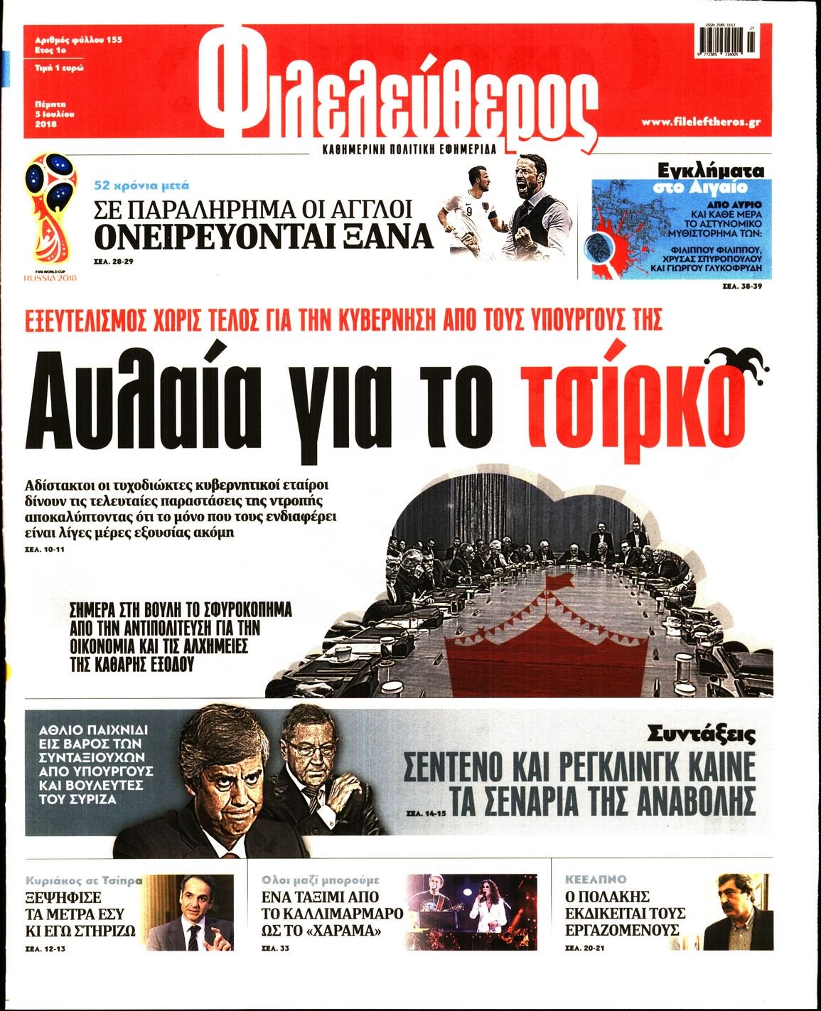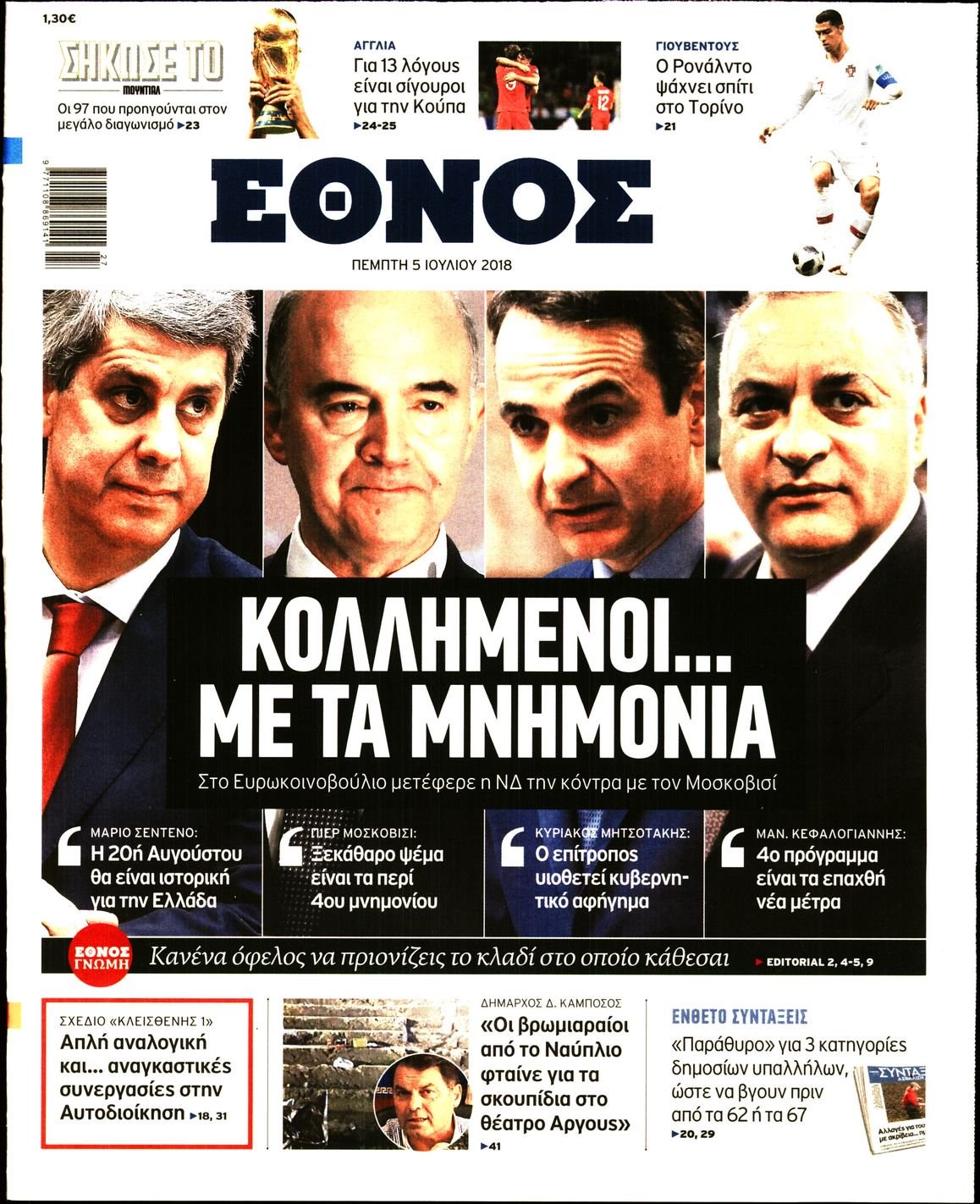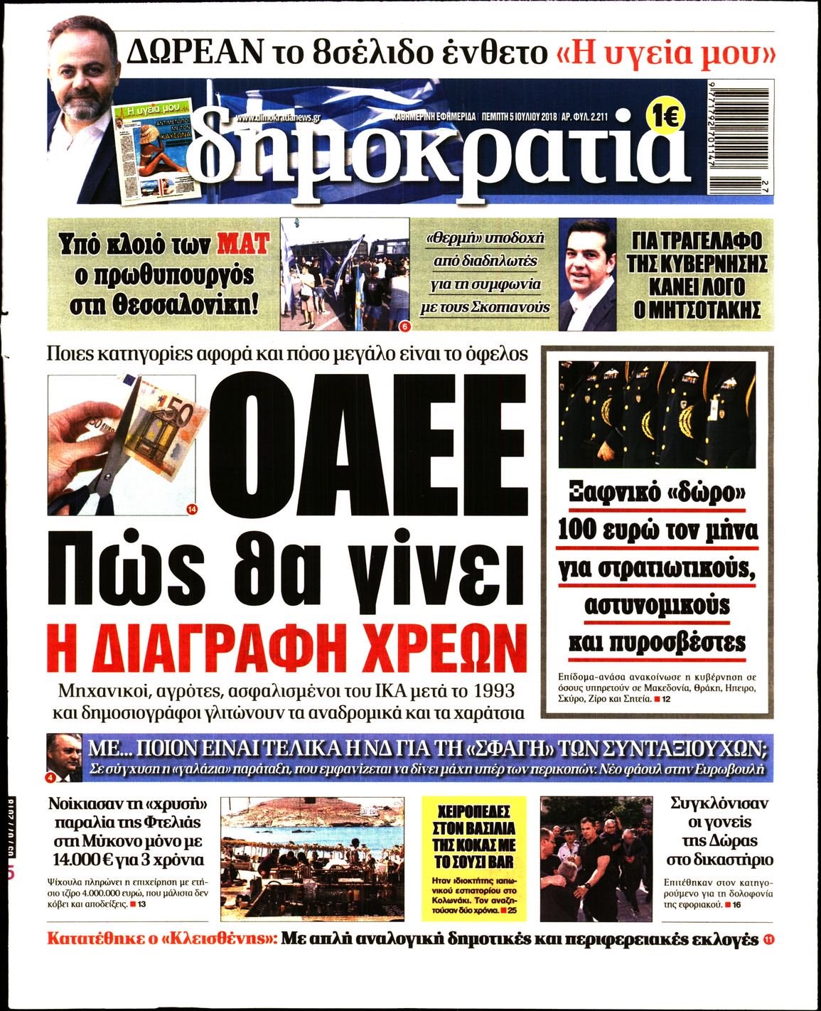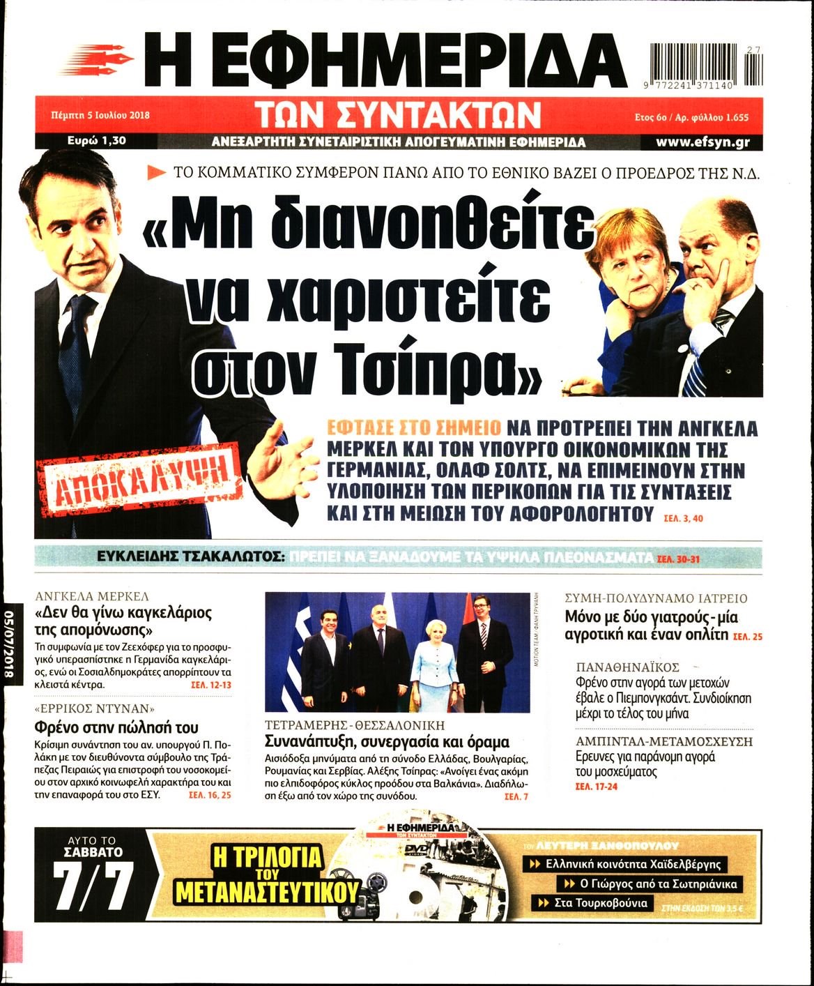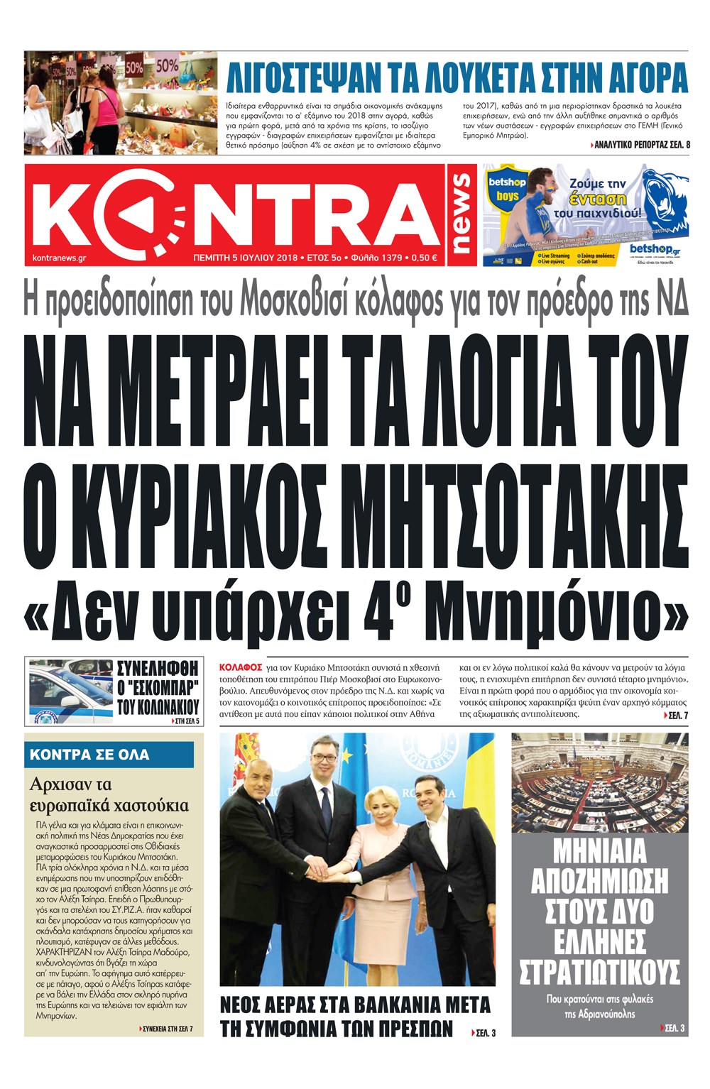 Οι πολιτικές εφημερίδες 5/7/18 Enikos Newsroom 06:22, Πέμπτη 05 Ιουλίου 2018 Media Διαβάστε τα σημερινά πρωτοσέλιδα των πολιτικών εφημερίδων. ΠΟΛΙΤΙΚΕΣ ΕΦΗΜΕΡΙΔΕΣ ΠΡΩΤΟΣΕΛΙΔΑ Μοιράσου το: σχολίασε κι εσύ (0 σχόλια) Ακολουθήστε το enikos.gr στο Google News και μάθετε πρώτοι όλες τις ειδήσεις Δείτε όλες τις τελευταίες ειδήσεις από την Ελλάδα και τον Κόσμο στο enikos.gr Ειδήσεις Ροή Ειδήσεων 2 ώρες πριν Ζελένσκι: Μόνο οι ΗΠΑ και ο Τραμπ μπορούν να πιέσουν τη Ρωσία να βάλει τέλος στον πόλεμο 2 ώρες πριν Φοινικούντα: Προφυλακιστέος ο 30χρονος για συνέργεια στη διπλή δολοφονία – Και άλλα πρόσωπα στο «μικροσκόπιο» 3 ώρες πριν Κυριάκος Μητσοτάκης: Στην Ιερουσαλήμ την Τρίτη ο Πρωθυπουργός για την τριμερή Ελλάδας, Κύπρου, Ισραήλ – Θα συναντηθεί και με τον Αμπάς 6 ώρες πριν Πώς δρούσε το κύκλωμα που διακινούσε ναρκωτικά σε σχολεία – Υπέβαλαν σε βασανιστήρια όσους δεν τηρούσαν τους «κανόνες πειθαρχίας» 3 ώρες πριν Πάπας Λέων: Όταν έχει αϋπνίες επενδύει παραγωγικά τον χρόνο του – Ποιο παιχνίδι παίζει στο κινητό 2 ώρες πριν Αριθμολογία: Ο αριθμός του φύλακα αγγέλου σας, με βάση τον μήνα γέννησής σας – «Έτσι σας στέλνει σημάδια το σύμπαν» 3 ώρες πριν Πώς να απαλλαγείτε από τη μυρωδιά του τηγανητού φαγητού: Το μυστικό βρίσκεται στην κουζίνα σας 4 ώρες πριν Μήπως οι γιορτές σας δεν είναι τόσο τέλειες; 7 χριστουγεννιάτικες συνήθειες που μαρτυρούν ότι μια οικογένεια είναι δυσλειτουργική 14 ώρες πριν Enerwave: Το νέο «ρεύμα» στη λιανική ενέργειας που αλλάζει την εμπειρία του καταναλωτή 10 λεπτά πριν Χριστούγεννα στα μπλόκα οι αγρότες: Άνοιξαν στα διόδια και μοίρασαν προϊόντα στους πολίτες – Νέα σύσκεψη την Κυριακή στη Νίκαια 20 λεπτά πριν Ολυμπιακός – Κηφισιά 1-1: Δεύτερη σερί ισοπαλία για τους Ερυθρόλευκους – Υπό… αμφισβήτηση η κορυφή της Super League 31 λεπτά πριν Κύκλωμα διακίνησης ναρκωτικών σε σχολεία: Τηλεφωνούσαν στους ανηλίκους την ώρα του μαθήματος – Οι διάλογοι-σοκ, τα «ψευδώνυμα» και τα βασανιστήρια 39 λεπτά πριν Χαβιέρ Μιλέι: Ο πρόεδρος της Αργεντινής χαιρετίζει την «πίεση των ΗΠΑ» στη Βενεζουέλα 47 λεπτά πριν Ξένια Τσίρκοβα: Έμαθε από την τηλεόραση ότι είναι η μεγάλη νικήτρια του GNTM – Η αντίδρασή της – ΒΙΝΤΕΟ ENIKOS NETWORK Οι γυναίκες αποκαλύπτουν το πιο ελκυστικό πράγμα που μπορεί να κάνει ένας άνδρας Ομορφιά και αντιγήρανση: Ειδικοί μιλούν για συσκευές περιποίησης του δέρματος Ακύρωση ΑΦΜ για απάτες – Ποιους βάζει στο στόχαστρο η ΑΑΔΕ Ρεύμα: Πώς μπορείτε να αλλάξετε πάροχο γρήγορα και εύκολα – Τα βήματα της διαδικασίας Χαρτογραφώντας το «σημείο χωρίς επιστροφή»: Για πρώτη φορά αποκαλύπτεται με λεπτομέρεια το ακανθώδες όριο της ατμόσφαιρας τ... Η Google καταργεί τη λειτουργία «dark web report» – Πώς θα μπορούν οι χρήστες να διαγράφουν τα δεδομένα τους περισσότερα 20:30 , Σάββατο 20 Δεκεμβρίου 2025 Αυτή την Κυριακή με τη Realnews: Instyle, μαζί Drive και Realnews Geopolitics Αυτή την Κυριακή με τη Realnews: Instyle, μαζί Drive και Realnews Geopolitics Instyle Η Άννα Ρ... 20:28 , Σάββατο 20 Δεκεμβρίου 2025 Ο ΑΝΤ1 γεμίζει τις γιορτές με μουσική – Ποιους καλλιτέχνες θα απολαύσουμε Φέτος στον ΑΝΤ1 γιορτάζουμε τις νύχτες μας παρέα με αγαπημένους καλλιτέχνες και μεγάλες μουσι... 18:19 , Σάββατο 20 Δεκεμβρίου 2025 HOTΕΛ ΕΛVIRA: Η Ελβίρα μαθαίνει πως ο Χάρι μένει κρυφά στο ξενοδοχείο του Παντελή Συνεχίζονται οι εκλογές για πρόεδρο, στο νέο επεισόδιο της κωμικής σειράς του MEGA, HOTΕΛ ΕΛVI... 14:04 , Σάββατο 20 Δεκεμβρίου 2025 Η Realnews αυτής της Κυριακής (21/12/2025) Με τίτλο: «Ασπίδα προστασία