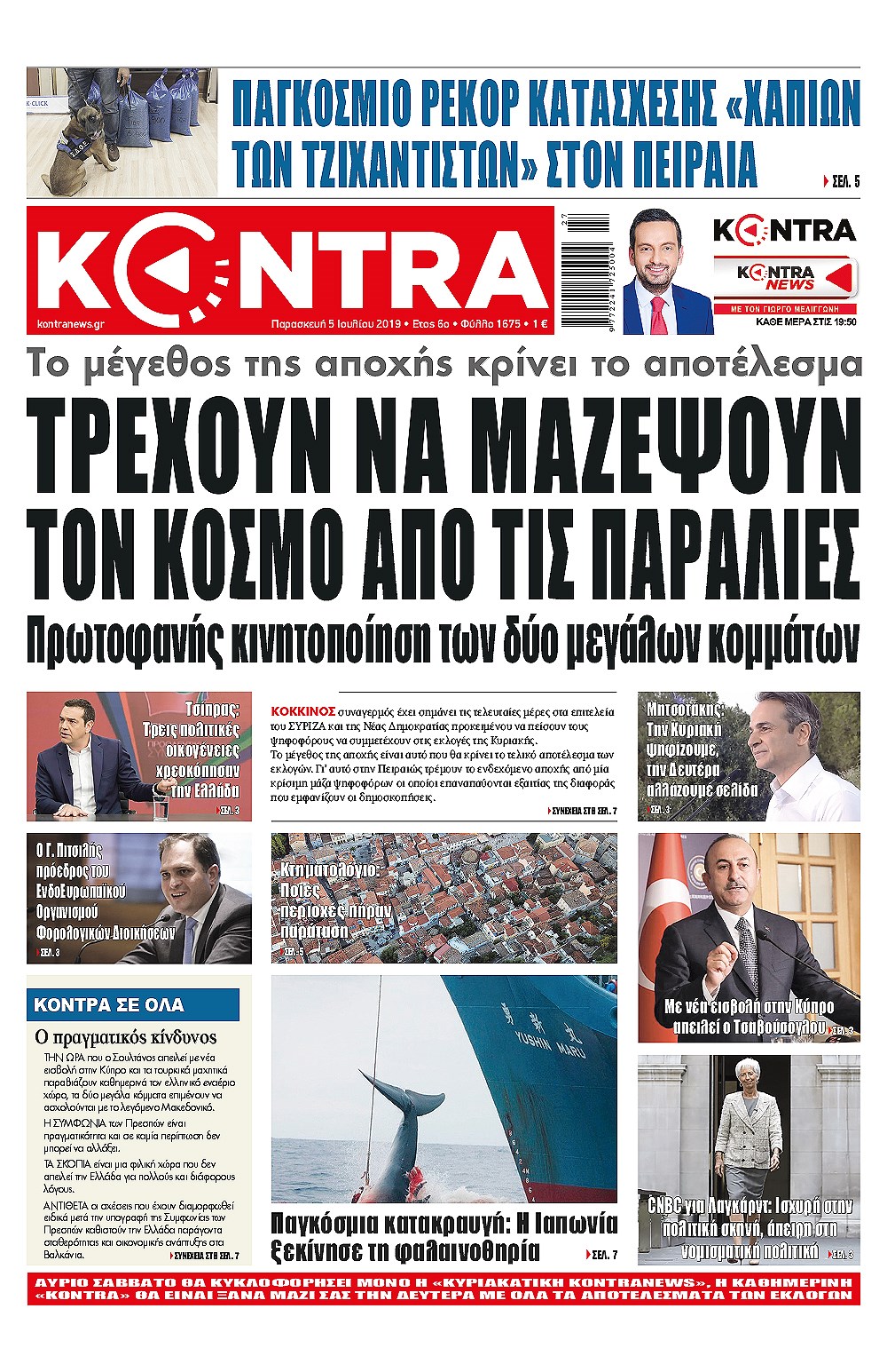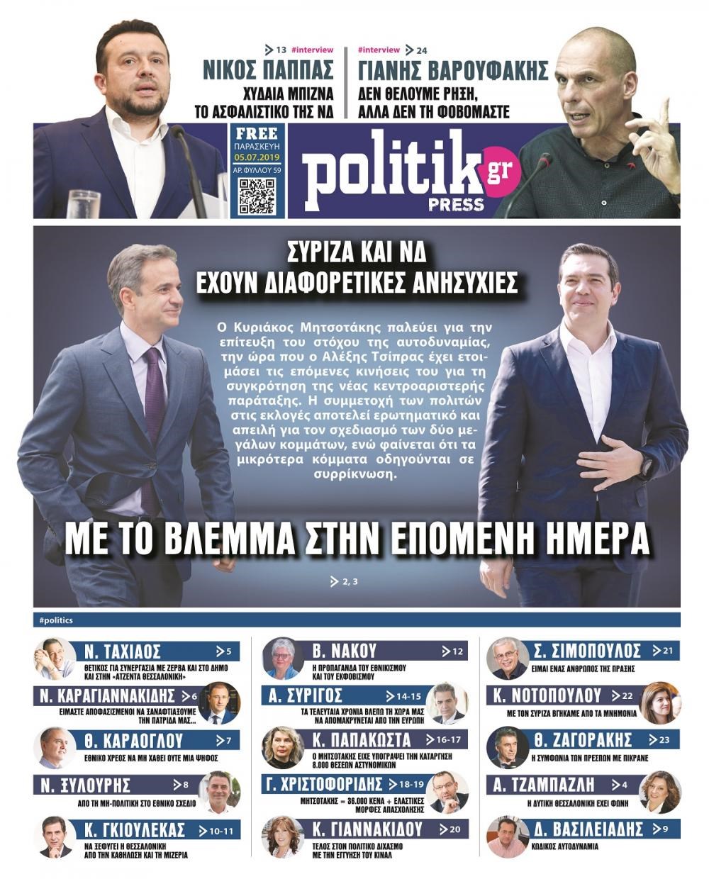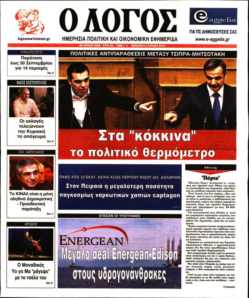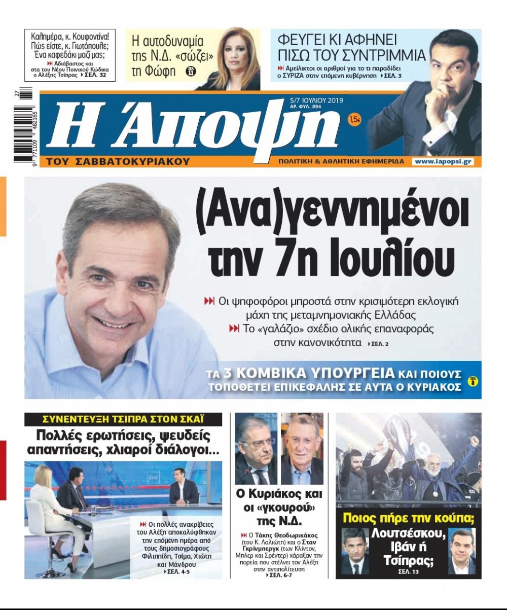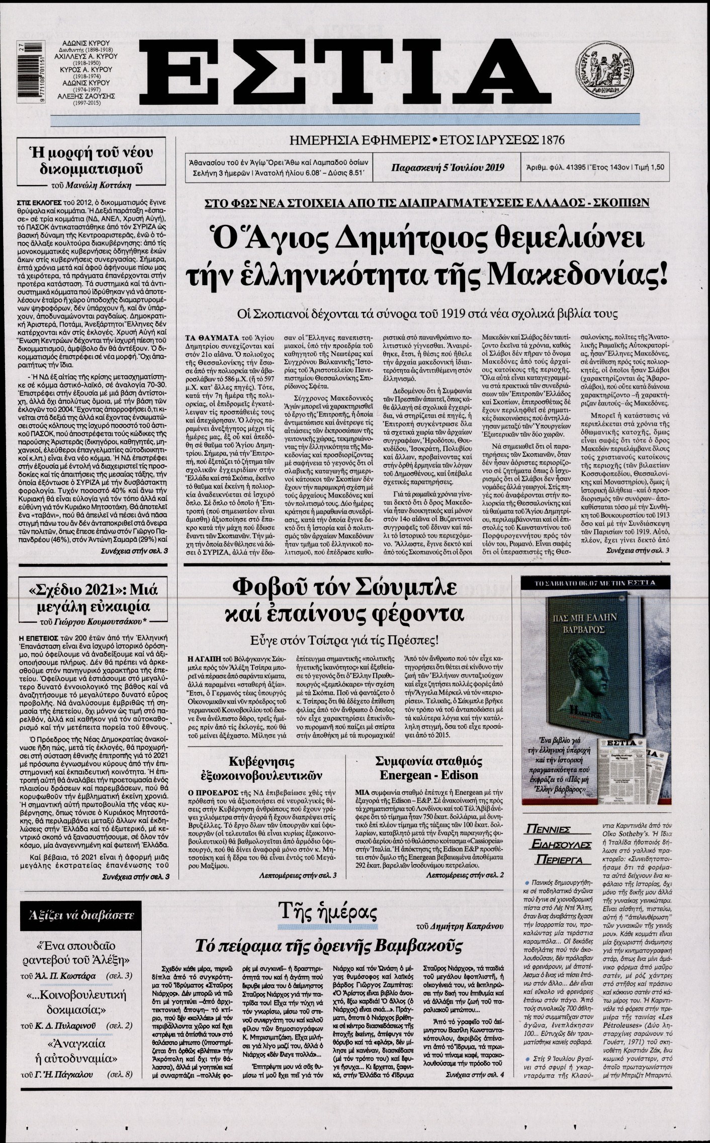 Οι πολιτικές εφημερίδες 5/7/19 Διονύσης Νίκκας 06:38, Παρασκευή 05 Ιουλίου 2019 Media Διαβάστε τα πρωτοσέλιδα των πολιτικών εφημερίδων… ΠΟΛΙΤΙΚΕΣ ΕΦΗΜΕΡΙΔΕΣ Μοιράσου το: σχολίασε κι εσύ (0 σχόλια) Ακολουθήστε το enikos.gr στο Google News και μάθετε πρώτοι όλες τις ειδήσεις Δείτε όλες τις τελευταίες ειδήσεις από την Ελλάδα και τον Κόσμο στο enikos.gr Ειδήσεις Ροή Ειδήσεων 27 λεπτά πριν Υπόθεση Έπσταϊν: Το Υπουργείο Δικαιοσύνης δημοσιοποίησε μια σειρά από εξαιρετικά επεξεργασμένα αρχεία – «Λείπουν τα πιο σημαντικά έγγραφα», λένε οι Δημοκρατικοί 2 ώρες πριν Σαρωτικοί οι έλεγχοι στους δρόμους ενόψει εορτών – Μπλόκα της τροχαίας σε κεντρικές αρτηρίες της Αττικής 37 λεπτά πριν ΟΝΕΧ – MEGATUGS: Ξεκίνησε η ναυπήγηση ρυμουλκών στην Ελλάδα – Προθάλαμος πολεμικών πλοίων – Δείτε φωτογραφίες και βίντεο 10 ώρες πριν Χριστούγεννα στα μπλόκα: Επιμένουν στις κινητοποιήσεις τους οι αγρότες – Ανοίγουν τα διόδια το Σαββατοκύριακο 9 ώρες πριν Πούτιν: Τα μηνύματα σε Ευρώπη και ΝΑΤΟ από το μαραθώνιο «σόου» του – Η απαίτηση για «σεβασμό» και η ειρήνη «με τους όρους» της Μόσχας 2 ώρες πριν Αυγά: Πόσα μπορείτε να τρώτε την ημέρα με ασφάλεια για μέγιστη πρόσληψη πρωτεΐνης 3 ώρες πριν Τα ζώδια σήμερα, Σάββατο 20 Δεκεμβρίου: Παρθένοι, το σύμπαν σας δίνει το κλειδί 9 ώρες πριν Ανακαλύφθηκαν αρχαία χρυσά νομίσματα 2.200 ετών που απεικονίζουν τον θεό Απόλλωνα – Η άγνωστη σύνδεση με τον Φίλιππο Β΄ της Μακεδονίας 2 ώρες πριν Οπτική ψευδαίσθηση: Μόνο αν είσαι ο Σέρλοκ Χολμς θα βρεις τον αριθμό «87» σε 7 δευτερόλεπτα 7 λεπτά πριν Αρχαιολόγοι ανακάλυψαν σε χωράφι απεικόνιση 600 ετών ενός Αγίου – Τα στοιχεία που δείχνουν ότι μαρτύρησε 14 λεπτά πριν Mega χριστουγεννιάτικη φορολοταρία: «Κλείδωσε» η ημερομηνία για την κλήρωση – Ερωτήσεις και απαντήσεις 21 λεπτά πριν ΗΠΑ: Τέσσερις μετανάστες πέθαναν σε κέντρα κράτησης – Αύξηση θανάτων σε επίπεδο ρεκόρ το 2025 27 λεπτά πριν Υπόθεση Έπσταϊν: Το Υπουργείο Δικαιοσύνης δημοσιοποίησε μια σειρά από εξαιρετικά επεξεργασμένα αρχεία – «Λείπουν τα πιο σημαντικά έγγραφα», λένε οι Δημοκρατικοί 30 λεπτά πριν Καιρός: Αλλαγή σκηνικού σήμερα με βροχές και πτώση της θερμοκρασίας – Οι προβλέψεις των μετεωρολόγων για τα Χριστούγεννα ENIKOS NETWORK Το τεστ των 10 δευτερολέπτων που μπορεί να προβλέψει το προσδόκιμο ζωής σας – Τι λέει ειδικός του Cleveland Επιλέξτε καρέκλα για να μάθετε ποια είναι τα κρυφά χαρακτηριστικά σας – Τι αποκάλυψε για εσάς αυτό το τεστ προσωπικότητας; Mega χριστουγεννιάτικη φορολοταρία: «Κλείδωσε» η ημερομηνία για την κλήρωση – Ερωτήσεις και απαντήσεις Αναστολή μέτρων αναγκαστικής εκτέλεσης για κτηνοτρόφους που πλήττονται από την ευλογιά των αιγοπροβάτων Χαρτογραφώντας το «σημείο χωρίς επιστροφή»: Για πρώτη φορά αποκαλύπτεται με λεπτομέρεια το ακανθώδες όριο της ατμόσφαιρας τ... Η Google καταργεί τη λειτουργία «dark web report» – Πώς θα μπορούν οι χρήστες να διαγράφουν τα δεδομένα τους περισσότερα 05:48 , Σάββατο 20 Δεκεμβρίου 2025 Οι οικονομικές εφημερίδες 20/12/2025 Διαβάστε τα πρωτοσέλιδα από τις οικονομικές εφημερίδες, σήμερα 20/12/2025. 05:43 , Σάββατο 20 Δεκεμβρίου 2025 Οι αθλητικές εφημερίδες 20/12/2025 Διαβάστε τα πρωτοσέλιδα από τις αθλητικές εφημερίδες, σήμερα 20/12/2025. 05:38 , Σάββατο 20 Δεκεμβρίου 2025 Οι πολιτικές εφημερίδες 20/12/2025 Διαβάστε τα πρωτοσέλιδα από τις πολιτικές εφημερίδες, σήμερα 20/12/2025. 04:20 , Σάββατο 20 Δεκεμβρίου 2025 Αγγελική Νικολούλη: Τα συλλυπητήρια για την απώλεια της Ειρήνη