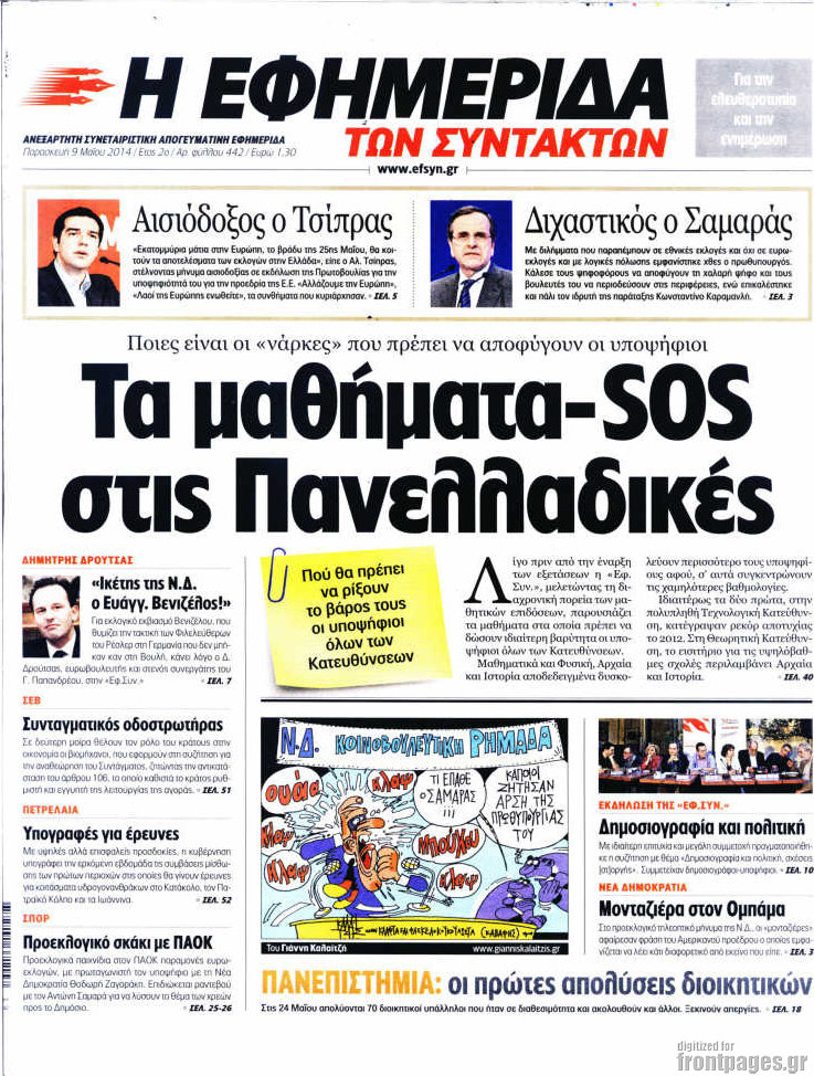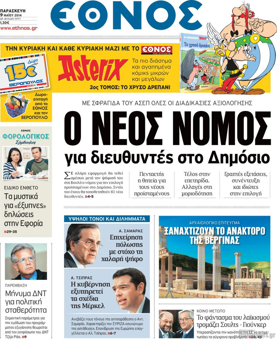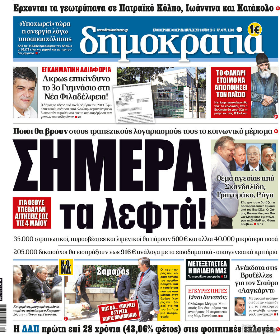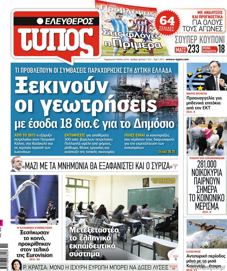 Οι πολιτικές εφημερίδες Enikos Newsroom 08:39, Παρασκευή 09 Μαΐου 2014 Media Οι πολιτικές εφημερίδες Διαβάστε τα πρωτοσέλιδα των πολιτικών εφημερίδων: ΕΦΗΜΕΡΙΔΑ ΠΟΛΙΤΙΚΕΣ ΕΦΗΜΕΡΙΔΕΣ ΠΡΩΤΟΣΕΛΙΔΑ Μοιράσου το: σχολίασε κι εσύ (0 σχόλια) Ακολουθήστε το enikos.gr στο Google News και μάθετε πρώτοι όλες τις ειδήσεις Δείτε όλες τις τελευταίες ειδήσεις από την Ελλάδα και τον Κόσμο στο enikos.gr Ειδήσεις Ροή Ειδήσεων 1 ώρα πριν Πώς δρούσε το κύκλωμα που διακινούσε ναρκωτικά σε σχολεία – Υπέβαλαν σε βασανιστήρια όσους δεν τηρούσαν τους «κανόνες πειθαρχίας» 2 ώρες πριν Αγρότες: Γιορτές στα μπλόκα με ανοιχτά διόδια – Δικογραφία στα Ιωάννινα για το σήκωμα των μπαρών 5 ώρες πριν Αρχεία Έπσταϊν: Οι συγκλονιστικές φωτογραφίες – Ο Μάικλ Τζάκσον, ο Μικ Τζάγκερ και ο Κέβιν Σπέισι ανάμεσα στους διάσημους που απεικονίζονται 24 λεπτά πριν NBC: Ο Νετανιάχου σχεδιάζει να ενημερώσει τον Τραμπ για πιθανά νέα πλήγματα εναντίον του Ιράν 33 λεπτά πριν Αττική: Εξαρθρώθηκε εγκληματική οργάνωση που έκλεβε οχήματα, τα παραποιούσε και τα μεταπωλούσε σε πολίτες – Πώς δρούσε το κύκλωμα 2 ώρες πριν Η τύχη χαμογελά σε 3 ζώδια έως τις 28 Δεκεμβρίου – «Προσέξτε τις επιλογές σας και η επιμονή σας θα ανταμειφθεί» 6 ώρες πριν Διαιτολόγος αποκαλύπτει 9 πρωινές συνήθειες που «λιώνουν» το κοιλιακό λίπος – «Υποστηρίζουν την υγιεινή απώλεια βάρους» 3 ώρες πριν Μία ανεκμετάλλευτη πηγή θα μπορούσε να προσφέρει ανεξάντλητη ενέργεια – Οι επιστήμονες ίσως γνωρίζουν πώς να την ξεκλειδώσουν 9 ώρες πριν Enerwave: Το νέο «ρεύμα» στη λιανική ενέργειας που αλλάζει την εμπειρία του καταναλωτή 5 λεπτά πριν Νιούκαστλ – Τσέλσι 2-2: Αλύγιστοι οι Λονδρέζοι 15 λεπτά πριν Μικαέλα Μπέντχαους: Ο πρώτος άνθρωπος σε αναπηρικό αμαξίδιο που ταξίδεψε στο διάστημα – ΒΙΝΤΕΟ 24 λεπτά πριν NBC: Ο Νετανιάχου σχεδιάζει να ενημερώσει τον Τραμπ για πιθανά νέα πλήγματα εναντίον του Ιράν 33 λεπτά πριν Αττική: Εξαρθρώθηκε εγκληματική οργάνωση που έκλεβε οχήματα, τα παραποιούσε και τα μεταπωλούσε σε πολίτες – Πώς δρούσε το κύκλωμα 42 λεπτά πριν Κωνσταντίνος Αργυρός: «Δεν θέλω να ασχοληθώ με την πολιτική σε αυτή τη φάση – Μου έχουν γίνει προτάσεις» ENIKOS NETWORK Γιατί πρέπει να ζητάμε χάρες; Ποιο είναι το φαινόμενο Ben Franklin που κάνει τους άλλους να μας συμπαθούν Η αποχή από την αναπαραγωγή παρατείνει τη ζωή στα ζώα, σύμφωνα με μελέτη – Τι ισχύει για τους ανθρώπους; Στα ύψη ο χρυσός – Νέο ρεκόρ στην τιμή της λίρας, πόσο πωλείται Τέλη κυκλοφορίας 2026: Προσοχή στην προθεσμία εξόφλησής τους – Πώς διαμορφώνονται τα πρόστιμα σε περίπτωση καθυστέρησης Χαρτογραφώντας το «σημείο χωρίς επιστροφή»: Για πρώτη φορά αποκαλύπτεται με λεπτομέρεια το ακανθώδες όριο της ατμόσφαιρας τ... Η Google καταργεί τη λειτουργία «dark web report» – Πώς θα μπορούν οι χρήστες να διαγράφουν τα δεδομένα τους περισσότερα 14:04 , Σάββατο 20 Δεκεμβρίου 2025 Η Realnews αυτής της Κυριακής (21/12/2025) Με τίτλο: «Ασπίδα προστασίας για την Ελλάδα» κυκλοφορεί, αυτήν την Κυριακή, η Realnews. Σημαντ... 12:53 , Σάββατο 20 Δεκεμβρίου 2025 Να μ’ αγαπάς: Το παρελθόν έρχεται στο φως – Καταιγιστικές εξελίξεις στα τελευταία επεισόδια του 2025 Ο Άγγελος αποκαλύπτεται, η Φωτεινή ανησυχεί για τον Λευτέρη και η Ζωή έρχεται αντιμέτωπη με το... 11:41 , Σάββατο 20 Δεκεμβρίου 2025 «Η αγάπη δεν χάνεται ποτέ»: Η μικρού μήκους ταινία κινουμένων σχεδίων που θέτει ερωτήματα για τη ζωή και τον θάνατο Ο θάνατος είναι ένα από τα πιο σκληρά θέματα που καλείται να διαχειρισ