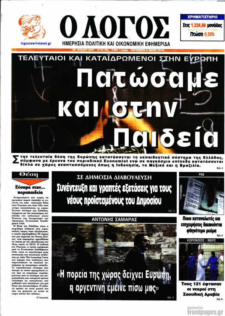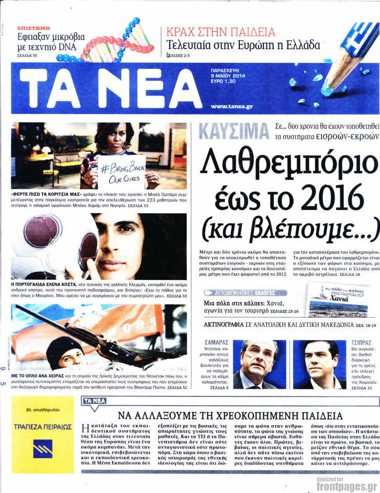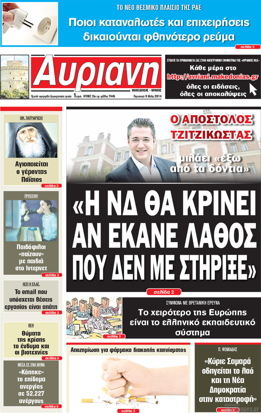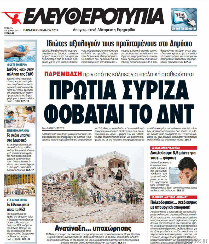 Οι πολιτικές εφημερίδες Enikos Newsroom 08:39, Παρασκευή 09 Μαΐου 2014 Media Οι πολιτικές εφημερίδες Διαβάστε τα πρωτοσέλιδα των πολιτικών εφημερίδων: ΕΦΗΜΕΡΙΔΑ ΠΟΛΙΤΙΚΕΣ ΕΦΗΜΕΡΙΔΕΣ ΠΡΩΤΟΣΕΛΙΔΑ Μοιράσου το: σχολίασε κι εσύ (0 σχόλια) Ακολουθήστε το enikos.gr στο Google News και μάθετε πρώτοι όλες τις ειδήσεις Δείτε όλες τις τελευταίες ειδήσεις από την Ελλάδα και τον Κόσμο στο enikos.gr Ειδήσεις Ροή Ειδήσεων 1 ώρα πριν Πώς δρούσε το κύκλωμα που διακινούσε ναρκωτικά σε σχολεία – Υπέβαλαν σε βασανιστήρια όσους δεν τηρούσαν τους «κανόνες πειθαρχίας» 2 ώρες πριν Αγρότες: Γιορτές στα μπλόκα με ανοιχτά διόδια – Δικογραφία στα Ιωάννινα για το σήκωμα των μπαρών 5 ώρες πριν Αρχεία Έπσταϊν: Οι συγκλονιστικές φωτογραφίες – Ο Μάικλ Τζάκσον, ο Μικ Τζάγκερ και ο Κέβιν Σπέισι ανάμεσα στους διάσημους που απεικονίζονται 24 λεπτά πριν NBC: Ο Νετανιάχου σχεδιάζει να ενημερώσει τον Τραμπ για πιθανά νέα πλήγματα εναντίον του Ιράν 33 λεπτά πριν Αττική: Εξαρθρώθηκε εγκληματική οργάνωση που έκλεβε οχήματα, τα παραποιούσε και τα μεταπωλούσε σε πολίτες – Πώς δρούσε το κύκλωμα 2 ώρες πριν Η τύχη χαμογελά σε 3 ζώδια έως τις 28 Δεκεμβρίου – «Προσέξτε τις επιλογές σας και η επιμονή σας θα ανταμειφθεί» 6 ώρες πριν Διαιτολόγος αποκαλύπτει 9 πρωινές συνήθειες που «λιώνουν» το κοιλιακό λίπος – «Υποστηρίζουν την υγιεινή απώλεια βάρους» 3 ώρες πριν Μία ανεκμετάλλευτη πηγή θα μπορούσε να προσφέρει ανεξάντλητη ενέργεια – Οι επιστήμονες ίσως γνωρίζουν πώς να την ξεκλειδώσουν 9 ώρες πριν Enerwave: Το νέο «ρεύμα» στη λιανική ενέργειας που αλλάζει την εμπειρία του καταναλωτή 5 λεπτά πριν Νιούκαστλ – Τσέλσι 2-2: Αλύγιστοι οι Λονδρέζοι 15 λεπτά πριν Μικαέλα Μπέντχαους: Ο πρώτος άνθρωπος σε αναπηρικό αμαξίδιο που ταξίδεψε στο διάστημα – ΒΙΝΤΕΟ 24 λεπτά πριν NBC: Ο Νετανιάχου σχεδιάζει να ενημερώσει τον Τραμπ για πιθανά νέα πλήγματα εναντίον του Ιράν 33 λεπτά πριν Αττική: Εξαρθρώθηκε εγκληματική οργάνωση που έκλεβε οχήματα, τα παραποιούσε και τα μεταπωλούσε σε πολίτες – Πώς δρούσε το κύκλωμα 42 λεπτά πριν Κωνσταντίνος Αργυρός: «Δεν θέλω να ασχοληθώ με την πολιτική σε αυτή τη φάση – Μου έχουν γίνει προτάσεις» ENIKOS NETWORK Γιατί πρέπει να ζητάμε χάρες; Ποιο είναι το φαινόμενο Ben Franklin που κάνει τους άλλους να μας συμπαθούν Η αποχή από την αναπαραγωγή παρατείνει τη ζωή στα ζώα, σύμφωνα με μελέτη – Τι ισχύει για τους ανθρώπους; Στα ύψη ο χρυσός – Νέο ρεκόρ στην τιμή της λίρας, πόσο πωλείται Τέλη κυκλοφορίας 2026: Προσοχή στην προθεσμία εξόφλησής τους – Πώς διαμορφώνονται τα πρόστιμα σε περίπτωση καθυστέρησης Χαρτογραφώντας το «σημείο χωρίς επιστροφή»: Για πρώτη φορά αποκαλύπτεται με λεπτομέρεια το ακανθώδες όριο της ατμόσφαιρας τ... Η Google καταργεί τη λειτουργία «dark web report» – Πώς θα μπορούν οι χρήστες να διαγράφουν τα δεδομένα τους περισσότερα 14:04 , Σάββατο 20 Δεκεμβρίου 2025 Η Realnews αυτής της Κυριακής (21/12/2025) Με τίτλο: «Ασπίδα προστασίας για την Ελλάδα» κυκλοφορεί, αυτήν την Κυριακή, η Realnews. Σημαντ... 12:53 , Σάββατο 20 Δεκεμβρίου 2025 Να μ’ αγαπάς: Το παρελθόν έρχεται στο φως – Καταιγιστικές εξελίξεις στα τελευταία επεισόδια του 2025 Ο Άγγελος αποκαλύπτεται, η Φωτεινή ανησυχεί για τον Λευτέρη και η Ζωή έρχεται αντιμέτωπη με το... 11:41 , Σάββατο 20 Δεκεμβρίου 2025 «Η αγάπη δεν χάνεται ποτέ»: Η μικρού μήκους ταινία κινουμένων σχεδίων που θέτει ερωτήματα για τη ζωή και τον θάνατο Ο θάνατος είναι ένα από τα πιο σκληρά θέματα που καλείται να διαχειρισ