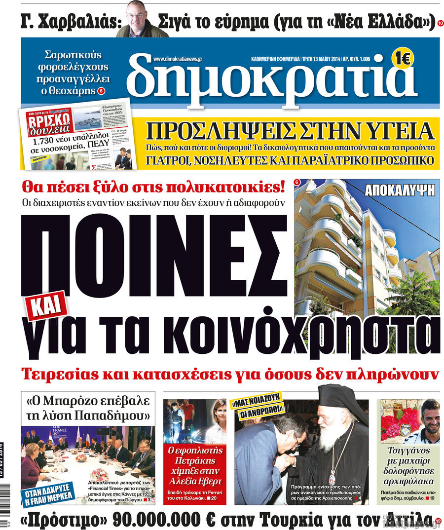 Οι πολιτικές εφημερίδες Enikos Newsroom 08:33, Τρίτη 13 Μαΐου 2014 Media Οι πολιτικές εφημερίδες Διαβάστε τα πρωτοσέλιδα των πολιτικών εφημερίδων: ΕΦΗΜΕΡΙΔΕΣ ΠΟΛΙΤΙΚΕΣ ΕΦΗΜΕΡΙΔΕΣ ΠΡΩΤΟΣΕΛΙΔΑ Μοιράσου το: σχολίασε κι εσύ (0 σχόλια) Ακολουθήστε το enikos.gr στο Google News και μάθετε πρώτοι όλες τις ειδήσεις Δείτε όλες τις τελευταίες ειδήσεις από την Ελλάδα και τον Κόσμο στο enikos.gr Ειδήσεις Ροή Ειδήσεων 2 ώρες πριν Γιορτές με μπλόκα για τους αγρότες: Ανοίγουν διόδια και μοιράζουν προϊόντα στους ταξιδιώτες 18 λεπτά πριν Τσιάρας για αγρότες: Ικανοποιείται το αίτημα για αφορολόγητο πετρέλαιο στη μάνικα, πρόθεσή μας να μειωθεί ακόμη περισσότερο η τιμή στο ρεύμα 32 λεπτά πριν Αρχεία Έπσταϊν: Οι συγκλονιστικές φωτογραφίες – Ο Μάικλ Τζάκσον, ο Μικ Τζάγκερ και ο Κέβιν Σπέισι ανάμεσα στους διάσημους που απεικονίζονται 2 ώρες πριν Νέες ταυτότητες: Μεγάλη αναμονή για ραντεβού στην Αττική – Τέλος τα ταξίδια εκτός Ελλάδος από τον Αύγουστο για όσους δεν έχουν αλλάξει 1 ώρα πριν Ινδία: Επτά ελέφαντες σκοτώθηκαν κατά τη σύγκρουση επιβατικού τρένου με κοπάδι 3 ώρες πριν Μία νέα «χρυσή» περίοδος αρχίζει για 3 ζώδια από σήμερα – «Μία αναπάντεχη ευκαιρία οδηγεί στην επιτυχία» 5 ώρες πριν Αρχαιολόγοι ανακάλυψαν σε χωράφι απεικόνιση 600 ετών ενός Αγίου – Τα στοιχεία που δείχνουν ότι μαρτύρησε 4 ώρες πριν Αγχώνεται για το χριστουγεννιάτικο δώρο που πήρε στην πλούσια σύντροφό του – «Φοβάμαι πως θα το βρει φθηνιάρικο, φοράει βραχιόλια Cartier» 1 ώρα πριν Διαιτολόγος αποκαλύπτει 9 πρωινές συνήθειες που «λιώνουν» το κοιλιακό λίπος – «Υποστηρίζουν την υγιεινή απώλεια βάρους» 15 λεπτά πριν Καλλιθέα: Έφοδος του «ελληνικού FBI» σε δύο καταστήματα stripshow – 5 συλλήψεις – Βίντεο 46 δευτερόλεπτα πριν Αμαλιάδα: Συνελήφθη ο «εγκέφαλος» της κινηματογραφικής διάρρηξης κοσμηματοπωλείου 8 λεπτά πριν Να μ’ αγαπάς: Το παρελθόν έρχεται στο φως – Καταιγιστικές εξελίξεις στα τελευταία επεισόδια του 2025 16 λεπτά πριν Αγρίνιο: Αυτοκίνητο «προσγειώθηκε» σε αυλή σπιτιού μετά από εκτροπή 18 λεπτά πριν Τσιάρας για αγρότες: Ικανοποιείται το αίτημα για αφορολόγητο πετρέλαιο στη μάνικα, πρόθεσή μας να μειωθεί ακόμη περισσότερο η τιμή στο ρεύμα ENIKOS NETWORK Γήρανση του εγκεφάλου: Νευροεπιστήμονες ανακάλυψαν τη 10λεπτη δραστηριότητα που μπορεί να τη σταματήσει Είστε μόνιμα απρόσεκτοι; 3 σημάδια που δείχνουν ότι μπορεί να είναι σύμπτωμα πάθησης Χρήστος Δήμας: Στα 2,5 εκατ. ευρώ την ημέρα το κόστος από το άνοιγμα των διοδίων από τους αγρότες – Θα αξιώσουν αποζημίωση ... Χριστούγεννα και Πρωτοχρονιά: Πώς αμείβονται όσοι εργαστούν Χαρτογραφώντας το «σημείο χωρίς επιστροφή»: Για πρώτη φορά αποκαλύπτεται με λεπτομέρεια το ακανθώδες όριο της ατμόσφαιρας τ... Η Google καταργεί τη λειτουργία «dark web report» – Πώς θα μπορούν οι χρήστες να διαγράφουν τα δεδομένα τους περισσότερα 12:53 , Σάββατο 20 Δεκεμβρίου 2025 Να μ’ αγαπάς: Το παρελθόν έρχεται στο φως – Καταιγιστικές εξελίξεις στα τελευταία επεισόδια του 2025 Ο Άγγελος αποκαλύπτεται, η Φωτεινή ανησυχεί για τον Λευτέρη και η Ζωή έρχεται αντιμέτωπη με το... 11:41 , Σάββατο 20 Δεκεμβρίου 2025 «Η αγάπη δεν χάνεται ποτέ»: Η μικρού μήκους ταινία κινουμένων σχεδίων που θέτει ερωτήματα για τη ζωή και τον θάνατο Ο θάνατος είναι ένα από τα πιο σκληρά θέματα που καλείται να διαχειριστεί κάποιος στη διάρκεια... 09:30 , Σάββατο 20 Δεκεμβρίου 2025 «Porto Leone: Στη γειτονιά με τα κόκκινα φανάρια» – Ο Χρόνης αποκαλύπτει στην Αλεξ