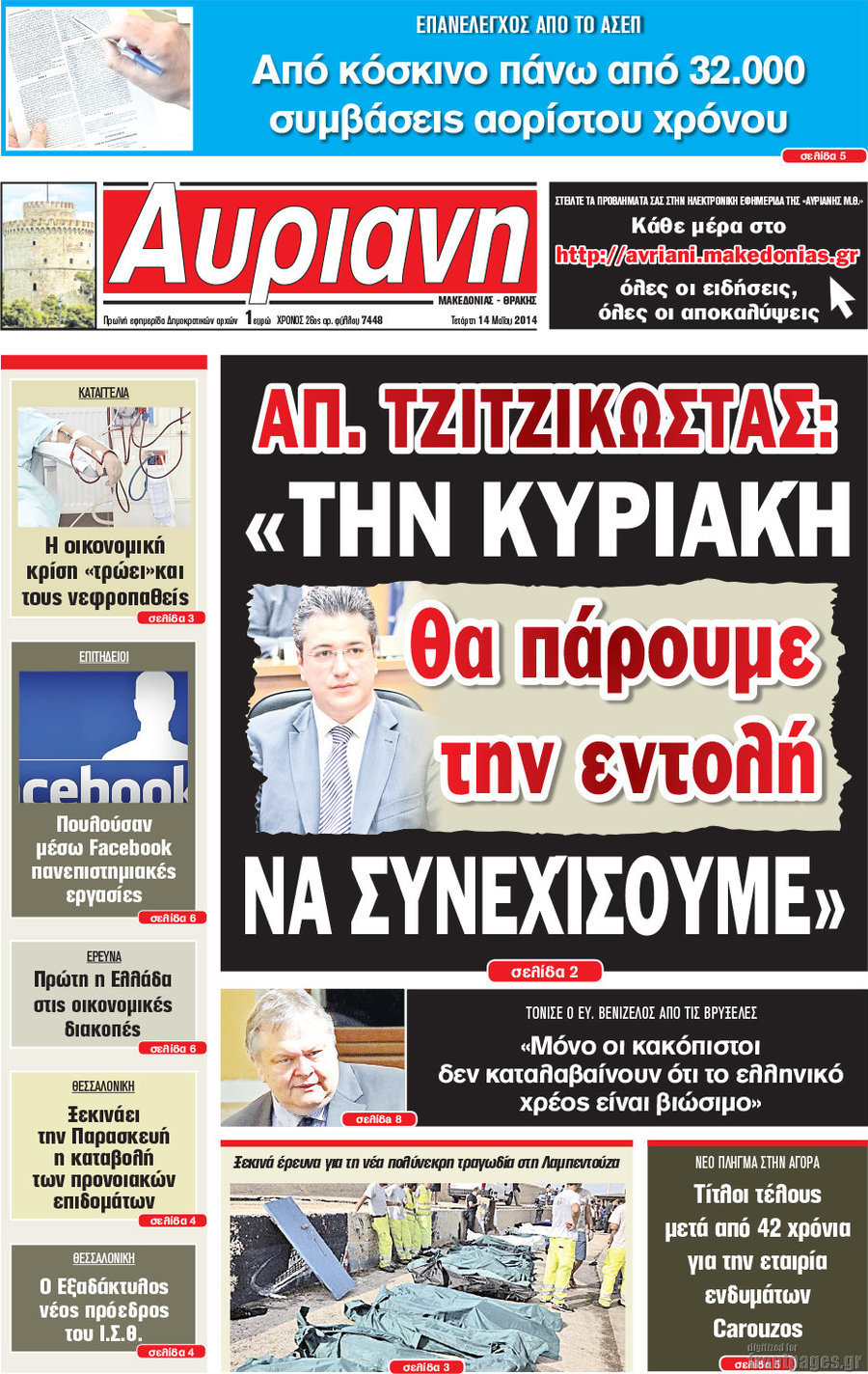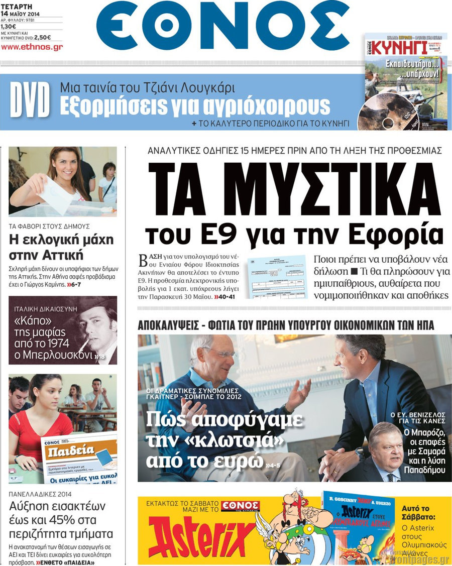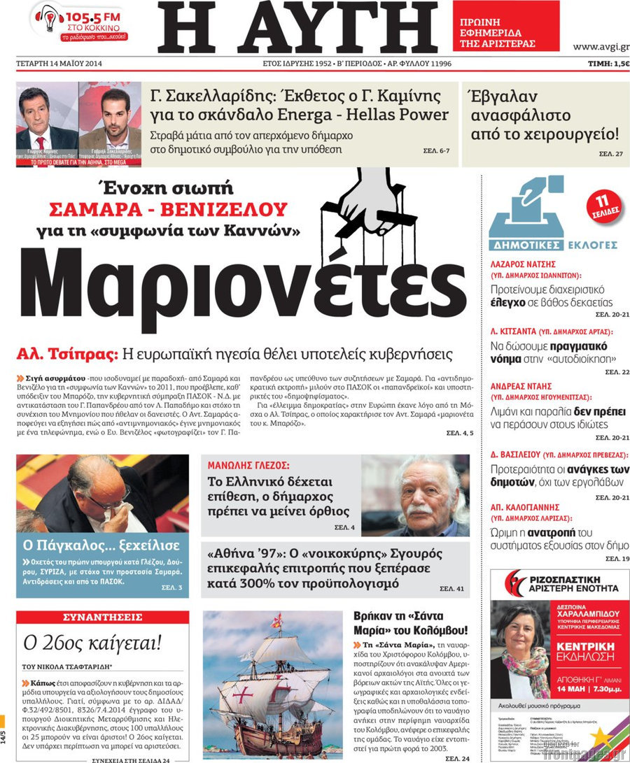 Οι πολιτικές εφημερίδες Enikos Newsroom 08:20, Τετάρτη 14 Μαΐου 2014 Media Οι πολιτικές εφημερίδες Διαβάστε τα πρωτοσέλιδα των πολιτικών εφημερίδων: ΕΦΗΜΕΡΙΔΕΣ ΠΟΛΙΤΙΚΕΣ ΕΦΗΜΕΡΙΔΕΣ ΠΡΩΤΟΣΕΛΙΔΑ Μοιράσου το: σχολίασε κι εσύ (0 σχόλια) Ακολουθήστε το enikos.gr στο Google News και μάθετε πρώτοι όλες τις ειδήσεις Δείτε όλες τις τελευταίες ειδήσεις από την Ελλάδα και τον Κόσμο στο enikos.gr Ειδήσεις Ροή Ειδήσεων 7 ώρες πριν Ιράν: Γιατί ξεσηκώνονται τώρα οι πολίτες – Η «θολή» λύση Παχλαβί, η στάση του Τραμπ και ο διαχωρισμός θρησκείας-κράτους 6 ώρες πριν Washington Post: Το παρασκήνιο της σύλληψης του Νικολάς Μαδούρο – Ρωσία και Βατικανό του είχαν προτείνει άσυλο 43 λεπτά πριν Ιράν: Οργή στους δρόμους από τους διαδηλωτές, πάνω από 50 οι νεκροί σε 13 ημέρες – «Ο λαός είναι έτοιμος να πάρει τον έλεγχο των πόλεων», λέει ο Τραμπ 7 ώρες πριν Πάτρα: Νέο βίντεο ντοκουμέντο από τον θανάσιμο ξυλοδαρμό του 30χρονου Κώστα – Τι υποστηρίζουν οι συγγενείς του για τον μοιραίο καβγά 7 ώρες πριν Αγρότες: «Ραντεβού» το Σάββατο στη Νίκαια ενόψει της συνάντησης με τον Πρωθυπουργό – Ποιοι δρόμοι άνοιξαν και πού υπάρχουν ακόμα αποκλεισμοί 24 λεπτά πριν Τα ζώδια σήμερα, Σάββατο 10 Ιανουαρίου 2026: Υδροχόοι, κρατήστε μόνο τις γνώμες που αξίζουν και αγνοήστε τις υπόλοιπες 7 ώρες πριν Στο φως άγνωστο νεκροταφείο στη Ρωμυλία με σχεδόν 9.000 τύμβους του 14ου αιώνα – «Ανοίγεται ένα εντελώς διαφορετικό κεφάλαιο της ιστορίας» 8 ώρες πριν Ύπνος και μακροζωία: Θέλετε να ζήσετε περισσότερο; 6 συμβουλές από ειδικούς για να κοιμάστε καλύτερα 9 ώρες πριν Αριθμολογία: Η ημερομηνία γέννησής σας αποκαλύπτει την αλήθεια που είστε έτοιμοι να δείτε κατάματα 6 λεπτά πριν Οι οικονομικές εφημερίδες 10/1/2026 10 λεπτά πριν Οι αθλητικές εφημερίδες 10/1/2026 15 λεπτά πριν Οι πολιτικές εφημερίδες 10/1/2026 24 λεπτά πριν Τα ζώδια σήμερα, Σάββατο 10 Ιανουαρίου 2026: Υδροχόοι, κρατήστε μόνο τις γνώμες που αξίζουν και αγνοήστε τις υπόλοιπες 29 λεπτά πριν Εθεάθη το «Αεροπλάνο της Ημέρας της Κρίσης» στο Λος Άντζελες – Σενάρια πυρηνικής απειλής στην ατμόσφαιρα ENIKOS NETWORK Δαγκώνετε τα νύχια σας, είστε αναβλητικοί και κάνετε σαμποτάζ στον εαυτό σας; Ειδικός εξηγεί τι σημαίνουν όλα αυτά Στο «κόκκινο» η γρίπη το επόμενο διάστημα- Σε ετοιμότητα το ΕΣΥ Χρηματιστήριο Αθηνών: Εβδομαδιαία άνοδος 2,30% με νέα υψηλά 16 ετών, κέρδη 5,14% για τις τράπεζες Ακίνητα: Οι ακριβότερες και φθηνότερες περιοχές της χώρας για ενοικίαση – αγορά Ο Google Assistant θα παραμείνει λίγο περισσότερο για ορισμένους χρήστες Android Τεστ προσωπικότητας: Το βάζο που θα επιλέξετε αποκαλύπτει πώς λύνετε προβλήματα στη ζωή σας περισσότερα 05:48 , Σάββατο 10 Ιανουαρίου 2026 Οι οικονομικές εφημερίδες 10/1/2026 Διαβάστε τα πρωτοσέλιδα από τις οικονομικές εφημερίδες, σήμερα 10/1/2026. 05:43 , Σάββατο 10 Ιανουαρίου 2026 Οι αθλητικές εφημερίδες 10/1/2026 Διαβάστε τα πρωτοσέλιδα από τις αθλητικές εφημερίδες, σήμερα 10/1/2026. 05:38 , Σάββατο 10 Ιανουαρίου 2026 Οι πολιτικές εφημερίδες 10/1/2026 Διαβάστε τα πρωτοσέλιδα από τις πολιτικές εφημερίδες, σήμερα 10/1/2026. 04:16 , Σάββατο 10 Ιανουαρίου 2026 Μένιος Σακελλαρόπουλος: «Στο “Ριφιφί” έπαιξα τον εαυτό μου – Ο Τσαφούλιας είναι φίλος μου και μου είπε…» Ο Μένιος Σακελλαρόπουλος βρέθηκε καλεσμένος στην εκπομπή της Αθηναΐδας Νέγκα, «Καλύτερα Αργά»,... ΤΕΛΕΥΤΑΙΕΣ ΕΙΔΗΣΕΙΣ 6 λεπτά πριν Οι οικονομικές εφημερίδες 10/1/2026 10 λεπτά πριν Οι αθλητικές εφημερίδες 10/1/2026 15 λεπτά πριν Οι πολιτικές εφημερίδες 10/1/2026 24 λεπτά πριν Τα ζώδια
