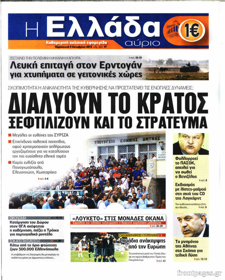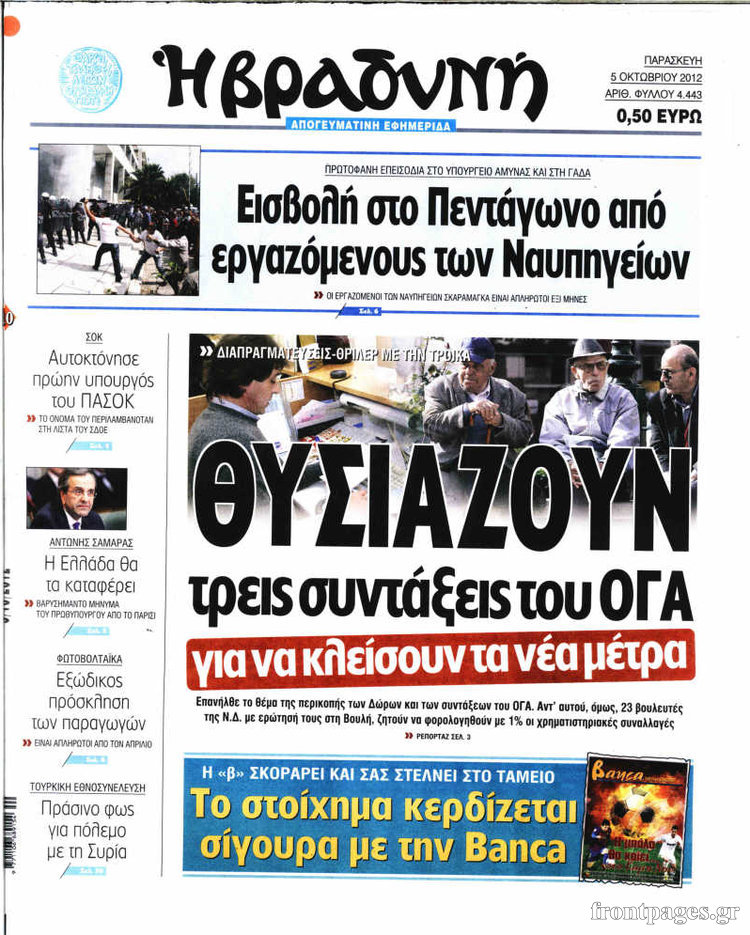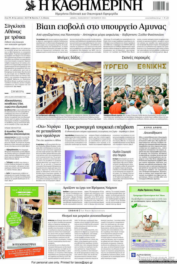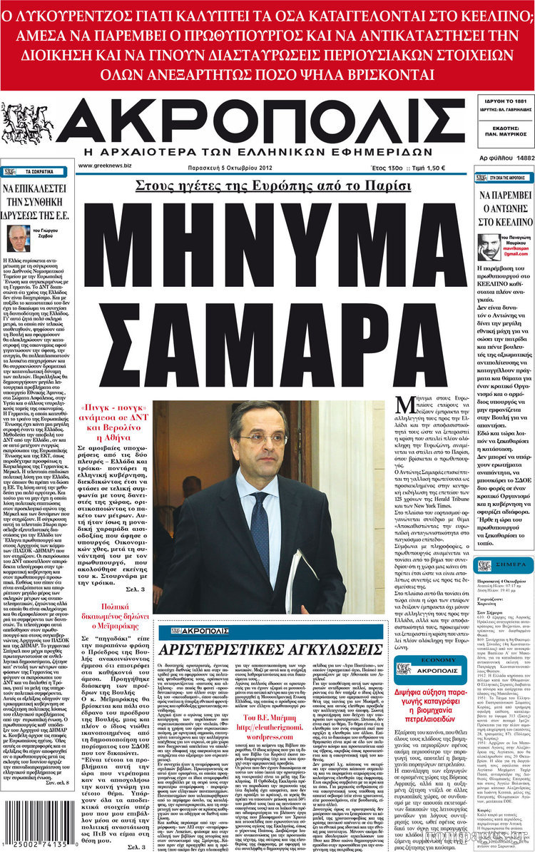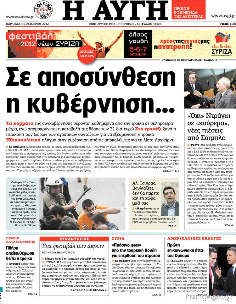 Διαβάστε τα σημερινά πρωτοσέλιδα των πολιτικών εφημερίδων.