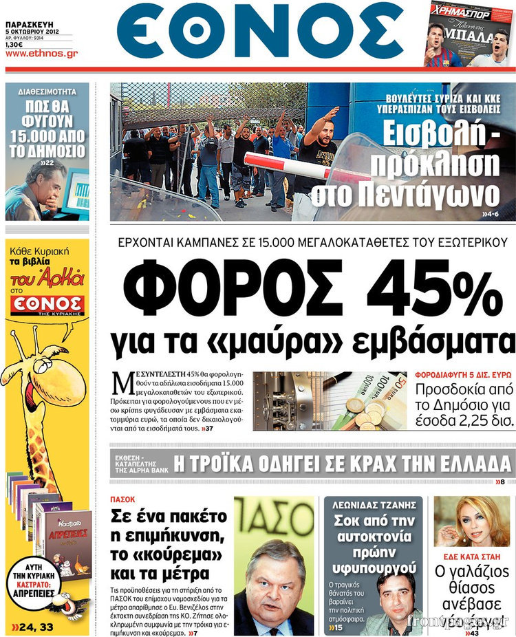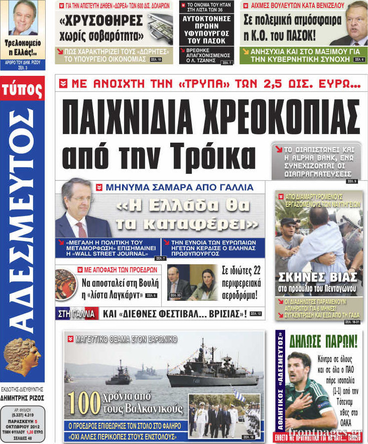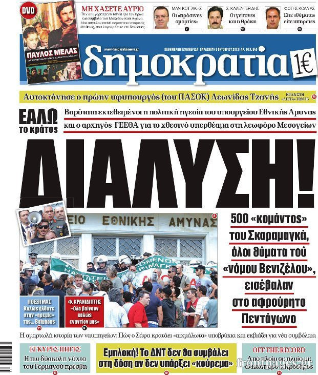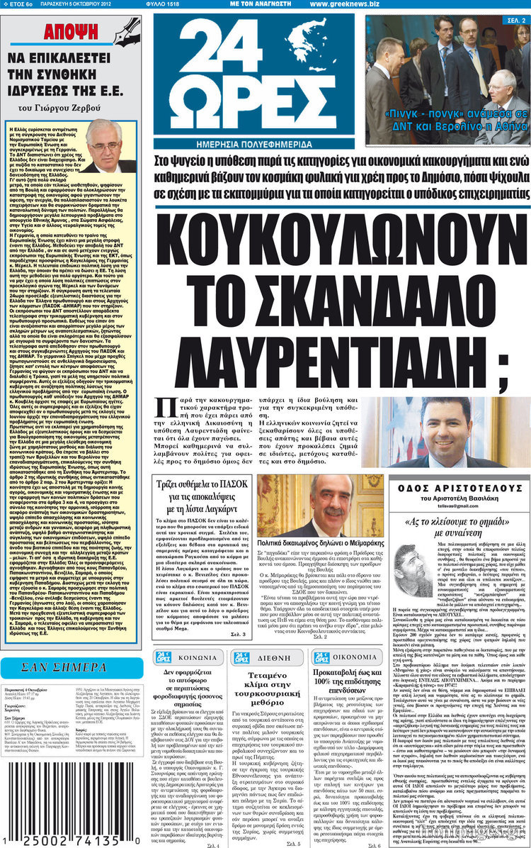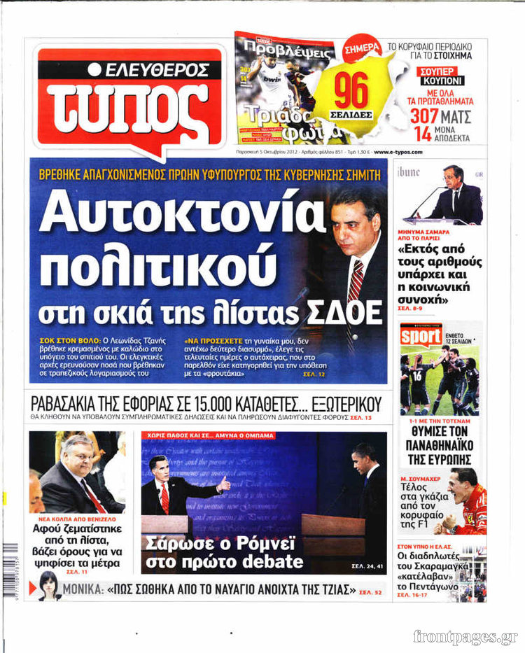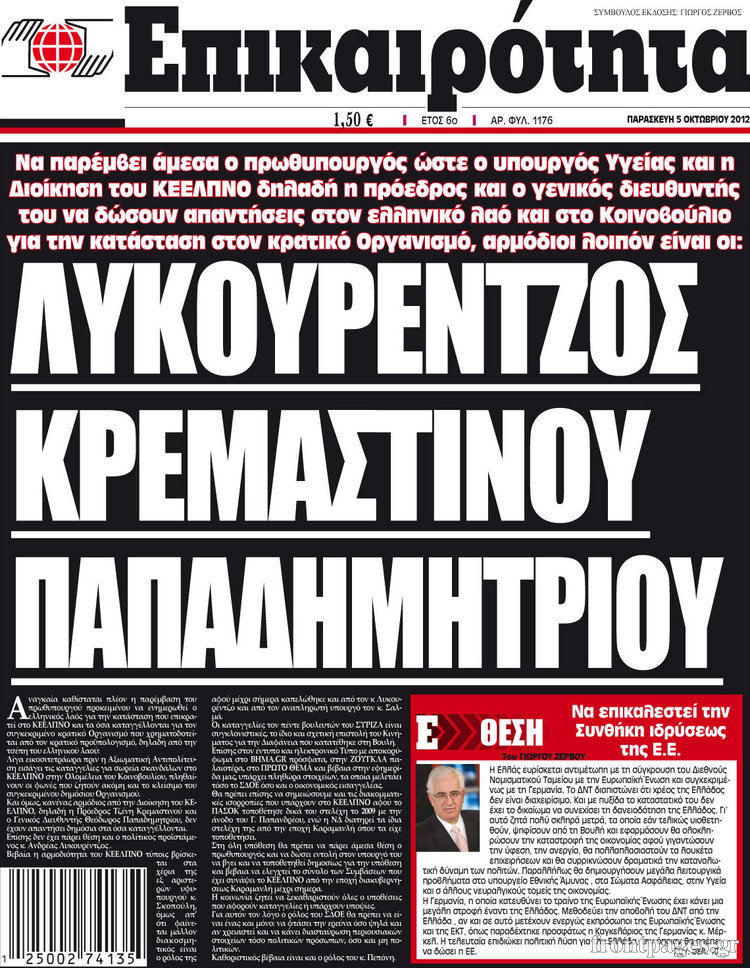 Διαβάστε τα σημερινά πρωτοσέλιδα των πολιτικών εφημερίδων.