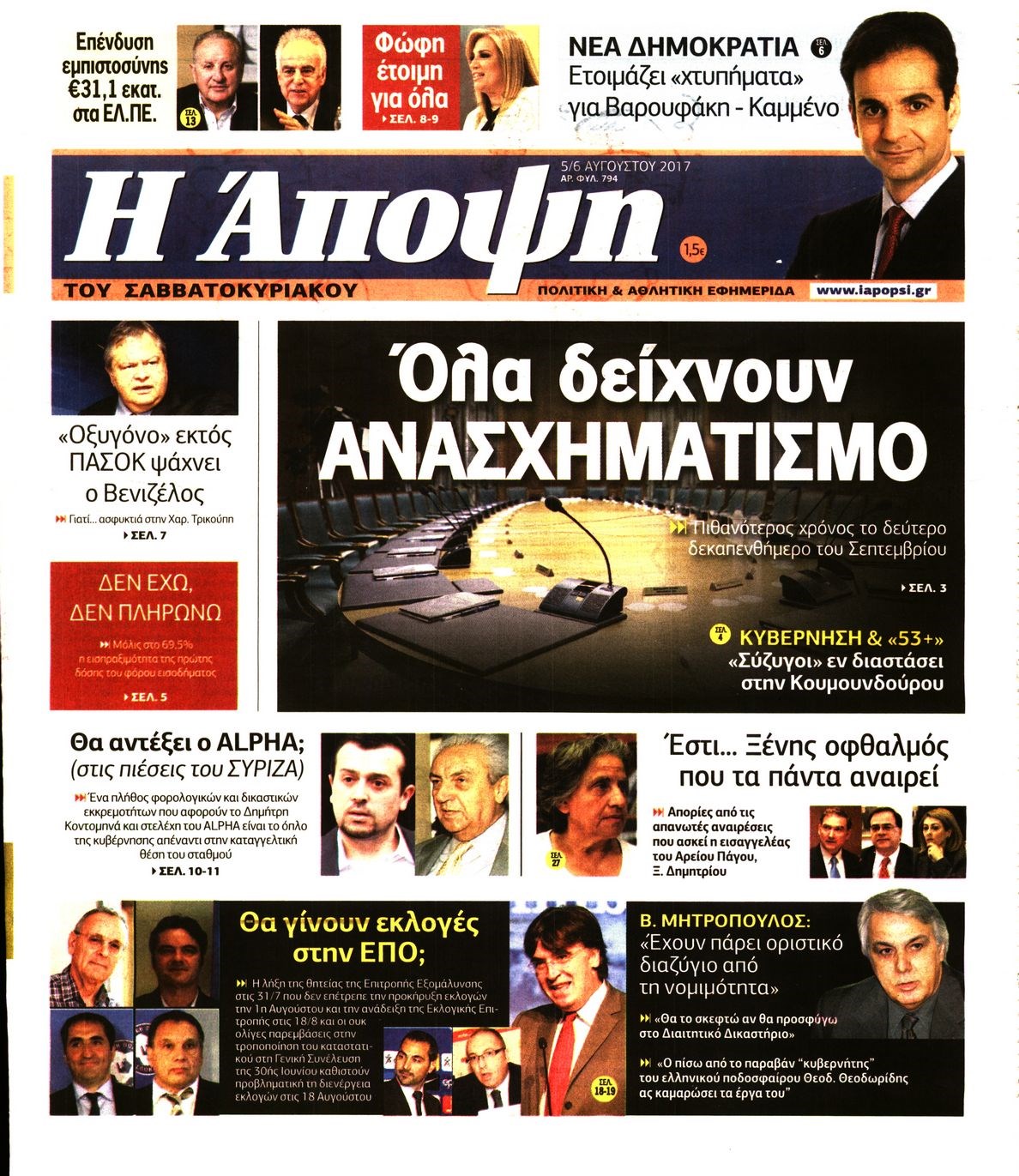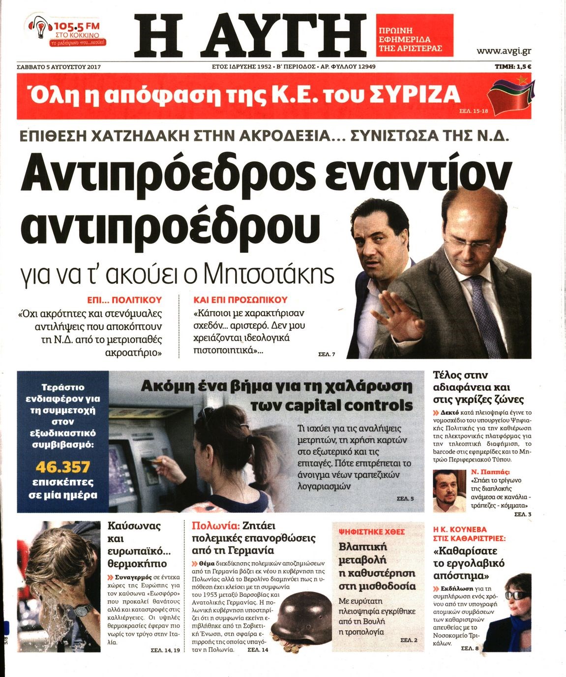 Οι πολιτικές εφημερίδες 5/8/2017 Κώστας Τεό 06:36, Σάββατο 05 Αυγούστου 2017 Media Διαβάστε τα σημερινά πρωτοσέλιδα των πολιτικών εφημερίδων: ΠΟΛΙΤΙΚΕΣ ΕΦΗΜΕΡΙΔΕΣ ΠΡΩΤΟΣΕΛΙΔΑ Μοιράσου το: σχολίασε κι εσύ (0 σχόλια) Ακολουθήστε το enikos.gr στο Google News και μάθετε πρώτοι όλες τις ειδήσεις Δείτε όλες τις τελευταίες ειδήσεις από την Ελλάδα και τον Κόσμο στο enikos.gr Ειδήσεις Ροή Ειδήσεων 6 ώρες πριν Χριστούγεννα στα μπλόκα οι αγρότες: Άνοιξαν στα διόδια και μοίρασαν προϊόντα στους πολίτες – Νέα σύσκεψη την Κυριακή στη Νίκαια 6 ώρες πριν Κύκλωμα διακίνησης ναρκωτικών σε σχολεία: Τηλεφωνούσαν στους ανηλίκους την ώρα του μαθήματος – Οι διάλογοι-σοκ, τα «ψευδώνυμα» και τα βασανιστήρια 6 ώρες πριν Αρχεία Επστάιν: Οι 500 σελίδες που λείπουν, τα αναπάντητα ερωτήματα και οι επώνυμοι – Τι έπεται 7 ώρες πριν Ζελένσκι: Μόνο οι ΗΠΑ και ο Τραμπ μπορούν να πιέσουν τη Ρωσία να βάλει τέλος στον πόλεμο 8 ώρες πριν Φοινικούντα: Προφυλακιστέος ο 30χρονος για συνέργεια στη διπλή δολοφονία – Και άλλα πρόσωπα στο «μικροσκόπιο» 6 ώρες πριν Αποκαλύφθηκε το άγνωστο «GPS» της αρχαιότητας – Πώς οι ναοί «φώτιζαν» τον δρόμο των ναυτικών πριν από την εφεύρεση των φάρων 7 ώρες πριν Ύπνος: Η διατροφή που μπορεί να σας βοηθήσει να κοιμάστε καλύτερα και να ζήσετε περισσότερο 8 ώρες πριν Αριθμολογία: Ο αριθμός του φύλακα αγγέλου σας, με βάση τον μήνα γέννησής σας – «Έτσι σας στέλνει σημάδια το σύμπαν» 20 ώρες πριν Enerwave: Το νέο «ρεύμα» στη λιανική ενέργειας που αλλάζει την εμπειρία του καταναλωτή 34 λεπτά πριν Σήμερα με τη Realnews: Δωροεπιταγή 10€ 19 λεπτά πριν Βενεζουέλα: Καταδικάζει την «κλοπή και την απαγωγή» δεύτερου πετρελαιοφόρου δεξαμενόπλοιου από τις ΗΠΑ 26 λεπτά πριν Σήμερα με τη Realnews: Ό,τι και αν αγοράσεις, σκανάρεις και κερδίζεις! 34 λεπτά πριν Βενεζουέλα: Προσφέρει βοήθεια στο Ιράν στην σύγκρουση με τις ΗΠΑ 49 λεπτά πριν Μαριλού Κατσαφάδου: «Η απώλεια της με έβαλε σε διαδικασία να δω διαφορετικά τη ζωή, σαν να ωρίμασα 10 χρόνια» ENIKOS NETWORK Οι γυναίκες αποκαλύπτουν το πιο ελκυστικό πράγμα που μπορεί να κάνει ένας άνδρας Ομορφιά και αντιγήρανση: Ειδικοί μιλούν για συσκευές περιποίησης του δέρματος «Πολεμική» προετοιμασία από την ευρωπαϊκή βιομηχανία ενέργειας – Η Eurelectric ζητεί «ομπρέλα» προστασίας για τις υποδομές Ακύρωση ΑΦΜ για απάτες – Ποιους βάζει στο στόχαστρο η ΑΑΔΕ Χαρτογραφώντας το «σημείο χωρίς επιστροφή»: Για πρώτη φορά αποκαλύπτεται με λεπτομέρεια το ακανθώδες όριο της ατμόσφαιρας τ... Η Google καταργεί τη λειτουργία «dark web report» – Πώς θα μπορούν οι χρήστες να διαγράφουν τα δεδομένα τους περισσότερα 04:08 , Κυριακή 21 Δεκεμβρίου 2025 Σήμερα με τη Realnews: Ό,τι και αν αγοράσεις, σκανάρεις και κερδίζεις! Σήμερα με τη Realnews: Ό,τι και αν αγοράσεις, σκανάρεις και κερδίζεις! Με το PADU app, το κορυ... 03:08 , Κυριακή 21 Δεκεμβρίου 2025 Σήμερα με τη Realnews: Instyle, μαζί Drive και Realnews Geopolitics Σήμερα με τη Realnews: Instyle, μαζί Drive και Realnews Geopolitics Instyle Η Άννα Ρεζάν, η Ch... 01:30 , Κυριακή 21 Δεκεμβρίου 2025 Άννα Βίσση: Τα… Social Media «προσκύνησαν» την «απόλυτη» για την συναυλία της στο Καλλιμάρμαρο που προβλήθηκε από το Mega Την ημέρα των γενεθλίων της Άννας Βίσση, το MEGA τίμησε τη διαχρονική παρουσία της «απόλυτης Ε... 00:00 , Κυριακή 21 Δεκεμβρίου 2025 The Voice: Η επιστροφή της Έλενας Παπαρίζου και η ατάκα του Γιώργου Μαζωνάκη μετά τις καταγγελίες Στη φάση των Cross Battles Live μπήκε το The Voice, με την Έλενα Παπαρίζου να επιστρέφει στο π... ΤΕΛΕΥΤΑΙΕΣ ΕΙΔΗΣΕΙΣ 19 λεπτά πριν Βενεζο