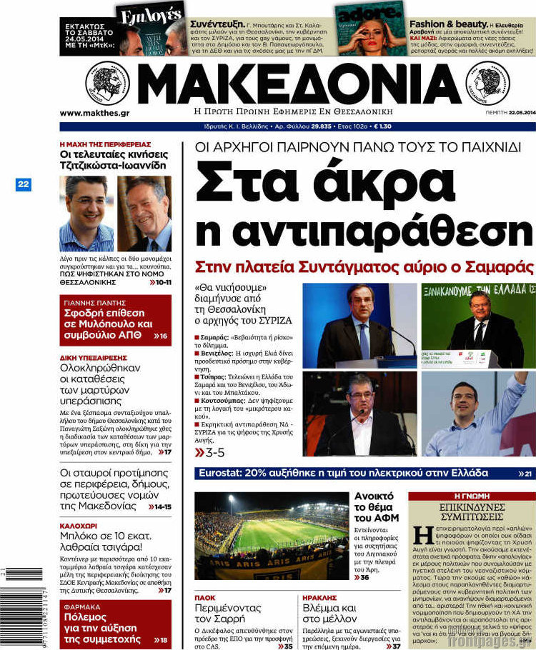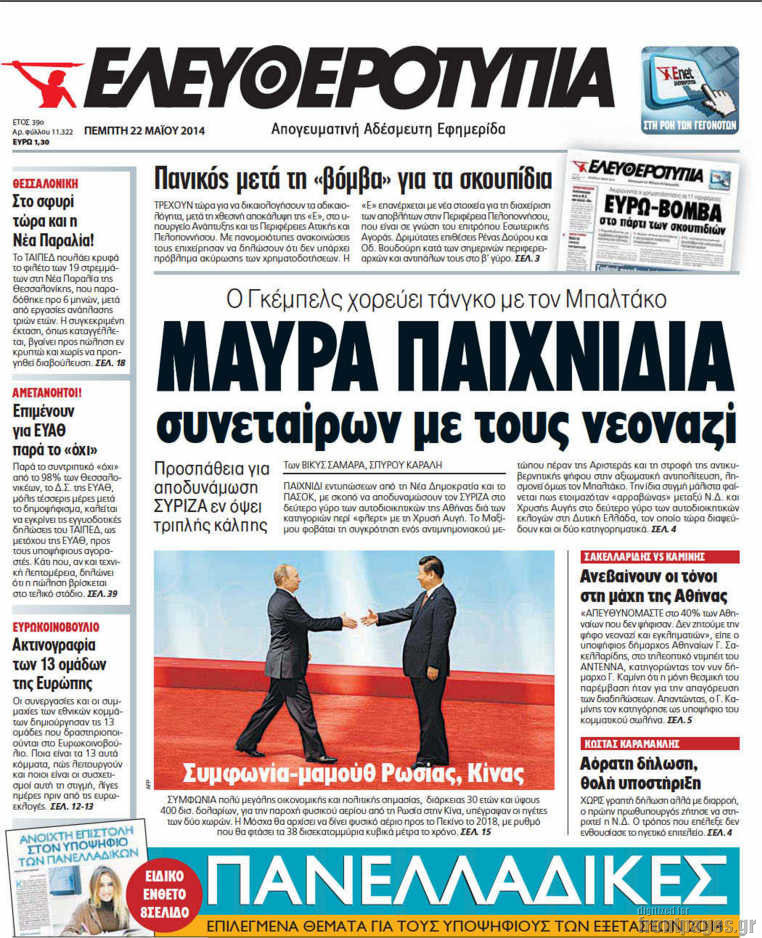 Οι πολιτικές εφημερίδες Enikos Newsroom 08:23, Πέμπτη 22 Μαΐου 2014 Media Οι πολιτικές εφημερίδες Διαβάστε τα πρωτοσέλιδα των πολιτικών εφημερίδων: ΕΦΗΜΕΡΙΔΕΣ ΠΟΛΙΤΙΚΕΣ ΕΦΗΜΕΡΙΔΕΣ ΠΡΩΤΟΣΕΛΙΔΑ Μοιράσου το: σχολίασε κι εσύ (0 σχόλια) Ακολουθήστε το enikos.gr στο Google News και μάθετε πρώτοι όλες τις ειδήσεις Δείτε όλες τις τελευταίες ειδήσεις από την Ελλάδα και τον Κόσμο στο enikos.gr Ειδήσεις Ροή Ειδήσεων 17 λεπτά πριν Χριστούγεννα στα μπλόκα οι αγρότες: Άνοιξαν στα διόδια και μοίρασαν προϊόντα στους πολίτες – Νέα σύσκεψη την Κυριακή στη Νίκαια 38 λεπτά πριν Κύκλωμα διακίνησης ναρκωτικών σε σχολεία: Τηλεφωνούσαν στους ανηλίκους την ώρα του μαθήματος – Οι διάλογοι-σοκ, τα «ψευδώνυμα» και τα βασανιστήρια 6 λεπτά πριν Αρχεία Επστάιν: Οι 500 σελίδες που λείπουν, τα αναπάντητα ερωτήματα και οι επώνυμοι – Τι έπεται 2 ώρες πριν Ζελένσκι: Μόνο οι ΗΠΑ και ο Τραμπ μπορούν να πιέσουν τη Ρωσία να βάλει τέλος στον πόλεμο 2 ώρες πριν Φοινικούντα: Προφυλακιστέος ο 30χρονος για συνέργεια στη διπλή δολοφονία – Και άλλα πρόσωπα στο «μικροσκόπιο» 2 ώρες πριν Αριθμολογία: Ο αριθμός του φύλακα αγγέλου σας, με βάση τον μήνα γέννησής σας – «Έτσι σας στέλνει σημάδια το σύμπαν» 3 ώρες πριν Πώς να απαλλαγείτε από τη μυρωδιά του τηγανητού φαγητού: Το μυστικό βρίσκεται στην κουζίνα σας 14 ώρες πριν Enerwave: Το νέο «ρεύμα» στη λιανική ενέργειας που αλλάζει την εμπειρία του καταναλωτή 1 ώρα πριν Ύπνος: Η διατροφή που μπορεί να σας βοηθήσει να κοιμάστε καλύτερα και να ζήσετε περισσότερο 3 λεπτά πριν Αποκαλύφθηκε το άγνωστο «GPS» της αρχαιότητας – Πώς οι ναοί «φώτιζαν» τον δρόμο των ναυτικών πριν από την εφεύρεση των φάρων 6 λεπτά πριν Αρχεία Επστάιν: Οι 500 σελίδες που λείπουν, τα αναπάντητα ερωτήματα και οι επώνυμοι – Τι έπεται 17 λεπτά πριν Χριστούγεννα στα μπλόκα οι αγρότες: Άνοιξαν στα διόδια και μοίρασαν προϊόντα στους πολίτες – Νέα σύσκεψη την Κυριακή στη Νίκαια 27 λεπτά πριν Ολυμπιακός – Κηφισιά 1-1: Δεύτερη σερί ισοπαλία για τους Ερυθρόλευκους – Υπό… αμφισβήτηση η κορυφή της Super League 38 λεπτά πριν Κύκλωμα διακίνησης ναρκωτικών σε σχολεία: Τηλεφωνούσαν στους ανηλίκους την ώρα του μαθήματος – Οι διάλογοι-σοκ, τα «ψευδώνυμα» και τα βασανιστήρια ENIKOS NETWORK Οι γυναίκες αποκαλύπτουν το πιο ελκυστικό πράγμα που μπορεί να κάνει ένας άνδρας Ομορφιά και αντιγήρανση: Ειδικοί μιλούν για συσκευές περιποίησης του δέρματος Ακύρωση ΑΦΜ για απάτες – Ποιους βάζει στο στόχαστρο η ΑΑΔΕ Ρεύμα: Πώς μπορείτε να αλλάξετε πάροχο γρήγορα και εύκολα – Τα βήματα της διαδικασίας Χαρτογραφώντας το «σημείο χωρίς επιστροφή»: Για πρώτη φορά αποκαλύπτεται με λεπτομέρεια το ακανθώδες όριο της ατμόσφαιρας τ... Η Google καταργεί τη λειτουργία «dark web report» – Πώς θα μπορούν οι χρήστες να διαγράφουν τα δεδομένα τους περισσότερα 20:30 , Σάββατο 20 Δεκεμβρίου 2025 Αυτή την Κυριακή με τη Realnews: Instyle, μαζί Drive και Realnews Geopolitics Αυτή την Κυριακή με τη Realnews: Instyle, μαζί Drive και Realnews Geopolitics Instyle Η Άννα Ρ... 20:28 , Σάββατο 20 Δεκεμβρίου 2025 Ο ΑΝΤ1 γεμίζει τις γιορτές με μουσική – Ποιους καλλιτέχνες θα απολαύσουμε Φέτος στον ΑΝΤ1 γιορτάζουμε τις νύχτες μας παρέα με αγαπημένους καλλιτέχνες και μεγάλες μουσι... 18:19 , Σάββατο 20 Δεκεμβρίου 2025 HOTΕΛ ΕΛVIRA: Η Ελβίρα μαθαίνει πως ο Χάρι μένει κρυφά στο ξενοδοχείο του Παντελή Συνεχίζονται οι εκλογές για πρόεδρο, στο νέο επεισόδιο της κωμικής σειράς του MEGA, HOTΕΛ ΕΛVI... 14:04 , Σάββατο 20 Δεκεμβρίου 2025 Η Realnews αυτής της Κυριακής (21/12/2025) Με τίτλο