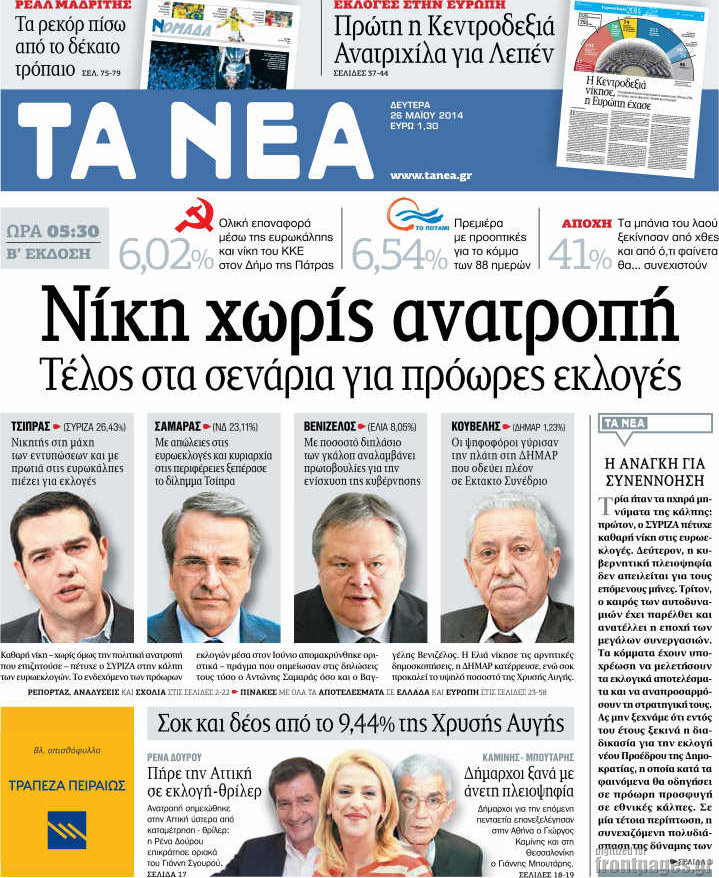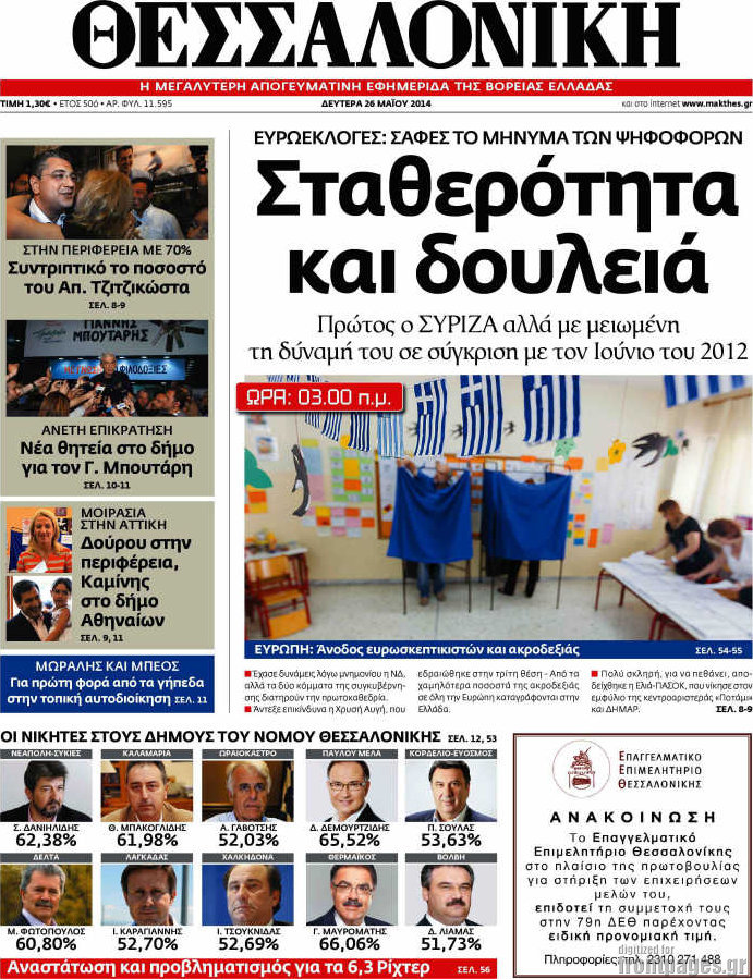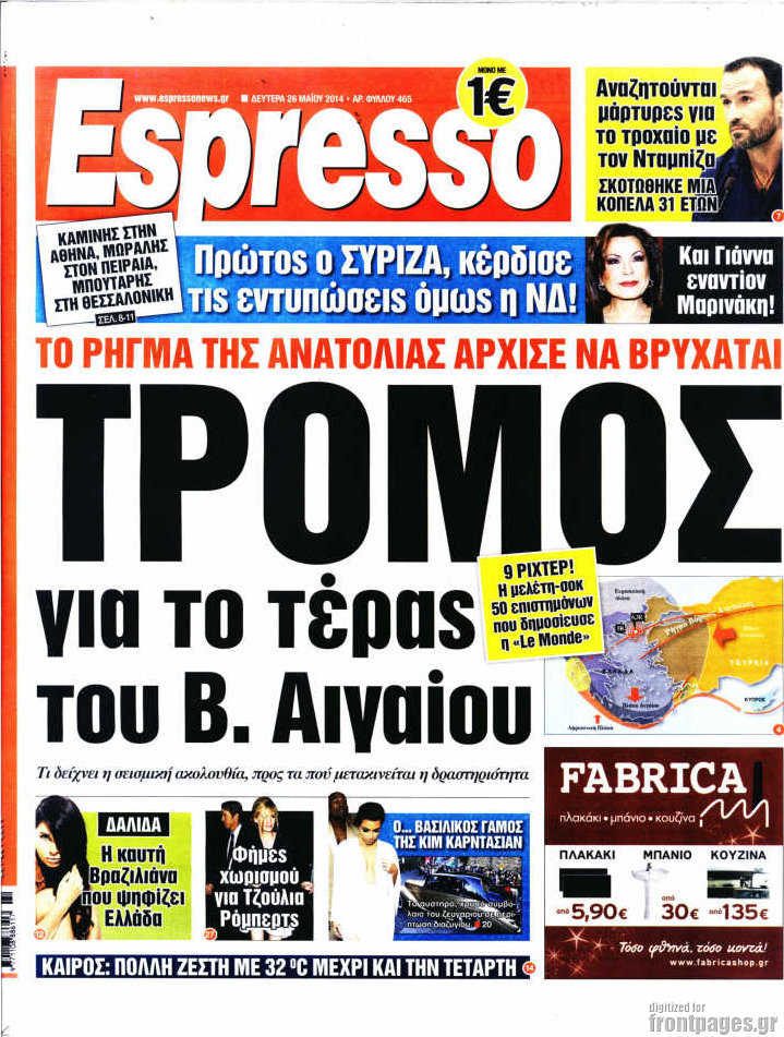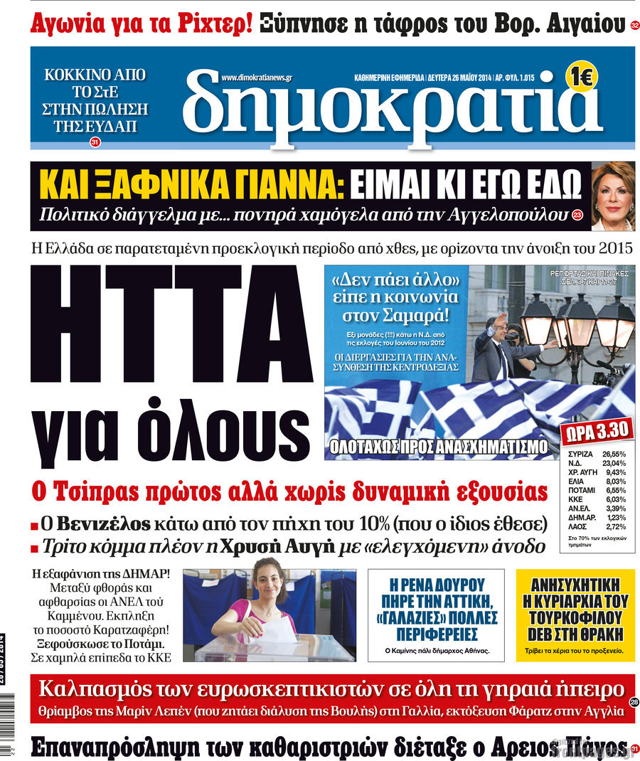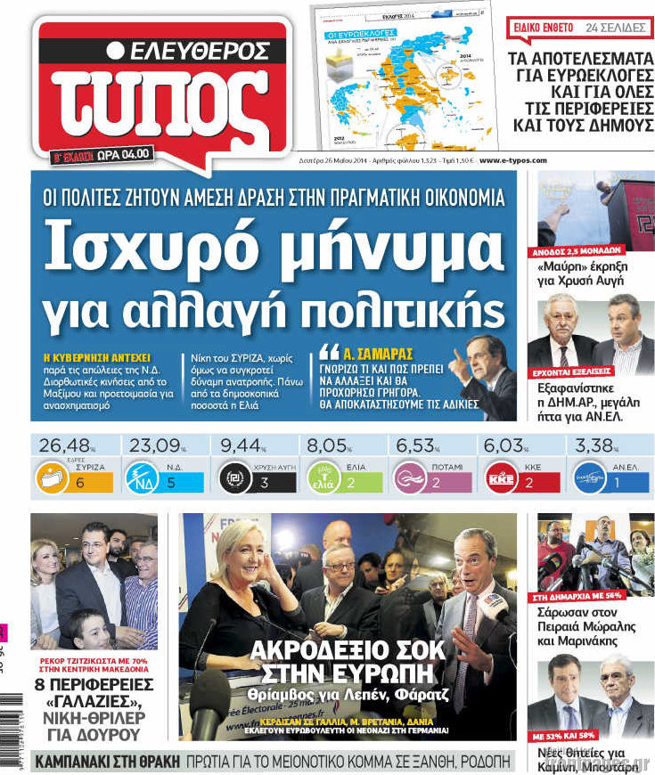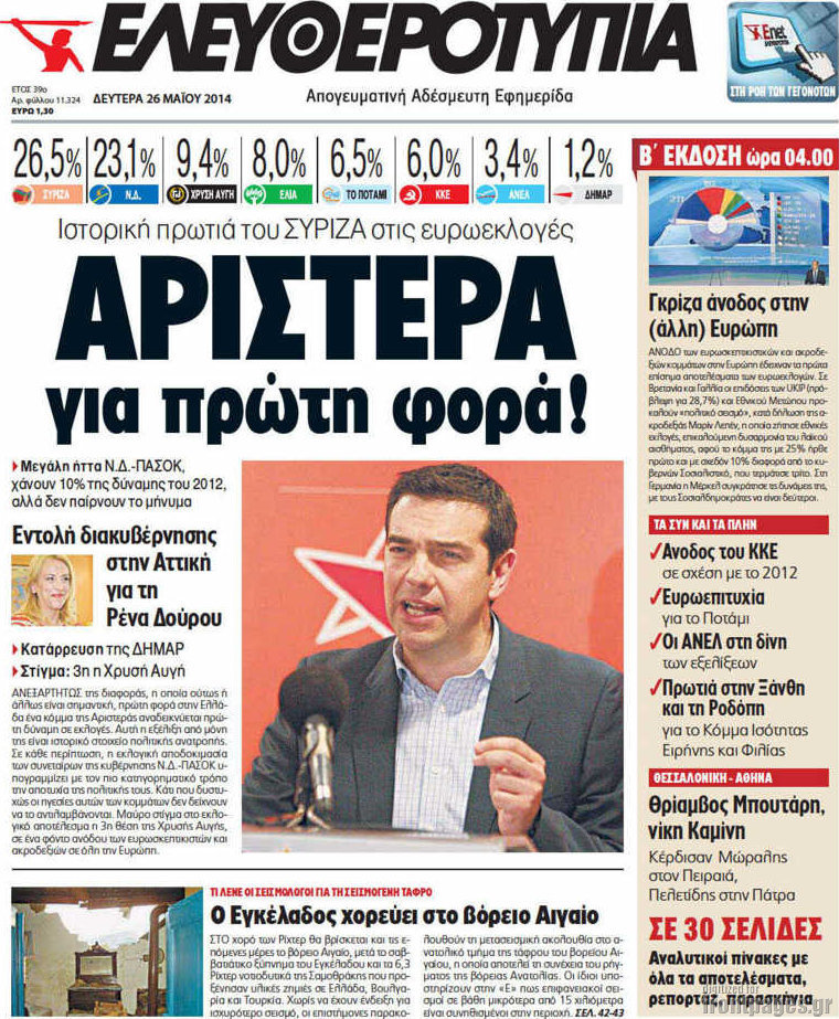 Οι πολιτικές εφημερίδες Enikos Newsroom 08:33, Δευτέρα 26 Μαΐου 2014 Media Οι πολιτικές εφημερίδες Διαβάστε τα πρωτοσέλιδα των πολιτικών εφημερίδων: ΕΦΗΜΕΡΙΔΕΣ ΠΟΛΙΤΙΚΕΣ ΕΦΗΜΕΡΙΔΕΣ ΠΡΩΤΟΣΕΛΙΔΑ Μοιράσου το: σχολίασε κι εσύ (0 σχόλια) Ακολουθήστε το enikos.gr στο Google News και μάθετε πρώτοι όλες τις ειδήσεις Δείτε όλες τις τελευταίες ειδήσεις από την Ελλάδα και τον Κόσμο στο enikos.gr Ειδήσεις Ροή Ειδήσεων 1 ώρα πριν Πώς δρούσε το κύκλωμα που διακινούσε ναρκωτικά σε σχολεία – Υπέβαλαν σε βασανιστήρια όσους δεν τηρούσαν τους «κανόνες πειθαρχίας» 2 ώρες πριν Αγρότες: Γιορτές στα μπλόκα με ανοιχτά διόδια – Δικογραφία στα Ιωάννινα για το σήκωμα των μπαρών 5 ώρες πριν Αρχεία Έπσταϊν: Οι συγκλονιστικές φωτογραφίες – Ο Μάικλ Τζάκσον, ο Μικ Τζάγκερ και ο Κέβιν Σπέισι ανάμεσα στους διάσημους που απεικονίζονται 23 λεπτά πριν NBC: Ο Νετανιάχου σχεδιάζει να ενημερώσει τον Τραμπ για πιθανά νέα πλήγματα εναντίον του Ιράν 33 λεπτά πριν Αττική: Εξαρθρώθηκε εγκληματική οργάνωση που έκλεβε οχήματα, τα παραποιούσε και τα μεταπωλούσε σε πολίτες – Πώς δρούσε το κύκλωμα 2 ώρες πριν Η τύχη χαμογελά σε 3 ζώδια έως τις 28 Δεκεμβρίου – «Προσέξτε τις επιλογές σας και η επιμονή σας θα ανταμειφθεί» 6 ώρες πριν Διαιτολόγος αποκαλύπτει 9 πρωινές συνήθειες που «λιώνουν» το κοιλιακό λίπος – «Υποστηρίζουν την υγιεινή απώλεια βάρους» 3 ώρες πριν Μία ανεκμετάλλευτη πηγή θα μπορούσε να προσφέρει ανεξάντλητη ενέργεια – Οι επιστήμονες ίσως γνωρίζουν πώς να την ξεκλειδώσουν 9 ώρες πριν Enerwave: Το νέο «ρεύμα» στη λιανική ενέργειας που αλλάζει την εμπειρία του καταναλωτή 4 λεπτά πριν Νιούκαστλ – Τσέλσι 2-2: Αλύγιστοι οι Λονδρέζοι 15 λεπτά πριν Μικαέλα Μπέντχαους: Ο πρώτος άνθρωπος σε αναπηρικό αμαξίδιο που ταξίδεψε στο διάστημα – ΒΙΝΤΕΟ 23 λεπτά πριν NBC: Ο Νετανιάχου σχεδιάζει να ενημερώσει τον Τραμπ για πιθανά νέα πλήγματα εναντίον του Ιράν 33 λεπτά πριν Αττική: Εξαρθρώθηκε εγκληματική οργάνωση που έκλεβε οχήματα, τα παραποιούσε και τα μεταπωλούσε σε πολίτες – Πώς δρούσε το κύκλωμα 41 λεπτά πριν Κωνσταντίνος Αργυρός: «Δεν θέλω να ασχοληθώ με την πολιτική σε αυτή τη φάση – Μου έχουν γίνει προτάσεις» ENIKOS NETWORK Γιατί πρέπει να ζητάμε χάρες; Ποιο είναι το φαινόμενο Ben Franklin που κάνει τους άλλους να μας συμπαθούν Η αποχή από την αναπαραγωγή παρατείνει τη ζωή στα ζώα, σύμφωνα με μελέτη – Τι ισχύει για τους ανθρώπους; Στα ύψη ο χρυσός – Νέο ρεκόρ στην τιμή της λίρας, πόσο πωλείται Τέλη κυκλοφορίας 2026: Προσοχή στην προθεσμία εξόφλησής τους – Πώς διαμορφώνονται τα πρόστιμα σε περίπτωση καθυστέρησης Χαρτογραφώντας το «σημείο χωρίς επιστροφή»: Για πρώτη φορά αποκαλύπτεται με λεπτομέρεια το ακανθώδες όριο της ατμόσφαιρας τ... Η Google καταργεί τη λειτουργία «dark web report» – Πώς θα μπορούν οι χρήστες να διαγράφουν τα δεδομένα τους περισσότερα 14:04 , Σάββατο 20 Δεκεμβρίου 2025 Η Realnews αυτής της Κυριακής (21/12/2025) Με τίτλο: «Ασπίδα προστασίας για την Ελλάδα» κυκλοφορεί, αυτήν την Κυριακή, η Realnews. Σημαντ... 12:53 , Σάββατο 20 Δεκεμβρίου 2025 Να μ’ αγαπάς: Το παρελθόν έρχεται στο φως – Καταιγιστικές εξελίξεις στα τελευταία επεισόδια του 2025 Ο Άγγελος αποκαλύπτεται, η Φωτεινή ανησυχεί για τον Λευτέρη και η Ζωή έρχεται αντιμέτωπη με το... 11:41 , Σάββατο 20 Δεκεμβρίου 2025 «Η αγάπη δεν χάνεται ποτέ»: Η μικρού μήκους ταινία κινουμένων σχεδίων που θέτει ερωτήματα για τη ζωή και τον θάνατο Ο θάνατος είναι ένα από τα πιο σκληρά θέματα που καλείται να διαχειριστ