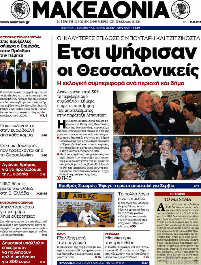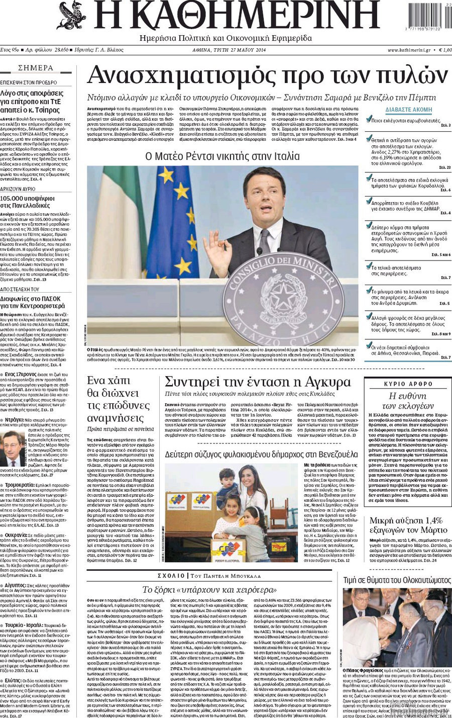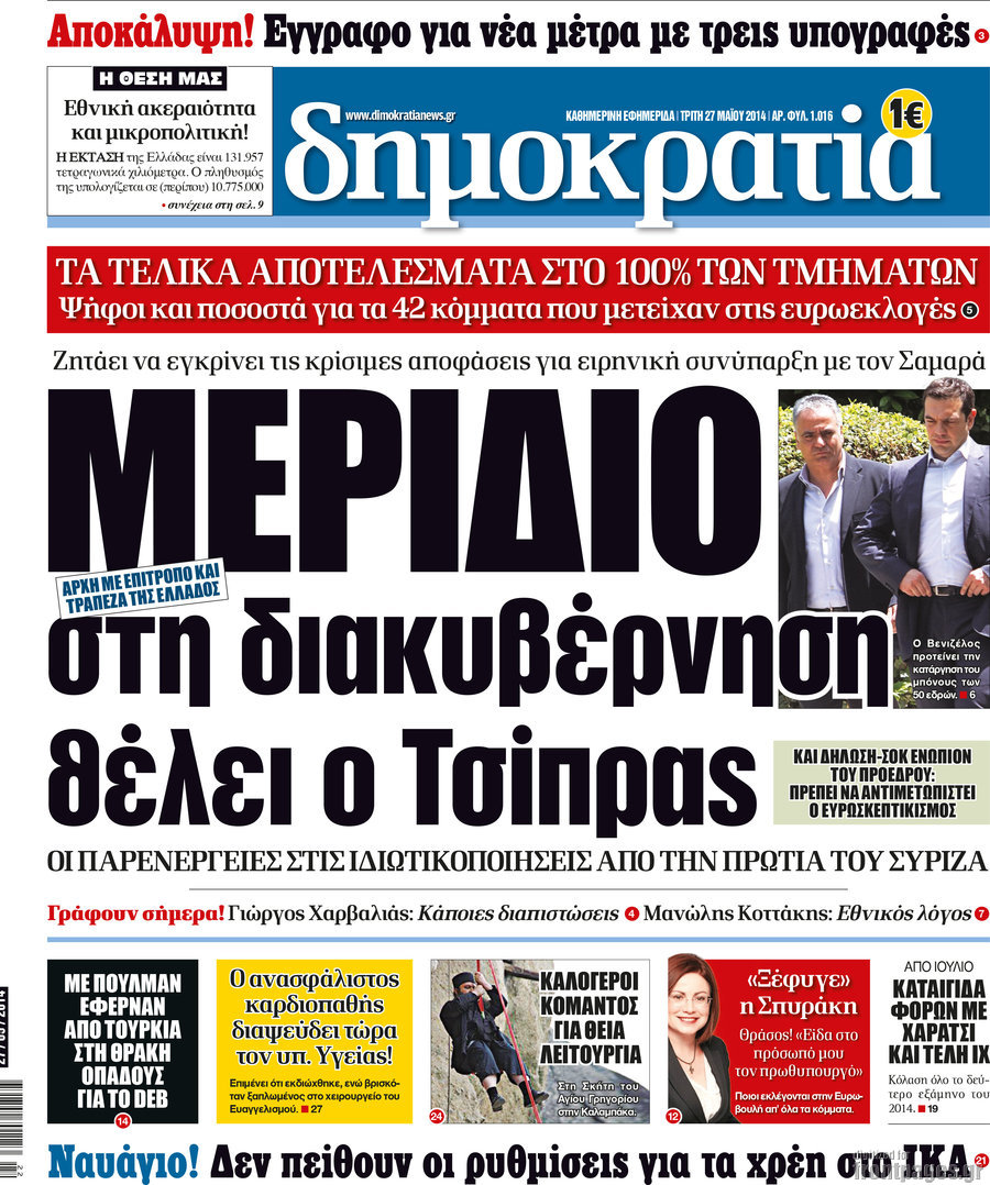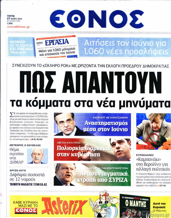Οι πολιτικές εφημερίδες Enikos Newsroom 07:29, Τρίτη 27 Μαΐου 2014 Media Οι πολιτικές εφημερίδες Διαβάστε τα πρωτοσέλιδα των πολιτικών εφημερίδων. ΠΟΛΙΤΙΚΕΣ ΕΦΗΜΕΡΙΔΕΣ ΠΡΩΤΟΣΕΛΙΔΑ Μοιράσου το: σχολίασε κι εσύ (0 σχόλια) Ακολουθήστε το enikos.gr στο Google News και μάθετε πρώτοι όλες τις ειδήσεις Δείτε όλες τις τελευταίες ειδήσεις από την Ελλάδα και τον Κόσμο στο enikos.gr Ειδήσεις Ροή Ειδήσεων 4 ώρες πριν Εκτός ευρωομάδας ΣΥΡΙΖΑ ο Νίκος Παππάς μετά την επίθεση στον δημοσιογράφο Νίκο Γιαννόπουλο – Η μήνυση και οι νέες δηλώσεις 5 ώρες πριν «Αγριεύουν» οι αγρότες: «Δεν συντρέχει λόγος συνάντησης με τον πρωθυπουργό» – Ώρα αποφάσεων στη σύσκεψη της Πέμπτης 5 ώρες πριν Κυψέλη: Χωρίς την οικογένειά της δίπλα της απολογήθηκε η 16χρονη – «Της είχε επιτεθεί κάποιος για να την βιάσει, φοβήθηκε και κυκλοφορούσε με μαχαίρι» 4 ώρες πριν Politico: Το πρόβλημα της Ευρώπης δεν είναι το Βέλγιο αλλά ο Ντόναλντ Τραμπ 6 ώρες πριν Αλεξανδρούπολη: Πολυοργανική ανεπάρκεια λόγω υποσιτισμού η αιτία θανάτου του 3χρονου αγοριού 5 ώρες πριν Μυστήριο με τεράστιες κυκλικές πέτρες 200 κιλών – Ανακαλύφθηκαν τυχαία κατά τη διάρκεια οδικών έργων και κανείς δεν ξέρει από πού προέρχονται 6 ώρες πριν Ύπνος: Ειδικός εξηγεί τον πραγματικό λόγο που ξυπνάτε στις 4 τα ξημερώματα – Ο ρόλος των ορμονών και του κιρκάδιου ρυθμού 7 ώρες πριν Αριθμολογία: Οι άνθρωποι που έχουν γεννηθεί αυτές τις 4 ημερομηνίες, είναι τρυφεροί και αγαπούν ανιδιοτελώς 18 ώρες πριν 20 χρόνια τα Χριστούγεννα ξεκινούν στα Public με μεγάλη ποικιλία σε δώρα! 4 λεπτά πριν Αμερικανικά στρατεύματα στον Ισημερινό για «προσωρινή» επιχείρηση κατά των ναρκωτικών 19 λεπτά πριν Βραζιλία: Το Κογκρέσο ενέκρινε σχέδιο νόμου για τη μείωση της ποινής του πρώην προέδρου Μπολσονάρου 34 λεπτά πριν Ένταση στο περιφερειακό συμβούλιο Δυτικής Μακεδονίας: Φωνές, σπρωξιές και διακοπή – Δείτε βίντεο 48 λεπτά πριν Σουδάν: Επιδρομή drone σε χωριό του Νότιου Κορντοφάν – Οκτώ νεκροί 1 ώρα πριν Αλ Τσαντίρι Νιουζ: Η κόρη της Πάολα στο κοινό – Η ατάκα Λαζόπουλου που την έκανε να «κοκκινήσει» ENIKOS NETWORK Αϋπνία: Το κόλπο που θα σας βοηθήσει να κοιμηθείτε απόψε – Είναι απλό και έχει αποτέλεσμα 2,6 εκατομμύρια πολίτες έχουν ήδη εμβολιαστεί κατά της γρίπης ΕΛΣΤΑΤ: Τι δείχνουν τα νέα στοιχεία για τις ηλεκτρονικές παραγγελίες των επιχειρήσεων ΚΕΠΕ: Οι 3 διακριτές συμβολές των ΜμΕ και της μεταποίησης στην ελληνική οικονομία Χαρτογραφώντας το «σημείο χωρίς επιστροφή»: Για πρώτη φορά αποκαλύπτεται με λεπτομέρεια το ακανθώδες όριο της ατμόσφαιρας τ... Η Google καταργεί τη λειτουργία «dark web report» – Πώς θα μπορούν οι χρήστες να διαγράφουν τα δεδομένα τους περισσότερα 02:30 , Πέμπτη 18 Δεκεμβρίου 2025 Αλ Τσαντίρι Νιουζ: Η κόρη της Πάολα στο κοινό – Η ατάκα Λαζόπουλου που την έκανε να «κοκκινήσει» Γιορτινή διάθεση και ευχάριστες στιγμές γέμισε η αποψινή, τελευταία για το 2025, εκπομπή του «... 22:24 , Τετάρτη 17 Δεκεμβρίου 2025 Το Σπίτι Δίπλα Στο Ποτάμι: Σε κίνδυνο η υγεία του Απόστολου – Τι θα δούμε απόψε “Το Σπίτι Δίπλα στο Ποτάμι” ξετυλίγει το νήμα της ζωής των πέντε αδελφών με καταισ... 21:14 , Τετάρτη 17 Δεκεμβρίου 2025 Παιχνίδια Εκδίκησης: Θα καταφέρει ο Χρήστος να κλονίσει την εμπιστοσύνη της Μάγιας απέναντι στον Άγη; Τα «Παιχνίδια Εκδίκησης» έρχονται απόψε στις 22:30, στον Αντ1, με το τελευταίο επεισόδιο της χ... 20:57 , Τετάρτη 17 Δεκεμβρίου 2025 Άγιος Έρωτας: Η Χλόη καταθέτει εναντίον του πατέρα της και ο Χάρης αποκαλύπτει 