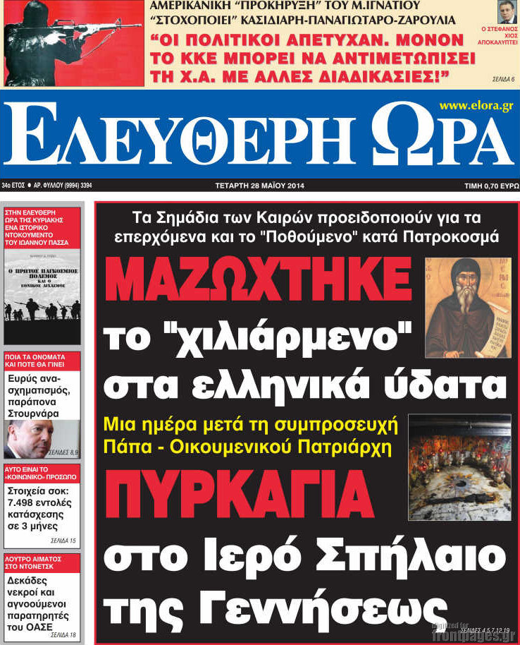 Οι πολιτικές εφημερίδες Enikos Newsroom 08:24, Τετάρτη 28 Μαΐου 2014 Media Οι πολιτικές εφημερίδες Διαβάστε τα πρωτοσέλιδα των πολιτικών εφημερίδων: ΕΦΗΜΕΡΙΔΕΣ ΠΟΛΙΤΙΚΕΣ ΕΦΗΜΕΡΙΔΕΣ ΠΡΩΤΟΣΕΛΙΔΑ Μοιράσου το: σχολίασε κι εσύ (0 σχόλια) Ακολουθήστε το enikos.gr στο Google News και μάθετε πρώτοι όλες τις ειδήσεις Δείτε όλες τις τελευταίες ειδήσεις από την Ελλάδα και τον Κόσμο στο enikos.gr Ειδήσεις Ροή Ειδήσεων 2 ώρες πριν Συνεχίζουν τις κινητοποιήσεις οι αγρότες: Κλείνουν τις σήραγγες των Τεμπών για τα φορτηγά – Τι θα γίνει τα Χριστούγεννα 56 λεπτά πριν Μόσχα: Σκοτώθηκε Ρώσος στρατηγός έπειτα από έκρηξη μηχανισμού στο αυτοκίνητό του 3 ώρες πριν Νέες εστίες ακρίβειας «ροκανίζουν» τα εισοδήματα – Πού καταγράφονται οι μεγαλύτερες αυξήσεις 1 ώρα πριν Νέες δηλώσεις του αγροτοσυνδικαλιστή Ανεστίδη: Όσα λέγονται είναι λάσπη στον ανεμιστήρα για να σπάσουν τα μπλόκα 3 ώρες πριν «Έπιασαν δουλειά» οι 8 κάμερες που λειτουργούν πιλοτικά – Περισσότερες από 1.000 παραβάσεις σε 4 ημέρες 37 λεπτά πριν Τα 4 ζώδια που παίρνουν επιτέλους την αναγνώριση που τους αξίζει – «Απρόσμενες ευκαιρίες, που μοιάζουν με δώρα από το σύμπαν» 2 ώρες πριν Ο άνδρας της απαιτεί να κάνει όλες τις δουλειές του σπιτιού από τότε που παραιτήθηκε – «Εξακολουθώ να συνδράμω οικονομικά στο σπίτι» 2 ώρες πριν Ανακαλύφθηκε βραχογράφημα που παραπέμπει στον Ηρακλή και την Ύδρα από ελληνικά νομίσματα του 325 π.Χ. 2 ημέρες πριν Enerwave: Το νέο «ρεύμα» στη λιανική ενέργειας που αλλάζει την εμπειρία του καταναλωτή 6 λεπτά πριν Δημήτρης Ουγγαρέζος: Άκουσα πολύ, δέχτηκα και δεν αντέδρασα 11 λεπτά πριν Τσακ Νόρις: Πέθανε η πρώην σύζυγός του, Νταϊάν Χόλετσεκ – Ήταν η πρώτη εφηβική αγάπη του 16 λεπτά πριν Θεσσαλονίκη: Γρονθοκόπησαν 13χρονο σε αγώνα βόλεϊ γιατί τους… ενοχλούσε το τύμπανο 21 λεπτά πριν Πρωτοχρονιάτικο δώρο της ΕΡΤ η «Μεγάλη χίμαιρα» – Διπλή πρεμιέρα για την ακριβότερη ελληνική σειρά 26 λεπτά πριν Επίδομα παιδιού: Άνοιξε η πλατφόρμα για τις αιτήσεις – Ερωτήσεις και απαντήσεις ENIKOS NETWORK Χοληστερίνη: Το σημάδι στο δέρμα που μπορεί να δείχνει ότι είναι υπερβολικά υψηλή Ποιο γλυκό φρούτο ρυθμίζει το σάκχαρο και μπορούν να φάνε οι διαβητικοί, σύμφωνα με μελέτη Οχήματα: Σε ποιους επιστρέφει από σήμερα η Δημοτική Αστυνομία τις πινακίδες Νέες εστίες ακρίβειας «ροκανίζουν» τα εισοδήματα – Πού καταγράφονται οι μεγαλύτερες αυξήσεις Χαρτογραφώντας το «σημείο χωρίς επιστροφή»: Για πρώτη φορά αποκαλύπτεται με λεπτομέρεια το ακανθώδες όριο της ατμόσφαιρας τ... Η Google καταργεί τη λειτουργία «dark web report» – Πώς θα μπορούν οι χρήστες να διαγράφουν τα δεδομένα τους περισσότερα 10:15 , Δευτέρα 22 Δεκεμβρίου 2025 Πρωτοχρονιάτικο δώρο της ΕΡΤ η «Μεγάλη χίμαιρα» – Διπλή πρεμιέρα για την ακριβότερη ελληνική σειρά Με πρωτότυπο τρόπο και σπαστή πρεμιέρα σε ΕΡΤflix και ΕΡΤ1 θα κάνει η δημόσια τηλεόραση το λαν... 09:45 , Δευτέρα 22 Δεκεμβρίου 2025 Ο χριστουγεννιάτικος τηλεμαραθώνιος αλληλεγγύης του ANT1 για τα παιδιά Ο ANT1 διοργανώνει Χριστουγεννιάτικο Τηλεμαραθώνιο για τα Παιδιά την 22η Δεκεμβρίου 2025, με σ... 09:30 , Δευτέρα 22 Δεκεμβρίου 2025 Eurovision 2026: Φαβορί η Μπέττυ Μαγγίρα Στην τελική ευθεία μπαίνει ο σχεδιασμός της ΕΡΤ για τους δύο ημιτελικούς και τον εθνικό τελικό... 07:02 , Δευτέρα 22 Δεκεμβρίου 2025 Αυτή την Κυριακή με τη Realnews: Το μυστήριο των Χριστουγέννων της Vicki Delany – Μαζί αστυνομικά μυθιστορήματα Αυτή την Κυριακή με τη Realnews: Το μυστήριο των Χριστουγέννων της Vicki Dela