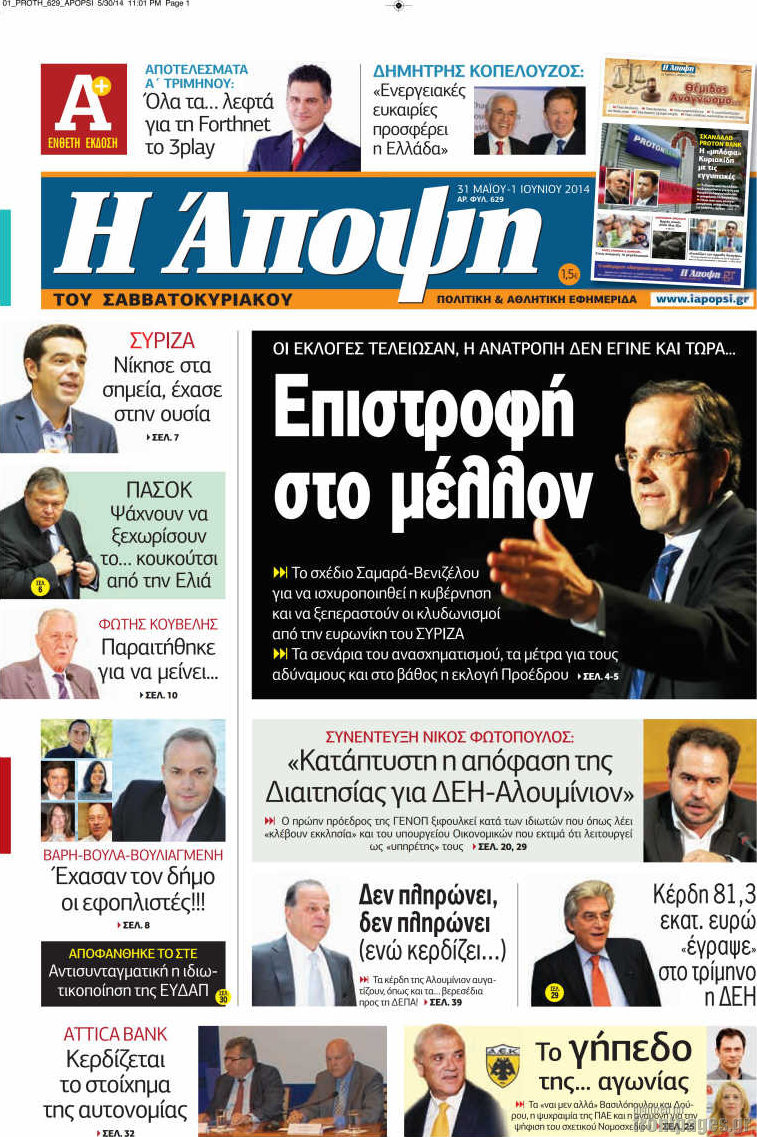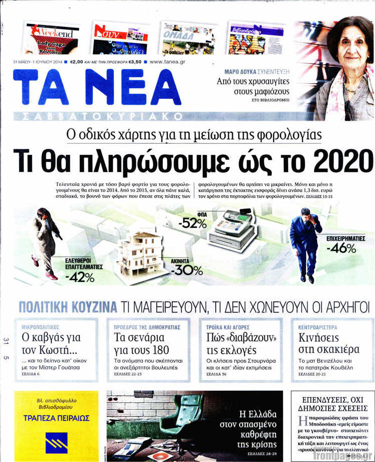 Οι πολιτικές εφημερίδες Enikos Newsroom 08:27, Σάββατο 31 Μαΐου 2014 Media Οι πολιτικές εφημερίδες Διαβάστε τα πρωτοσέλιδα των πολιτικών εφημερίδων: ΠΟΛΙΤΙΚΕΣ ΕΦΗΜΕΡΙΔΕΣ ΠΡΩΤΟΣΕΛΙΔΑ ΣΑΒΒΑΤΟ Μοιράσου το: σχολίασε κι εσύ (0 σχόλια) Ακολουθήστε το enikos.gr στο Google News και μάθετε πρώτοι όλες τις ειδήσεις Δείτε όλες τις τελευταίες ειδήσεις από την Ελλάδα και τον Κόσμο στο enikos.gr Ειδήσεις Ροή Ειδήσεων 1 ώρα πριν Εικόνες φρίκης στα νοσοκομεία του Ιράν: «Βλέπουμε στοιβαγμένα πτώματα» καταγγέλλουν διαδηλωτές – Φουντώνουν τα σενάρια για επέμβαση των ΗΠΑ 2 ώρες πριν Αποστολή στη Λευκωσία: Συνδρομή από Ισραήλ και ΗΠΑ για το βίντεο εξετάζουν οι κυπριακές αρχές 31 λεπτά πριν Αγρότες: Αποφάσισαν να συναντηθούν 2 επιτροπές με τον πρωθυπουργό την Τρίτη – Τι περιλαμβάνει η ατζέντα των αιτημάτων τους 2 ώρες πριν Καιρός: Ψυχρή «εισβολή» με χιόνια, ισχυρούς ανέμους και σημαντική πτώση της θερμοκρασίας – Αναλυτική πρόγνωση ανά περιοχή 2 ώρες πριν Πώς θα μπορούσαν οι ΗΠΑ να «αποκτήσουν» τη Γροιλανδία – Oι πιθανές προκλήσεις 7 ώρες πριν Τα ζώδια σήμερα, Κυριακή 11 Ιανουαρίου 2026: Κριοί, σταματάτε να δέχεστε αδιαμαρτύρητα καταστάσεις που σας περιορίζουν 4 ώρες πριν Μακροζωία: Οι 6 τροφές που αποφεύγουν οι μακροβιότεροι άνθρωποι στον κόσμο 4 ώρες πριν Οπτική ψευδαίσθηση: Μόνο όσοι έχουν τέλεια όραση μπορούν να εντοπίσουν τον αριθμό «7243» μέσα σε 9 δευτερόλεπτα 1 ώρα πριν «Το δαχτυλίδι της αιώνιας πίστης»: Ανακαλύφθηκε χρυσό σύμβολο αγάπης 2.000 ετών 1 λεπτό πριν Σήμερα με τη Realnews: Δωροεπιταγή 10€ 7 λεπτά πριν Φωτιά σε υπόγειο διαμέρισμα στα Πατήσια 14 λεπτά πριν Σε κατάσταση υψηλού συναγερμού το Ισραήλ για ενδεχόμενη επέμβαση των ΗΠΑ στο Ιράν 21 λεπτά πριν Σεισμός 3,6 Ρίχτερ στη Σαντορίνη 31 λεπτά πριν Αγρότες: Αποφάσισαν να συναντηθούν 2 επιτροπές με τον πρωθυπουργό την Τρίτη – Τι περιλαμβάνει η ατζέντα των αιτημάτων τους ENIKOS NETWORK Λιπώδες ήπαρ: Τα συμπτώματα στο πρόσωπο που μπορεί να σχετίζονται με τη νόσο Η Kate Winslet αποκαλύπτει: «Φιλούσα αγόρια και κορίτσια, δεν είχα αποφασίσει» – Πώς επηρέασε την καριέρα της; Φοροδιαφυγή: Έρχονται νέα ψηφιακά όπλα από την ΑΑΔΕ- Όλες οι λεπτομέρειες Καιρός: Ψυχρή «εισβολή» με χιόνια, ισχυρούς ανέμους και σημαντική πτώση της θερμοκρασίας – Αναλυτική πρόγνωση ανά περιοχή Ο Google Assistant θα παραμείνει λίγο περισσότερο για ορισμένους χρήστες Android Τεστ προσωπικότητας: Το βάζο που θα επιλέξετε αποκαλύπτει πώς λύνετε προβλήματα στη ζωή σας περισσότερα 09:56 , Κυριακή 11 Ιανουαρίου 2026 Σήμερα με τη Realnews: Δωροεπιταγή 10€ Σήμερα με τη Realnews: Δωροεπιταγή 10€ Δωροεπιταγή αξίας 10€ για αγορές άνω των 60€ από τα πολ... 08:57 , Κυριακή 11 Ιανουαρίου 2026 Η Realnews στο www.pressreader.com Διαβάστε την ψηφιακή έκδοση της εφημερίδας στην οθόνη του κινητού, του tablet και του υπολογισ... 00:01 , Κυριακή 11 Ιανουαρίου 2026 Σήμερα με τη Realnews: Μυστηριώδης εξαφάνιση του Rick Mofina – Μαζί Food & Travel Σήμερα με τη Realnews: Μυστηριώδης εξαφάνιση του Rick Mofina – Μαζί Food & Travel Μ... 17:44 , Σάββατο 10 Ιανουαρίου 2026 Eurovision 2026: Τη Δευτέρα 12 Ιανουαρίου η κλήρωση των ημιτελικών – Πού μπορείτε να τη δείτε Έφτασε η στιγμή που θα μάθουμε σε ποιον Ημιτελικό της Eurovision 2026 θα διαγωνιστεί η Ελλάδα!... ΤΕΛΕΥΤΑΙΕΣ ΕΙΔΗΣΕΙΣ 7 λεπτά πριν Φωτιά σε υπόγειο διαμέρισμα στα Πατήσια 14 λεπτά πριν Σε κατάσταση υψηλού συναγερμού το Ισραήλ για... 21 λεπτά πριν Σεισμός 3,6 Ρίχτερ στη Σαντορίνη 31 λεπτά πριν Αγρότες: Αποφάσισαν να συναντηθούν 2 επιτροπές με τον... 44 λεπτά πριν Φοροδια