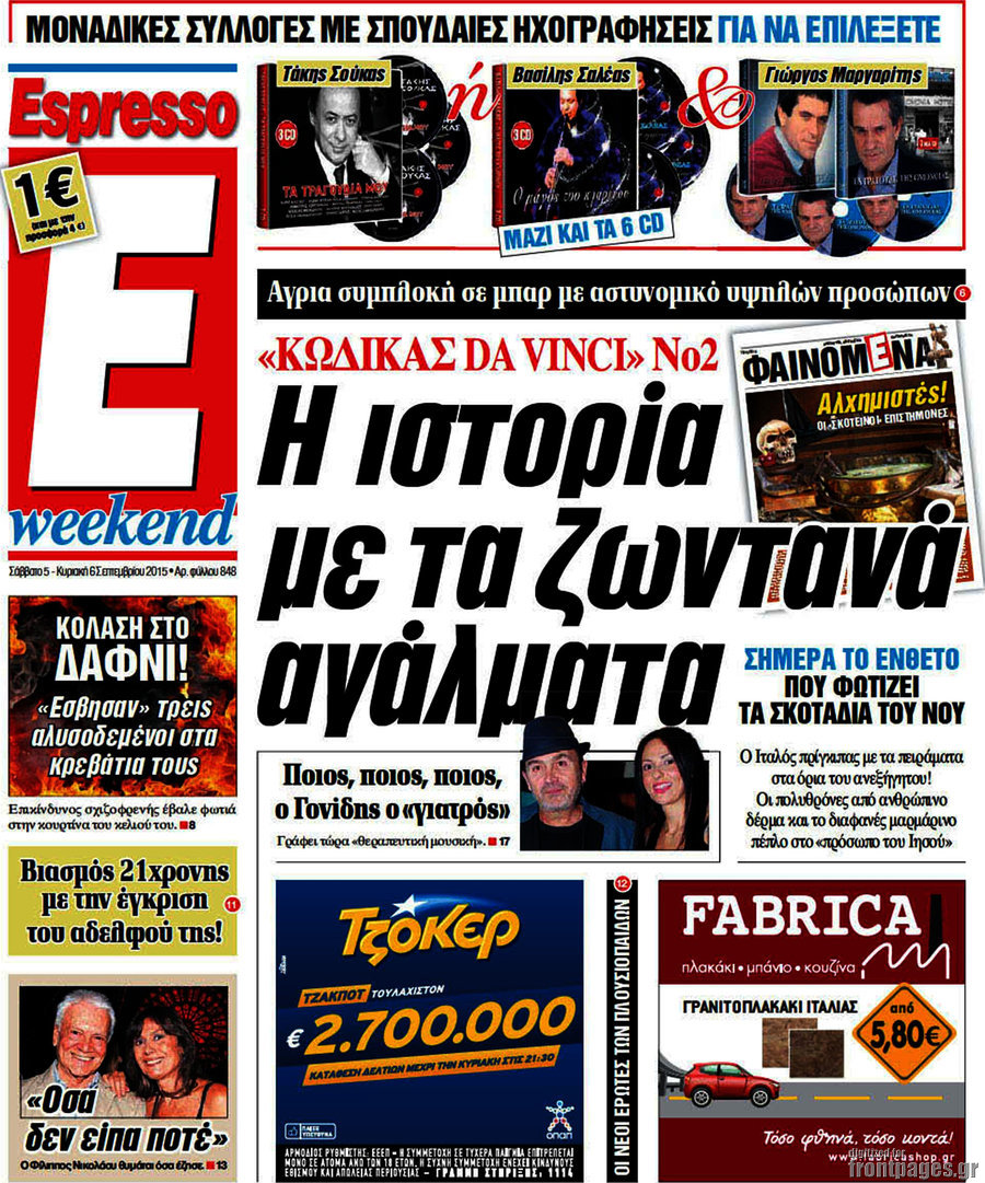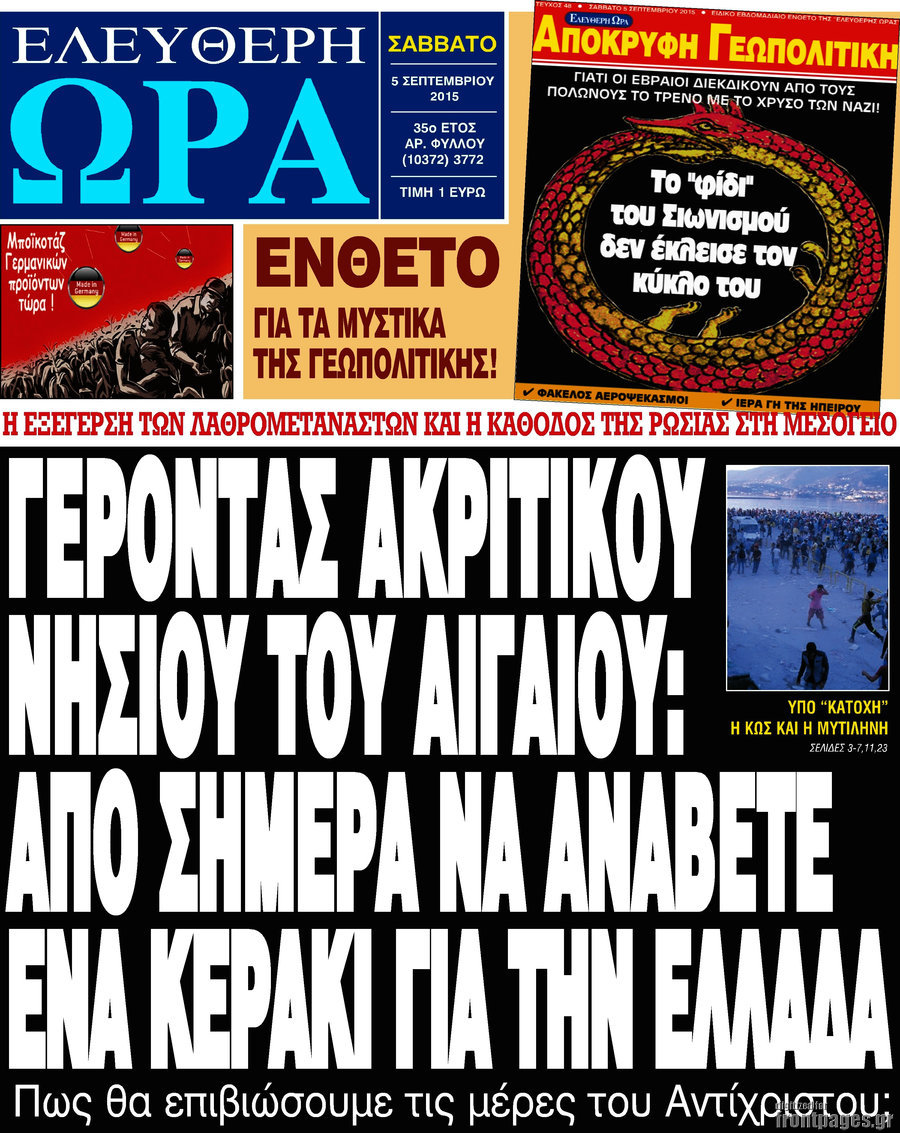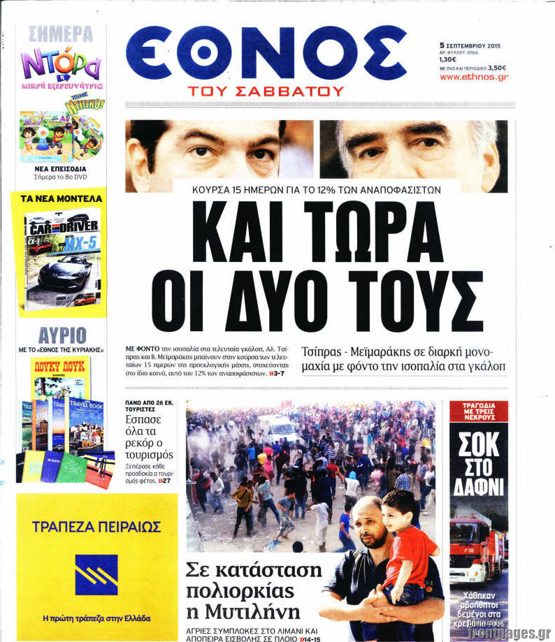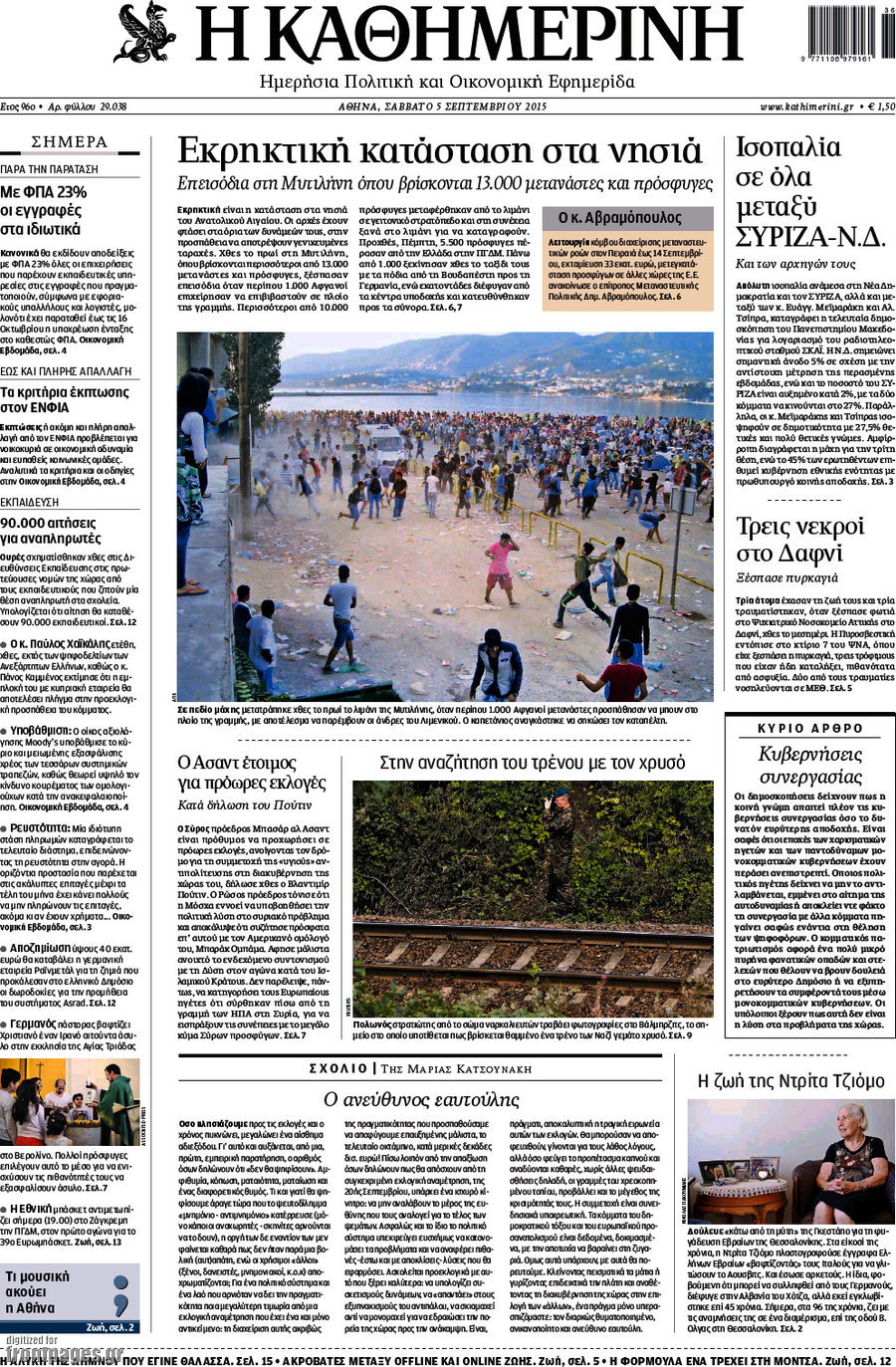 Οι πολιτικές εφημερίδες 5/9/2015 Ιωάννα Θυμουλέα 08:14, Σάββατο 05 Σεπτεμβρίου 2015 Media Διαβάστε τα πρωτοσέλιδα των πολιτικών εφημερίδων: ΕΦΗΜΕΡΙΔΕΣ ΠΟΛΙΤΙΚΕΣ ΕΦΗΜΕΡΙΔΕΣ ΠΡΩΤΟΣΕΛΙΔΑ ΕΦΗΜΕΡΙΔΩΝ Μοιράσου το: σχολίασε κι εσύ (0 σχόλια) Ακολουθήστε το enikos.gr στο Google News και μάθετε πρώτοι όλες τις ειδήσεις Δείτε όλες τις τελευταίες ειδήσεις από την Ελλάδα και τον Κόσμο στο enikos.gr Ειδήσεις Ροή Ειδήσεων 24 λεπτά πριν Τσιάρας προς αγρότες: Τα μπλόκα και τα πείσματα δεν ωφελούν – Οι λύσεις περνούν μέσα από τον διάλογο 1 ώρα πριν Αρχεία Έπσταϊν: Οι συγκλονιστικές φωτογραφίες – Ο Μάικλ Τζάκσον, ο Μικ Τζάγκερ και ο Κέβιν Σπέισι ανάμεσα στους διάσημους που απεικονίζονται 2 ώρες πριν Νέες ταυτότητες: Μεγάλη αναμονή για ραντεβού στην Αττική – Τέλος τα ταξίδια εκτός Ελλάδος από τον Αύγουστο για όσους δεν έχουν αλλάξει 2 ώρες πριν Ινδία: Επτά ελέφαντες σκοτώθηκαν κατά τη σύγκρουση επιβατικού τρένου με κοπάδι 3 ώρες πριν Συνελήφθη οδηγός μηχανής που έτρεχε με 161 χλμ στη Συγγρού – Τον έπιασε το ραντάρ της Τροχαίας 3 ώρες πριν Μία νέα «χρυσή» περίοδος αρχίζει για 3 ζώδια από σήμερα – «Μία αναπάντεχη ευκαιρία οδηγεί στην επιτυχία» 5 ώρες πριν Αγχώνεται για το χριστουγεννιάτικο δώρο που πήρε στην πλούσια σύντροφό του – «Φοβάμαι πως θα το βρει φθηνιάρικο, φοράει βραχιόλια Cartier» 2 ώρες πριν Διαιτολόγος αποκαλύπτει 9 πρωινές συνήθειες που «λιώνουν» το κοιλιακό λίπος – «Υποστηρίζουν την υγιεινή απώλεια βάρους» 3 ώρες πριν Οι 7 φράσεις που δεν λένε ποτέ οι συναισθηματικά έξυπνοι άνθρωποι κατά τη διάρκεια ενός καβγά 7 λεπτά πριν Πάτρα: Πέθανε 46χρονος έπειτα από λιποθυμικό επεισόδιο στο σπίτι του 15 λεπτά πριν «Μεγάλη Χίμαιρα»: Πότε κάνει πρεμιέρα η σειρά 23 λεπτά πριν Καλλιθέα: Έφοδος του «ελληνικού FBI» σε δύο καταστήματα stripshow – 5 συλλήψεις – Βίντεο 24 λεπτά πριν Τσιάρας προς αγρότες: Τα μπλόκα και τα πείσματα δεν ωφελούν – Οι λύσεις περνούν μέσα από τον διάλογο 30 λεπτά πριν Μεσσηνία: Μαχαιριές έπειτα από καβγά για οικονομικές διαφορές στον Πολύλοφο – Συνελήφθη 40χρονος ENIKOS NETWORK Γήρανση του εγκεφάλου: Νευροεπιστήμονες ανακάλυψαν τη 10λεπτη δραστηριότητα που μπορεί να τη σταματήσει Είστε μόνιμα απρόσεκτοι; 3 σημάδια που δείχνουν ότι μπορεί να είναι σύμπτωμα πάθησης Χειμερινές εκπτώσεις 2026: Πρεμιέρα στις 12 Ιανουαρίου – Πόσο θα διαρκέσουν και τι πρέπει να γνωρίζουν οι καταναλωτές Χρήστος Δήμας: Στα 2,5 εκατ. ευρώ την ημέρα το κόστος από το άνοιγμα των διοδίων από τους αγρότες – Θα αξιώσουν αποζημίωση ... Χαρτογραφώντας το «σημείο χωρίς επιστροφή»: Για πρώτη φορά αποκαλύπτεται με λεπτομέρεια το ακανθώδες όριο της ατμόσφαιρας τ... Η Google καταργεί τη λειτουργία «dark web report» – Πώς θα μπορούν οι χρήστες να διαγράφουν τα δεδομένα τους περισσότερα 12:53 , Σάββατο 20 Δεκεμβρίου 2025 Να μ’ αγαπάς: Το παρελθόν έρχεται στο φως – Καταιγιστικές εξελίξεις στα τελευταία επεισόδια του 2025 Ο Άγγελος αποκαλύπτεται, η Φωτεινή ανησυχεί για τον Λευτέρη και η Ζωή έρχεται αντιμέτωπη με το... 11:41 , Σάββατο 20 Δεκεμβρίου 2025 «Η αγάπη δεν χάνεται ποτέ»: Η μικρού μήκους ταινία κινουμένων σχεδίων που θέτει ερωτήματα για τη ζωή και τον θάνατο Ο θάνατος είναι ένα από τα πιο σκληρά θέματα που καλείται να διαχειριστεί κάποιος στη διάρκεια... 09:30 , Σάββατο 20 Δεκεμβρίου 2025 «Porto Leone: Στη γειτονιά με τα κόκκινα φανάρια» – Ο Χρόνης αποκαλύπτει στην Αλεξάνδρα το μυστικό για το παιδί της Λένας Η μεγάλη δραματική σειρά του Apha «Porto Leone: Σ