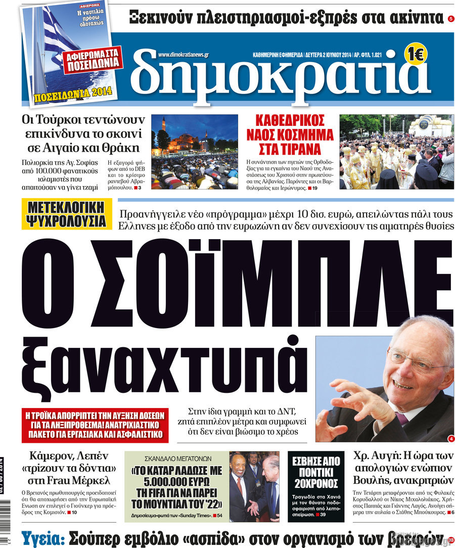 Οι πολιτικές εφημερίδες Enikos Newsroom 08:15, Δευτέρα 02 Ιουνίου 2014 Media Οι πολιτικές εφημερίδες Διαβάστε τα πρωτοσέλιδα των πολιτικών εφημερίδων: ΕΦΗΜΕΡΙΔΕΣ ΠΟΛΙΤΙΚΕΣ ΕΦΗΜΕΡΙΔΕΣ ΠΡΩΤΟΣΕΛΙΔΑ Μοιράσου το: σχολίασε κι εσύ (0 σχόλια) Ακολουθήστε το enikos.gr στο Google News και μάθετε πρώτοι όλες τις ειδήσεις Δείτε όλες τις τελευταίες ειδήσεις από την Ελλάδα και τον Κόσμο στο enikos.gr Ειδήσεις Ροή Ειδήσεων 5 ώρες πριν Εκτός ευρωομάδας ΣΥΡΙΖΑ ο Νίκος Παππάς μετά την επίθεση στον δημοσιογράφο Νίκο Γιαννόπουλο – Η μήνυση και οι νέες δηλώσεις 6 ώρες πριν «Αγριεύουν» οι αγρότες: «Δεν συντρέχει λόγος συνάντησης με τον πρωθυπουργό» – Ώρα αποφάσεων στη σύσκεψη της Πέμπτης 6 ώρες πριν Κυψέλη: Χωρίς την οικογένειά της δίπλα της απολογήθηκε η 16χρονη – «Της είχε επιτεθεί κάποιος για να την βιάσει, φοβήθηκε και κυκλοφορούσε με μαχαίρι» 5 ώρες πριν Politico: Το πρόβλημα της Ευρώπης δεν είναι το Βέλγιο αλλά ο Ντόναλντ Τραμπ 7 ώρες πριν Αλεξανδρούπολη: Πολυοργανική ανεπάρκεια λόγω υποσιτισμού η αιτία θανάτου του 3χρονου αγοριού 6 ώρες πριν Μυστήριο με τεράστιες κυκλικές πέτρες 200 κιλών – Ανακαλύφθηκαν τυχαία κατά τη διάρκεια οδικών έργων και κανείς δεν ξέρει από πού προέρχονται 7 ώρες πριν Ύπνος: Ειδικός εξηγεί τον πραγματικό λόγο που ξυπνάτε στις 4 τα ξημερώματα – Ο ρόλος των ορμονών και του κιρκάδιου ρυθμού 8 ώρες πριν Αριθμολογία: Οι άνθρωποι που έχουν γεννηθεί αυτές τις 4 ημερομηνίες, είναι τρυφεροί και αγαπούν ανιδιοτελώς 19 ώρες πριν 20 χρόνια τα Χριστούγεννα ξεκινούν στα Public με μεγάλη ποικιλία σε δώρα! 10 λεπτά πριν Κτηνοτρόφοι: Με δάκρυα στα μάτια ζουν τον εφιάλτη των άδειων στάβλων – «Καταστράφηκαν οι ζωές μας» 25 λεπτά πριν Νέο αμερικανικό πλήγμα σε σκάφος που φέρεται να μετέφερε ναρκωτικά στον Ειρηνικό – Τέσσερις νεκροί 40 λεπτά πριν Αλ Τσαντίρι Νιουζ: «Λύγισε» ο Δημήτρης Λάλος για τον Δημήτρη Ήμελλο – «Τον μνημονεύω, να ‘ναι καλά εκεί που είναι» 55 λεπτά πριν GNTM: Με δάκρυα τον αποχαιρέτησε η Ηλιάνα Παπαγεωργίου πριν από τον ημιτελικό – «Αισθάνομαι πολύ παράξενα» 1 ώρα πριν Αμερικανικά στρατεύματα στον Ισημερινό για «προσωρινή» επιχείρηση κατά των ναρκωτικών ENIKOS NETWORK Αϋπνία: Το κόλπο που θα σας βοηθήσει να κοιμηθείτε απόψε – Είναι απλό και έχει αποτέλεσμα 2,6 εκατομμύρια πολίτες έχουν ήδη εμβολιαστεί κατά της γρίπης ΕΛΣΤΑΤ: Τι δείχνουν τα νέα στοιχεία για τις ηλεκτρονικές παραγγελίες των επιχειρήσεων ΚΕΠΕ: Οι 3 διακριτές συμβολές των ΜμΕ και της μεταποίησης στην ελληνική οικονομία Χαρτογραφώντας το «σημείο χωρίς επιστροφή»: Για πρώτη φορά αποκαλύπτεται με λεπτομέρεια το ακανθώδες όριο της ατμόσφαιρας τ... Η Google καταργεί τη λειτουργία «dark web report» – Πώς θα μπορούν οι χρήστες να διαγράφουν τα δεδομένα τους περισσότερα 02:30 , Πέμπτη 18 Δεκεμβρίου 2025 Αλ Τσαντίρι Νιουζ: Η κόρη της Πάολα στο κοινό – Η ατάκα Λαζόπουλου που την έκανε να «κοκκινήσει» Γιορτινή διάθεση και ευχάριστες στιγμές γέμισε η αποψινή, τελευταία για το 2025, εκπομπή του «... 22:24 , Τετάρτη 17 Δεκεμβρίου 2025 Το Σπίτι Δίπλα Στο Ποτάμι: Σε κίνδυνο η υγεία του Απόστολου – Τι θα δούμε απόψε “Το Σπίτι Δίπλα στο Ποτάμι” ξετυλίγει το νήμα της ζωής των πέντε αδελφών με καταισ... 21:14 , Τετάρτη 17 Δεκεμβρίου 2025 Παιχνίδια Εκδίκησης: Θα καταφέρει ο Χρήστος να κλονίσει την εμπιστοσύνη της Μάγιας απέναντι στον Άγη; Τα «Παιχνίδια Εκδίκησης» έρχονται απόψε στις 22:30, στον Αντ1, με το τελευταίο επεισόδιο της χ... 20:57 , Τετάρτη 17 Δεκεμβρίου 2025 Ά