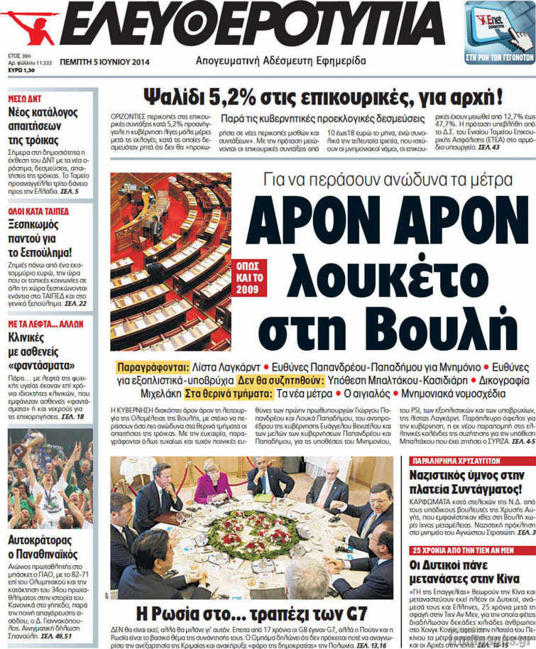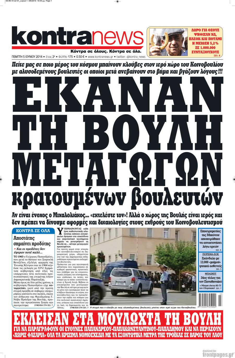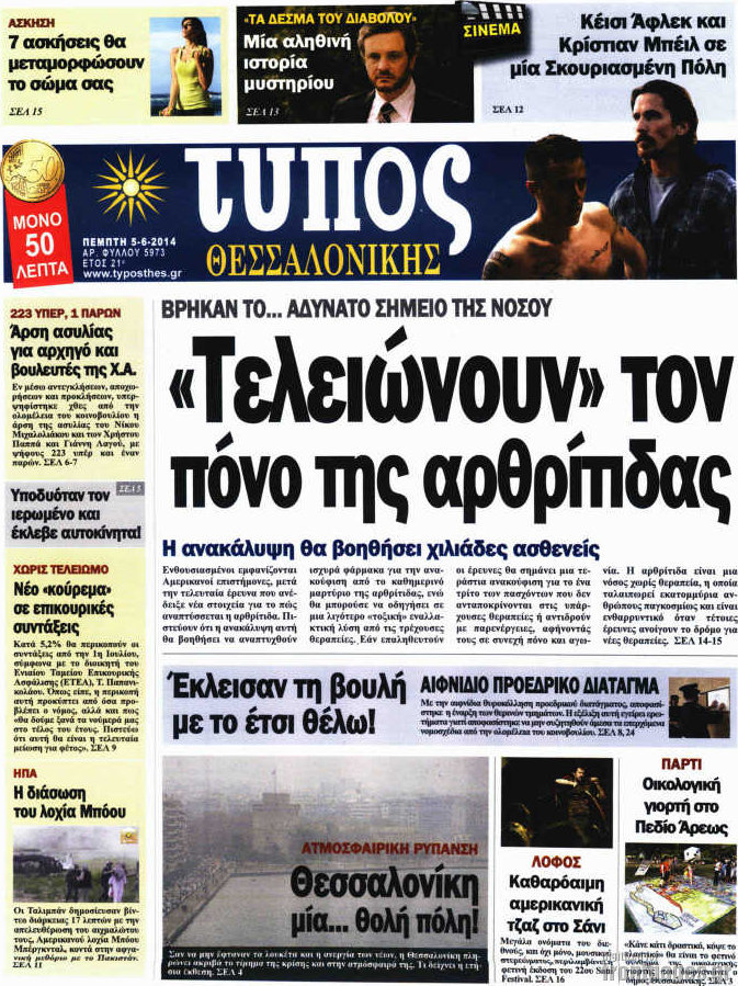 Οι πολιτικές εφημερίδες Enikos Newsroom 07:34, Πέμπτη 05 Ιουνίου 2014 Media Οι πολιτικές εφημερίδες Διαβάστε τα πρωτοσέλιδα των πολιτικών εφημερίδων. ΠΟΛΙΤΙΚΕΣ ΕΦΗΜΕΡΙΔΕΣ ΠΡΩΤΟΣΕΛΙΔΑ Μοιράσου το: σχολίασε κι εσύ (0 σχόλια) Ακολουθήστε το enikos.gr στο Google News και μάθετε πρώτοι όλες τις ειδήσεις Δείτε όλες τις τελευταίες ειδήσεις από την Ελλάδα και τον Κόσμο στο enikos.gr Ειδήσεις Ροή Ειδήσεων 4 ώρες πριν Εκτός ευρωομάδας ΣΥΡΙΖΑ ο Νίκος Παππάς μετά την επίθεση στον δημοσιογράφο Νίκο Γιαννόπουλο – Η μήνυση και οι νέες δηλώσεις 5 ώρες πριν «Αγριεύουν» οι αγρότες: «Δεν συντρέχει λόγος συνάντησης με τον πρωθυπουργό» – Ώρα αποφάσεων στη σύσκεψη της Πέμπτης 5 ώρες πριν Κυψέλη: Χωρίς την οικογένειά της δίπλα της απολογήθηκε η 16χρονη – «Της είχε επιτεθεί κάποιος για να την βιάσει, φοβήθηκε και κυκλοφορούσε με μαχαίρι» 4 ώρες πριν Politico: Το πρόβλημα της Ευρώπης δεν είναι το Βέλγιο αλλά ο Ντόναλντ Τραμπ 6 ώρες πριν Αλεξανδρούπολη: Πολυοργανική ανεπάρκεια λόγω υποσιτισμού η αιτία θανάτου του 3χρονου αγοριού 5 ώρες πριν Μυστήριο με τεράστιες κυκλικές πέτρες 200 κιλών – Ανακαλύφθηκαν τυχαία κατά τη διάρκεια οδικών έργων και κανείς δεν ξέρει από πού προέρχονται 6 ώρες πριν Ύπνος: Ειδικός εξηγεί τον πραγματικό λόγο που ξυπνάτε στις 4 τα ξημερώματα – Ο ρόλος των ορμονών και του κιρκάδιου ρυθμού 7 ώρες πριν Αριθμολογία: Οι άνθρωποι που έχουν γεννηθεί αυτές τις 4 ημερομηνίες, είναι τρυφεροί και αγαπούν ανιδιοτελώς 18 ώρες πριν 20 χρόνια τα Χριστούγεννα ξεκινούν στα Public με μεγάλη ποικιλία σε δώρα! 3 λεπτά πριν Αμερικανικά στρατεύματα στον Ισημερινό για «προσωρινή» επιχείρηση κατά των ναρκωτικών 19 λεπτά πριν Βραζιλία: Το Κογκρέσο ενέκρινε σχέδιο νόμου για τη μείωση της ποινής του πρώην προέδρου Μπολσονάρου 33 λεπτά πριν Ένταση στο περιφερειακό συμβούλιο Δυτικής Μακεδονίας: Φωνές, σπρωξιές και διακοπή – Δείτε βίντεο 48 λεπτά πριν Σουδάν: Επιδρομή drone σε χωριό του Νότιου Κορντοφάν – Οκτώ νεκροί 1 ώρα πριν Αλ Τσαντίρι Νιουζ: Η κόρη της Πάολα στο κοινό – Η ατάκα Λαζόπουλου που την έκανε να «κοκκινήσει» ENIKOS NETWORK Αϋπνία: Το κόλπο που θα σας βοηθήσει να κοιμηθείτε απόψε – Είναι απλό και έχει αποτέλεσμα 2,6 εκατομμύρια πολίτες έχουν ήδη εμβολιαστεί κατά της γρίπης ΕΛΣΤΑΤ: Τι δείχνουν τα νέα στοιχεία για τις ηλεκτρονικές παραγγελίες των επιχειρήσεων ΚΕΠΕ: Οι 3 διακριτές συμβολές των ΜμΕ και της μεταποίησης στην ελληνική οικονομία Χαρτογραφώντας το «σημείο χωρίς επιστροφή»: Για πρώτη φορά αποκαλύπτεται με λεπτομέρεια το ακανθώδες όριο της ατμόσφαιρας τ... Η Google καταργεί τη λειτουργία «dark web report» – Πώς θα μπορούν οι χρήστες να διαγράφουν τα δεδομένα τους περισσότερα 02:30 , Πέμπτη 18 Δεκεμβρίου 2025 Αλ Τσαντίρι Νιουζ: Η κόρη της Πάολα στο κοινό – Η ατάκα Λαζόπουλου που την έκανε να «κοκκινήσει» Γιορτινή διάθεση και ευχάριστες στιγμές γέμισε η αποψινή, τελευταία για το 2025, εκπομπή του «... 22:24 , Τετάρτη 17 Δεκεμβρίου 2025 Το Σπίτι Δίπλα Στο Ποτάμι: Σε κίνδυνο η υγεία του Απόστολου – Τι θα δούμε απόψε “Το Σπίτι Δίπλα στο Ποτάμι” ξετυλίγει το νήμα της ζωής των πέντε αδελφών με καταισ... 21:14 , Τετάρτη 17 Δεκεμβρίου 2025 Παιχνίδια Εκδίκησης: Θα καταφέρει ο Χρήστος να κλονίσει την εμπιστοσύνη της Μάγιας απέναντι στον Άγη; Τα «Παιχνίδια Εκδίκησης» έρχονται απόψε στις 22:30, στον Αντ1, με το τελευταίο επεισόδιο της χ... 20:57 , Τετάρτη 17 Δεκεμβρίου 2025 Άγιος Έρωτας: Η Χλόη καταθέτει εναντίον του πατέρα της και ο Χάρης αποκαλύπ