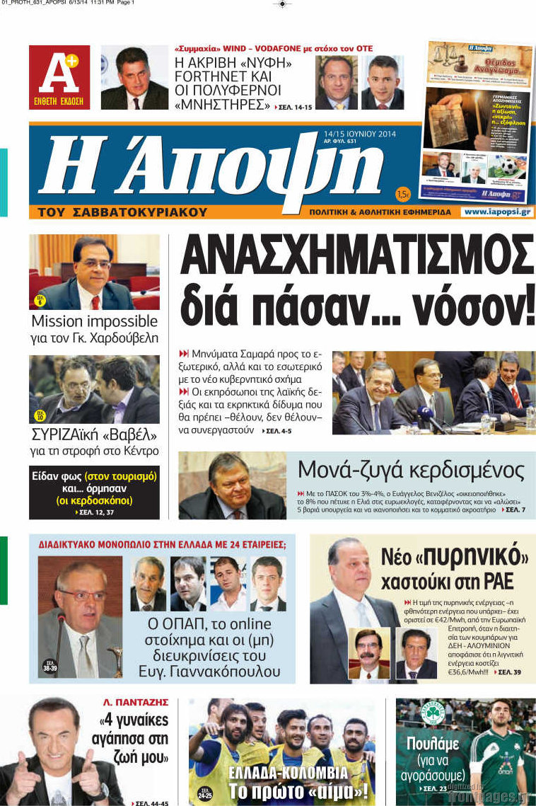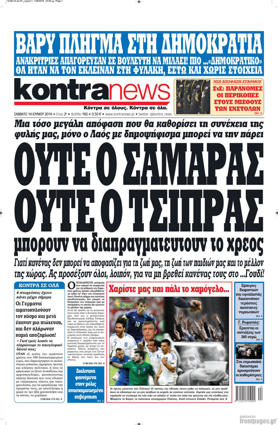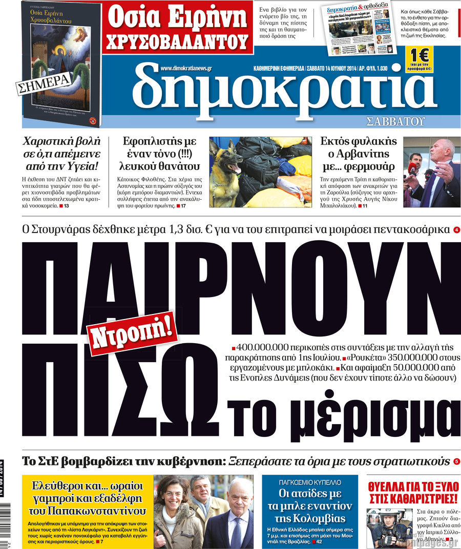 Οι πολιτικές εφημερίδες Enikos Newsroom 07:32, Σάββατο 14 Ιουνίου 2014 Media Οι πολιτικές εφημερίδες Διαβάστε τα πρωτοσέλιδα των πολιτικών εφημερίδων: ΕΦΗΜΕΡΙΔΕΣ ΠΟΛΙΤΙΚΕΣ ΕΦΗΜΕΡΙΔΕΣ ΠΡΩΤΟΣΕΛΙΔΑ Μοιράσου το: σχολίασε κι εσύ (0 σχόλια) Ακολουθήστε το enikos.gr στο Google News και μάθετε πρώτοι όλες τις ειδήσεις Δείτε όλες τις τελευταίες ειδήσεις από την Ελλάδα και τον Κόσμο στο enikos.gr Ειδήσεις Ροή Ειδήσεων 9 ώρες πριν Κύκλωμα διακίνησης ναρκωτικών σε σχολεία: Βίντεο ντοκουμέντο από τα βασανιστήρια στους ανήλικους – Συζητούσαν για το πώς θα κάνουν «ξέπλυμα χρήματος» 32 λεπτά πριν Επίδομα θέρμανσης: Μέχρι αύριο η προκαταβολή σε περισσότερα από 1 εκατ. νοικοκυριά – Τα ποσά που θα λάβουν οι δικαιούχοι 24 λεπτά πριν Δήμος Αθηναίων: Ξεκινά σήμερα η επιστροφή πινακίδων κυκλοφορίας από τη Δημοτική Αστυνομία 8 ώρες πριν Κλιμακώνουν τις κινητοποιήσεις τους οι αγρότες: Κλείνουν τη Δευτέρα τις σήραγγες των Τεμπών για τα φορτηγά – Ανοίγουν την Τρίτη τους δρόμους για τους εκδρομείς 8 ώρες πριν ΗΠΑ: Αυξάνουν την πίεση στην Βενεζουέλα – Το νέο ρεσάλτο σε τάνκερ και ο στόχος του Τραμπ 56 λεπτά πριν Οπτική ψευδαίσθηση: Μόνο οι πιο έξυπνοι άνθρωποι θα βρουν τον Άγιο Βασίλη σε 8 δευτερόλεπτα 1 ώρα πριν Άνοια και εγκεφαλικό: Γιατρός προειδοποιεί για ένα δημοφιλές ρόφημα που αυξάνει τον κίνδυνο κατά 290% και 300% αντίστοιχα 2 ώρες πριν Τα ζώδια σήμερα, Δευτέρα 22 Δεκεμβρίου: Ζυγοί, αφήστε την καρδιά σας ελεύθερη 2 ημέρες πριν Enerwave: Το νέο «ρεύμα» στη λιανική ενέργειας που αλλάζει την εμπειρία του καταναλωτή 3 λεπτά πριν Εορτολόγιο: Ποιοι γιορτάζουν σήμερα 22 Δεκεμβρίου 9 λεπτά πριν Αυτή την Κυριακή με τη Realnews: Το μυστήριο των Χριστουγέννων της Vicki Delany – Μαζί αστυνομικά μυθιστορήματα 16 λεπτά πριν Ντόναλντ Τραμπ: Διορίζει τον Τζεφ Λάντρι ειδικό απεσταλμένο στη Γροιλανδία 24 λεπτά πριν Δήμος Αθηναίων: Ξεκινά σήμερα η επιστροφή πινακίδων κυκλοφορίας από τη Δημοτική Αστυνομία 32 λεπτά πριν Επίδομα θέρμανσης: Μέχρι αύριο η προκαταβολή σε περισσότερα από 1 εκατ. νοικοκυριά – Τα ποσά που θα λάβουν οι δικαιούχοι ENIKOS NETWORK Την Κυριακή με τη Realnews: Δωροεπιταγή 10€ Μόνο όσοι έχουν την κοφτερή όραση του Άι Βασίλη θα μπορέσουν να εντοπίσουν τον λύκο σε αυτό το τεστ παρατηρητικότητας Νέο έτος ρεκόρ για τον ελληνικό τουρισμό το 2025: «Είμαστε μέσα στους 10 πλέον επισκέψιμους προορισμούς παγκοσμίως» λέει η ... Τιμές καυσίμων: Πόσο θα πληρώσουν οι εκδρομείς των Χριστουγέννων – Το κόστος μετακινήσεων σε δημοφιλείς προορισμούς Χαρτογραφώντας το «σημείο χωρίς επιστροφή»: Για πρώτη φορά αποκαλύπτεται με λεπτομέρεια το ακανθώδες όριο της ατμόσφαιρας τ... Η Google καταργεί τη λειτουργία «dark web report» – Πώς θα μπορούν οι χρήστες να διαγράφουν τα δεδομένα τους περισσότερα 07:02 , Δευτέρα 22 Δεκεμβρίου 2025 Αυτή την Κυριακή με τη Realnews: Το μυστήριο των Χριστουγέννων της Vicki Delany – Μαζί αστυνομικά μυθιστορήματα Αυτή την Κυριακή με τη Realnews: Το μυστήριο των Χριστουγέννων της Vicki Delany – Μαζί α... 05:48 , Δευτέρα 22 Δεκεμβρίου 2025 Οι οικονομικές εφημερίδες 22/12/2025 Διαβάστε τα πρωτοσέλιδα από τις οικονομικές εφημερίδες, σήμερα 22/12/2025 05:43 , Δευτέρα 22 Δεκεμβρίου 2025 Οι αθλητικές εφημερίδες 22/12/2025 Διαβάστε τα πρωτοσέλιδα από τις αθλητικές εφημερίδες, σήμερα 22/12/2025. 05:38 , Δευτέρα 22 Δεκεμβρίου 2025 Οι πολιτικές εφημερίδες 22/12/2025 Διαβάστε τα πρωτοσέλιδα από τις πολιτικές εφημερίδες, σήμερα 22/12/2025. ΤΕΛΕΥΤΑΙΕΣ ΕΙΔΗΣΕΙΣ 9 λεπτά πριν Αυτή την Κυριακή με τη Realnews: Το μυ