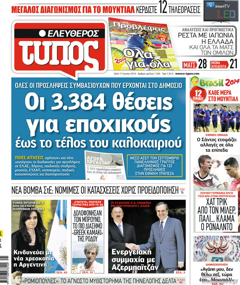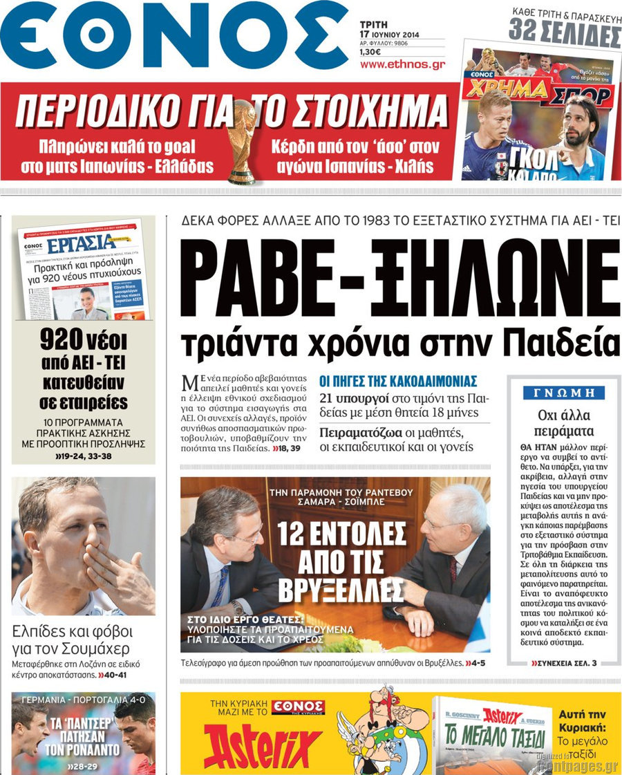Οι πολιτικές εφημερίδες Enikos Newsroom 08:03, Τρίτη 17 Ιουνίου 2014 Media Οι πολιτικές εφημερίδες Διαβάστε τα πρωτοσέλιδα των πολιτικών εφημερίδων: ΕΦΗΜΕΡΙΔΕΣ ΠΟΛΙΤΙΚΕΣ ΕΦΗΜΕΡΙΔΕΣ ΠΡΩΤΟΣΕΛΙΔΑ Μοιράσου το: σχολίασε κι εσύ (0 σχόλια) Ακολουθήστε το enikos.gr στο Google News και μάθετε πρώτοι όλες τις ειδήσεις Δείτε όλες τις τελευταίες ειδήσεις από την Ελλάδα και τον Κόσμο στο enikos.gr Ειδήσεις Ροή Ειδήσεων 3 ώρες πριν Αγρότες: Πολύωροι αποκλεισμοί στα τελωνεία Προμαχώνα, Εξοχής, Ευζώνων και Νίκης – Κλείνουν τον κόμβο Φιλώτα οι παραγωγοί στη Δυτική Μακεδονία 2 ώρες πριν Νίκος Παππάς: Ζητώ συγγνώμη για αυτό το επεισόδιο – Δεν τον γρονθοκόπησα 1 ώρα πριν Πούτιν: Η Ουκρανία δεν είναι έτοιμη για ειρηνευτικές συνομιλίες – ο ρωσικός στρατός προελαύνει σε όλα τα μέτωπα 57 λεπτά πριν Κρήτη: Στο Ρέθυμνο μεταφέρονται οι εκατοντάδες μετανάστες που διασώθηκαν ανοιχτά της Γαύδου 2 ώρες πριν Τρομακτικό βίντεο: Η στιγμή της έκρηξης στο τζετ που μετέφερε τον οδηγό του NASCAR, Γκρεγκ Μπιφλ και την οικογένειά του 3 ώρες πριν Αλλαγή σελίδας για 3 ζώδια – «Μία δύσκολη περίοδος φτάνει στο τέλος της» 2 ημέρες πριν 20 χρόνια τα Χριστούγεννα ξεκινούν στα Public με μεγάλη ποικιλία σε δώρα! 2 ώρες πριν Γεμάτος νεροχύτης; 5 σοβαρές ευθύνες που «φοβίζουν» όσους αφήνουν άπλυτα πιάτα 1 ώρα πριν Ειδικός μοιράζεται 6 κόλπα για να διατηρείστε σε φόρμα με πάνω από 40 ώρες εργασίας την εβδομάδα: «Προπονηθείτε πριν από τη δουλειά, όχι μετά» 5 λεπτά πριν ΑΑΔΕ: QR Code και Barcode για εύκολες και γρήγορες πληρωμές οφειλών 10 λεπτά πριν Νέα Φιλαδέλφεια: Βίντεο ντοκουμέντο από το θανατηφόρο τροχαίο 15 λεπτά πριν Παπαθανάσης: «Η Ελλάδα αλλάζει με μεταρρυθμίσεις και έργα – Το 2026 χρονιά μεγάλης ανάπτυξης, νέων θέσεων εργασίας, καλύτερων αμοιβών» 21 λεπτά πριν Αγρότες: Παραμένουν στα μπλόκα και ενισχύουν τις δράσεις τους σε Ημαθία, Πέλλα, Πιερία και Καβάλα 27 λεπτά πριν Γιώργος Μαζωνάκης: «Φοβόταν, θεώρησα ότι έπρεπε να τον προστατεύσω» – Τι λέει η τραγουδίστρια, Νωαίνα για τον Στέφανο Παπαδόπουλο ENIKOS NETWORK Κίνδυνος παραπλάνησης από διαφημίσεις οδοντικών εμφυτευμάτων Καρκίνος του πνεύμονα: Έως 8.000 ζωές μπορούν να σωθούν με την έγκαιρη διάγνωση Αγορά πολυτελών κατοικιών: Αυτές είναι οι προτεραιότητες των αγοραστών – Σε ποιες περιοχές στρέφονται και τι επιλέγουν ΕΥΔΑΠ: Στο τραπέζι αλλαγές στους λογαριασμούς του νερού – Τι θα ισχύσει για ευάλωτα νοικοκυριά και επιχειρήσεις Χαρτογραφώντας το «σημείο χωρίς επιστροφή»: Για πρώτη φορά αποκαλύπτεται με λεπτομέρεια το ακανθώδες όριο της ατμόσφαιρας τ... Η Google καταργεί τη λειτουργία «dark web report» – Πώς θα μπορούν οι χρήστες να διαγράφουν τα δεδομένα τους περισσότερα 08:00 , Παρασκευή 19 Δεκεμβρίου 2025 Την Κυριακή με τη Realnews: Δωροεπιταγή 10€ Δωροεπιταγή αξίας 10€ για αγορές άνω των 60€ από τα πολυκαταστήματα FactoryOutlet H προσφορά ι... 05:48 , Παρασκευή 19 Δεκεμβρίου 2025 Οι οικονομικές εφημερίδες 19/12/2025 Διαβάστε τα πρωτοσέλιδα από τις οικονομικές εφημερίδες, σήμερα 19/12/2025. 05:43 , Παρασκευή 19 Δεκεμβρίου 2025 Οι αθλητικές εφημερίδες 19/12/2025 Διαβάστε τα πρωτοσέλιδα από τις αθλητικές εφημερίδες, σήμερα 19/12/2025. 05:38 , Παρασκευή 19 Δεκεμβρίου 2025 Οι πολιτικές εφημερίδες 19/12/2025 Διαβάστε τα πρωτοσέλιδα από τις πολιτικές εφημερίδες, σήμερα 19/12/2025. ΤΕΛΕΥΤΑΙΕΣ ΕΙΔΗΣΕΙΣ 5 λεπτά πριν ΑΑΔΕ: QR Code και Barcode για εύκολες και γρήγορες πληρωμές... 10 λεπτά πριν Νέα Φιλαδέλφεια: Βίντεο ντοκουμέντο από το θανατηφόρο... 15 λεπτά πριν Παπαθανάσ