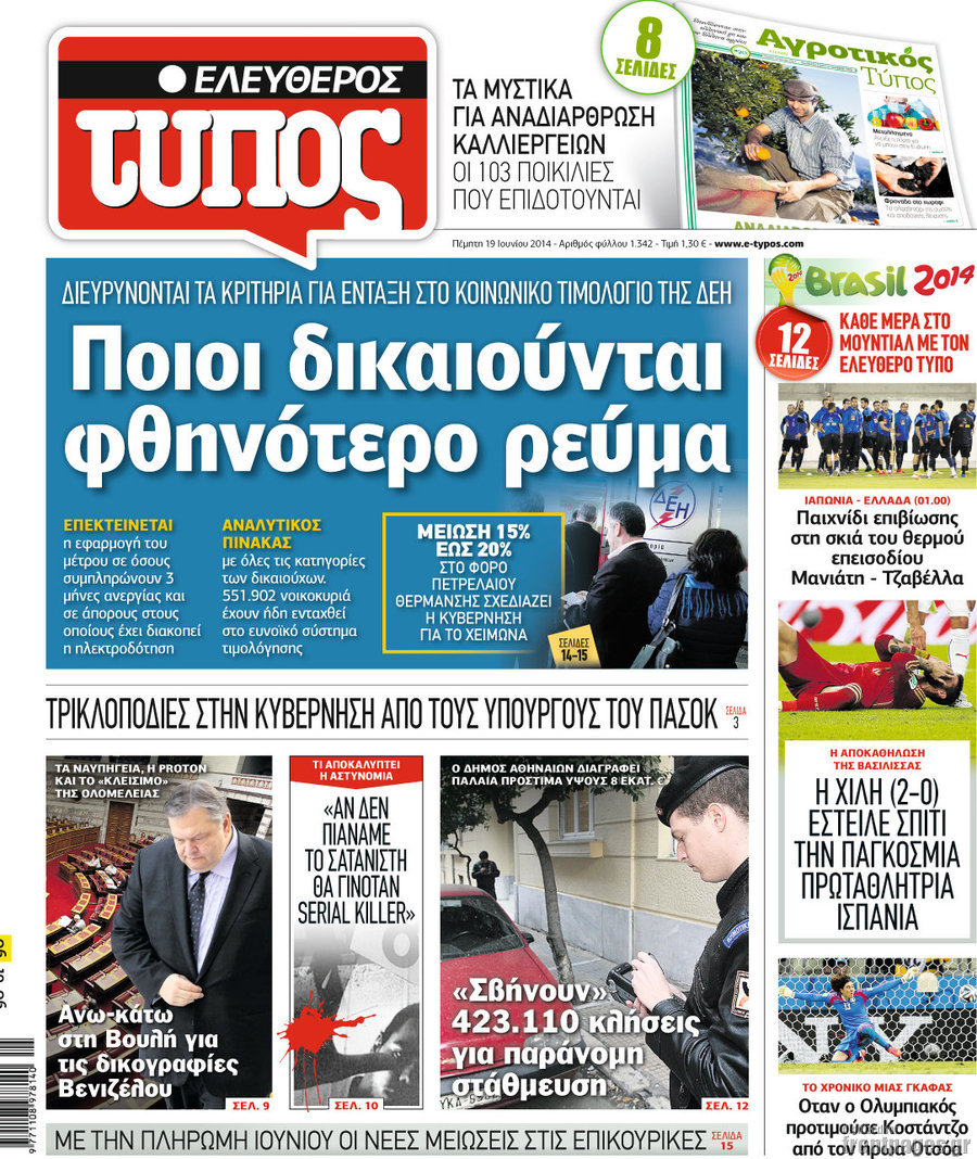 Οι πολιτικές εφημερίδες Enikos Newsroom 08:10, Πέμπτη 19 Ιουνίου 2014 Media Οι πολιτικές εφημερίδες Διαβάστε τα πρωτοσέλιδα των πολιτικών εφημερίδων: ΕΦΗΜΕΡΙΔΕΣ ΠΟΛΙΤΙΚΕΣ ΕΦΗΜΕΡΙΔΕΣ ΠΡΩΤΟΣΕΛΙΔΑ Μοιράσου το: σχολίασε κι εσύ (0 σχόλια) Ακολουθήστε το enikos.gr στο Google News και μάθετε πρώτοι όλες τις ειδήσεις Δείτε όλες τις τελευταίες ειδήσεις από την Ελλάδα και τον Κόσμο στο enikos.gr Ειδήσεις Ροή Ειδήσεων 3 ώρες πριν Χριστούγεννα στα μπλόκα οι αγρότες: Άνοιξαν στα διόδια και μοίρασαν προϊόντα στους πολίτες – Νέα σύσκεψη την Κυριακή στη Νίκαια 4 ώρες πριν Κύκλωμα διακίνησης ναρκωτικών σε σχολεία: Τηλεφωνούσαν στους ανηλίκους την ώρα του μαθήματος – Οι διάλογοι-σοκ, τα «ψευδώνυμα» και τα βασανιστήρια 3 ώρες πριν Αρχεία Επστάιν: Οι 500 σελίδες που λείπουν, τα αναπάντητα ερωτήματα και οι επώνυμοι – Τι έπεται 5 ώρες πριν Ζελένσκι: Μόνο οι ΗΠΑ και ο Τραμπ μπορούν να πιέσουν τη Ρωσία να βάλει τέλος στον πόλεμο 5 ώρες πριν Φοινικούντα: Προφυλακιστέος ο 30χρονος για συνέργεια στη διπλή δολοφονία – Και άλλα πρόσωπα στο «μικροσκόπιο» 3 ώρες πριν Αποκαλύφθηκε το άγνωστο «GPS» της αρχαιότητας – Πώς οι ναοί «φώτιζαν» τον δρόμο των ναυτικών πριν από την εφεύρεση των φάρων 4 ώρες πριν Ύπνος: Η διατροφή που μπορεί να σας βοηθήσει να κοιμάστε καλύτερα και να ζήσετε περισσότερο 5 ώρες πριν Αριθμολογία: Ο αριθμός του φύλακα αγγέλου σας, με βάση τον μήνα γέννησής σας – «Έτσι σας στέλνει σημάδια το σύμπαν» 17 ώρες πριν Enerwave: Το νέο «ρεύμα» στη λιανική ενέργειας που αλλάζει την εμπειρία του καταναλωτή 21 λεπτά πριν Σεισμός 3,8 Ρίχτερ ανοιχτά της Αμοργού 37 λεπτά πριν Άννα Βίσση: Τα… Social Media «προσκύνησαν» την «απόλυτη» για την συναυλία της στο Καλλιμάρμαρο που προβλήθηκε από το Mega 51 λεπτά πριν Φωτεινή Αθερίδου: «Προσπαθώ να είμαι κάθετη και αυστηρή σαν μαμά πια» 1 ώρα πριν ΗΠΑ, Αίγυπτος, Κατάρ και Τουρκία συζήτησαν τη δεύτερη φάση του ειρηνευτικού σχεδίου για τη Γάζα 1 ώρα πριν Γιάννης Αντετοκούνμπο: Έμεινε στην 6η θέση της ψηφοφορίας του ESPN για το βραβείο του MVP του NBA ENIKOS NETWORK Οι γυναίκες αποκαλύπτουν το πιο ελκυστικό πράγμα που μπορεί να κάνει ένας άνδρας Ομορφιά και αντιγήρανση: Ειδικοί μιλούν για συσκευές περιποίησης του δέρματος «Πολεμική» προετοιμασία από την ευρωπαϊκή βιομηχανία ενέργειας – Η Eurelectric ζητεί «ομπρέλα» προστασίας για τις υποδομές Ακύρωση ΑΦΜ για απάτες – Ποιους βάζει στο στόχαστρο η ΑΑΔΕ Χαρτογραφώντας το «σημείο χωρίς επιστροφή»: Για πρώτη φορά αποκαλύπτεται με λεπτομέρεια το ακανθώδες όριο της ατμόσφαιρας τ... Η Google καταργεί τη λειτουργία «dark web report» – Πώς θα μπορούν οι χρήστες να διαγράφουν τα δεδομένα τους περισσότερα 01:30 , Κυριακή 21 Δεκεμβρίου 2025 Άννα Βίσση: Τα… Social Media «προσκύνησαν» την «απόλυτη» για την συναυλία της στο Καλλιμάρμαρο που προβλήθηκε από το Mega Την ημέρα των γενεθλίων της Άννας Βίσση, το MEGA τίμησε τη διαχρονική παρουσία της «απόλυτης Ε... 00:00 , Κυριακή 21 Δεκεμβρίου 2025 The Voice: Η επιστροφή της Έλενας Παπαρίζου και η ατάκα του Γιώργου Μαζωνάκη μετά τις καταγγελίες Στη φάση των Cross Battles Live μπήκε το The Voice, με την Έλενα Παπαρίζου να επιστρέφει στο π... 20:30 , Σάββατο 20 Δεκεμβρίου 2025 Αυτή την Κυριακή με τη Realnews: Instyle, μαζί Drive και Realnews Geopolitics Αυτή την Κυριακή με τη Realnews: Instyle, μαζί Drive και Realnews Geopolitics Instyle Η Άννα Ρ... 20:28 , Σάββατο 20 Δεκεμβρίου 2025 Ο ΑΝΤ1 γεμίζει τις γιορτές με μουσική – Ποιους καλλιτέχνες θα απολαύσουμε Φέτος στον ΑΝΤ1 γιορτάζουμε τις νύχτες μας παρέα με αγαπημένο