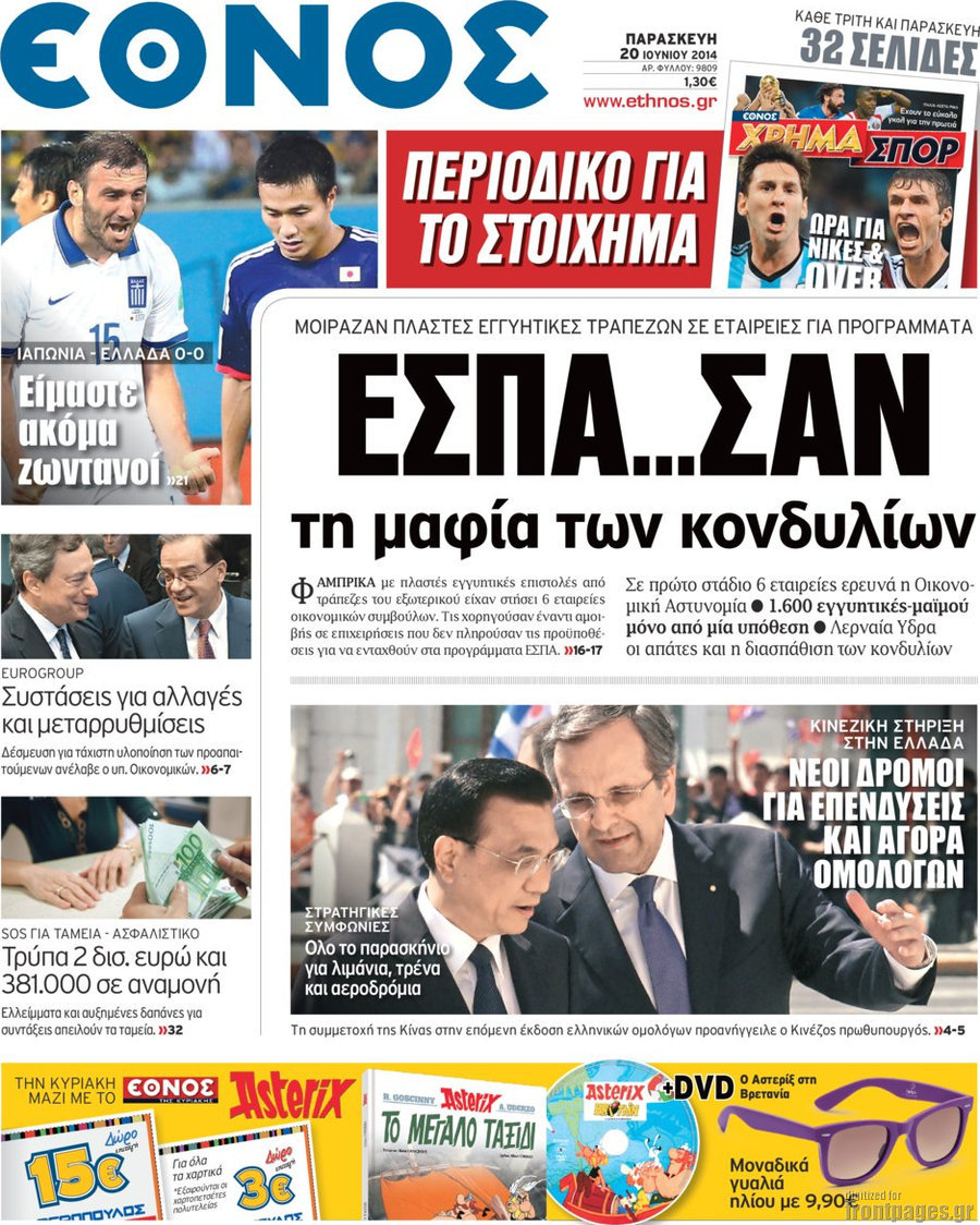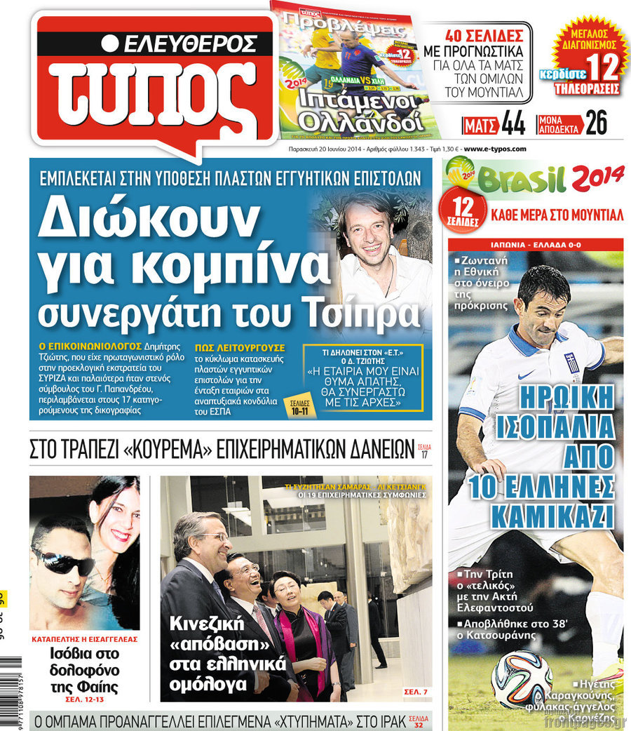 Οι πολιτικές εφημερίδες Enikos Newsroom 08:09, Παρασκευή 20 Ιουνίου 2014 Media Οι πολιτικές εφημερίδες Διαβάστε τα πρωτοσέλιδα των πολιτικών εφημερίδων: ΕΦΗΜΕΡΙΔΕΣ ΠΟΛΙΤΙΚΕΣ ΕΦΗΜΕΡΙΔΕΣ ΠΡΩΤΟΣΕΛΙΔΑ Μοιράσου το: σχολίασε κι εσύ (0 σχόλια) Ακολουθήστε το enikos.gr στο Google News και μάθετε πρώτοι όλες τις ειδήσεις Δείτε όλες τις τελευταίες ειδήσεις από την Ελλάδα και τον Κόσμο στο enikos.gr Ειδήσεις Ροή Ειδήσεων 2 ώρες πριν Πώς δρούσε το κύκλωμα που διακινούσε ναρκωτικά σε σχολεία – Υπέβαλαν σε βασανιστήρια όσους δεν τηρούσαν τους «κανόνες πειθαρχίας» 2 ώρες πριν Αγρότες: Γιορτές στα μπλόκα με ανοιχτά διόδια – Δικογραφία στα Ιωάννινα για το σήκωμα των μπαρών 2 ώρες πριν Ζελένσκι: Οι Αμερικανοί πρότειναν συνάντηση Ουκρανίας, ΗΠΑ, Ρωσίας στο Μαϊάμι 1 ώρα πριν Αττική: Εξαρθρώθηκε εγκληματική οργάνωση που έκλεβε οχήματα, τα παραποιούσε και τα μεταπωλούσε σε πολίτες – Πώς δρούσε το κύκλωμα 1 ώρα πριν Μικαέλα Μπέντχαους: Ο πρώτος άνθρωπος σε αναπηρικό αμαξίδιο που ταξίδεψε στο διάστημα – ΒΙΝΤΕΟ 3 ώρες πριν Η τύχη χαμογελά σε 3 ζώδια έως τις 28 Δεκεμβρίου – «Προσέξτε τις επιλογές σας και η επιμονή σας θα ανταμειφθεί» 7 ώρες πριν Διαιτολόγος αποκαλύπτει 9 πρωινές συνήθειες που «λιώνουν» το κοιλιακό λίπος – «Υποστηρίζουν την υγιεινή απώλεια βάρους» 4 ώρες πριν Μία ανεκμετάλλευτη πηγή θα μπορούσε να προσφέρει ανεξάντλητη ενέργεια – Οι επιστήμονες ίσως γνωρίζουν πώς να την ξεκλειδώσουν 10 ώρες πριν Enerwave: Το νέο «ρεύμα» στη λιανική ενέργειας που αλλάζει την εμπειρία του καταναλωτή 11 λεπτά πριν Λούλα: Προειδοποιεί πως μια επέμβαση των ΗΠΑ στη Βενεζουέλα θα μπορούσε να είναι καταστροφική 19 λεπτά πριν Τραμπ: Πώς περνάει τις γιορτές των Χριστουγέννων – Τα δώρα που κάνει στα εγγόνια του 32 λεπτά πριν HOTΕΛ ΕΛVIRA: Η Ελβίρα μαθαίνει πως ο Χάρι μένει κρυφά στο ξενοδοχείο του Παντελή 41 λεπτά πριν Ερντογάν: «Δεν έχουμε βλέψεις στα εδάφη κανενός, αλλά δεν θα επιτρέψουμε να παραβιαστούν τα δικαιώματά μας» 51 λεπτά πριν Η Realnews στο www.pressreader.com ENIKOS NETWORK Γιατί πρέπει να ζητάμε χάρες; Ποιο είναι το φαινόμενο Ben Franklin που κάνει τους άλλους να μας συμπαθούν Η αποχή από την αναπαραγωγή παρατείνει τη ζωή στα ζώα, σύμφωνα με μελέτη – Τι ισχύει για τους ανθρώπους; Ολοκληρώθηκαν πληρωμές 22,16 εκατ. ευρώ για το μεταφορικό ισοδύναμο – Κικίλιας: Στηρίζουμε τη νησιωτικότητα Η Realnews στο www.pressreader.com Χαρτογραφώντας το «σημείο χωρίς επιστροφή»: Για πρώτη φορά αποκαλύπτεται με λεπτομέρεια το ακανθώδες όριο της ατμόσφαιρας τ... Η Google καταργεί τη λειτουργία «dark web report» – Πώς θα μπορούν οι χρήστες να διαγράφουν τα δεδομένα τους περισσότερα 18:19 , Σάββατο 20 Δεκεμβρίου 2025 HOTΕΛ ΕΛVIRA: Η Ελβίρα μαθαίνει πως ο Χάρι μένει κρυφά στο ξενοδοχείο του Παντελή Συνεχίζονται οι εκλογές για πρόεδρο, στο νέο επεισόδιο της κωμικής σειράς του MEGA, HOTΕΛ ΕΛVI... 14:04 , Σάββατο 20 Δεκεμβρίου 2025 Η Realnews αυτής της Κυριακής (21/12/2025) Με τίτλο: «Ασπίδα προστασίας για την Ελλάδα» κυκλοφορεί, αυτήν την Κυριακή, η Realnews. Σημαντ... 12:53 , Σάββατο 20 Δεκεμβρίου 2025 Να μ’ αγαπάς: Το παρελθόν έρχεται στο φως – Καταιγιστικές εξελίξεις στα τελευταία επεισόδια του 2025 Ο Άγγελος αποκαλύπτεται, η Φωτεινή ανησυχεί για τον Λευτέρη και η Ζωή έρχεται αντιμέτωπη με το... 11:41 , Σάββατο 20 Δεκεμβρίου 2025 «Η αγάπη δεν χάνεται ποτέ»: Η μικρού μήκους ταινία κινουμένων σχεδίων που θέτει ερωτήματα για τη ζωή και τον θάνατο Ο θάνατος είναι ένα από τα πιο σκληρά θέματα που καλείται να διαχειριστε